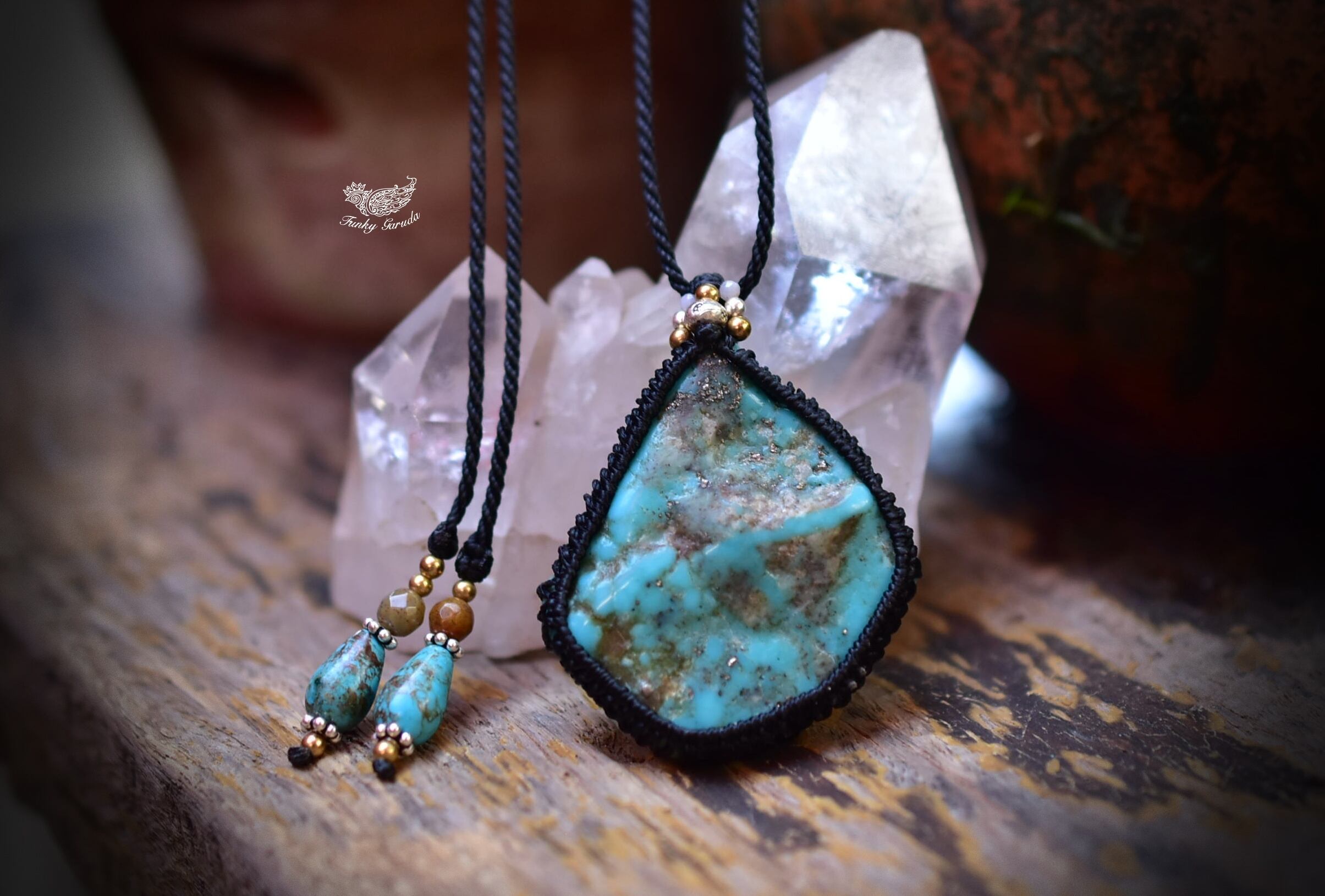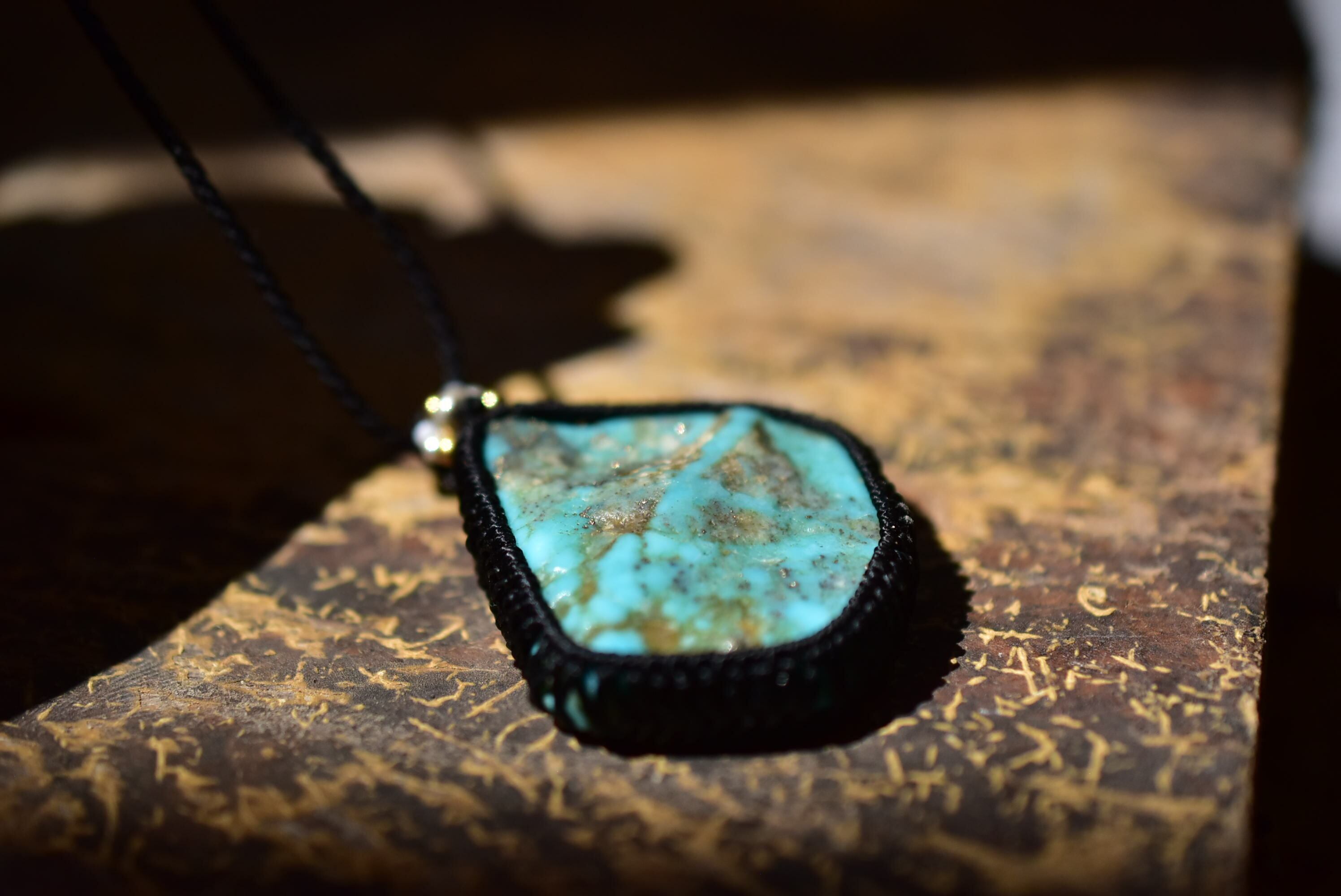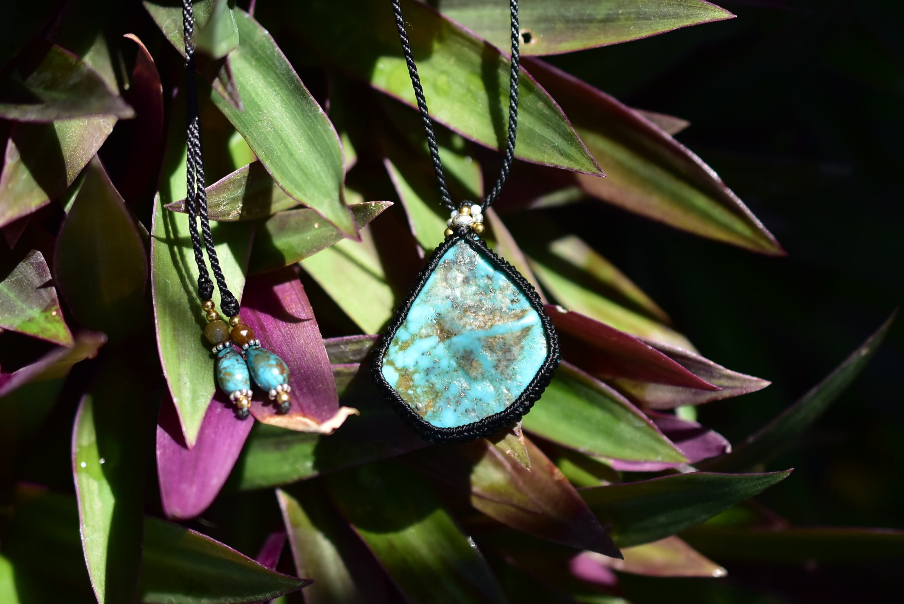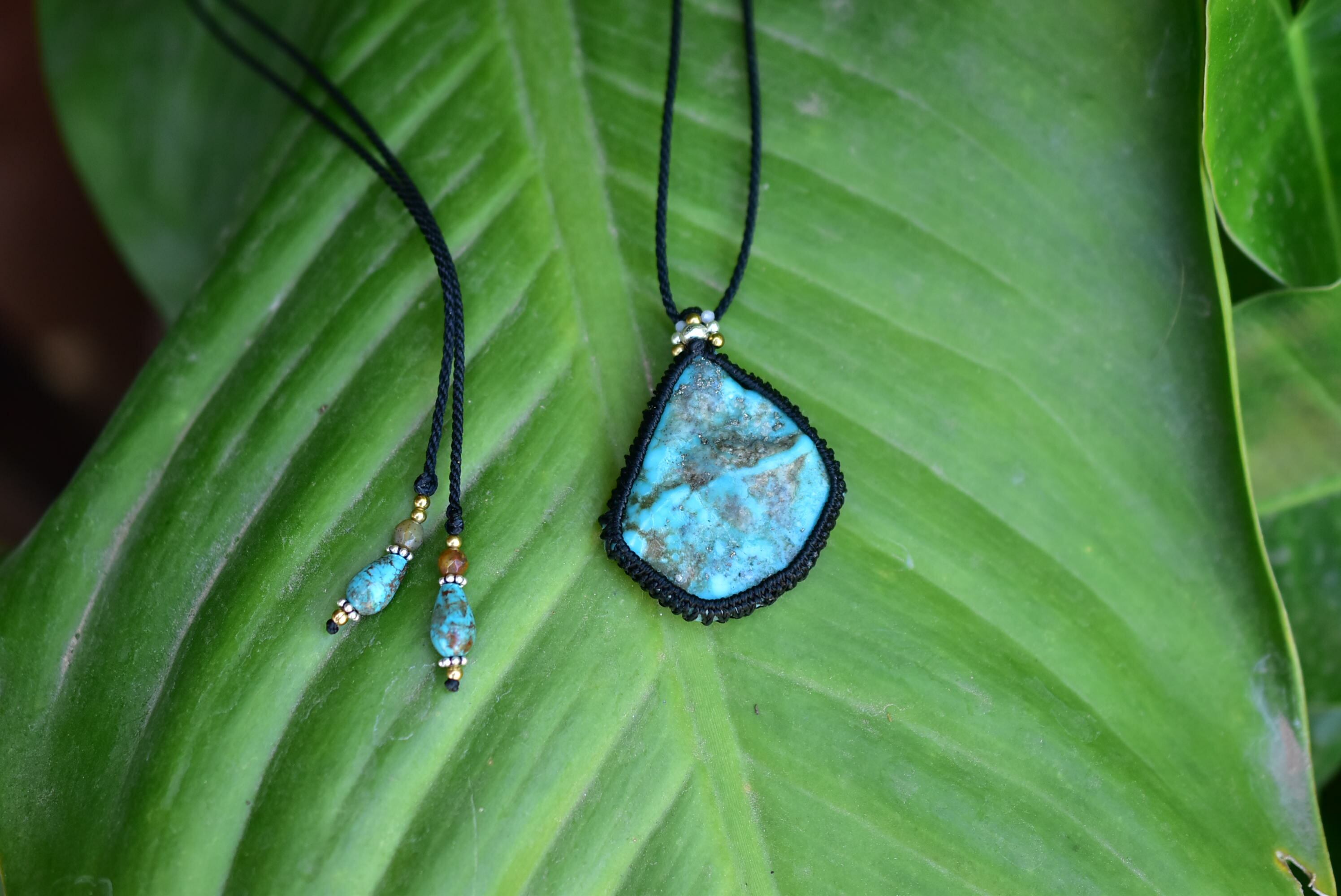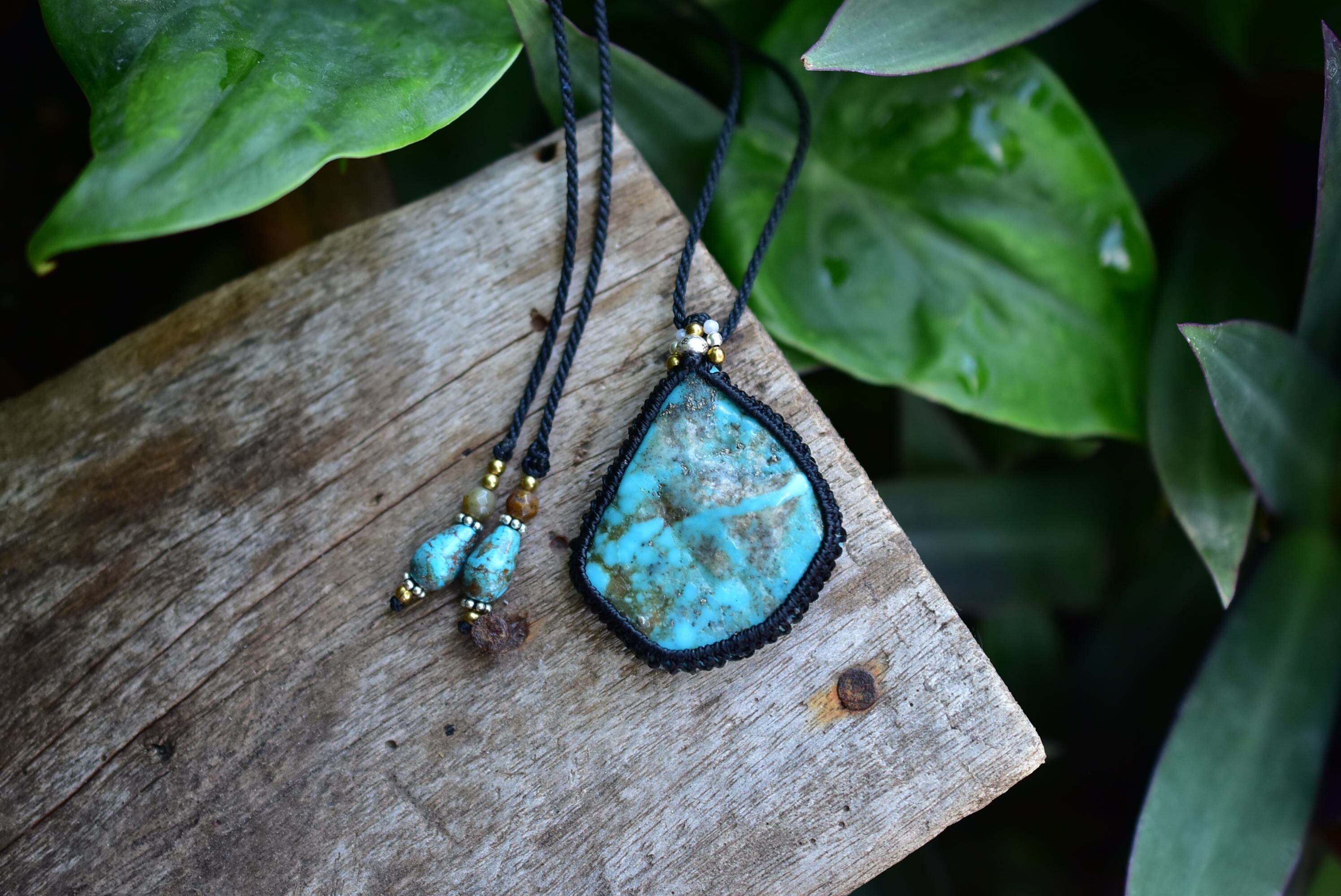 地球色★大粒★ターコイズ原石 マクラメペンダント 32