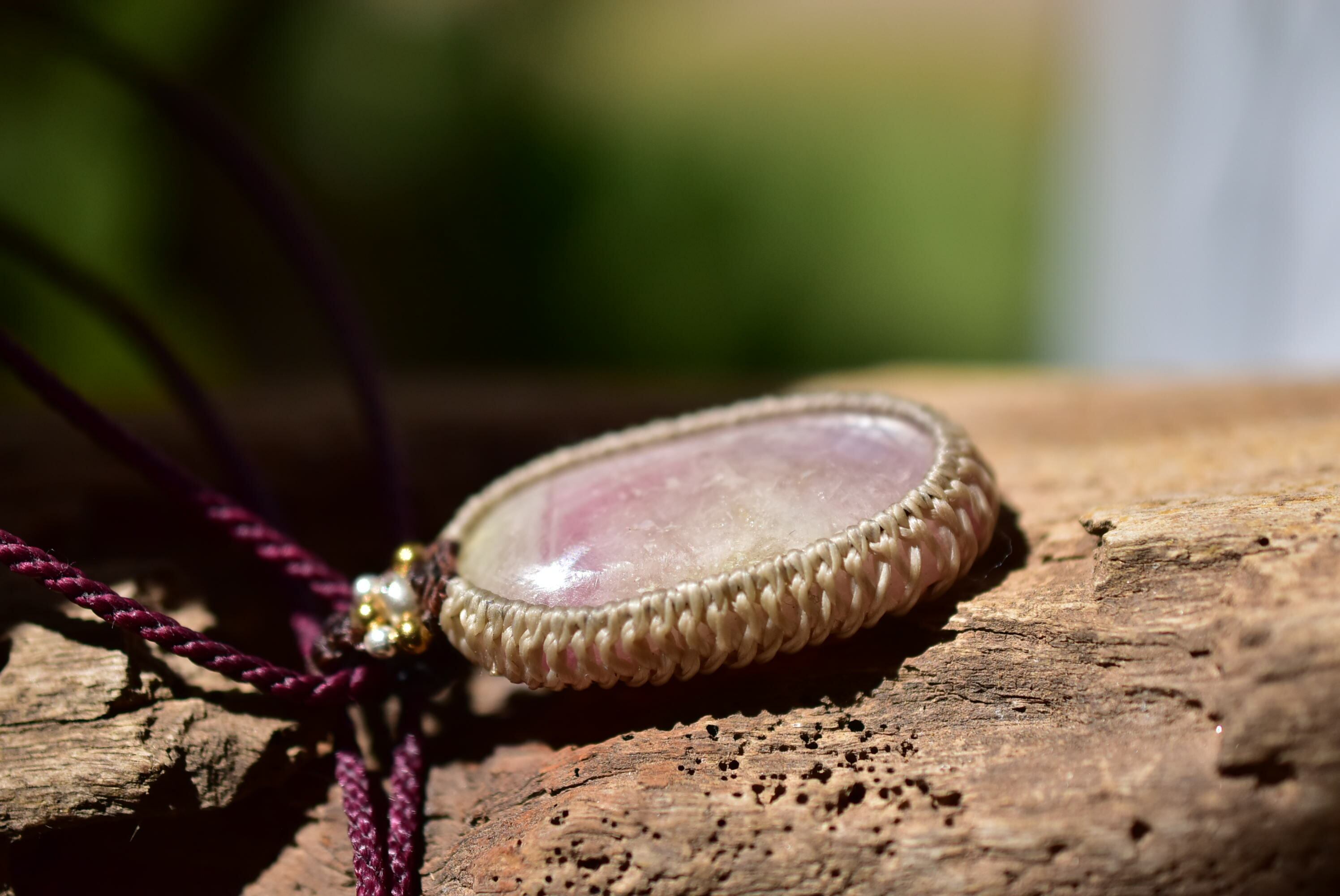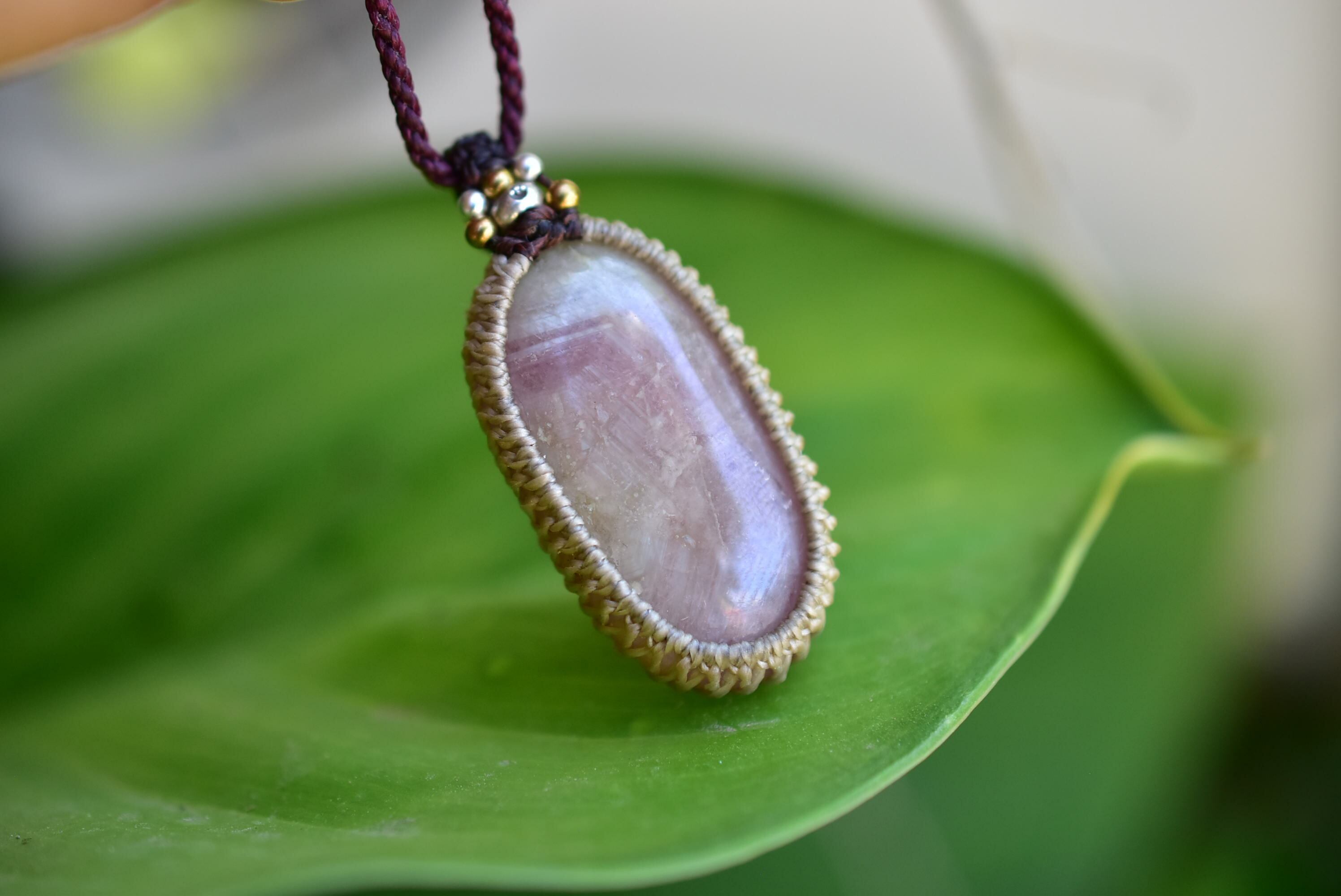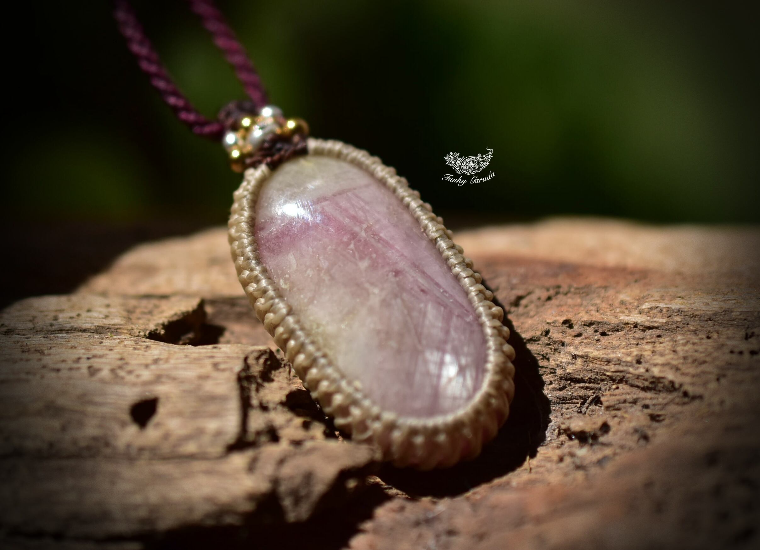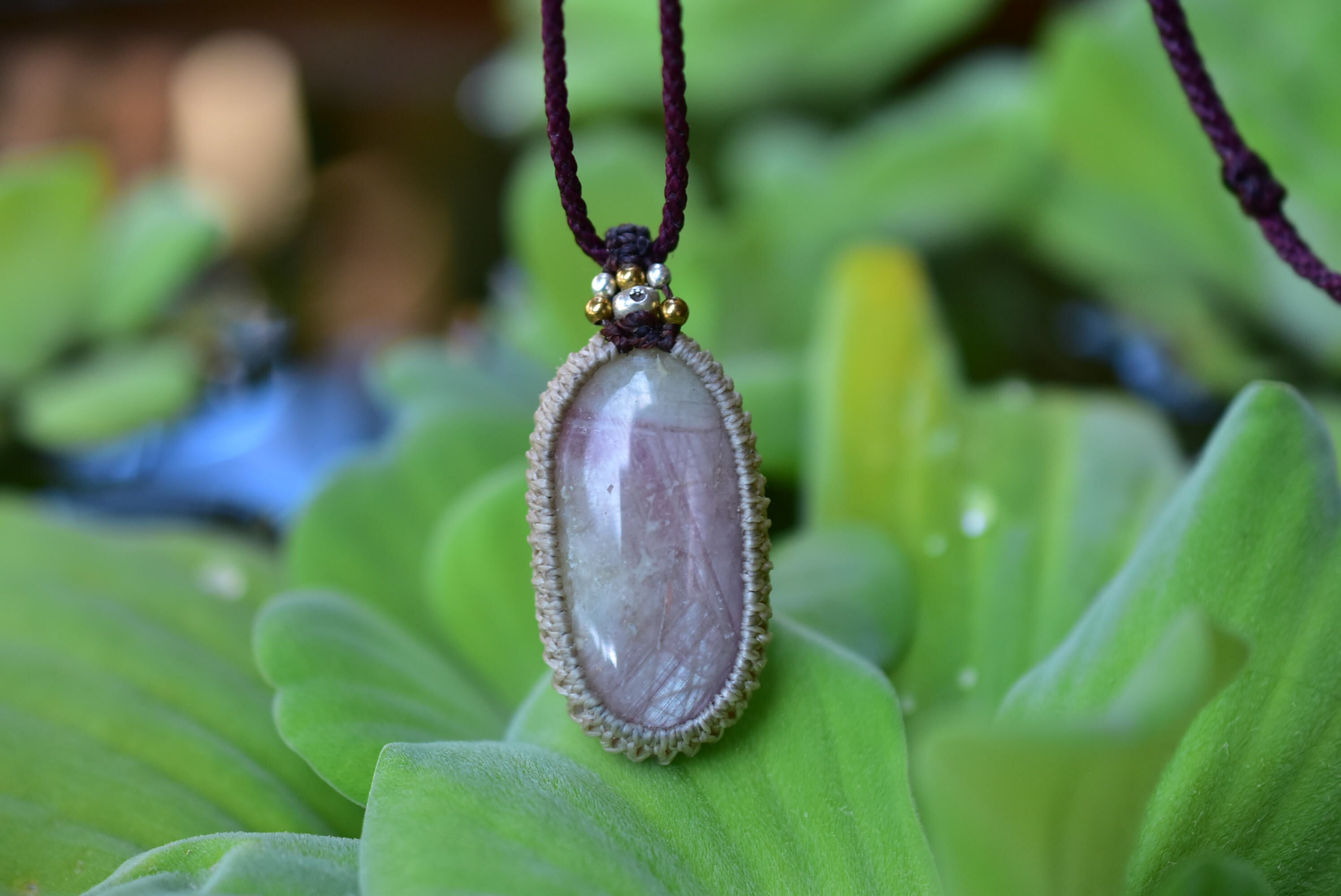 ピンクのルビー成長線★イエローサファイア マクラメペンダント36