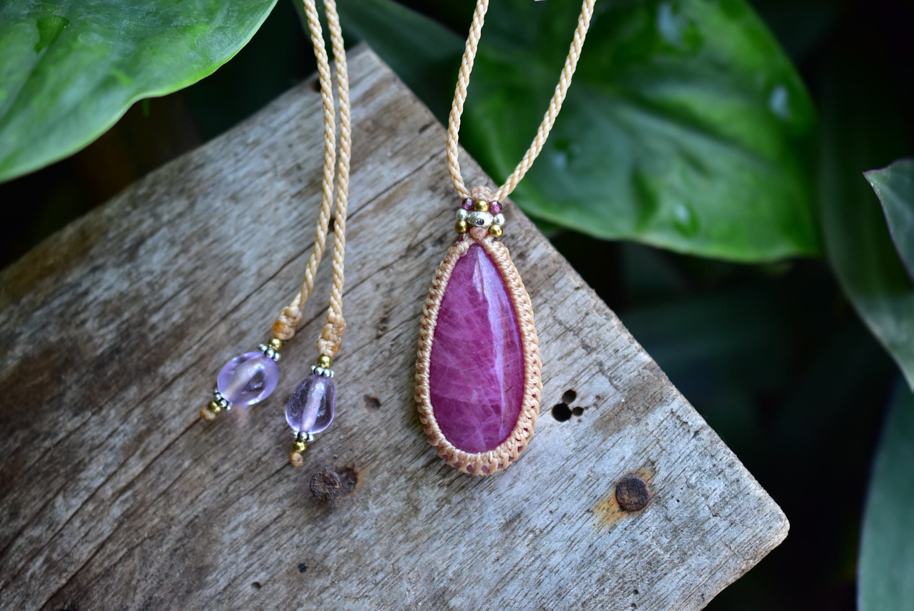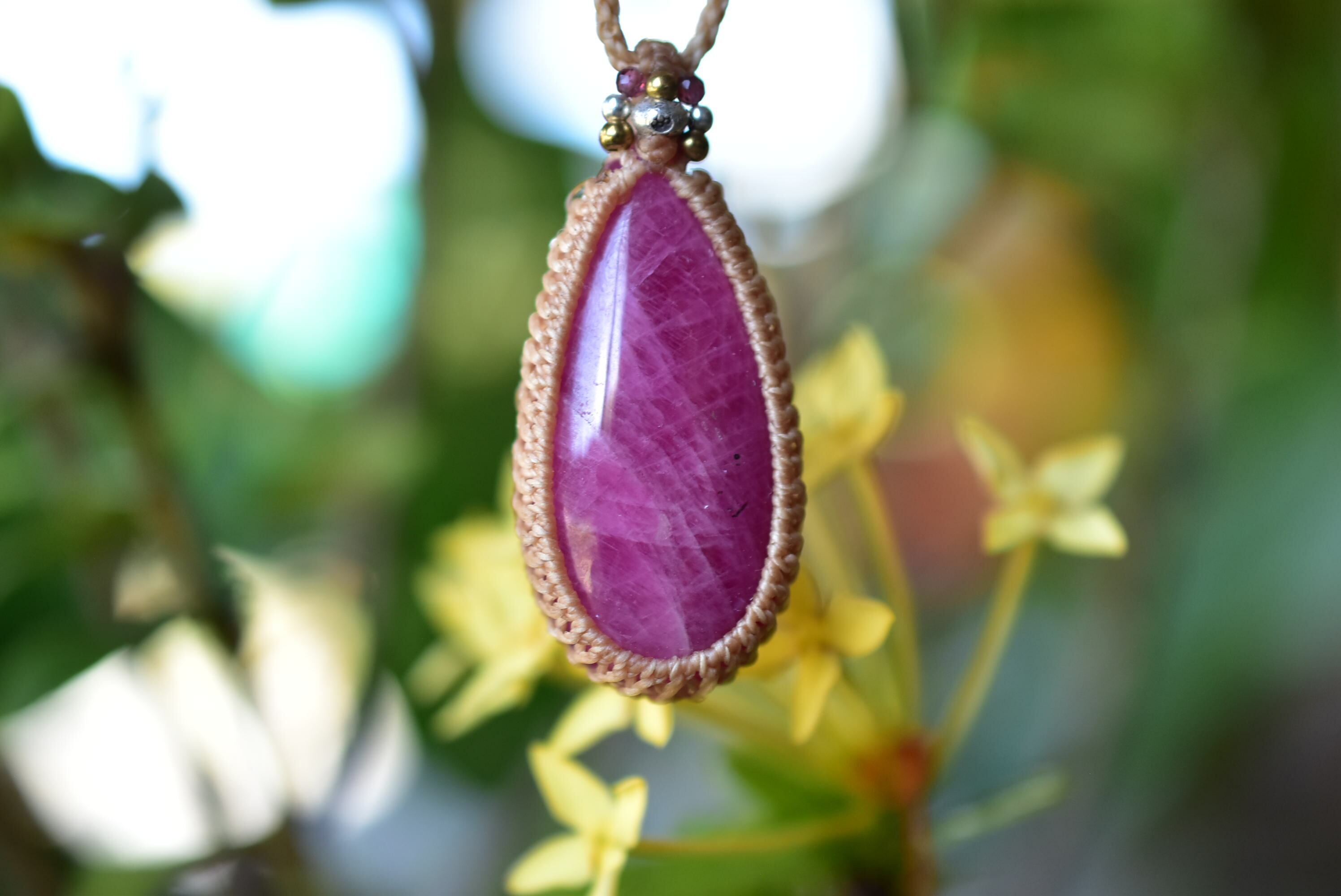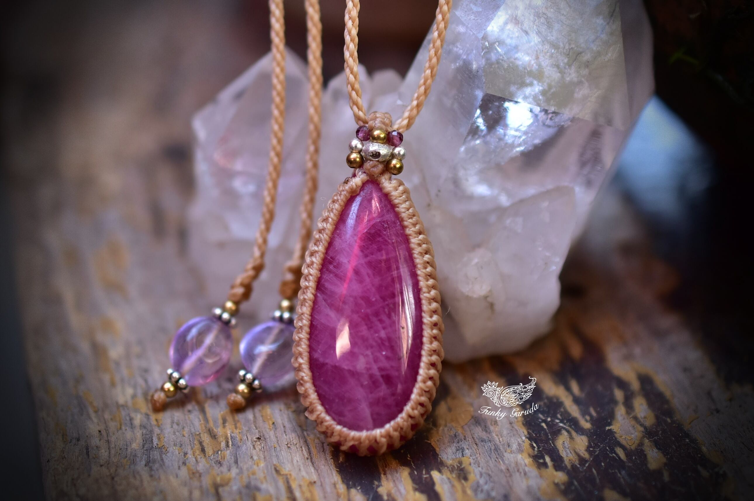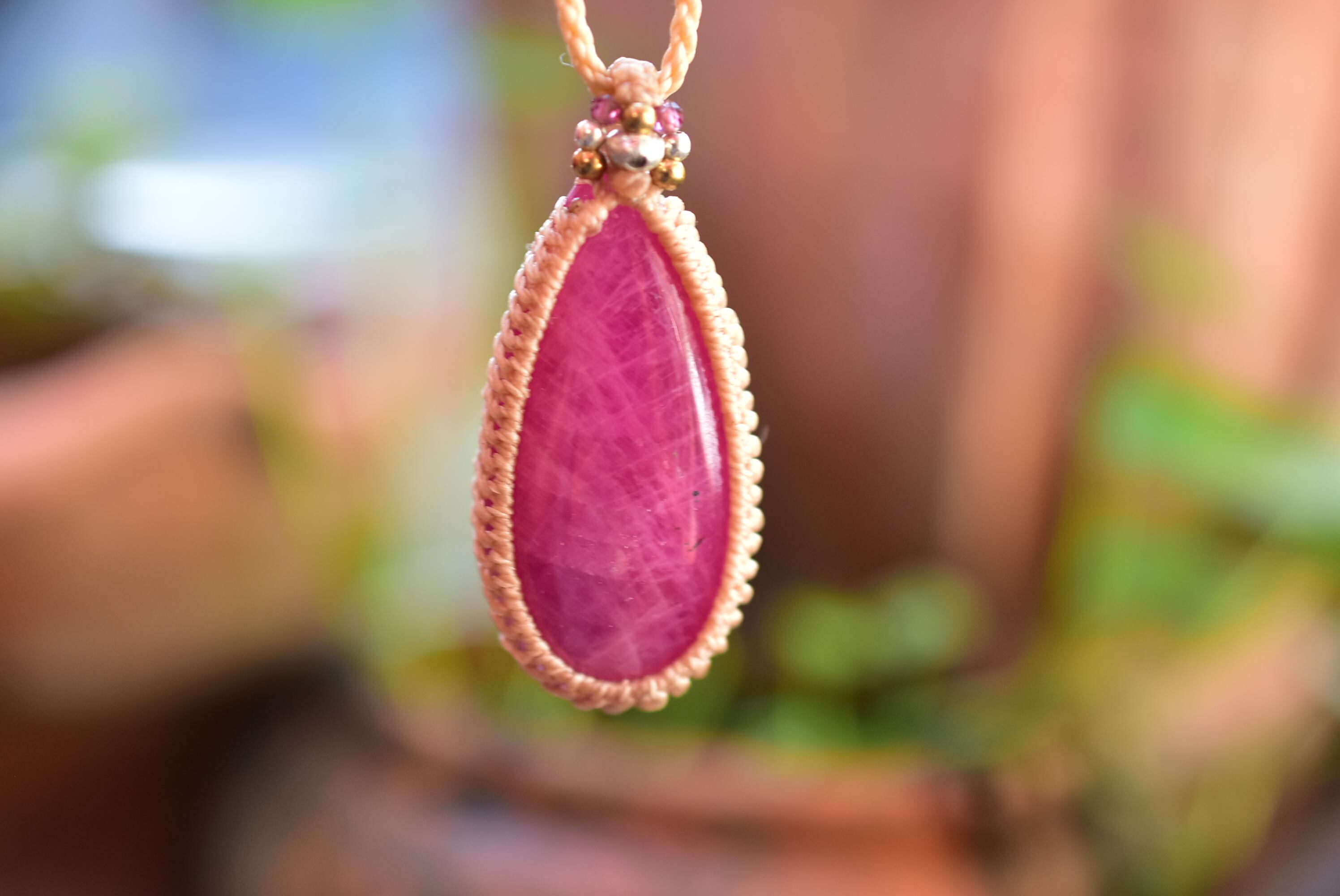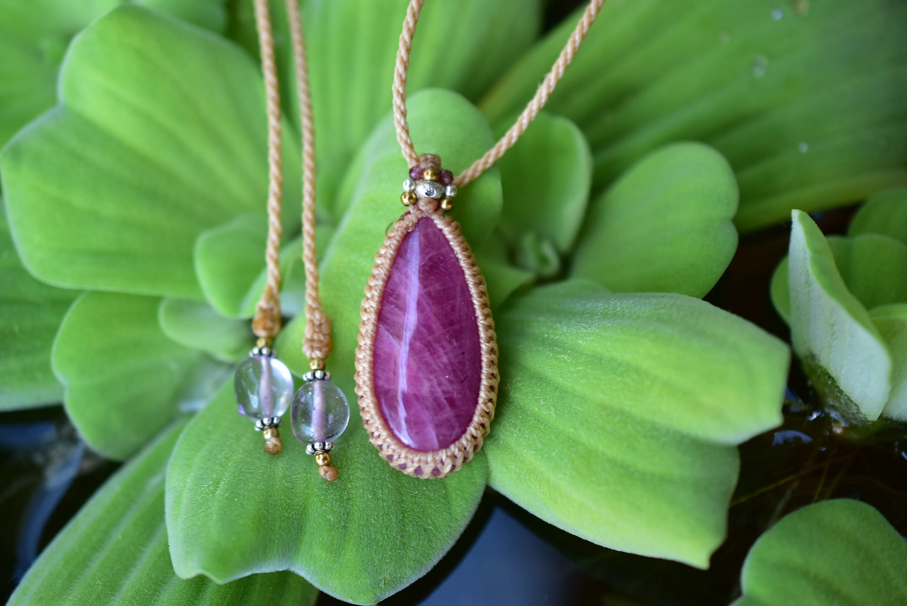 キャッツアイ★ピンクルビー マクラメペンダント37