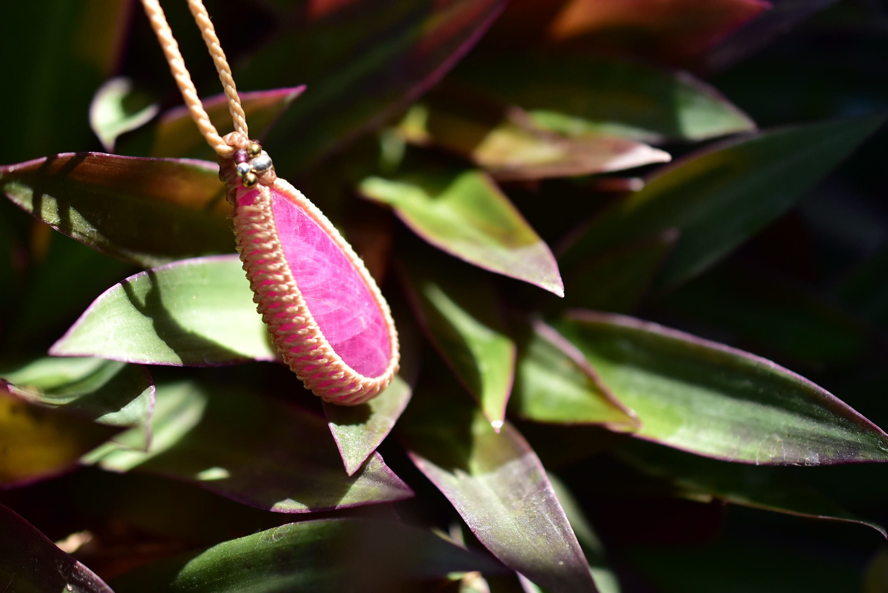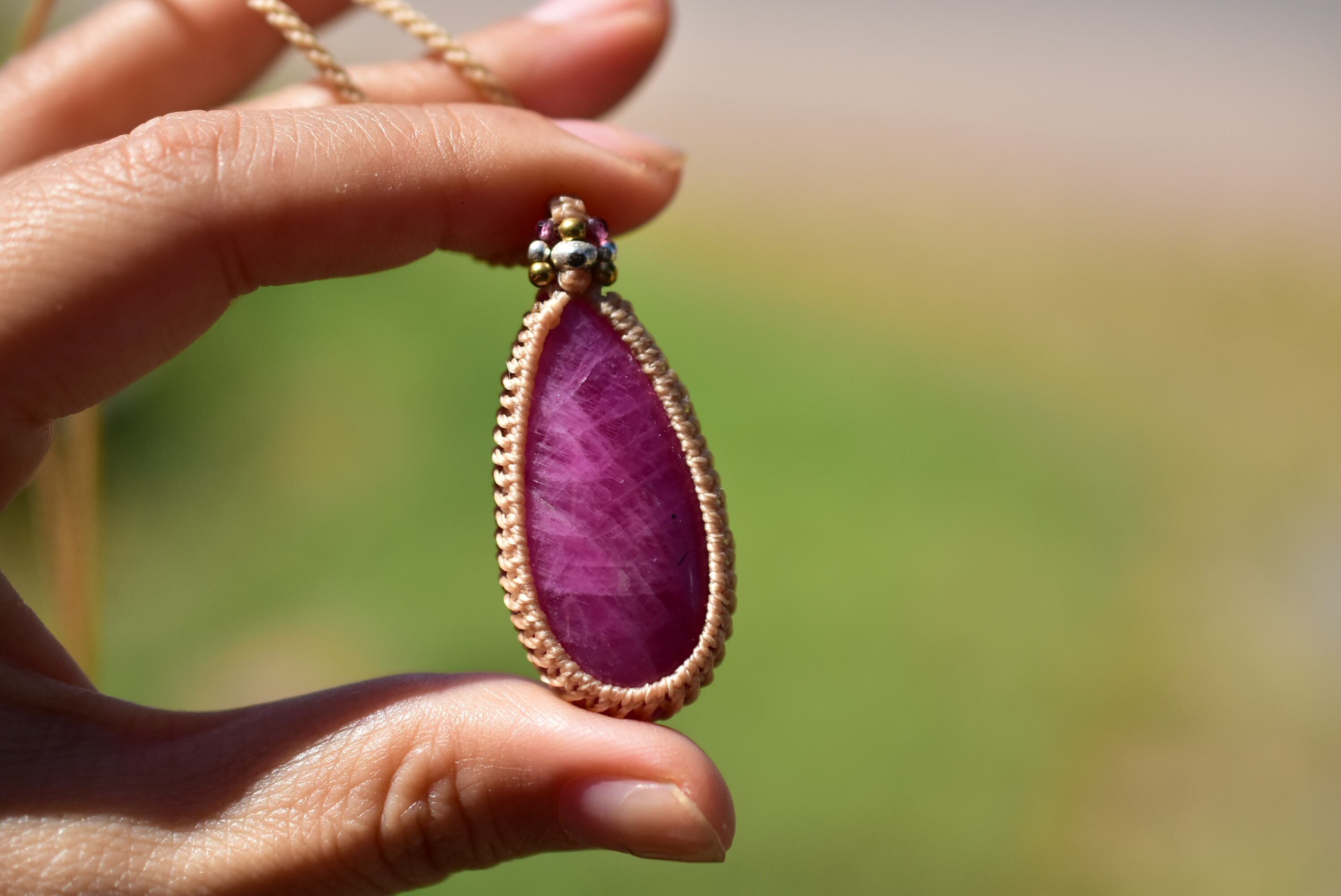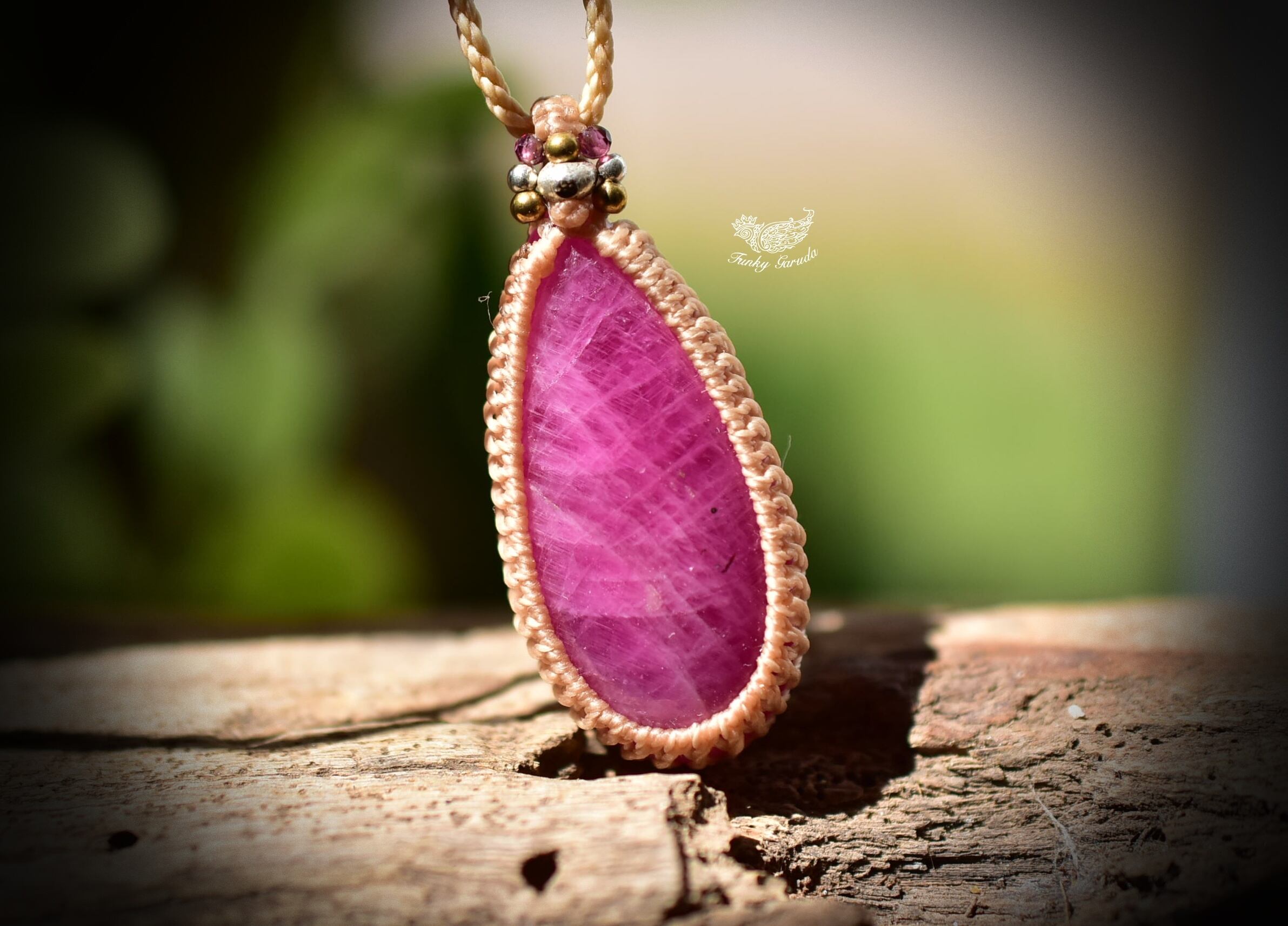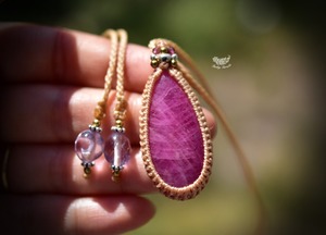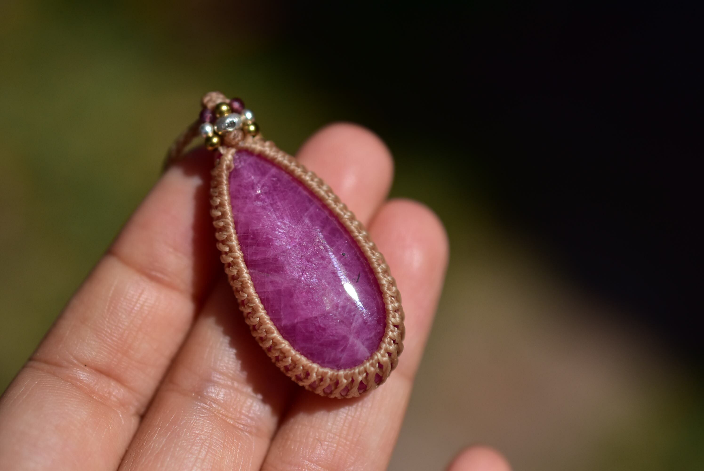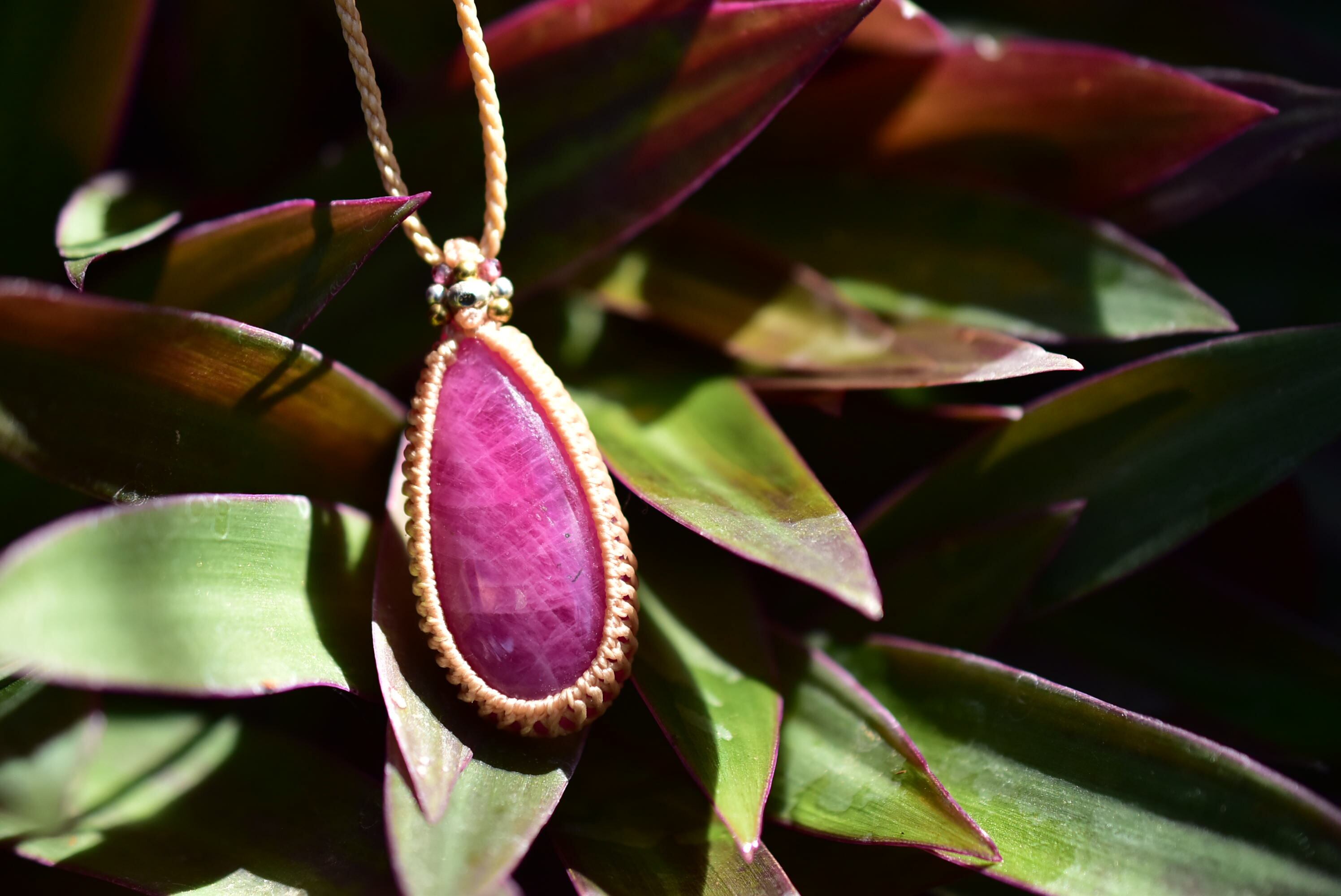 キャッツアイ★ピンクルビー マクラメペンダント37