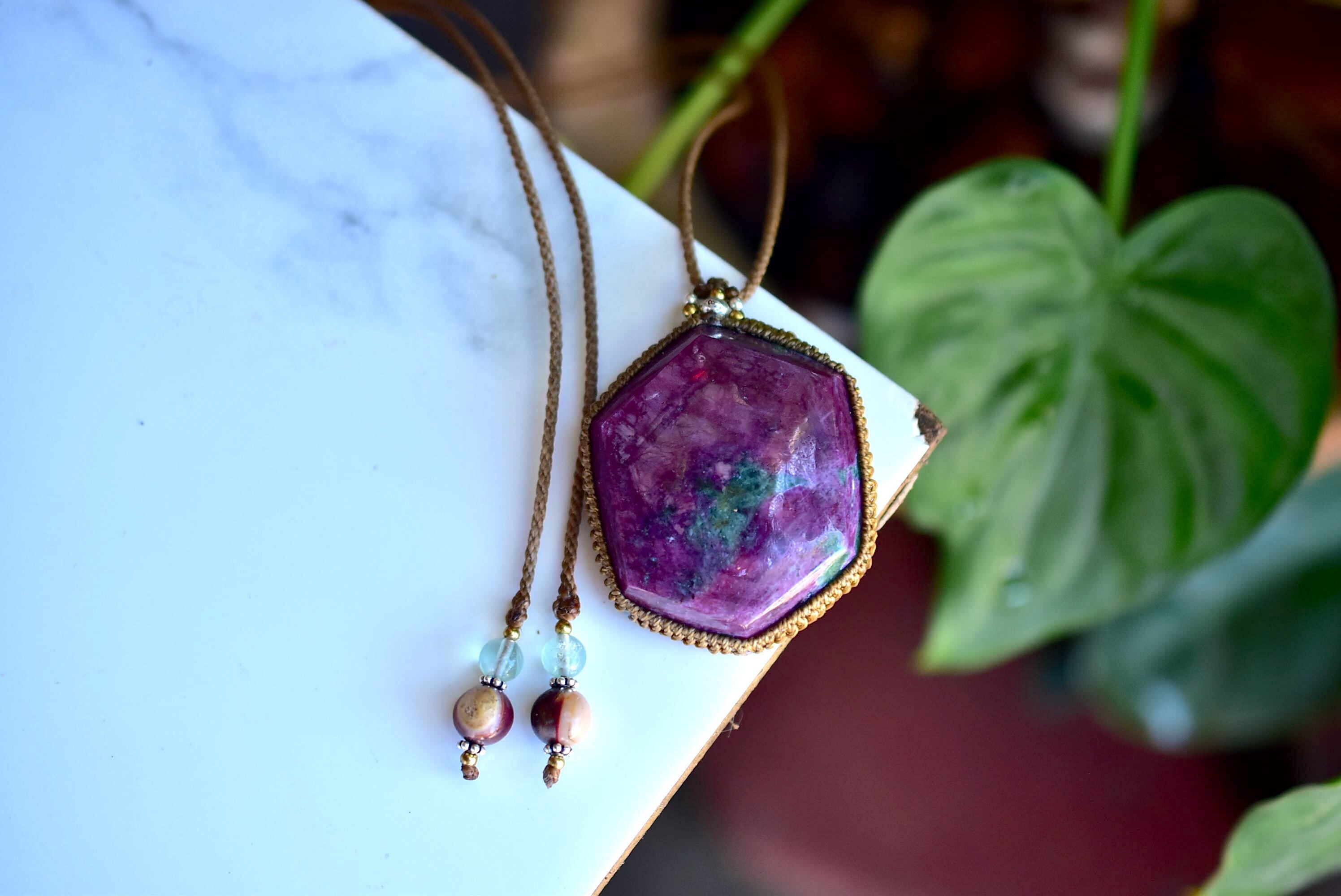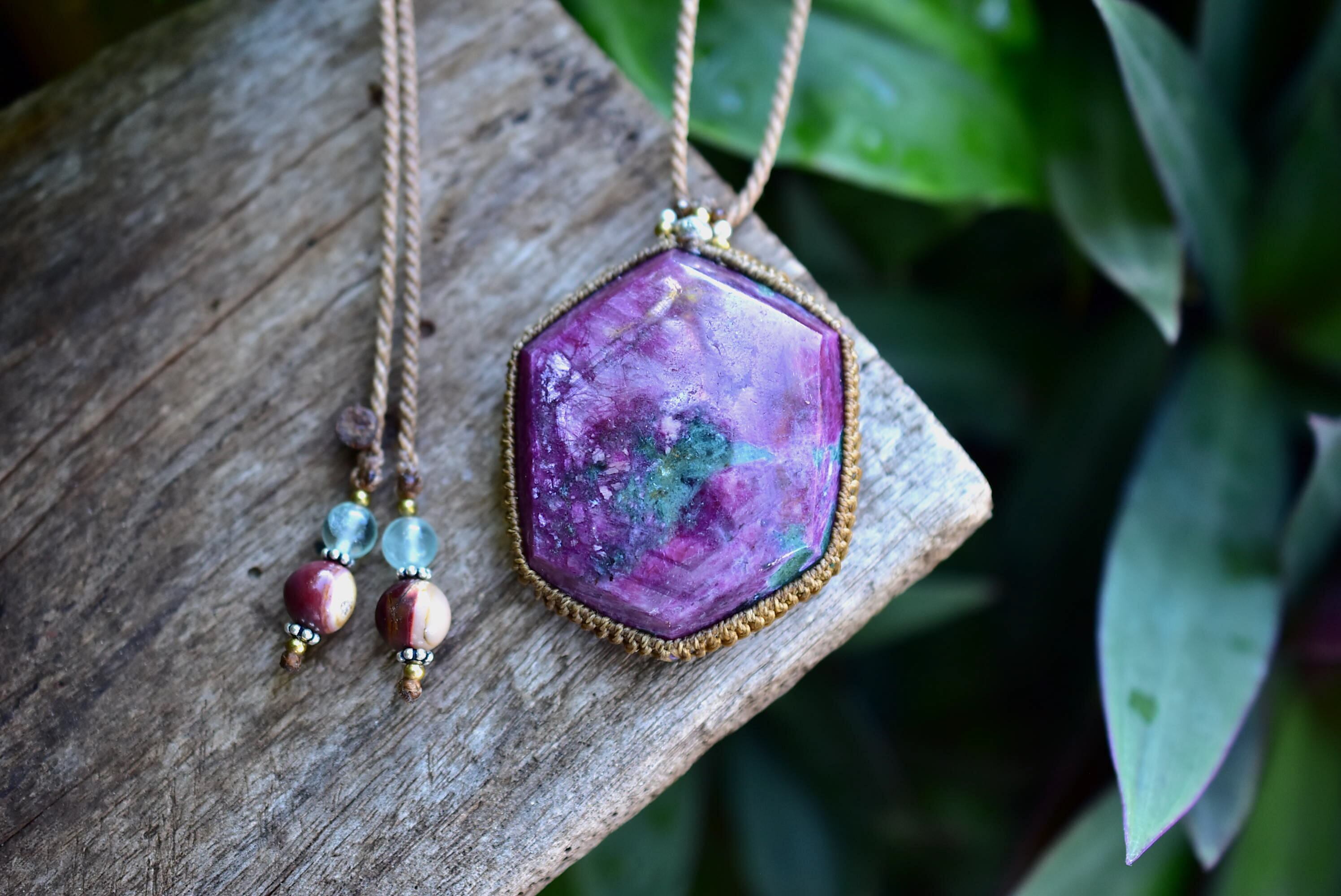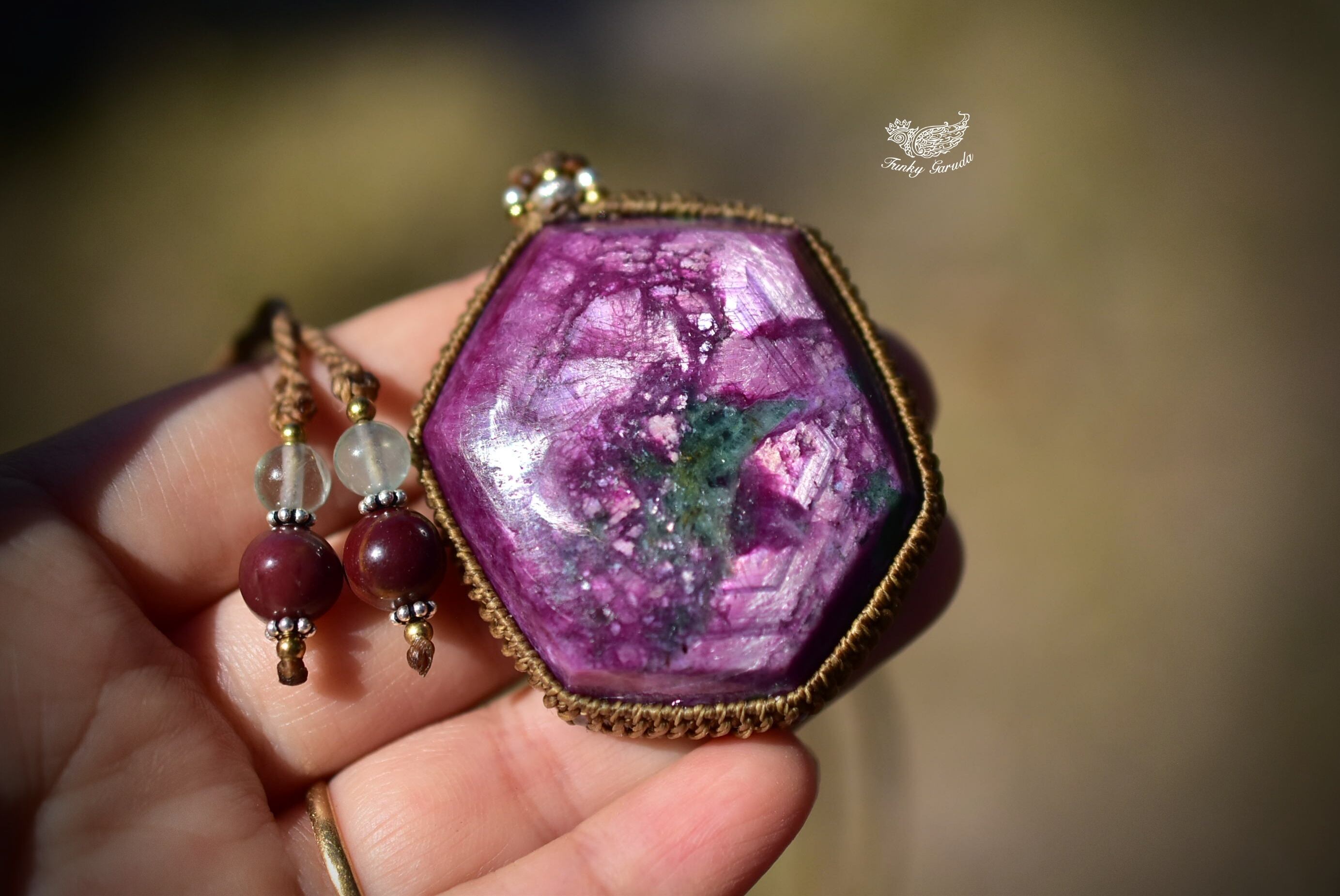 芸術コランダム★レア特大★ルビー マクラメペンダント 40