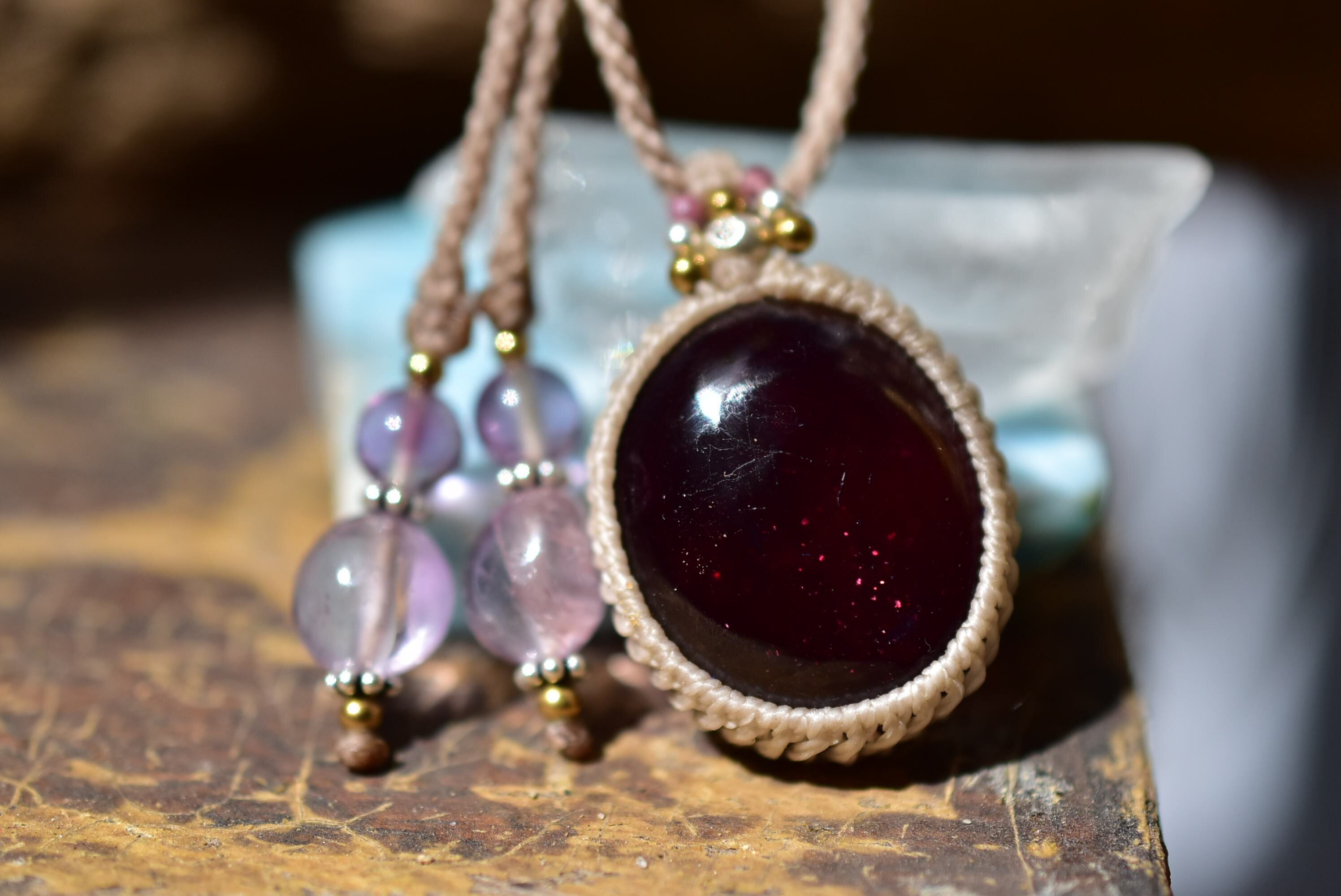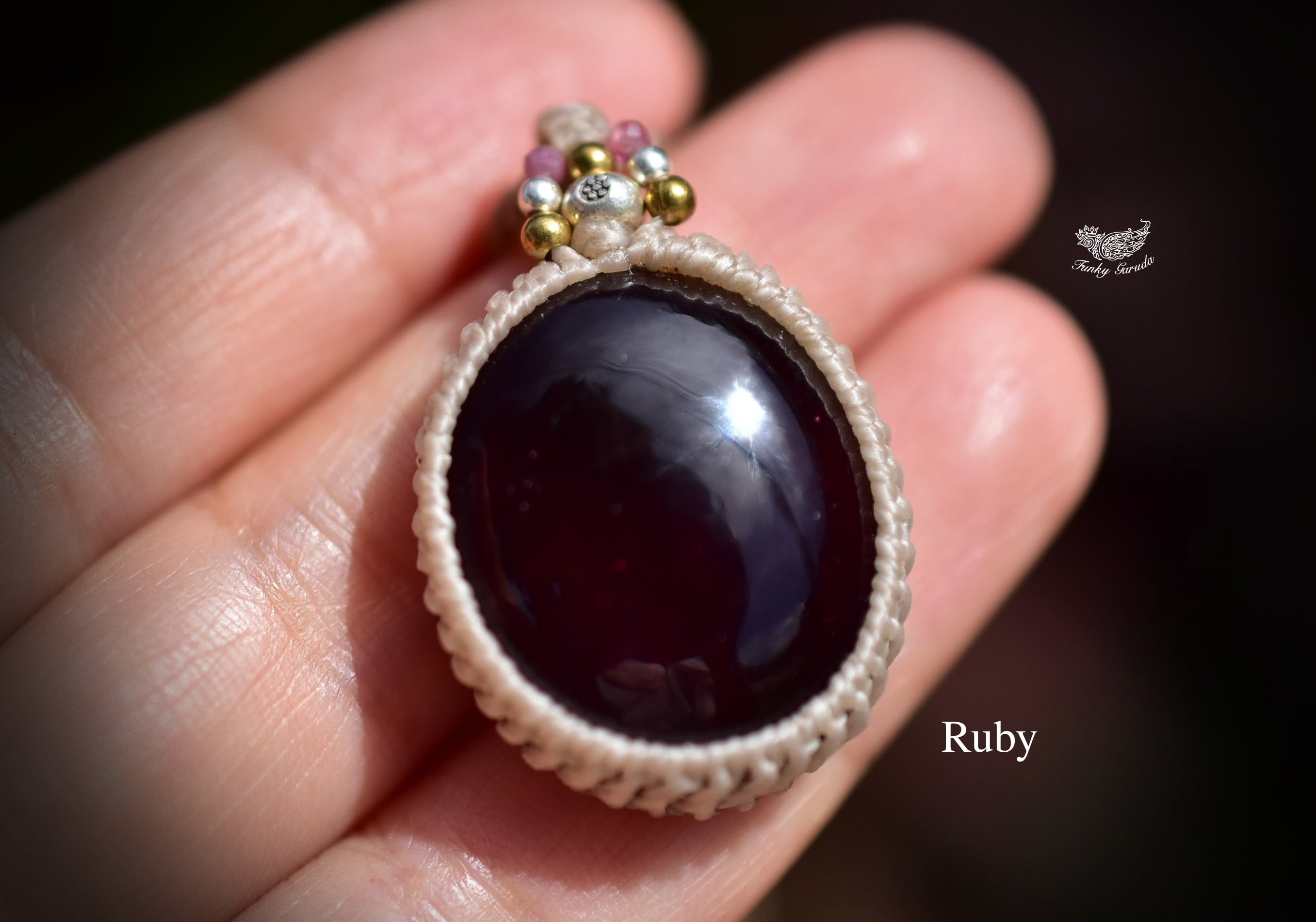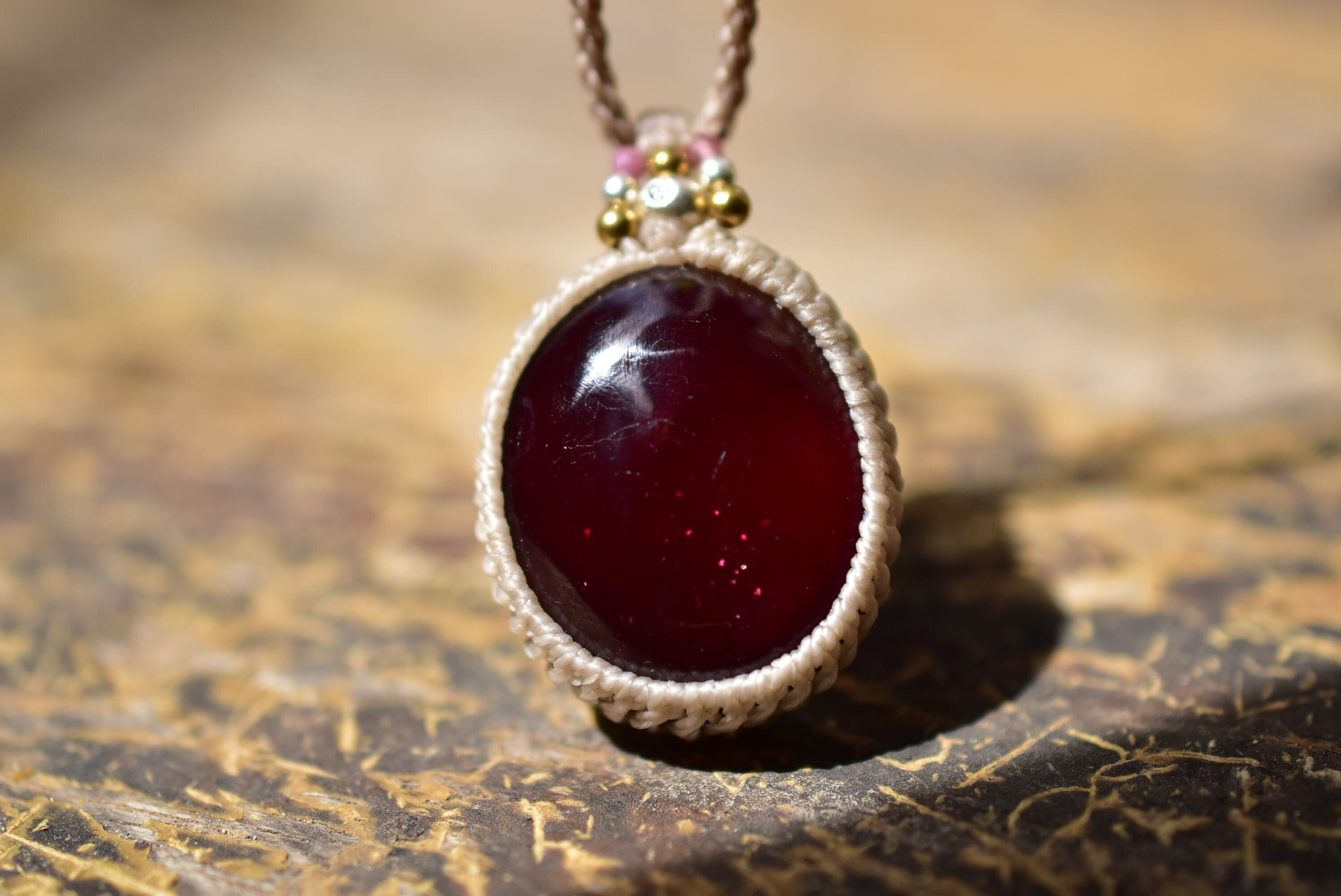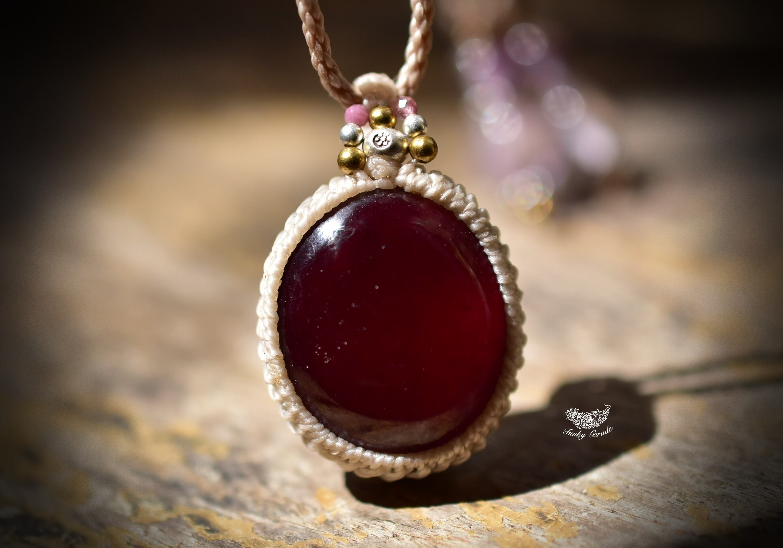 ぷるん高品質★ワインレッド★ディープルビー マクラメペンダント61