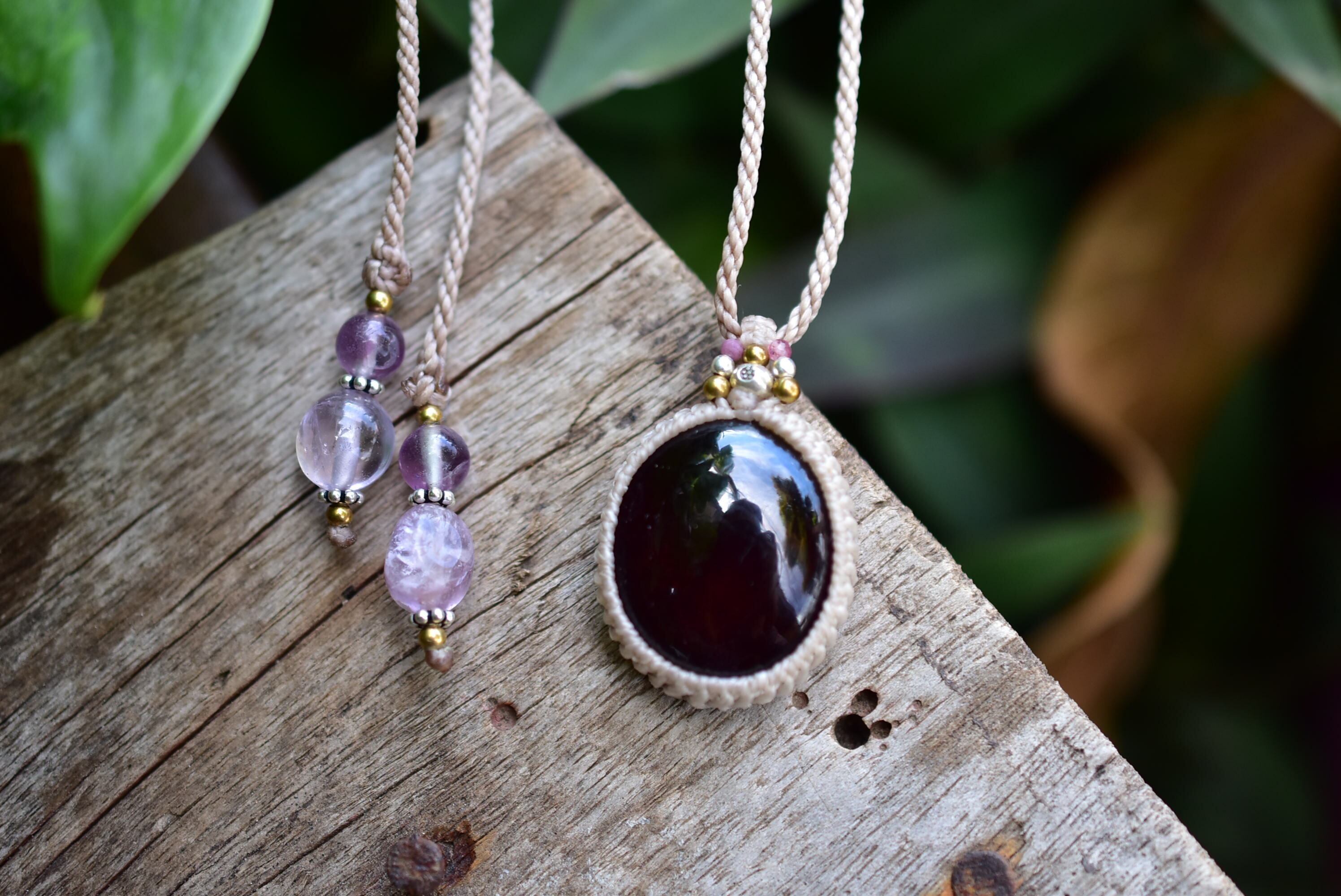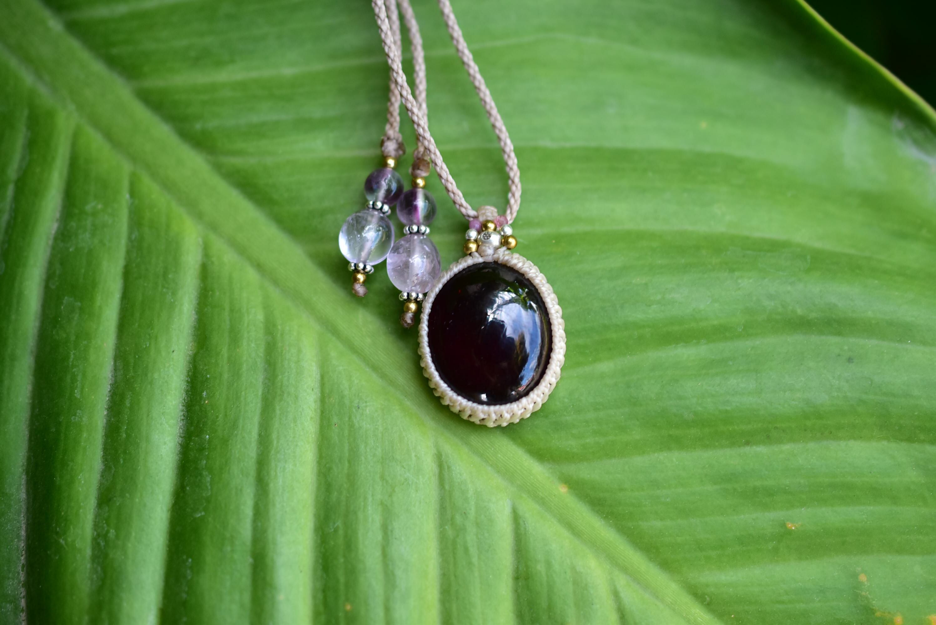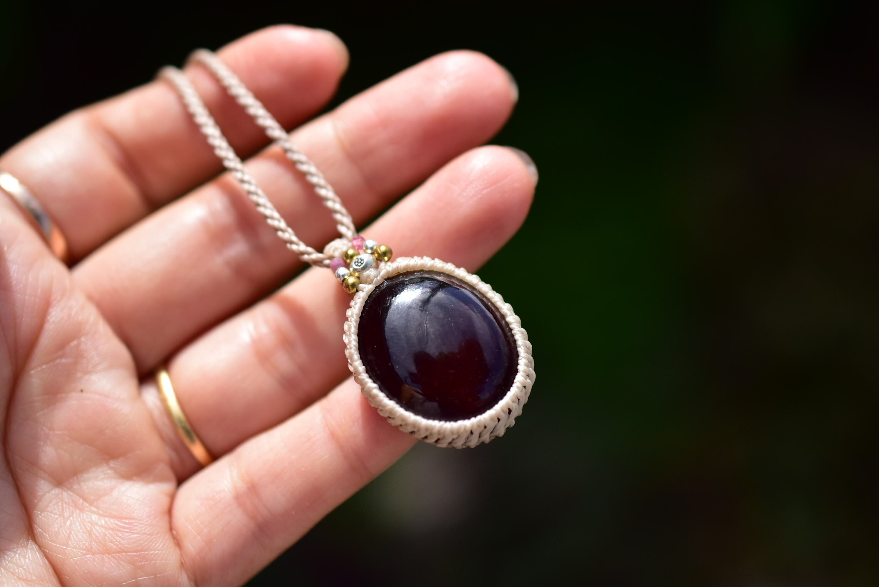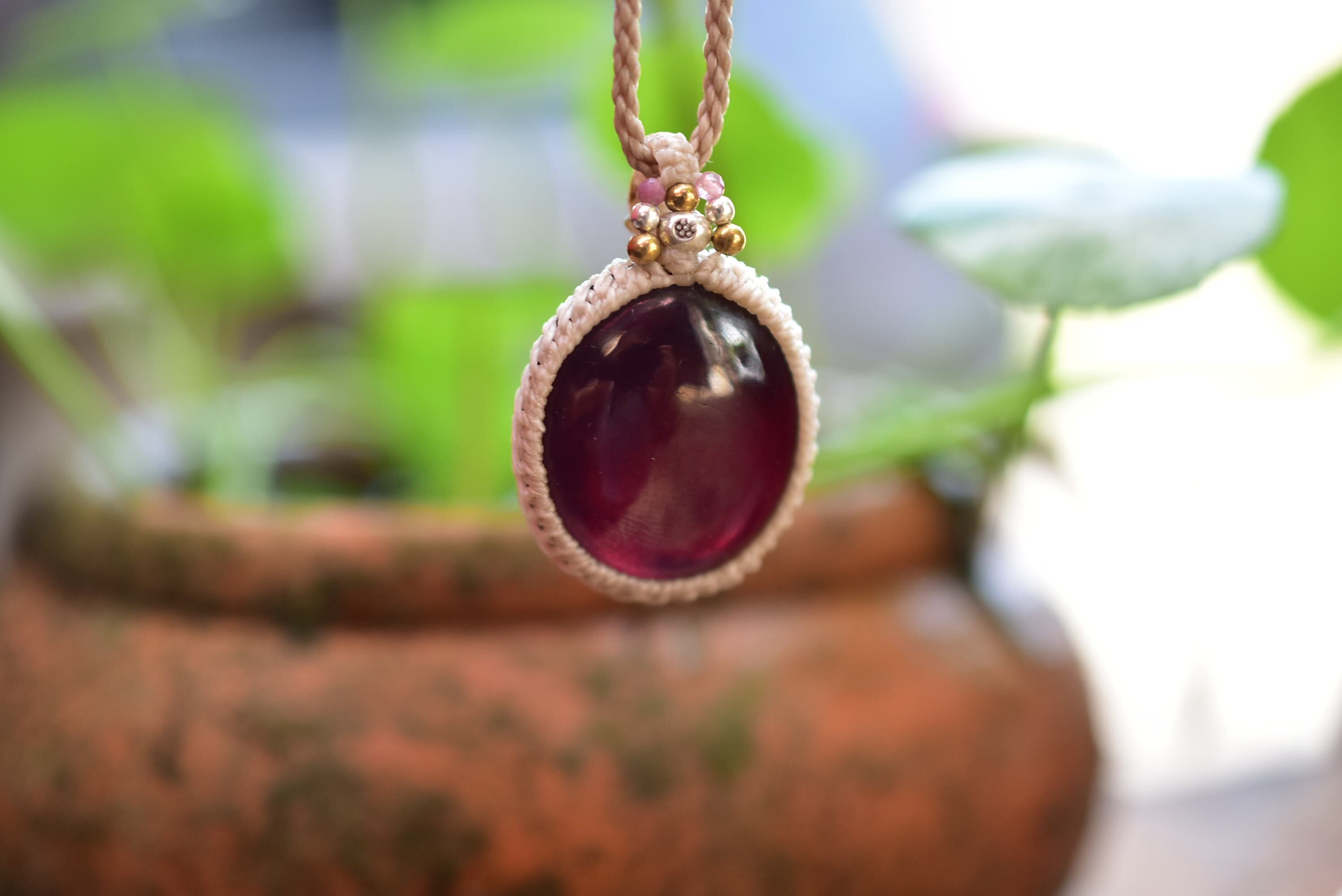 ぷるん高品質★ワインレッド★ディープルビー マクラメペンダント61