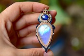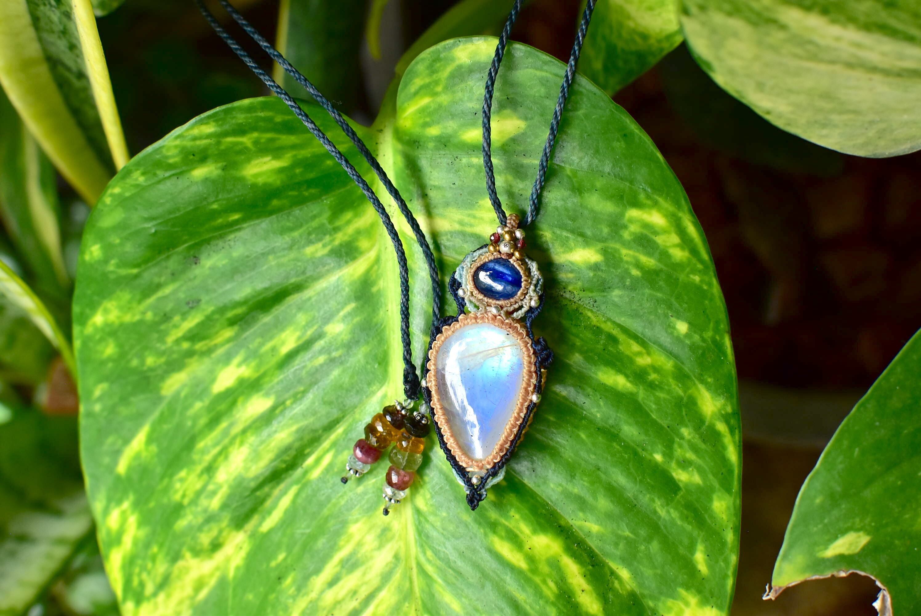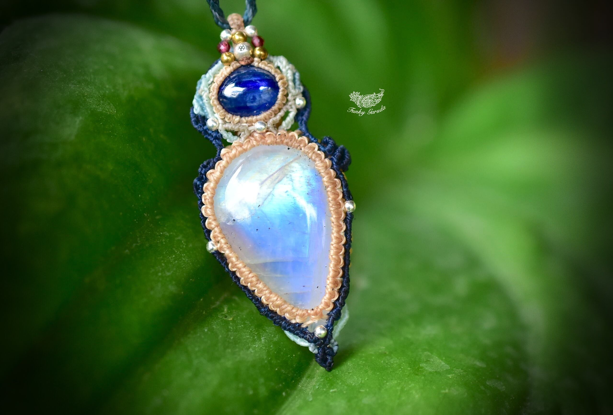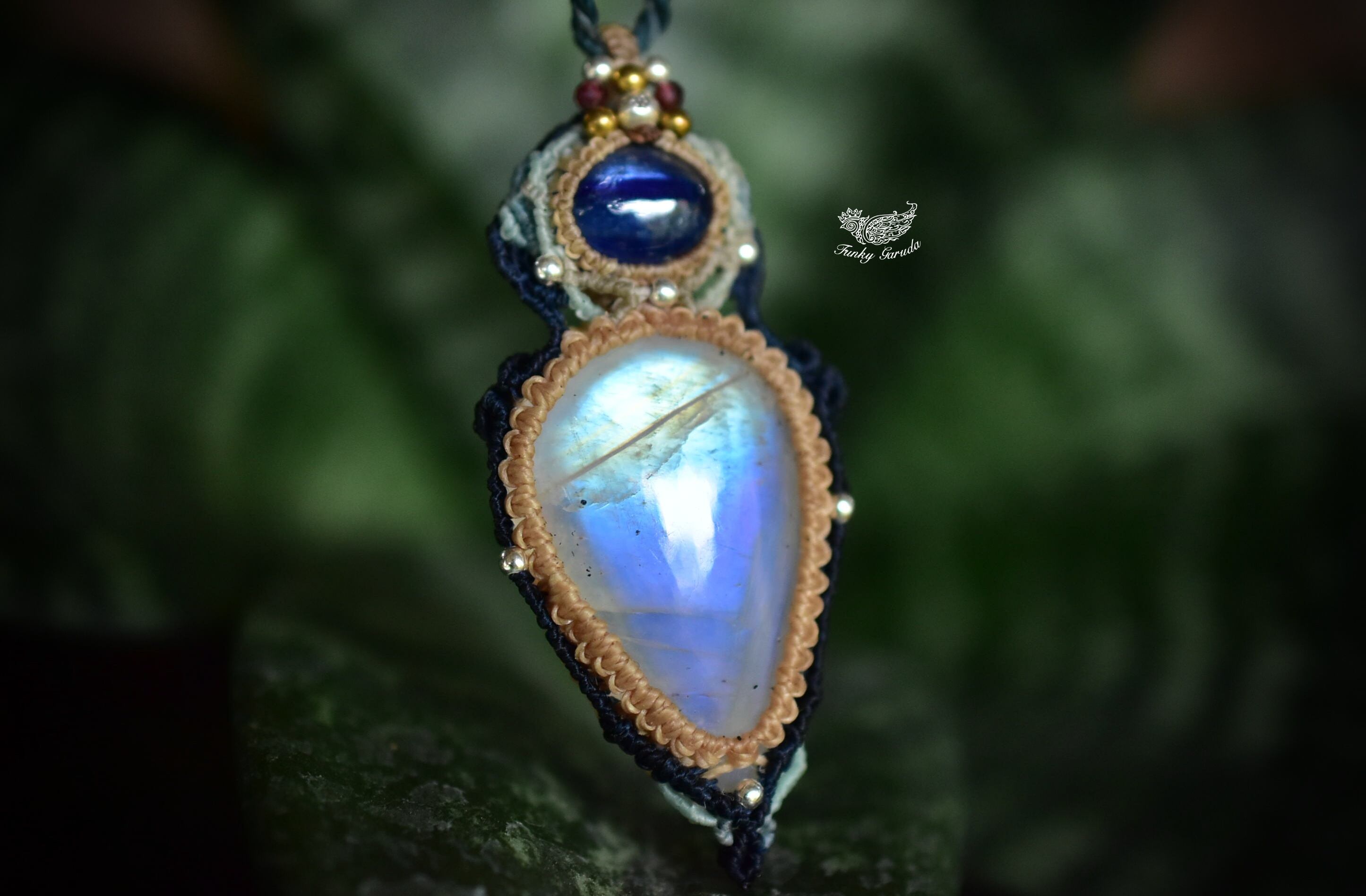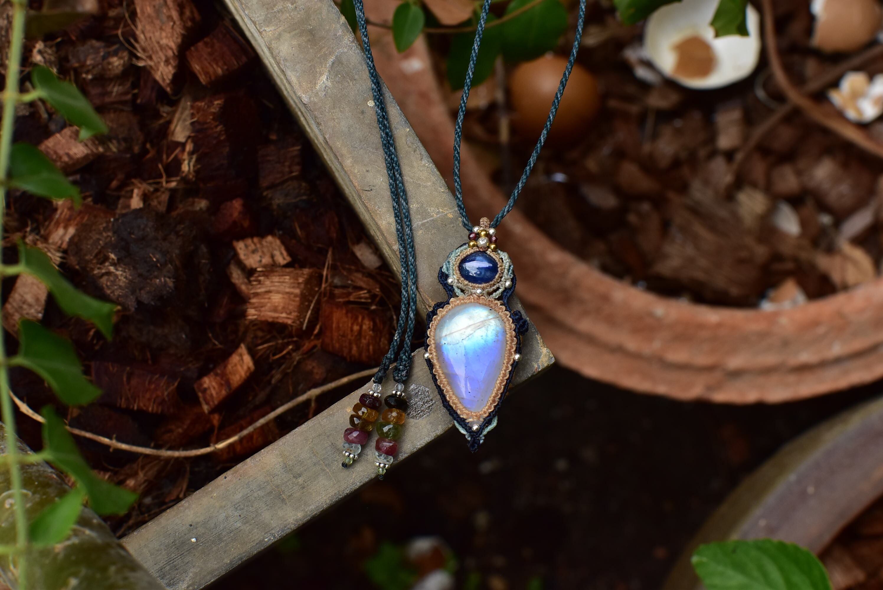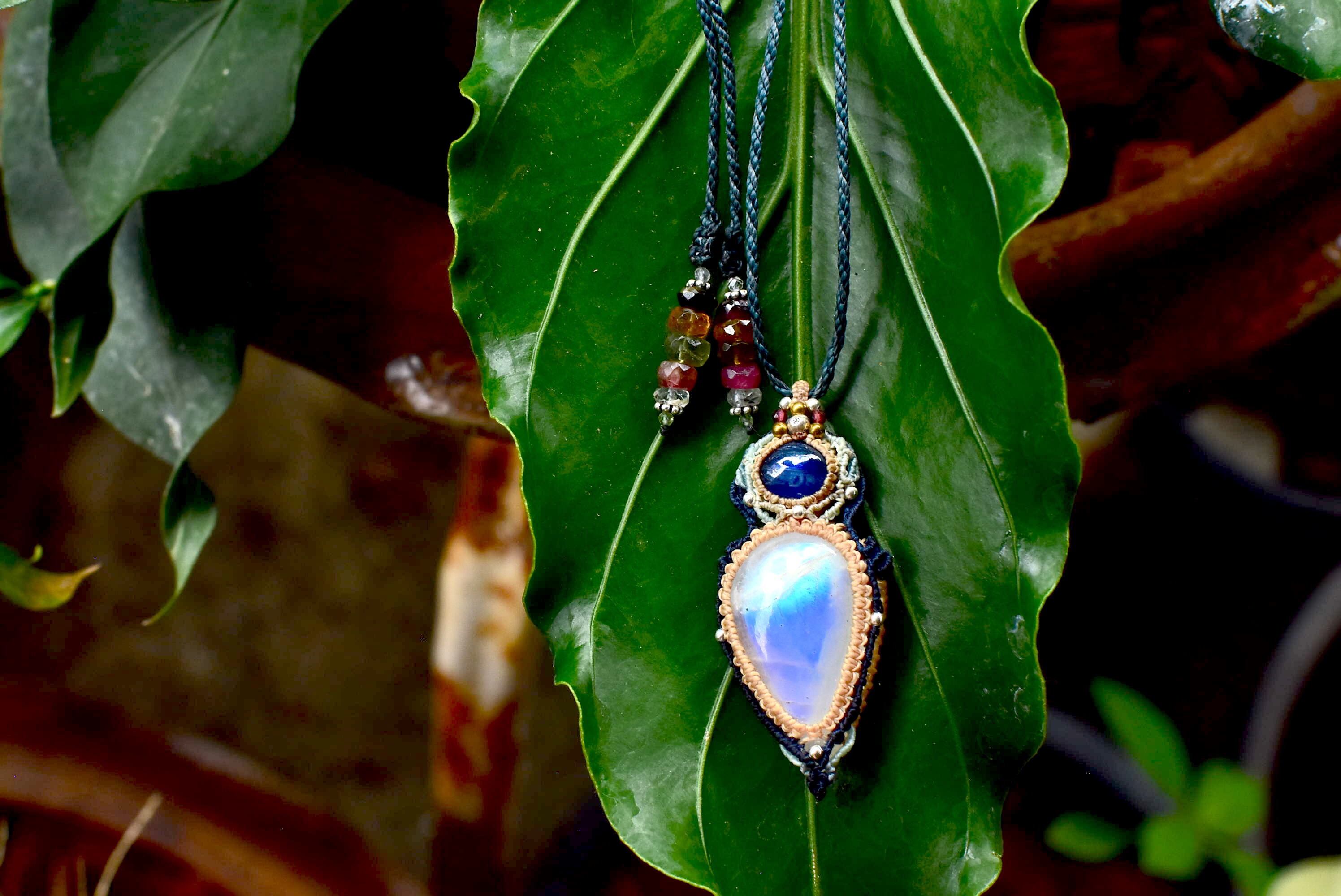 蒼き虹★ロイヤルレインボームーンストーンマクラメペンダント66