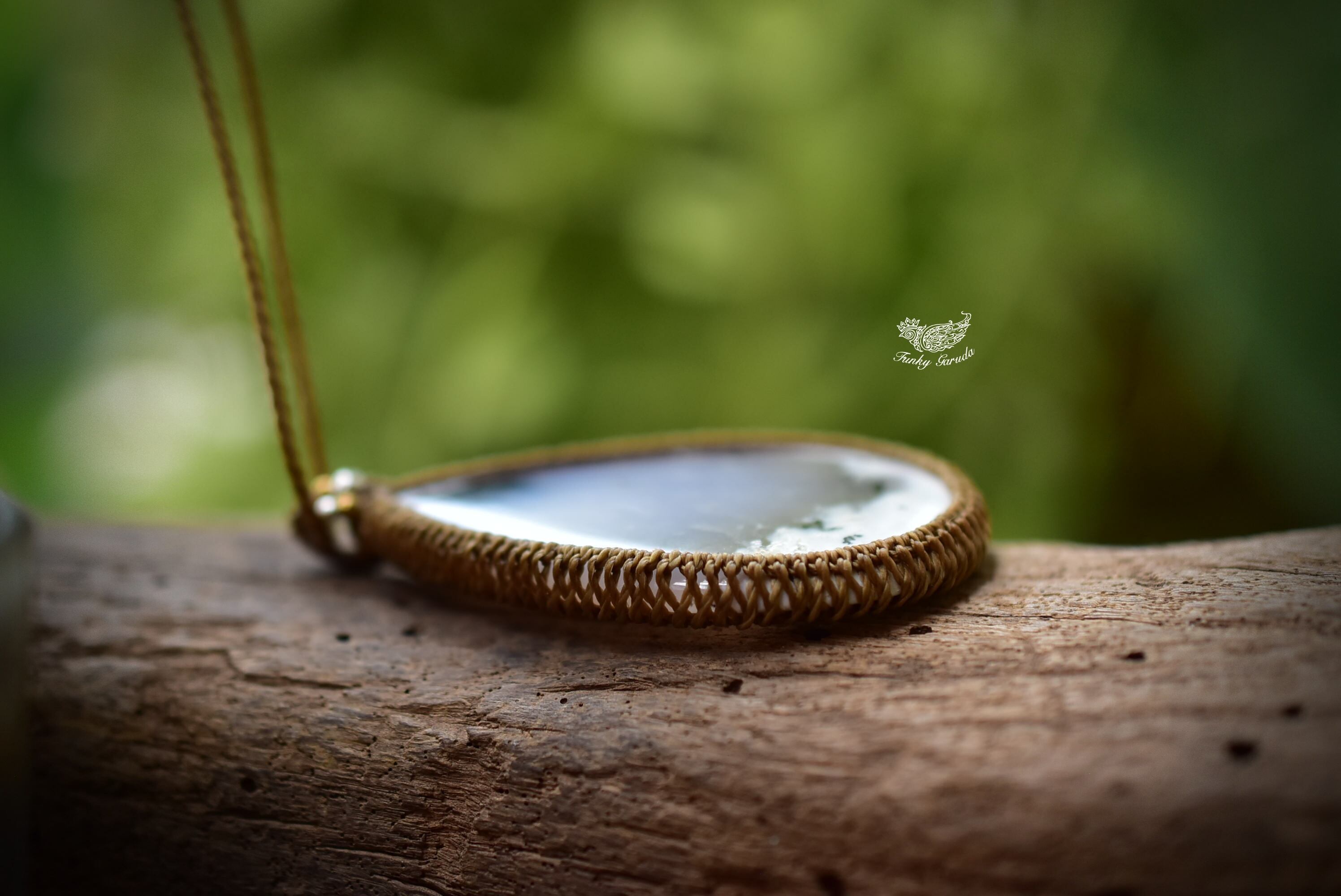 ◆このたびはキナリ色の蝋引き糸を使用しマクラメ編み装飾を施しました。