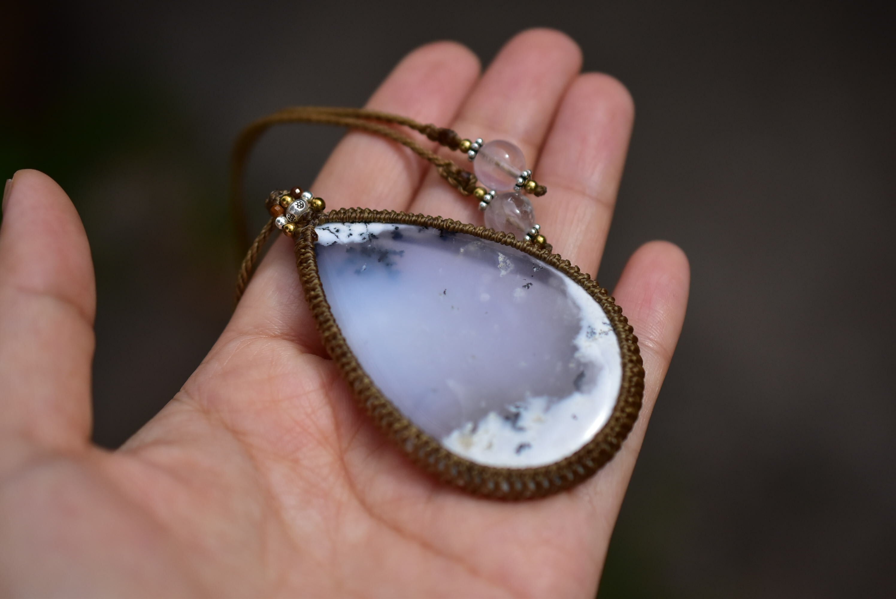 雪化粧の山★大粒★デンドライトオパール マクラメペンダント69
