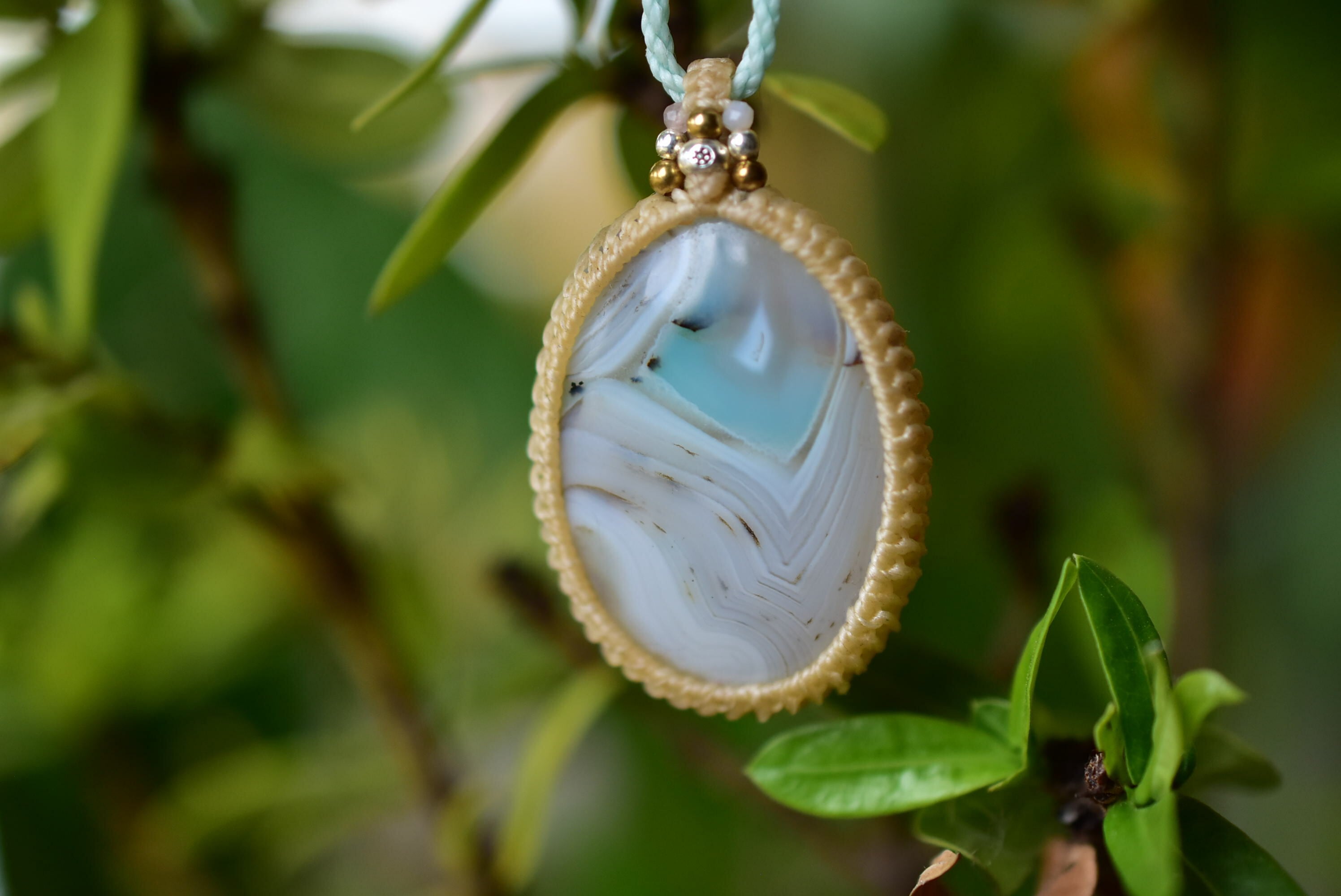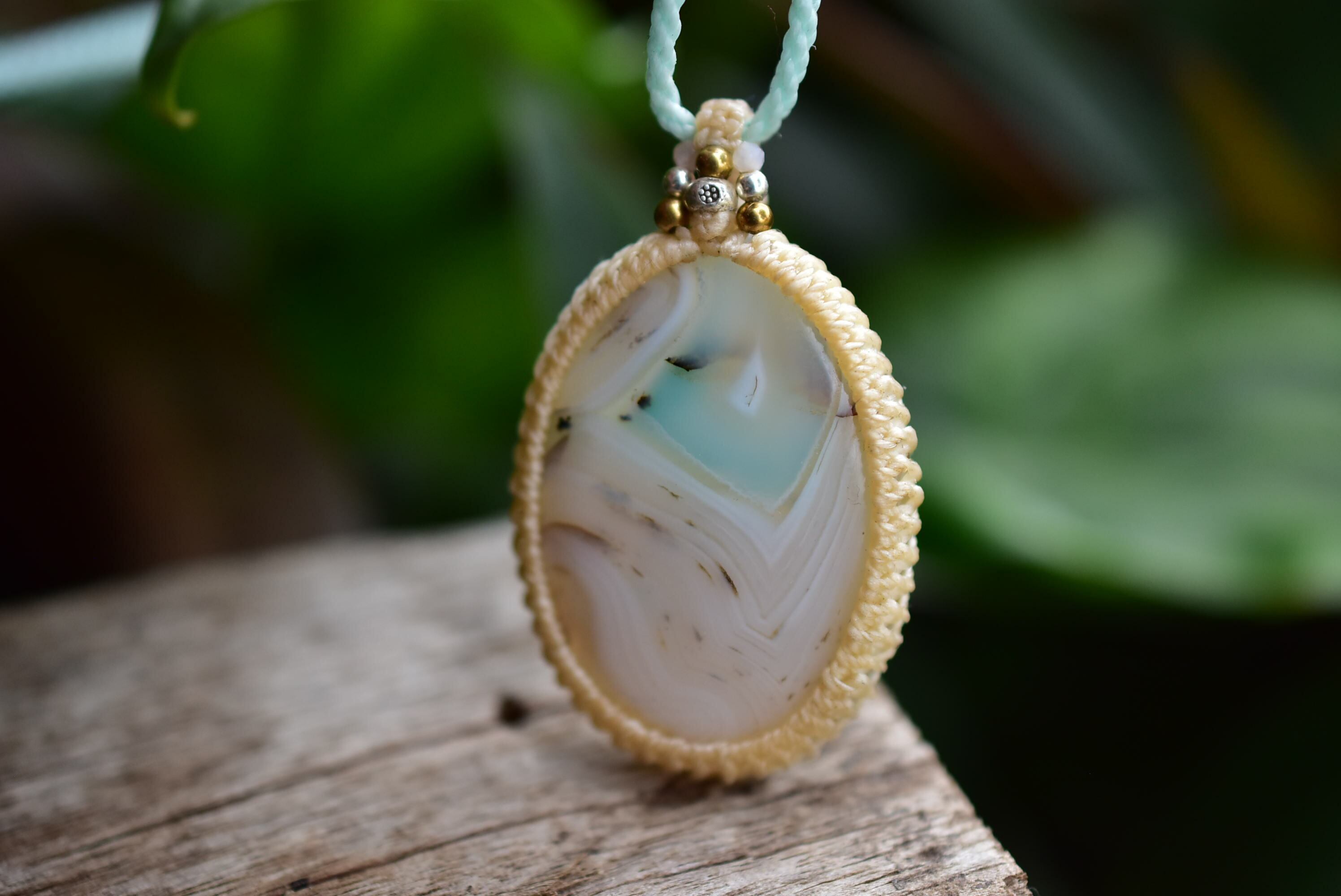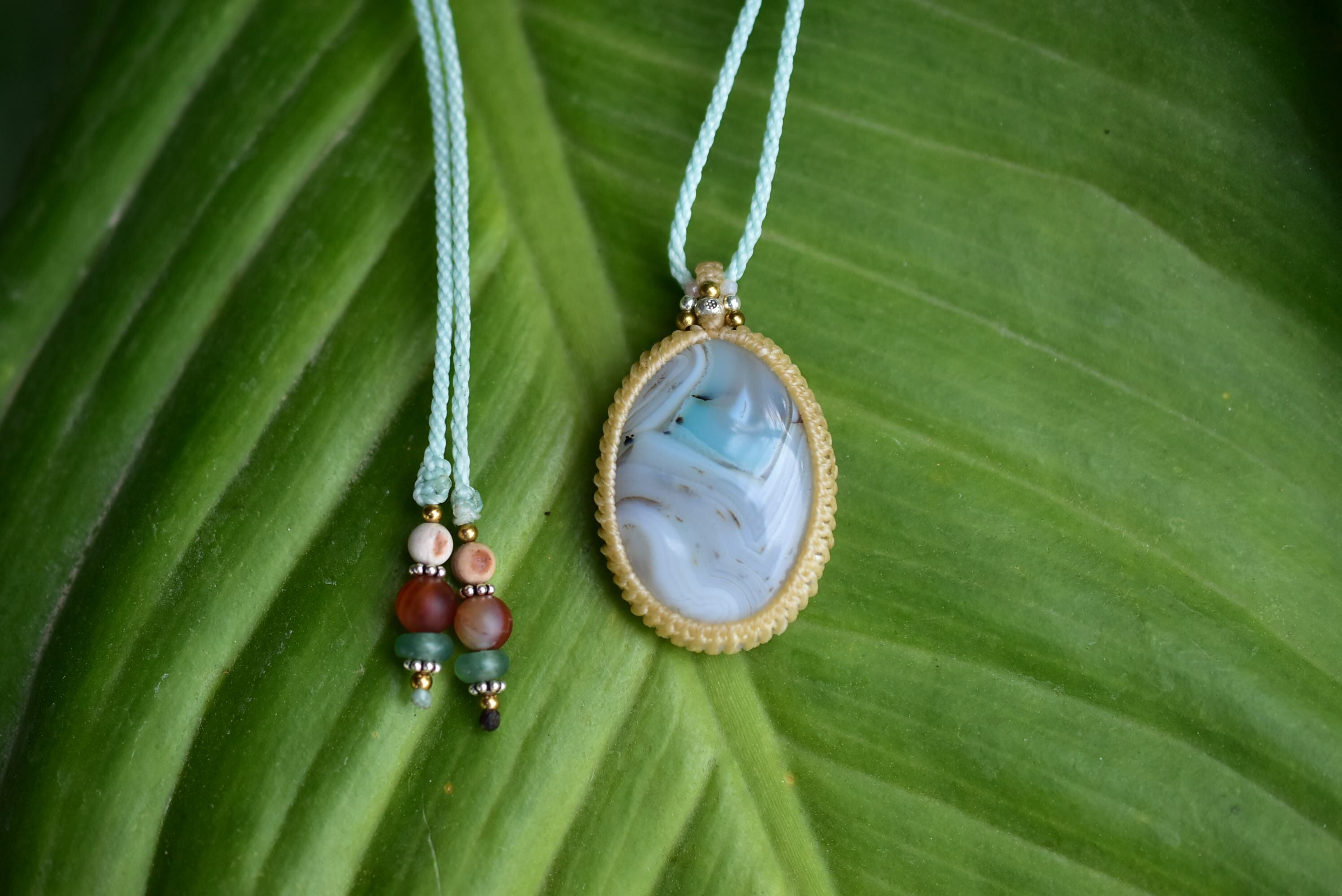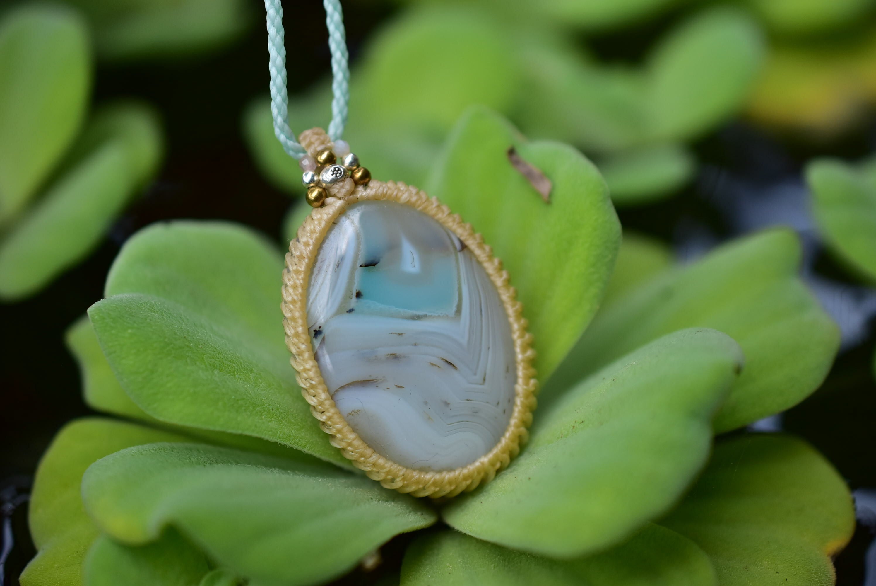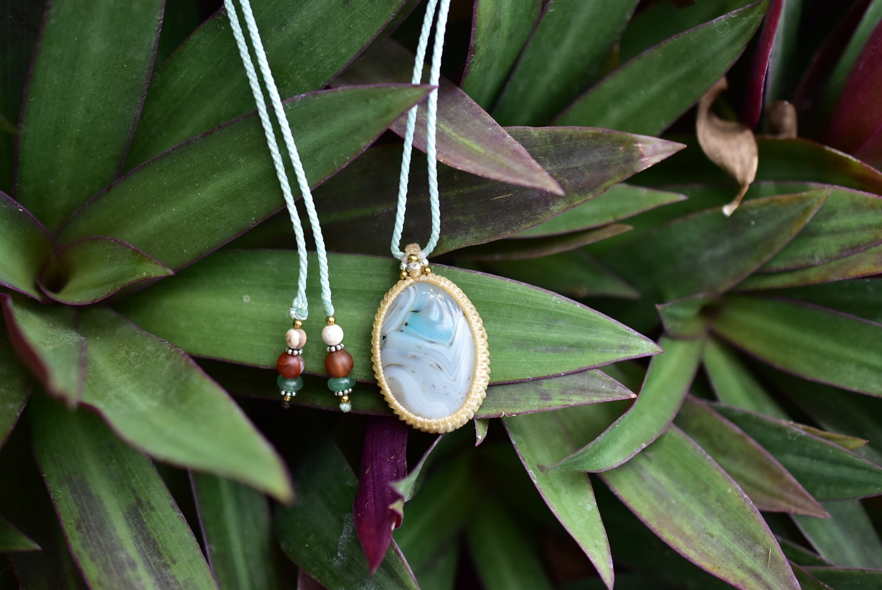 ホワイトグリーン★瑪瑙★グリーンアゲート マクラメペンダント 68