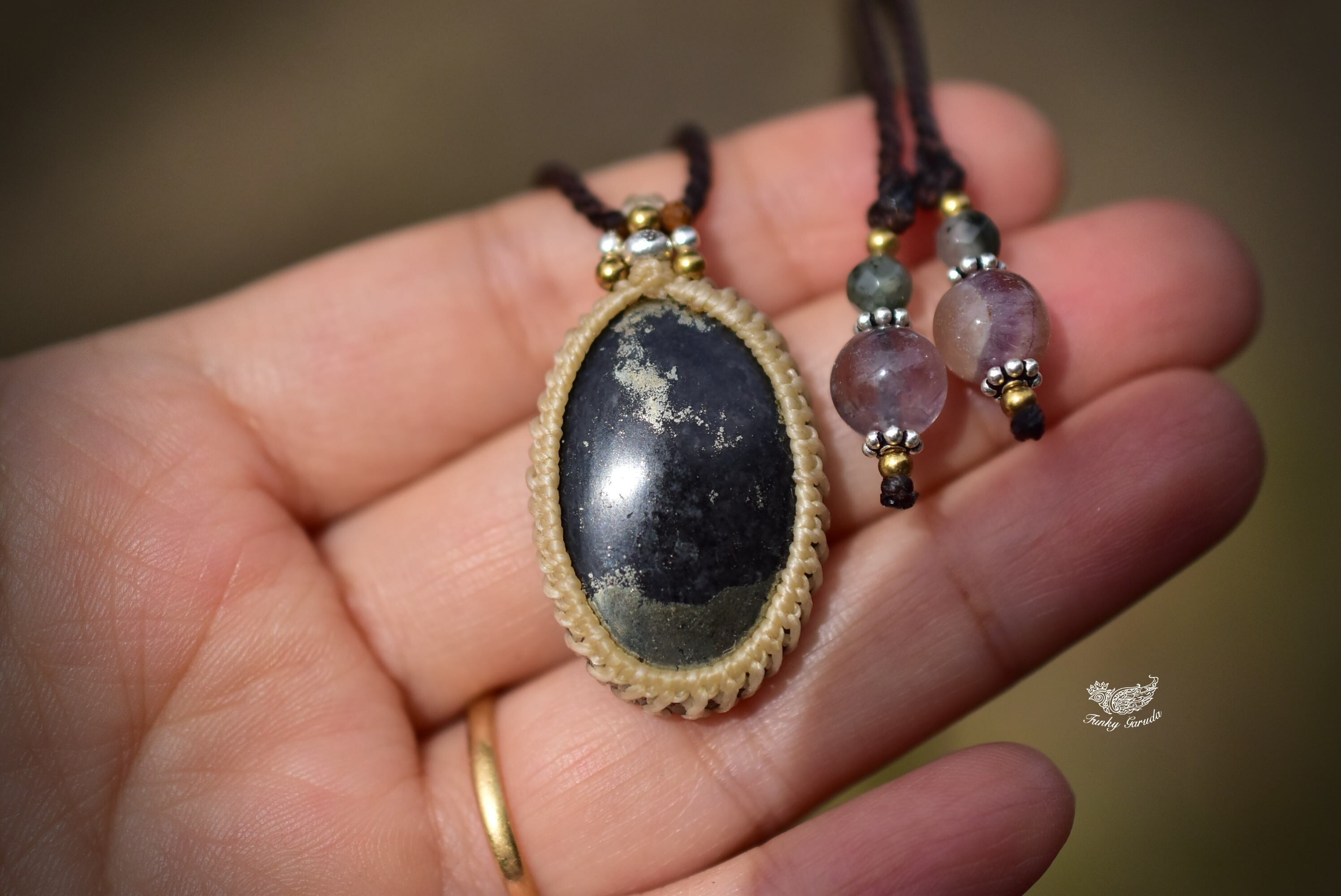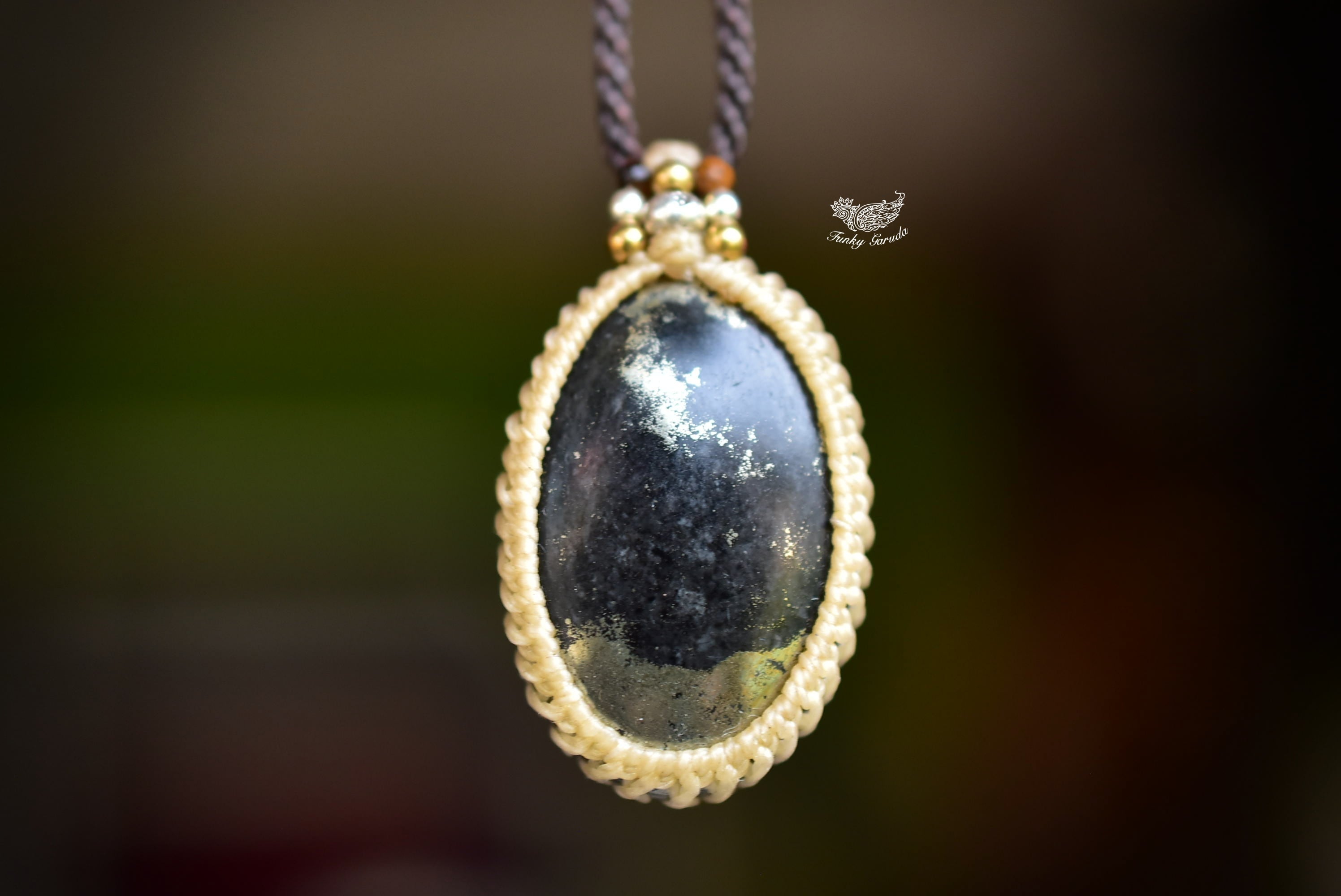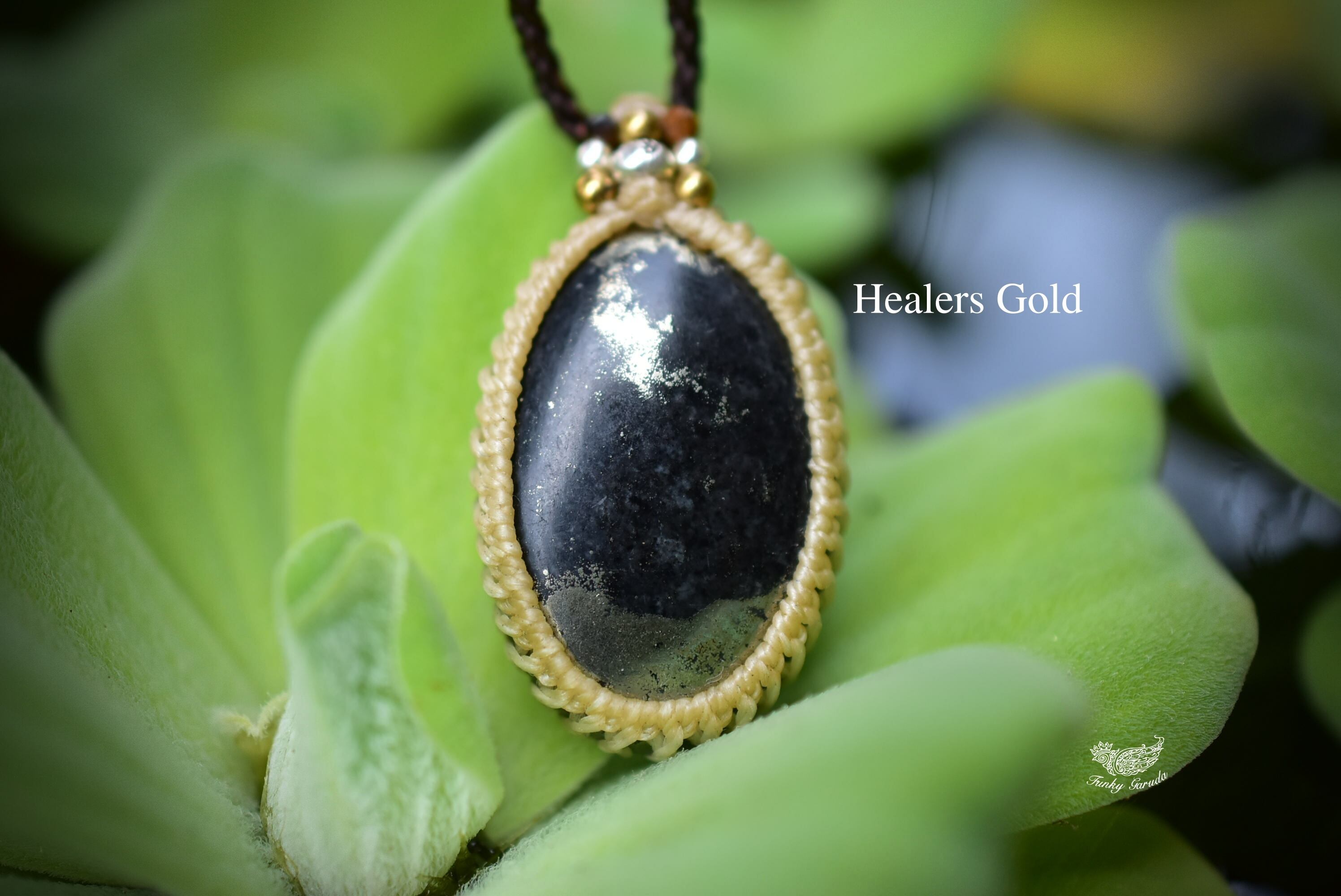 ゴールドブラック★ヒーラーズゴールド マクラメペンダント71