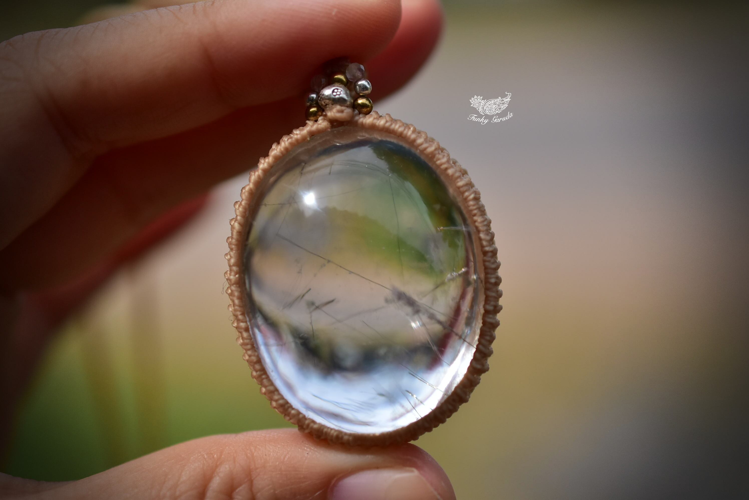 大玉でボリュームたっぷり、透明度抜群の水晶の中に、針状の鉱物結晶(ルチル)が閉じ込められた神秘的なガーデンクォーツ