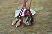 ◆このたびはボルドー色の蝋引き糸を使用しマクラメ編み装飾を施しました。