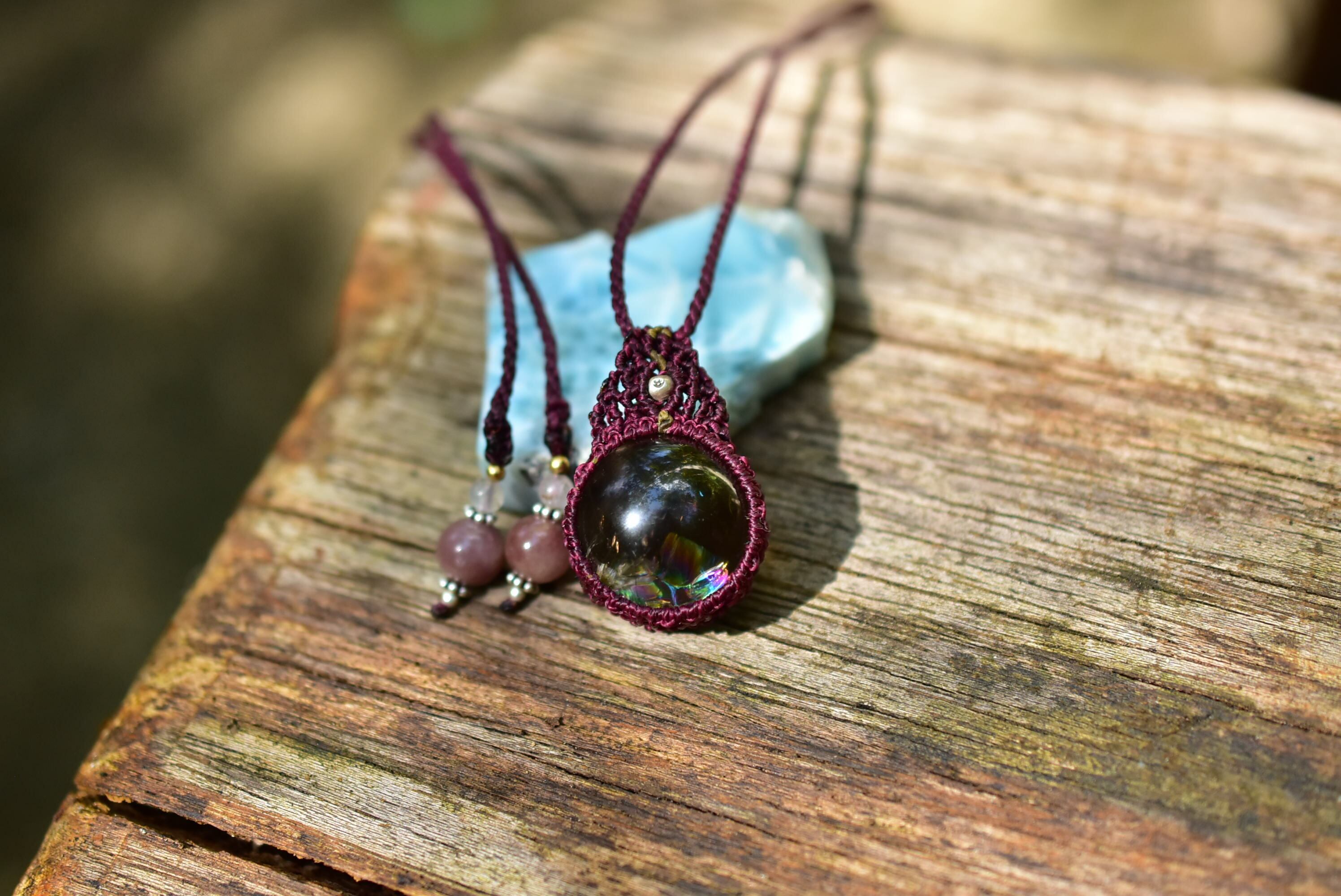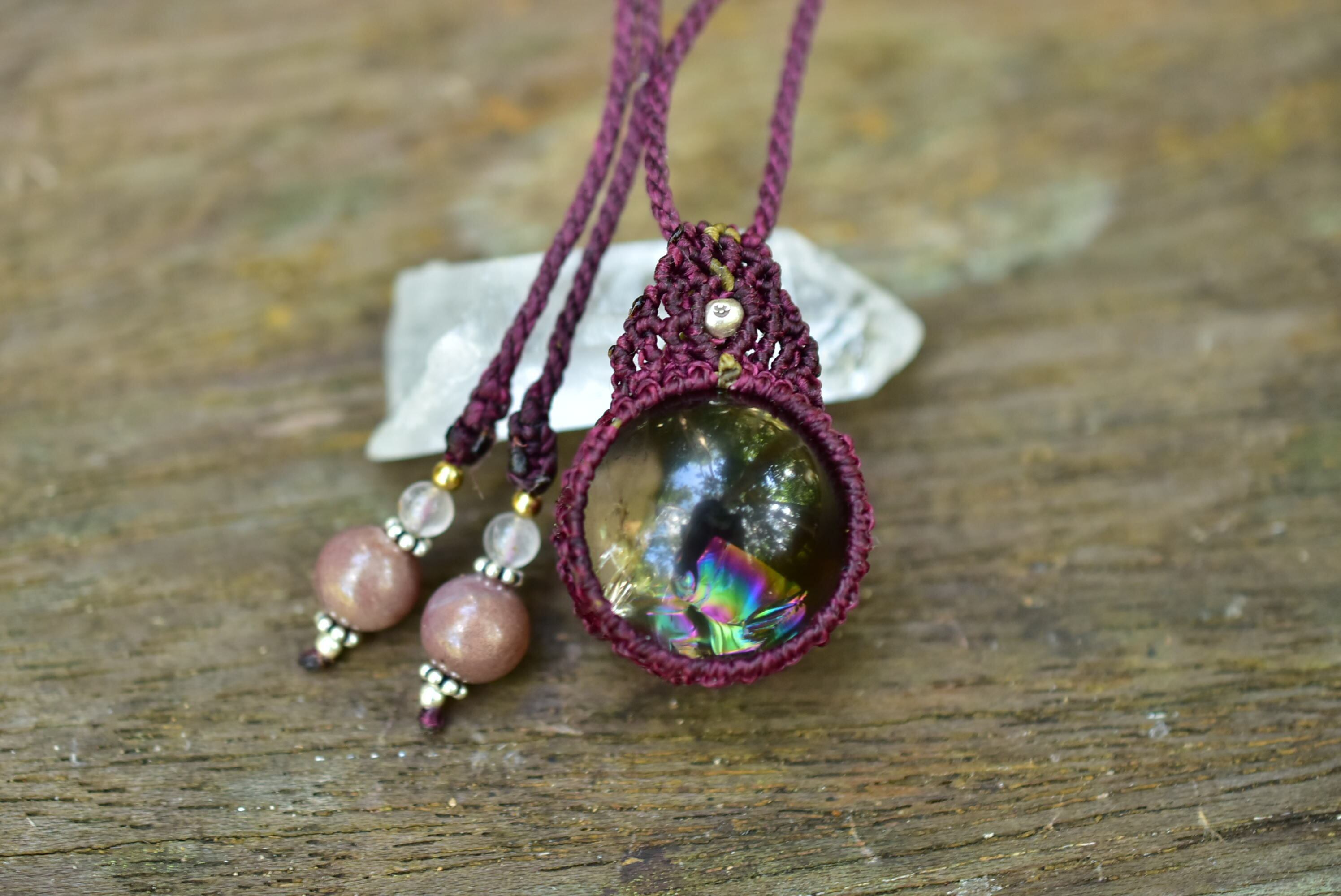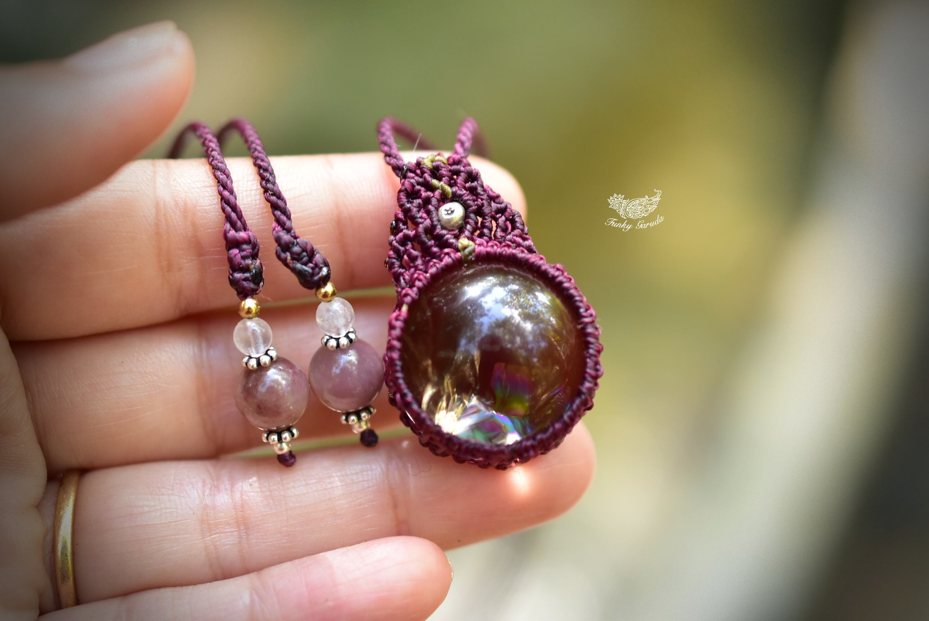 夢の虹入り★スモーキークォーツ ボール マクラメペンダント78