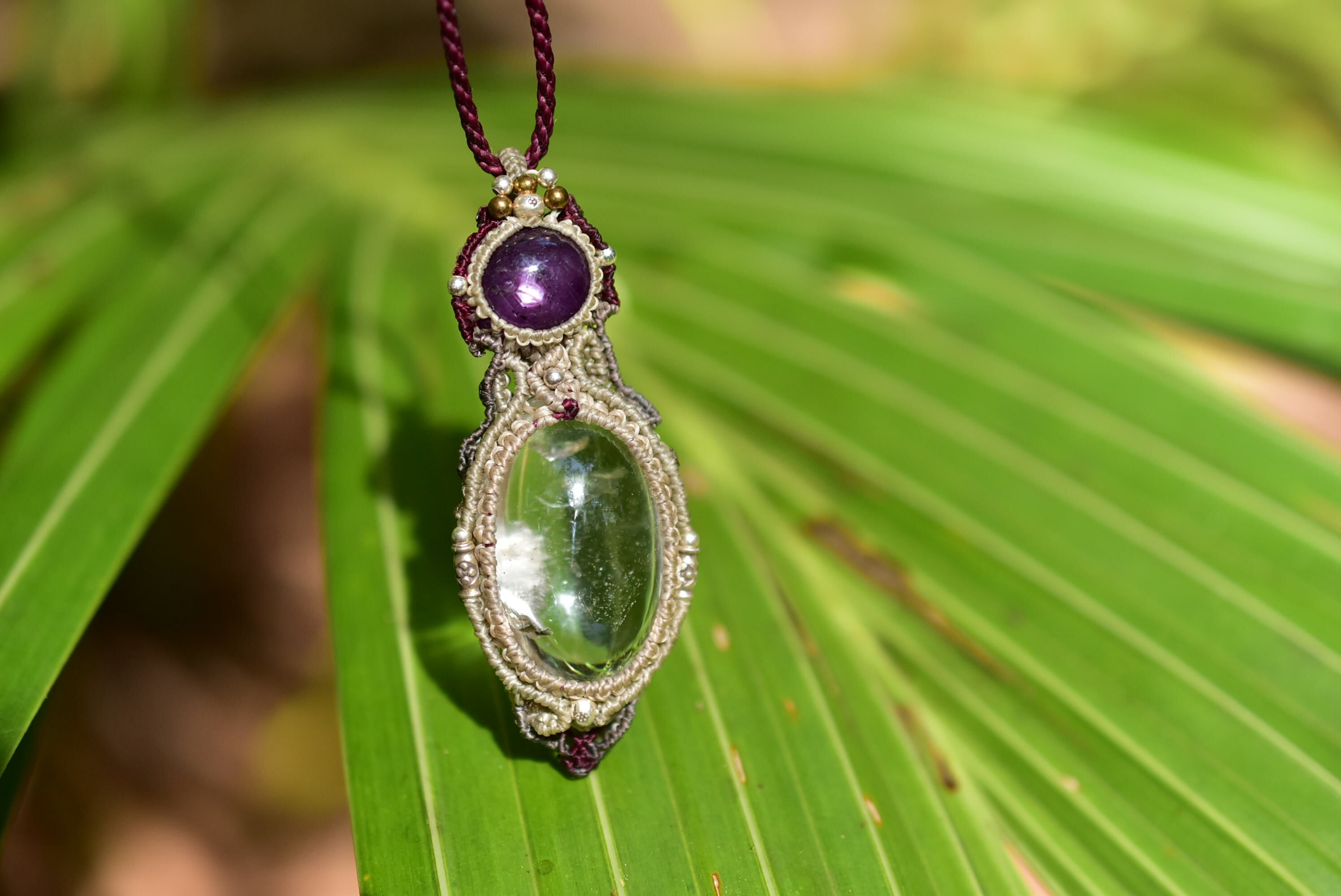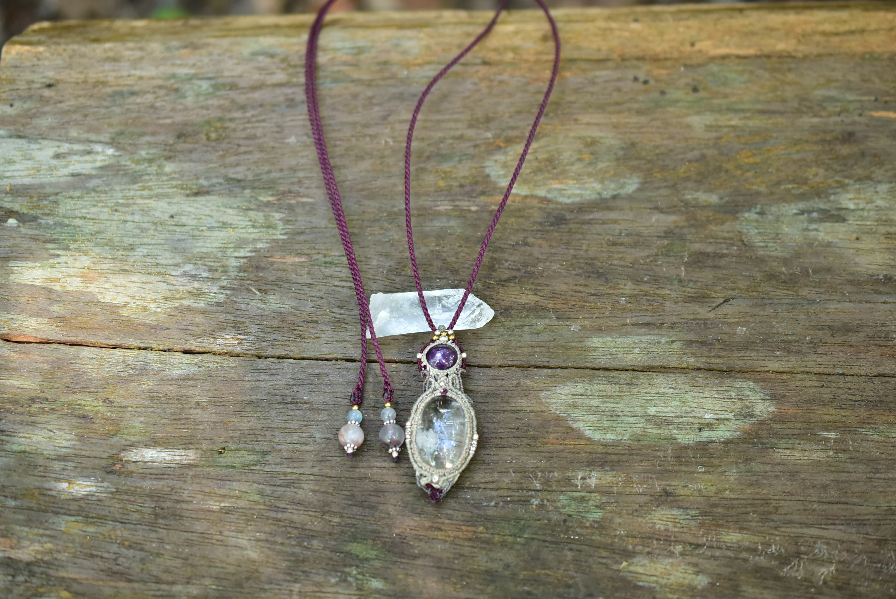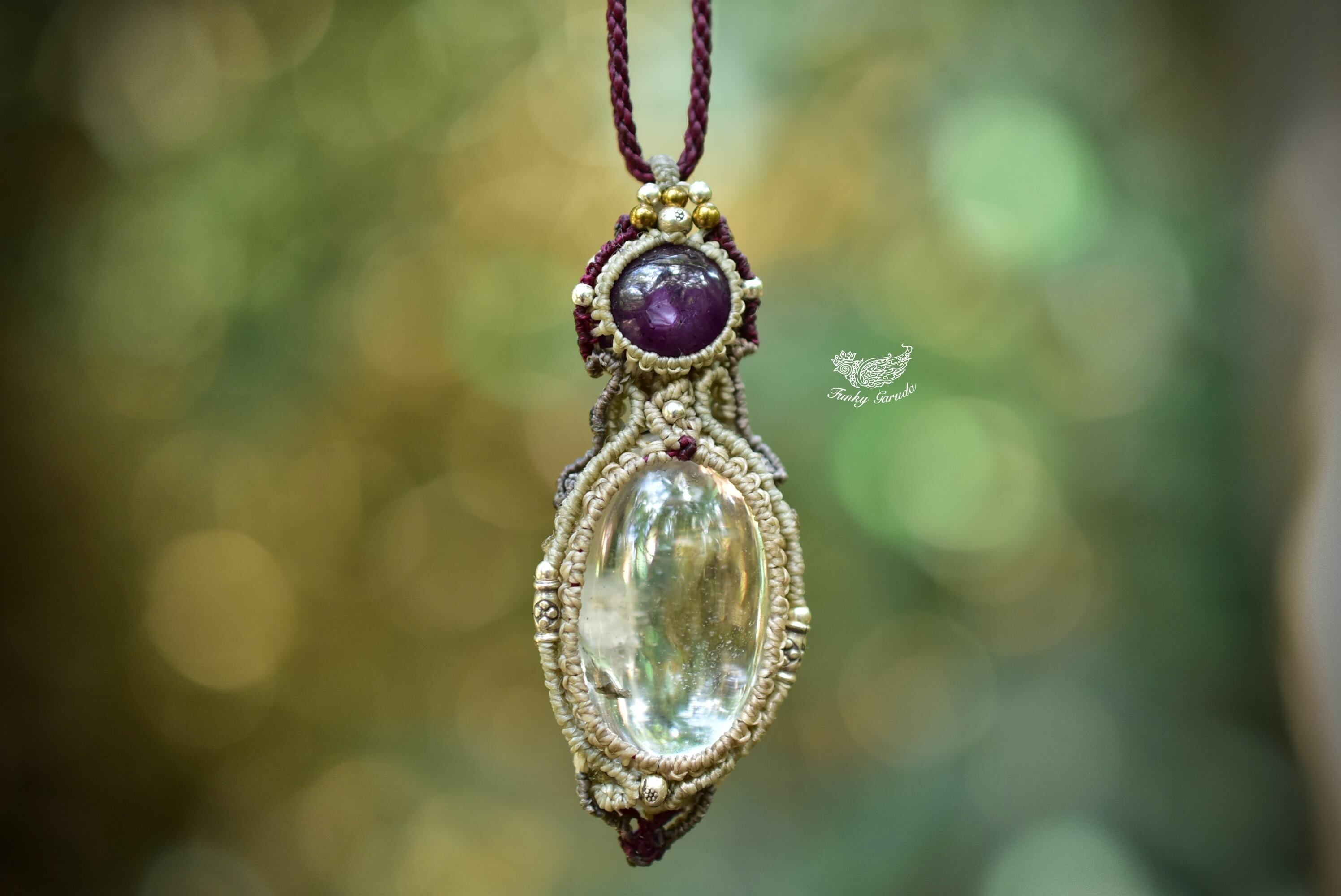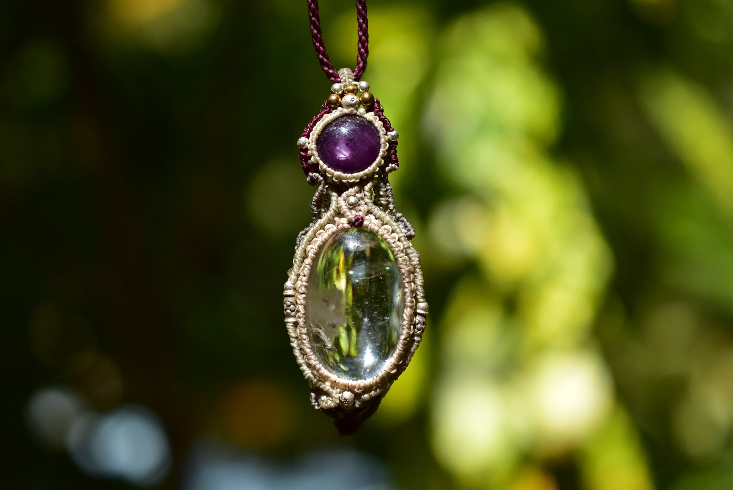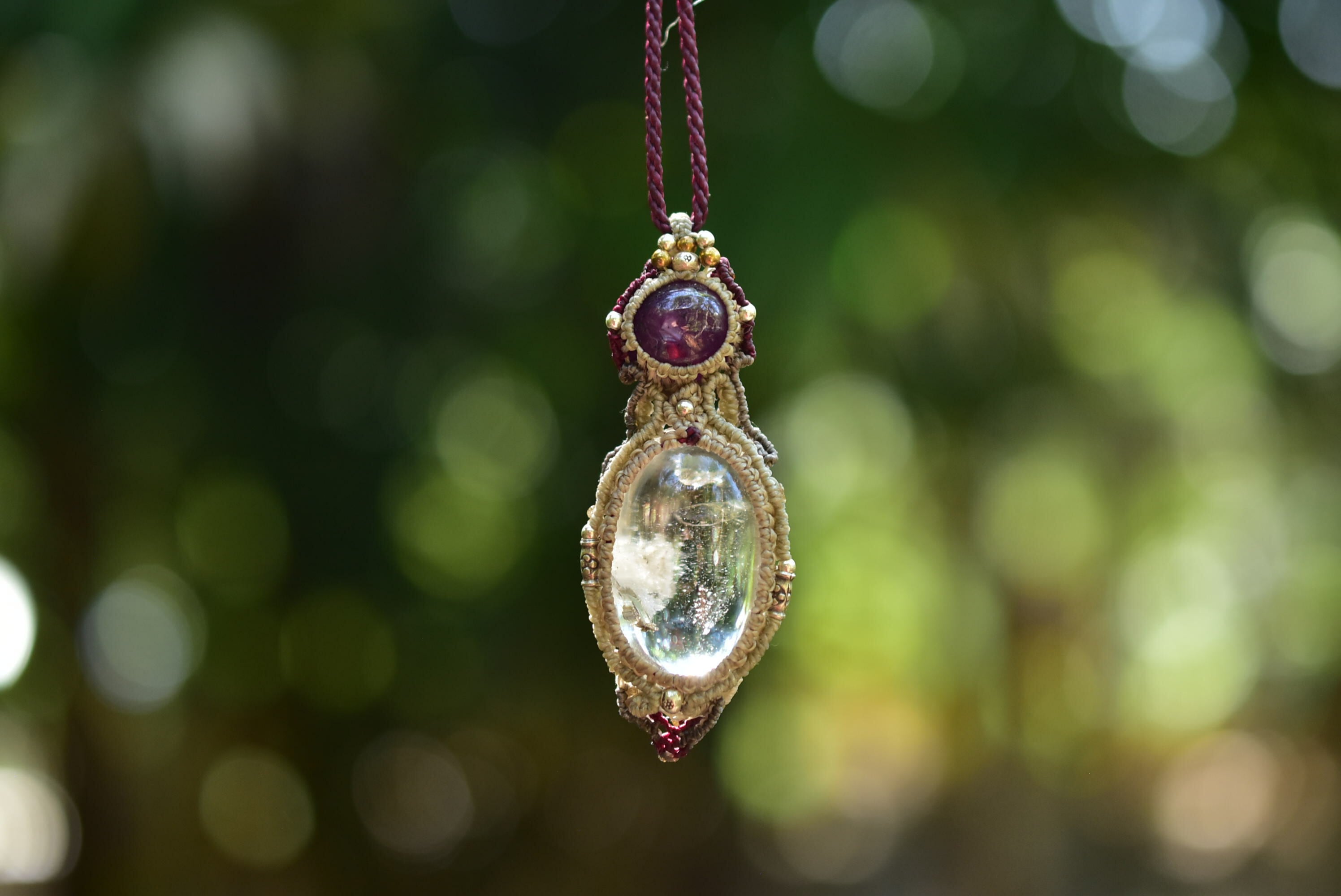 透明な雪と宝石★ルビー ガーデンクォーツ マクラメペンダント81
