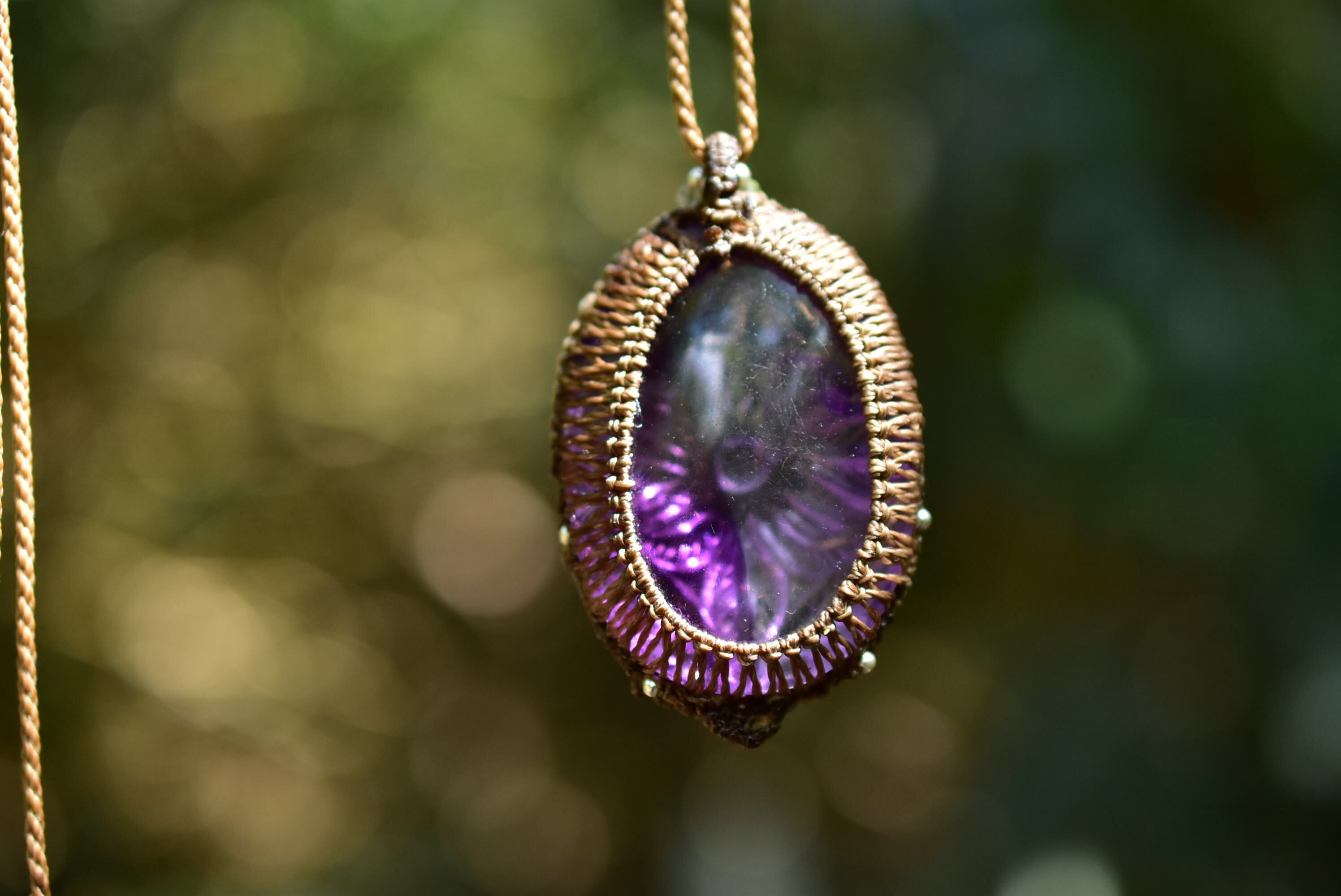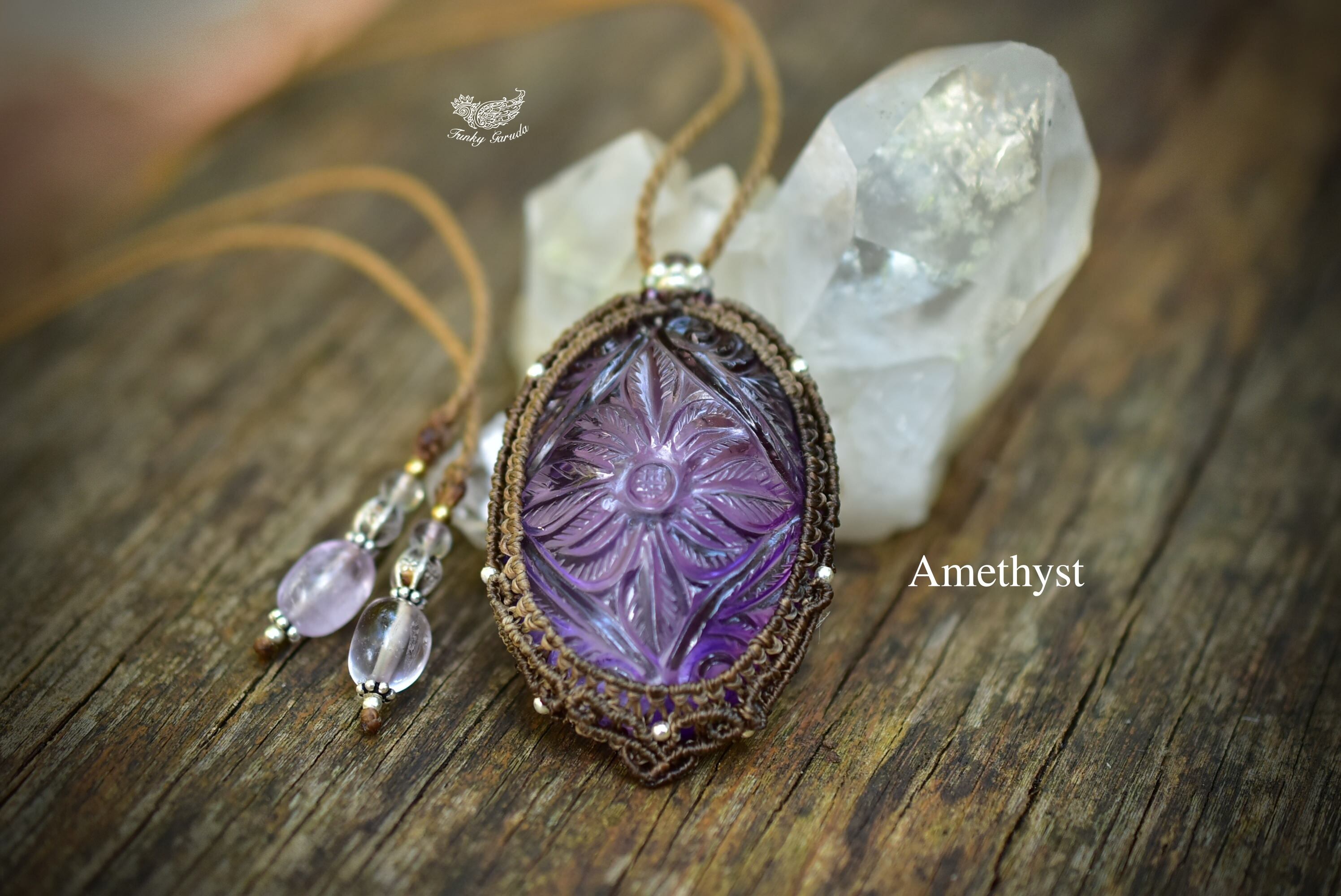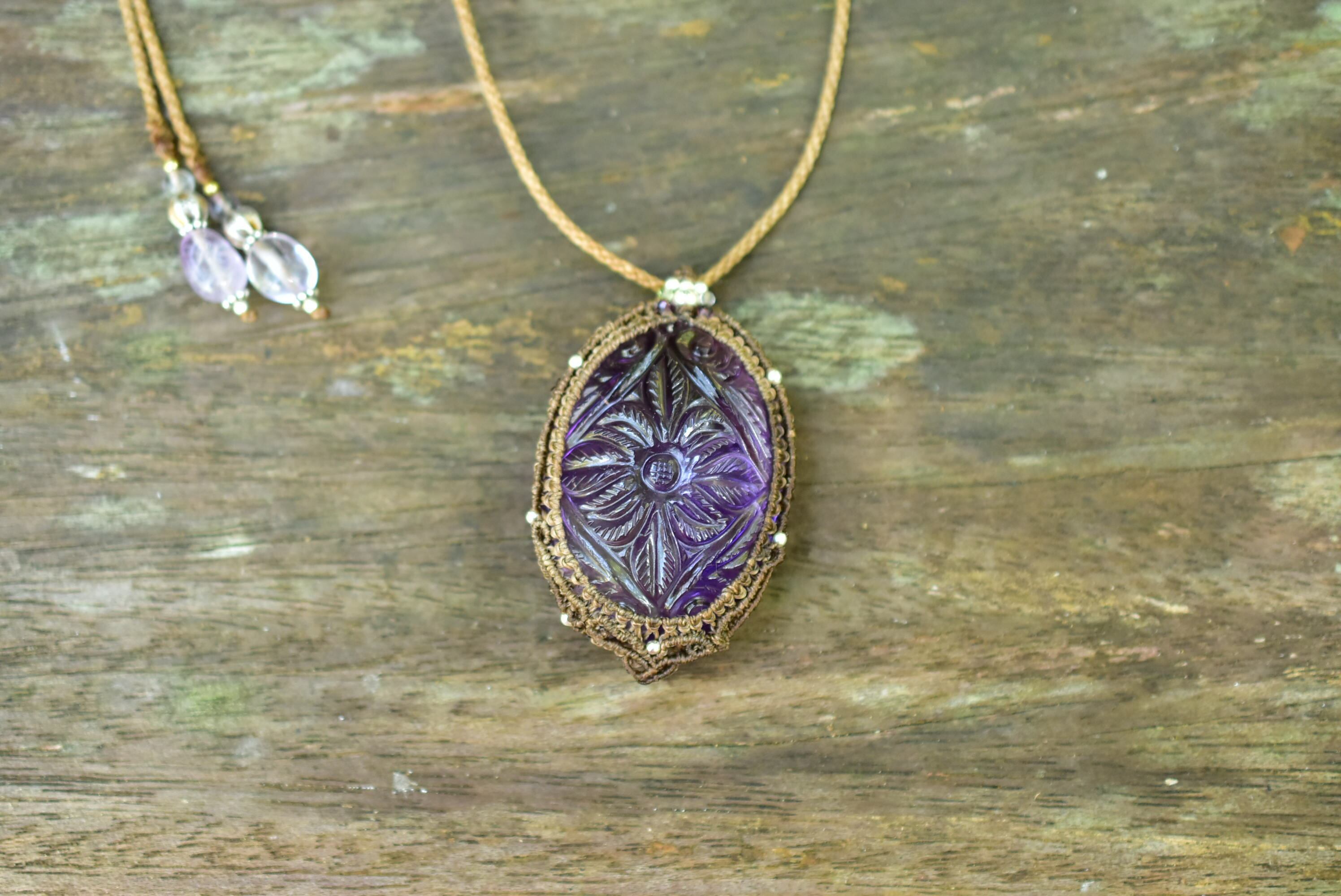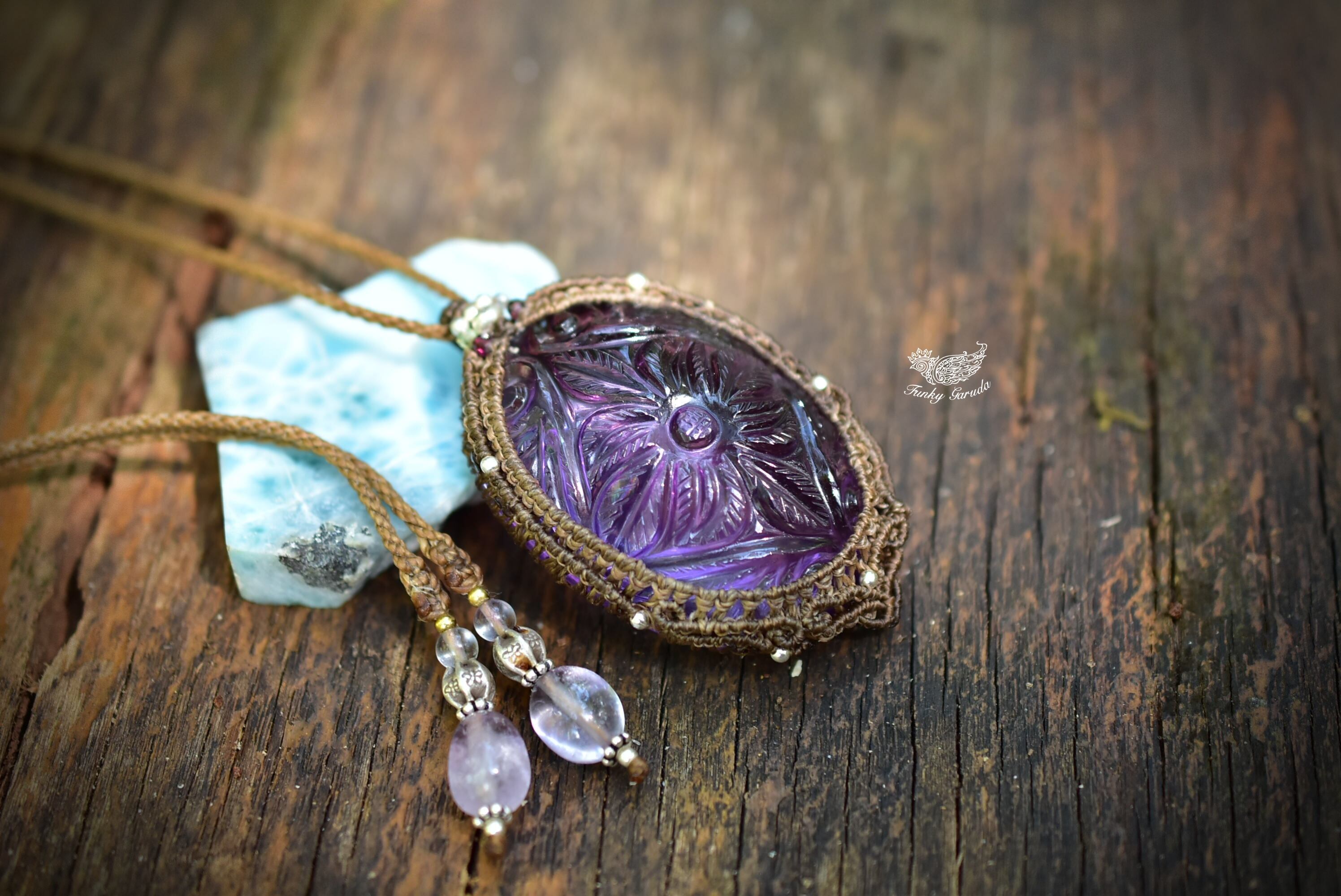 大粒★虹入り★カービング★アメジストマクラメペンダント84