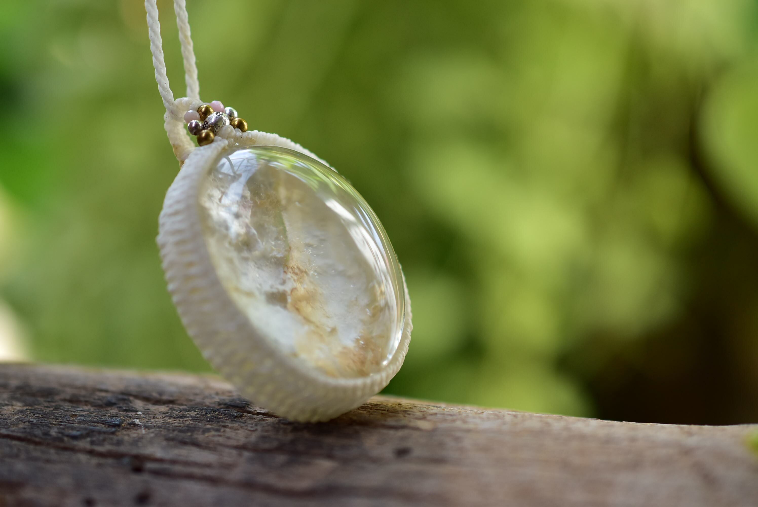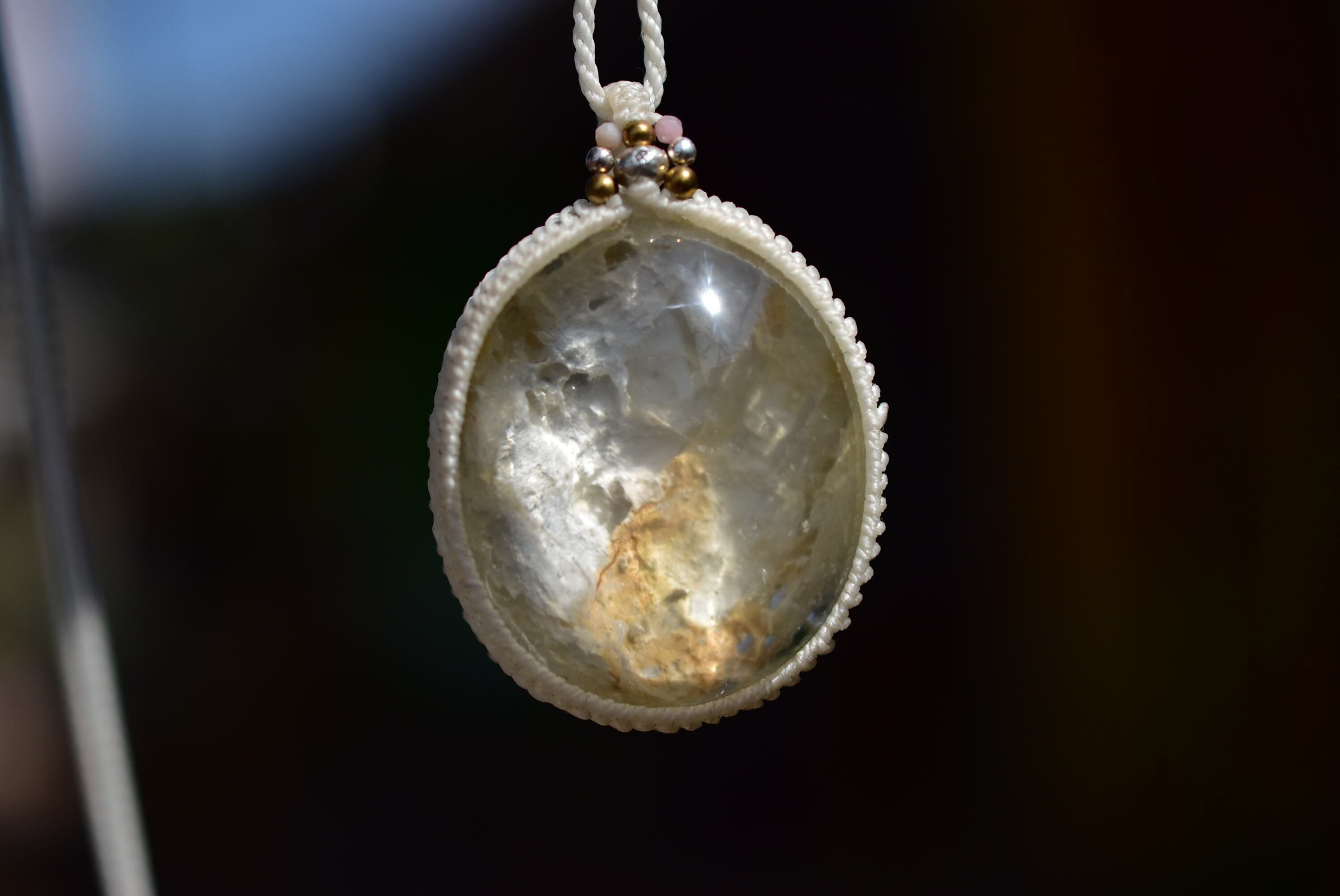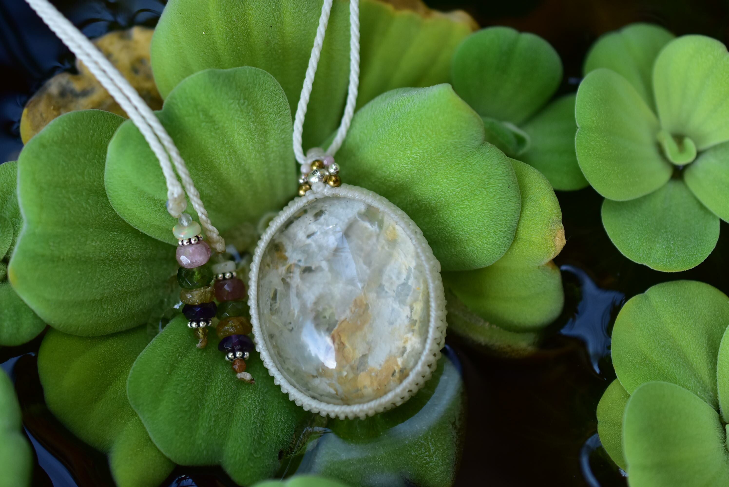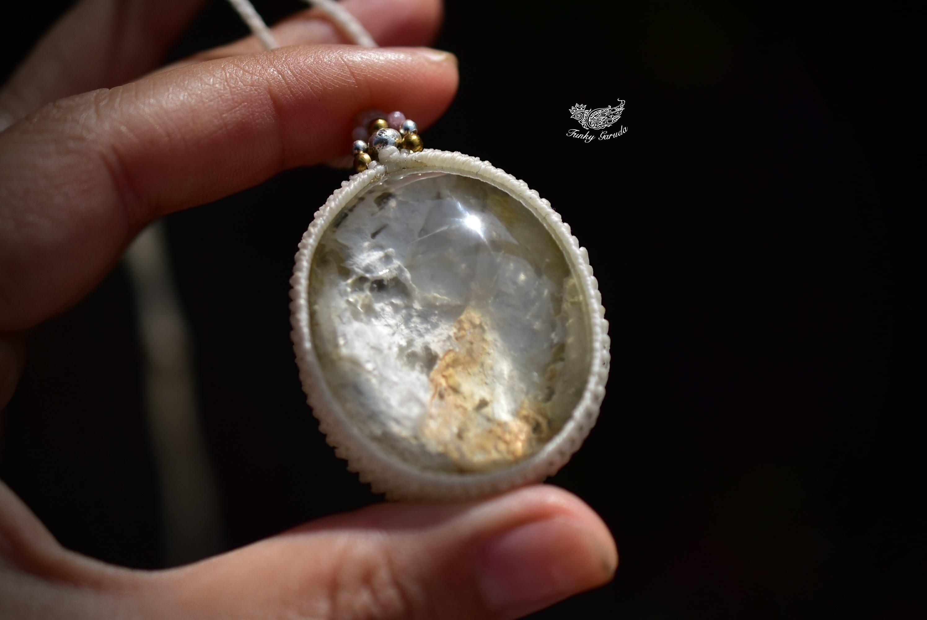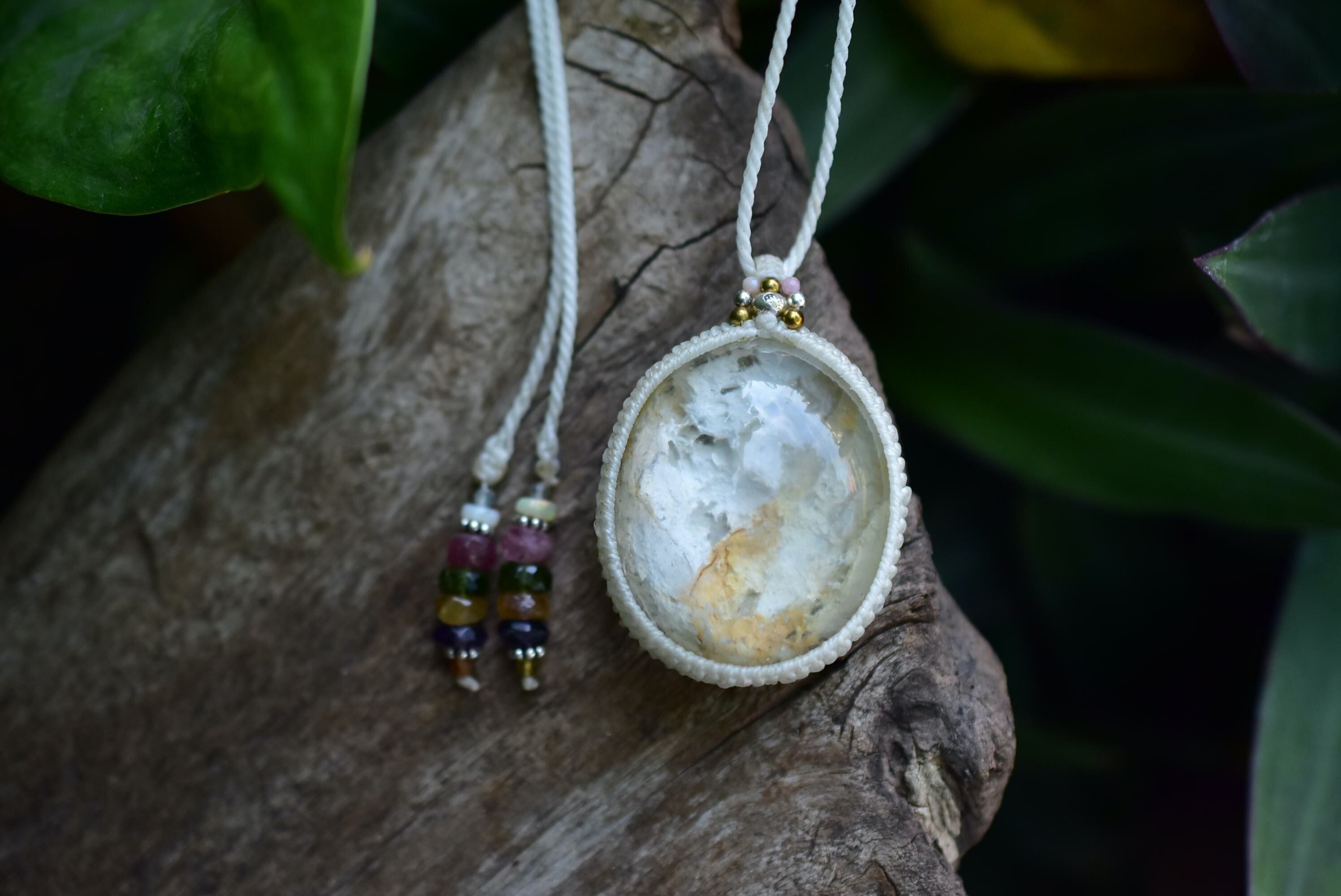 真っ白な大陸★中粒★ホワイトガーデンクォーツ マクラメペンダント 85