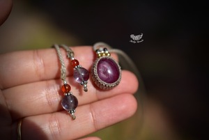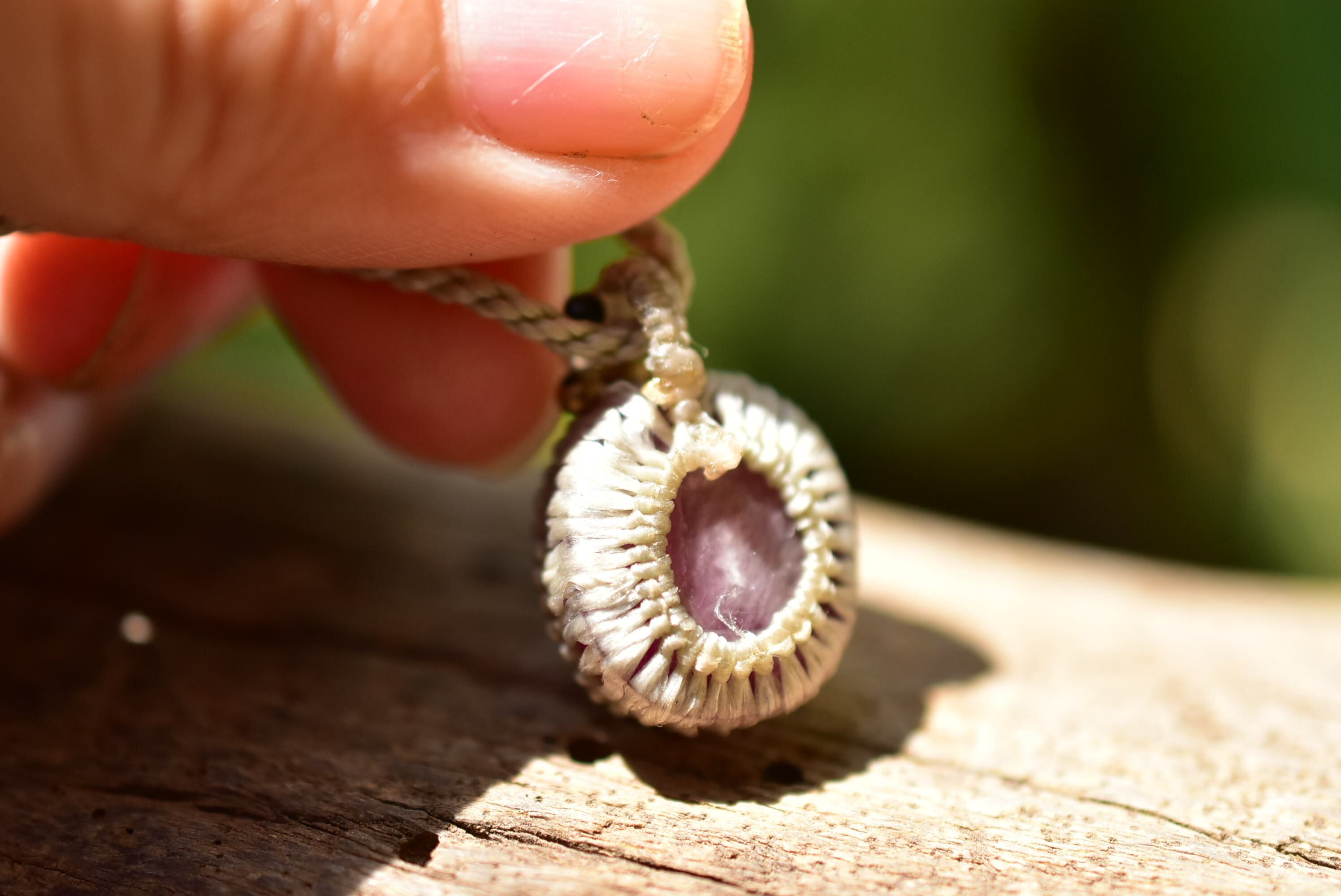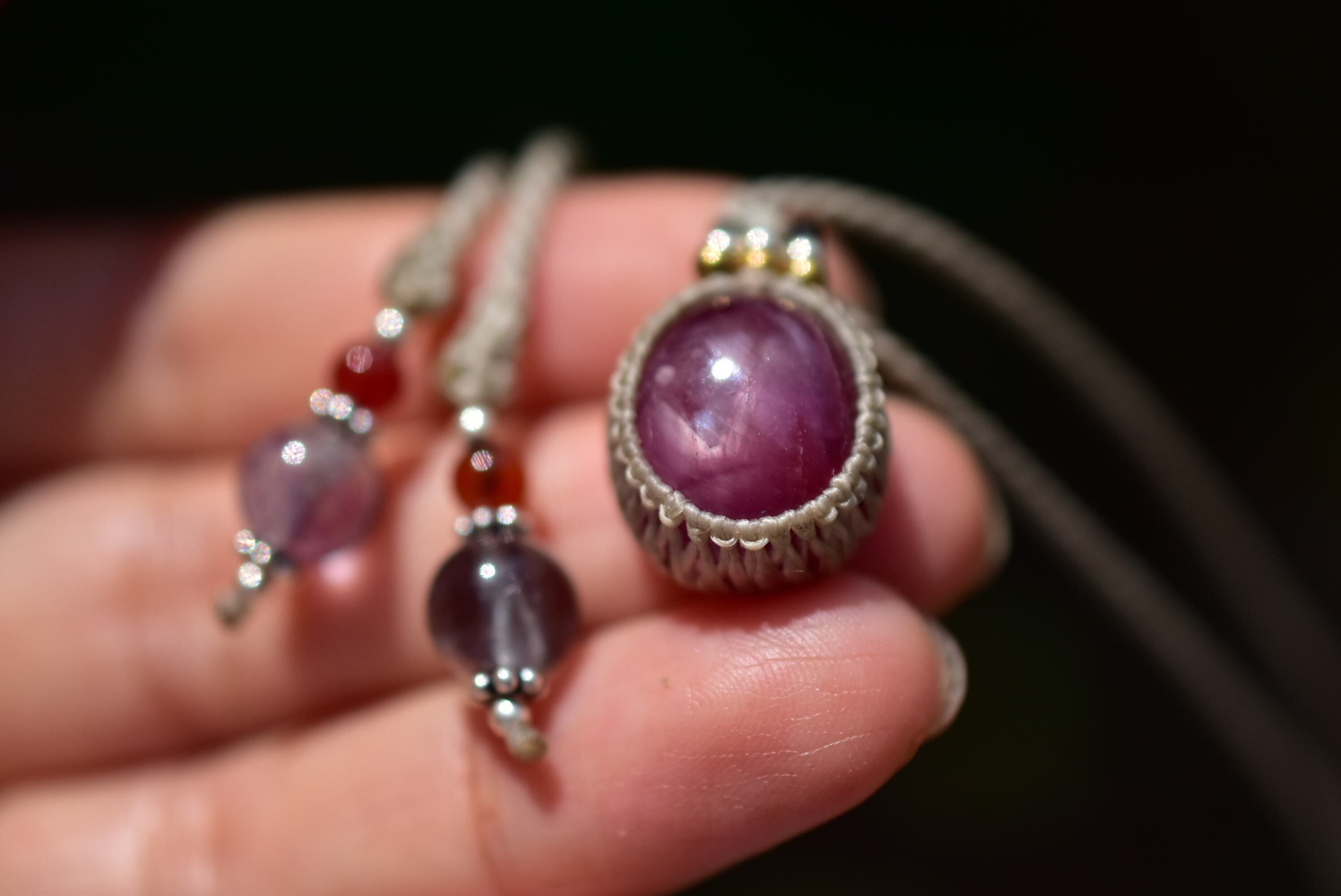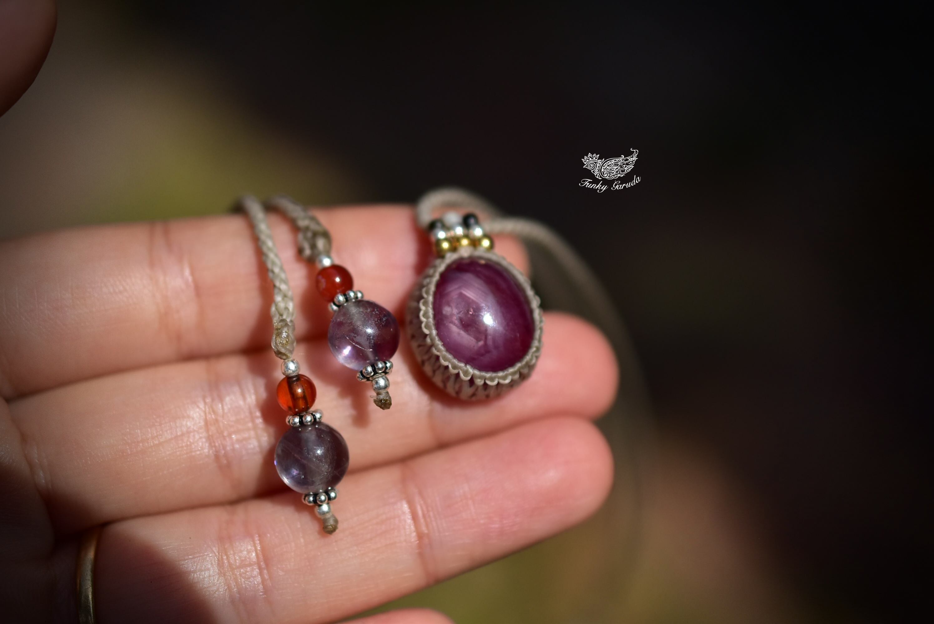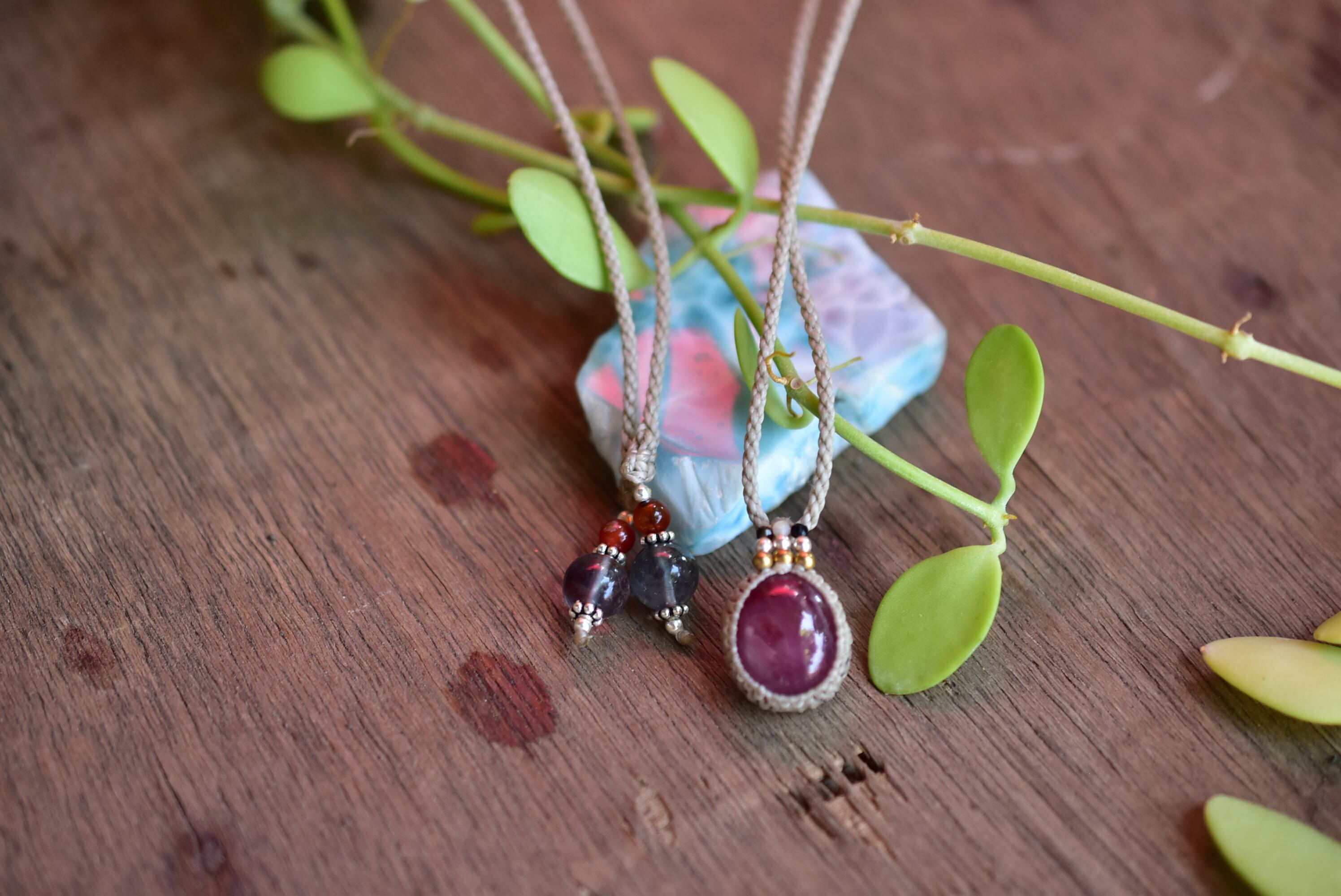 良質なルビーを、シンプルにマクラメ編みにて仕上げました。