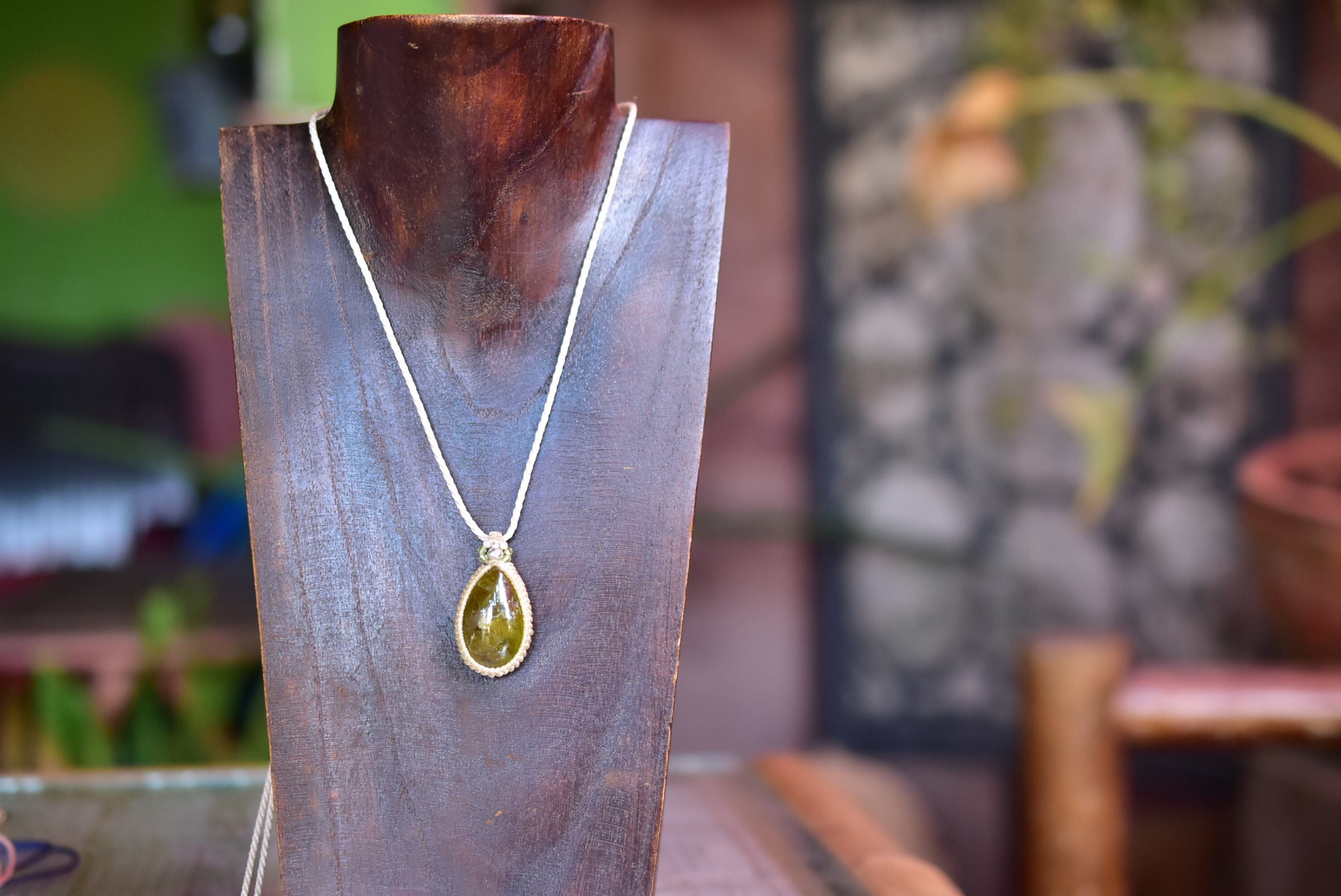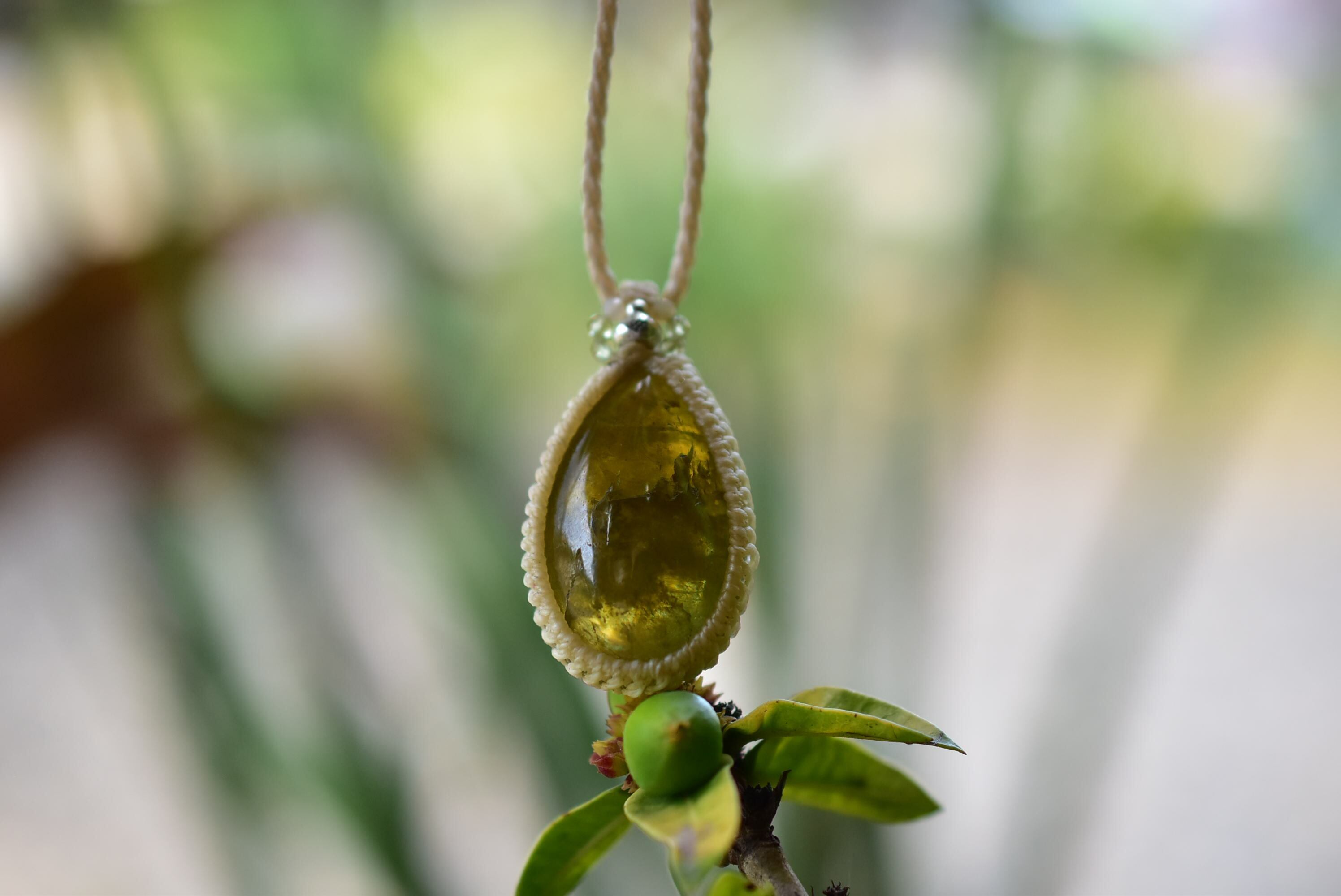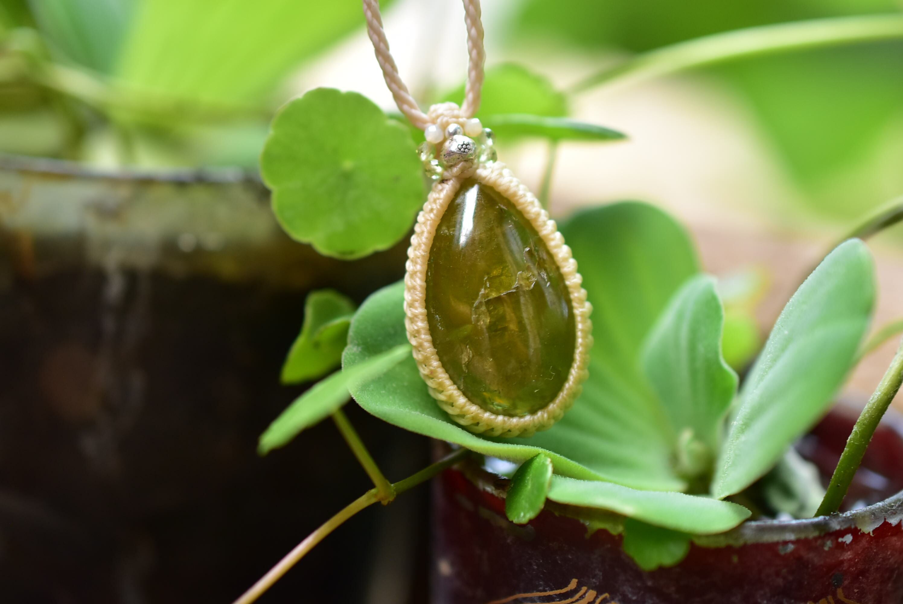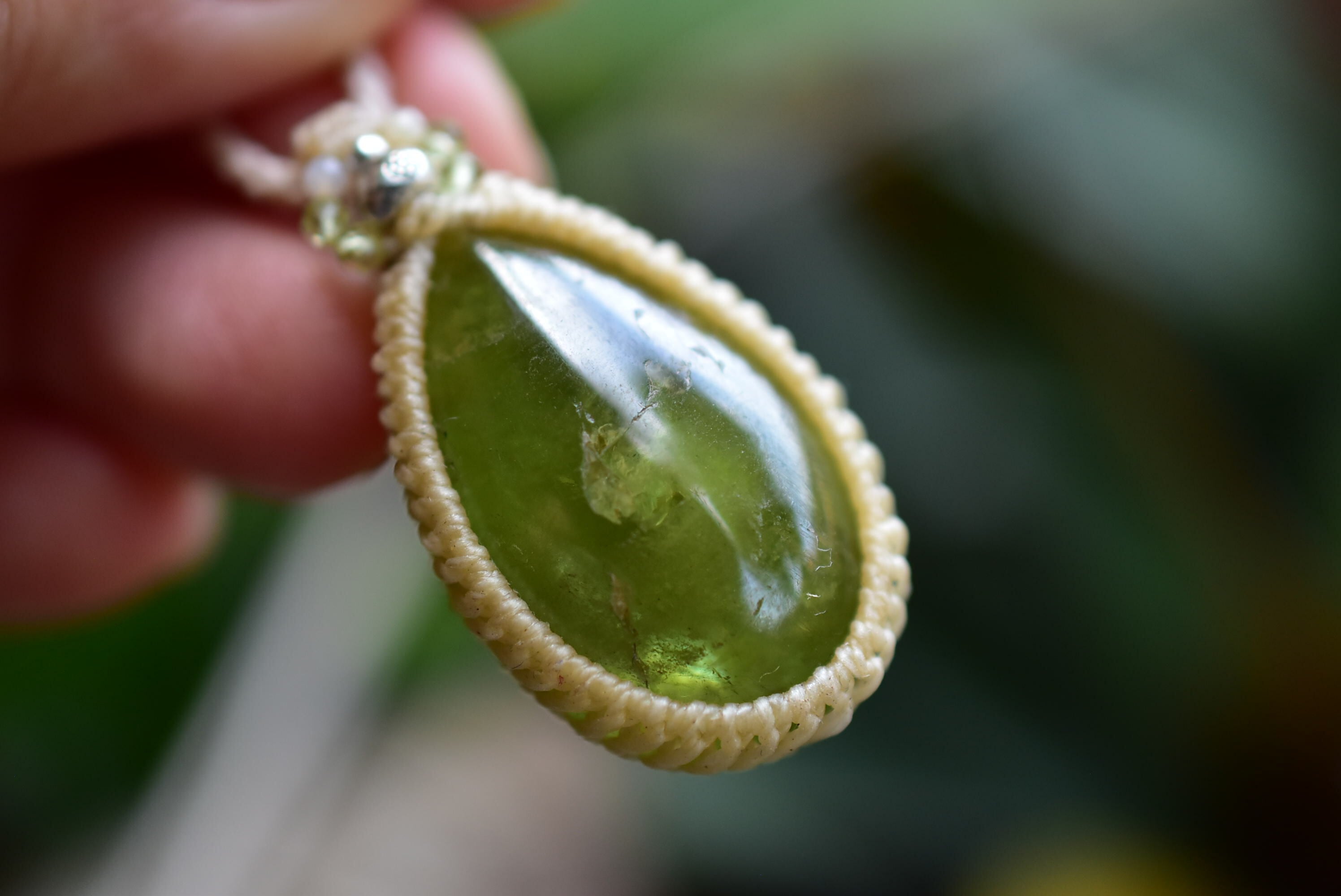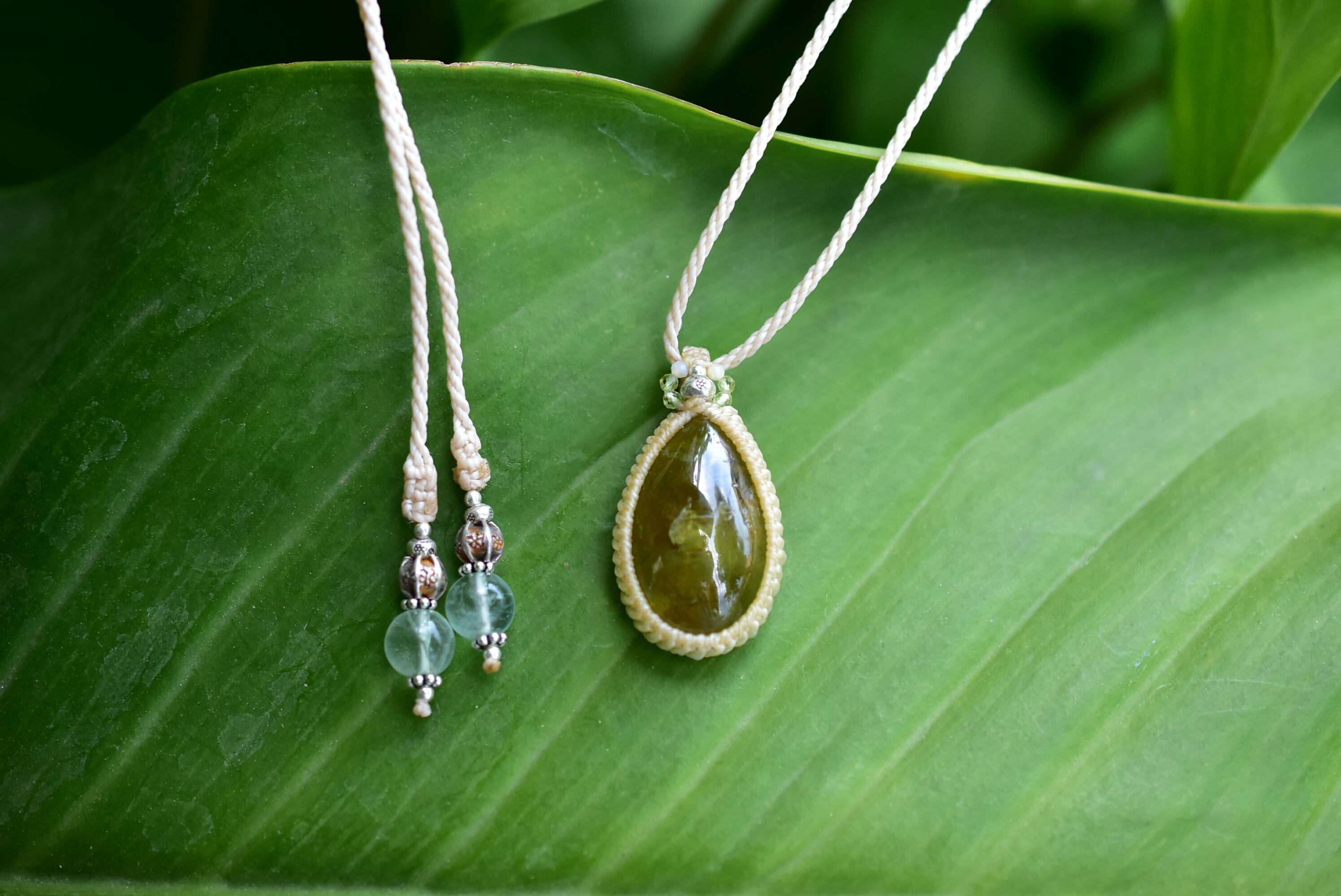 ナチュラルグリーン★グリーンガーネット マクラメペンダント93