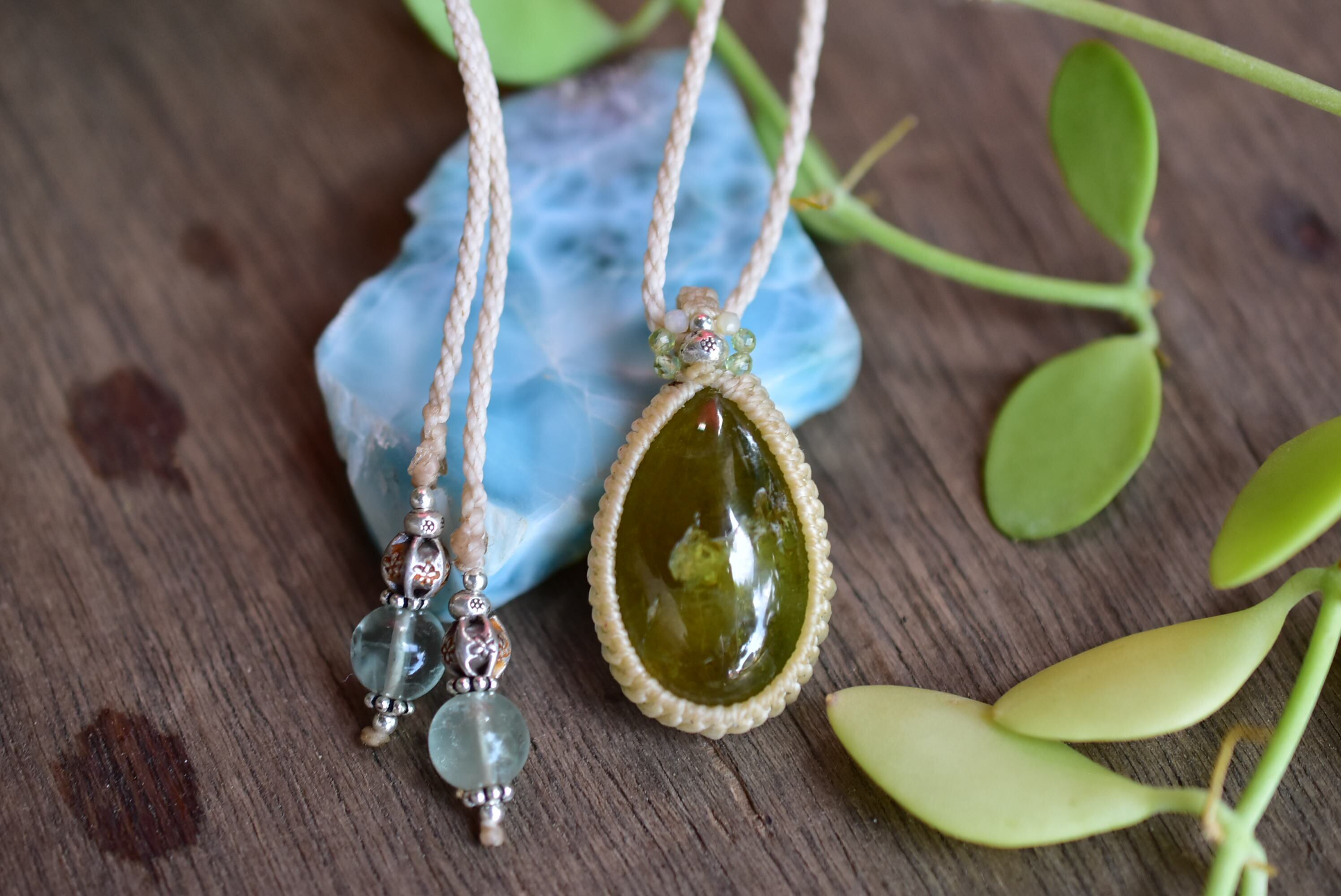 ◆このたびはキナリ色の蝋引き糸を使用しマクラメ編み装飾を施しました。