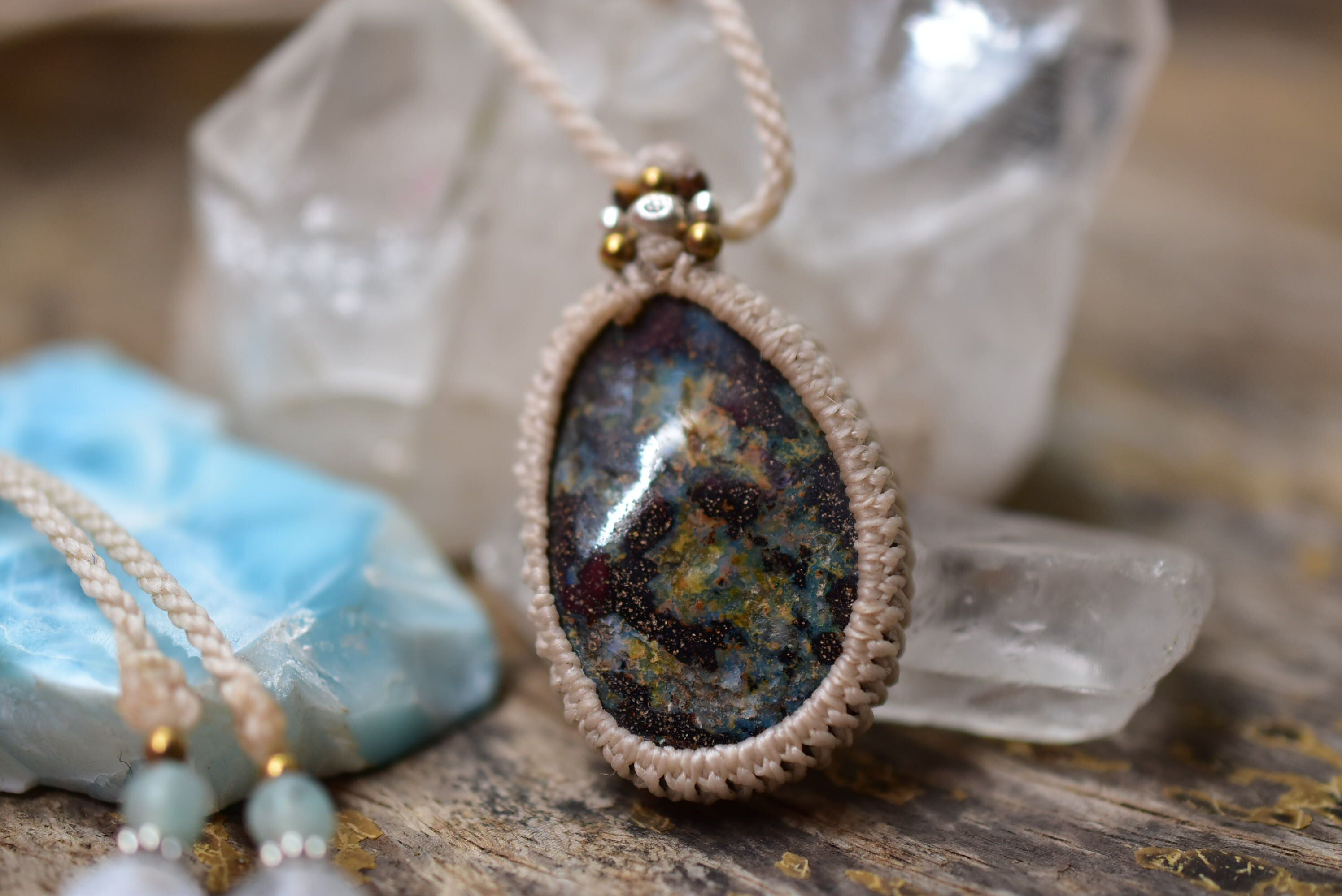 海中の煌めき★ボルダーオパール マクラメペンダント101