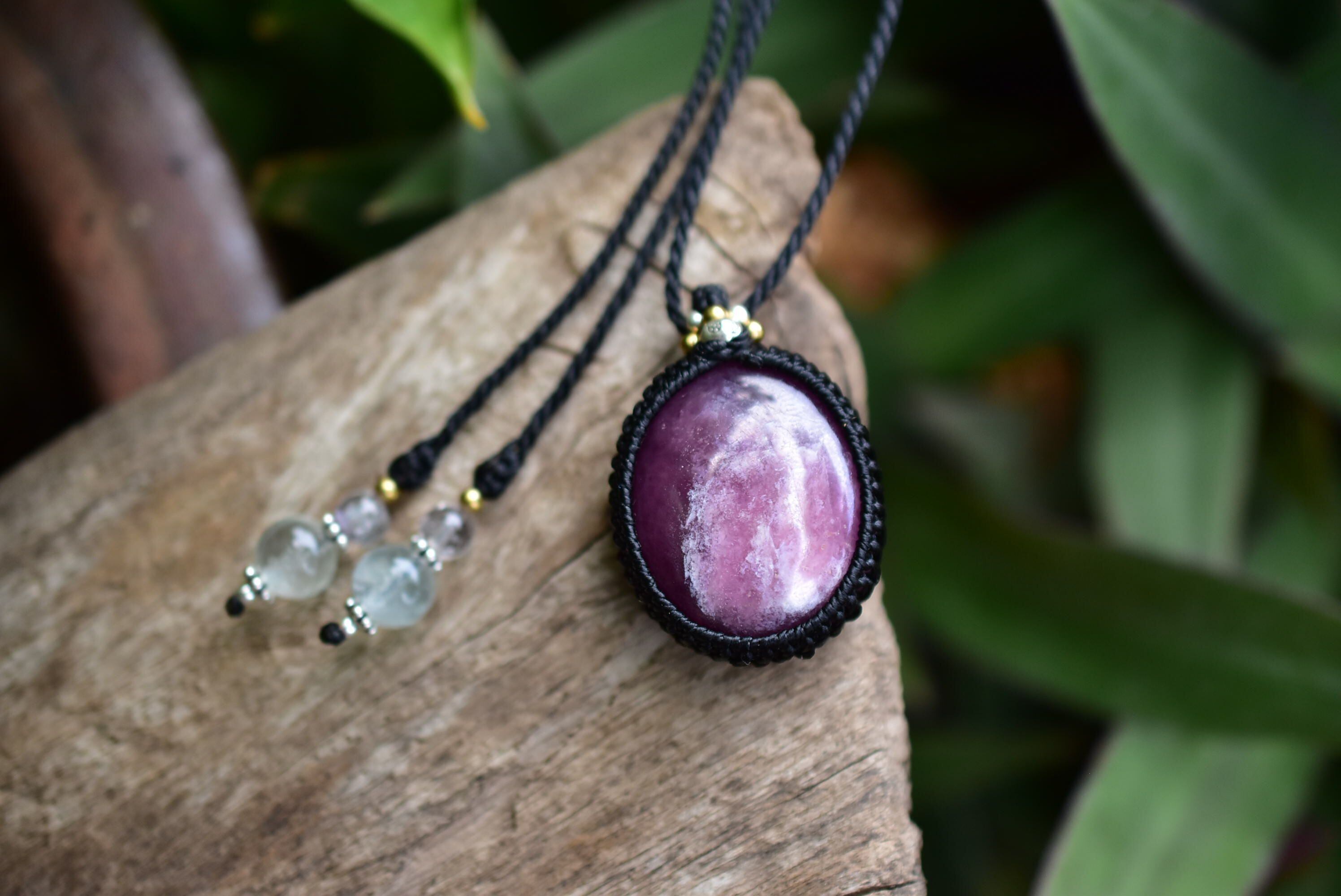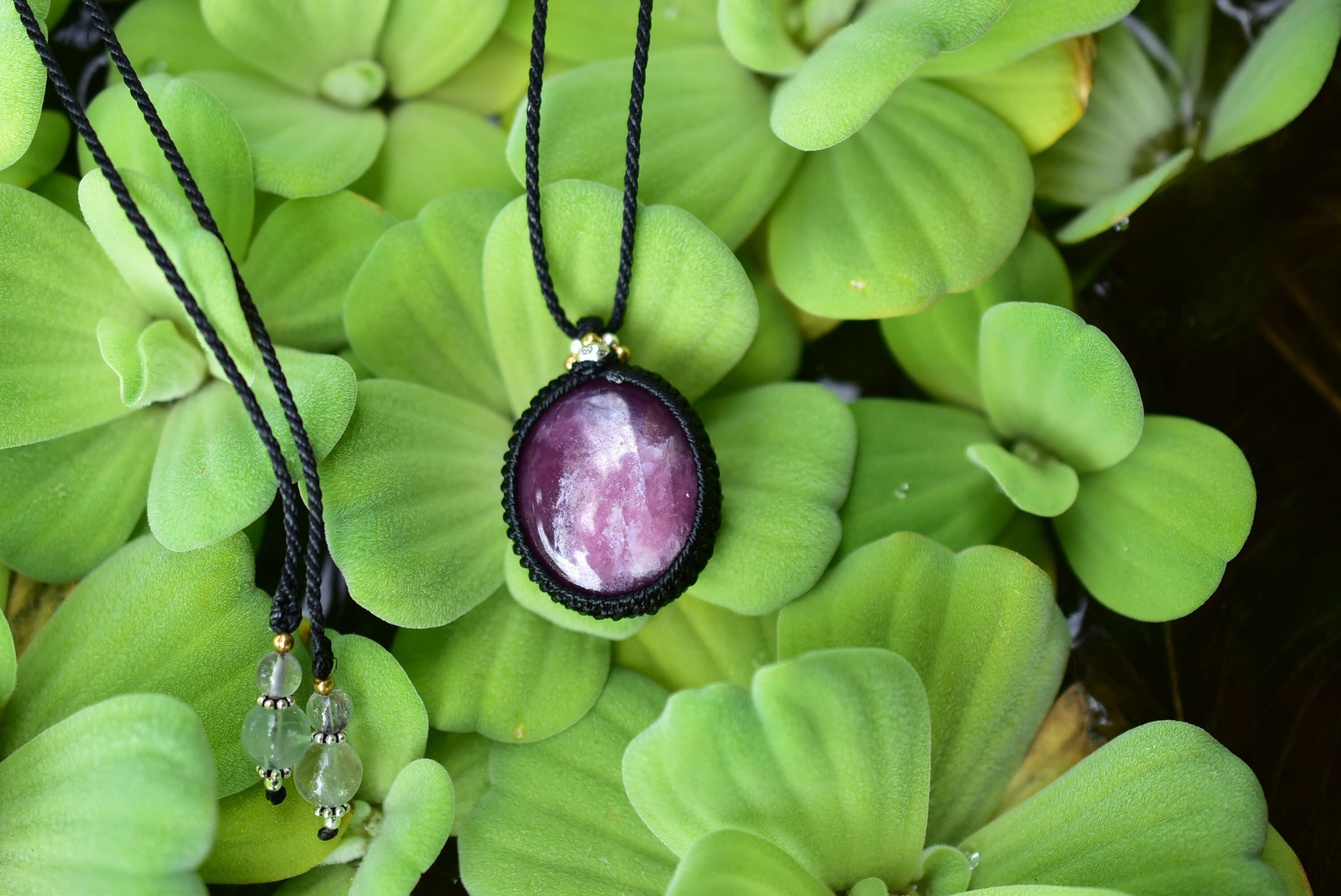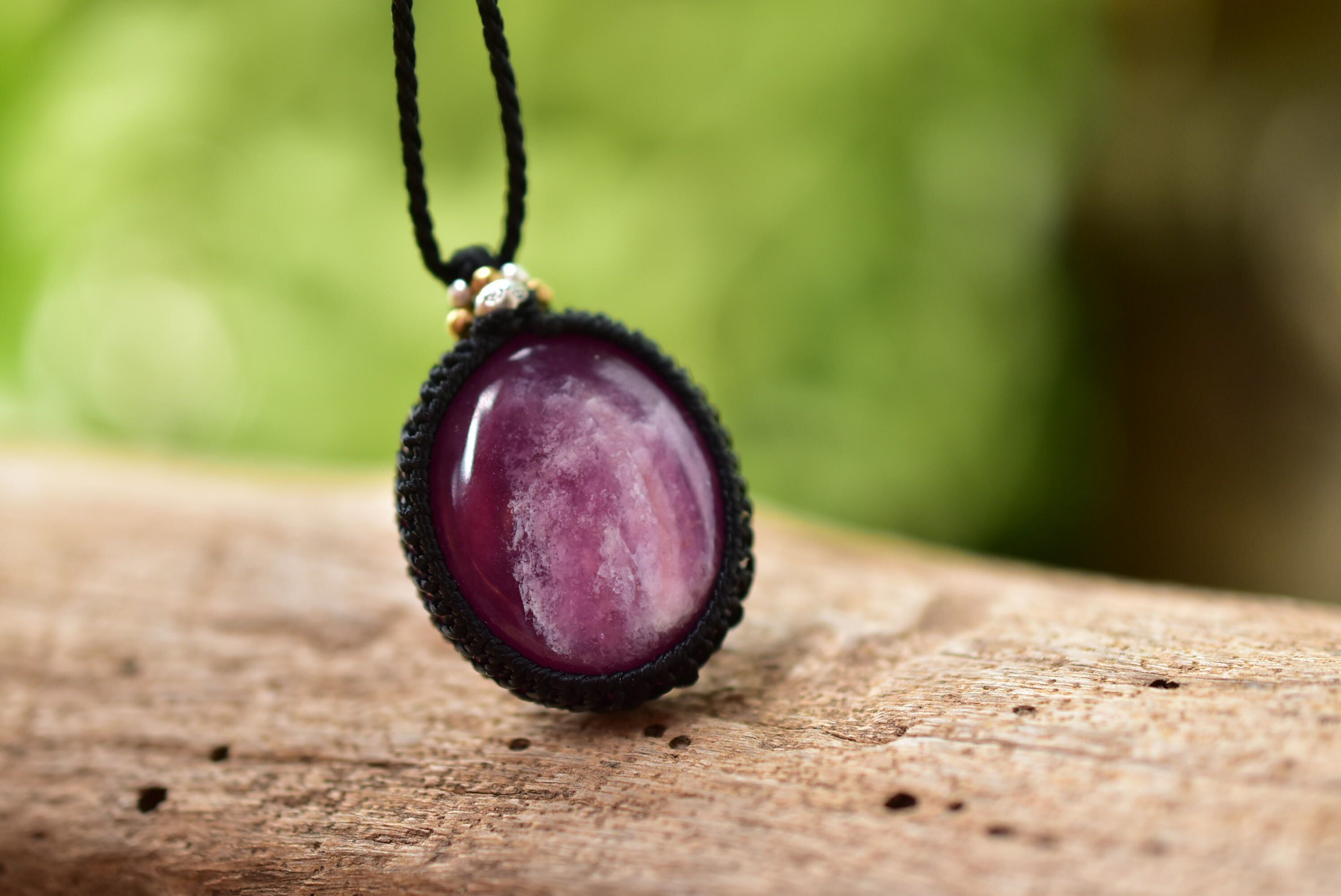 ◆このたびはブラック色の蝋引き糸を使用しマクラメ編み装飾を施しました。