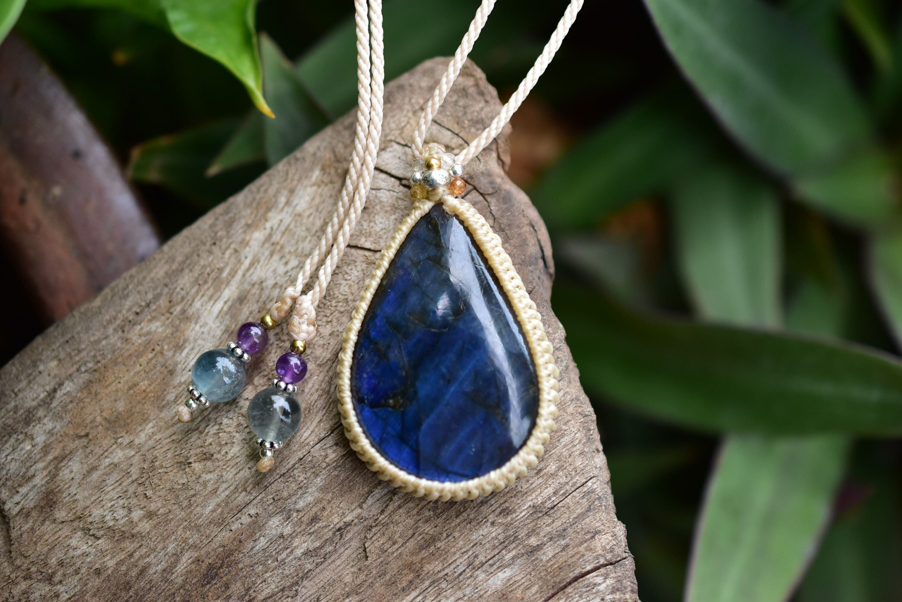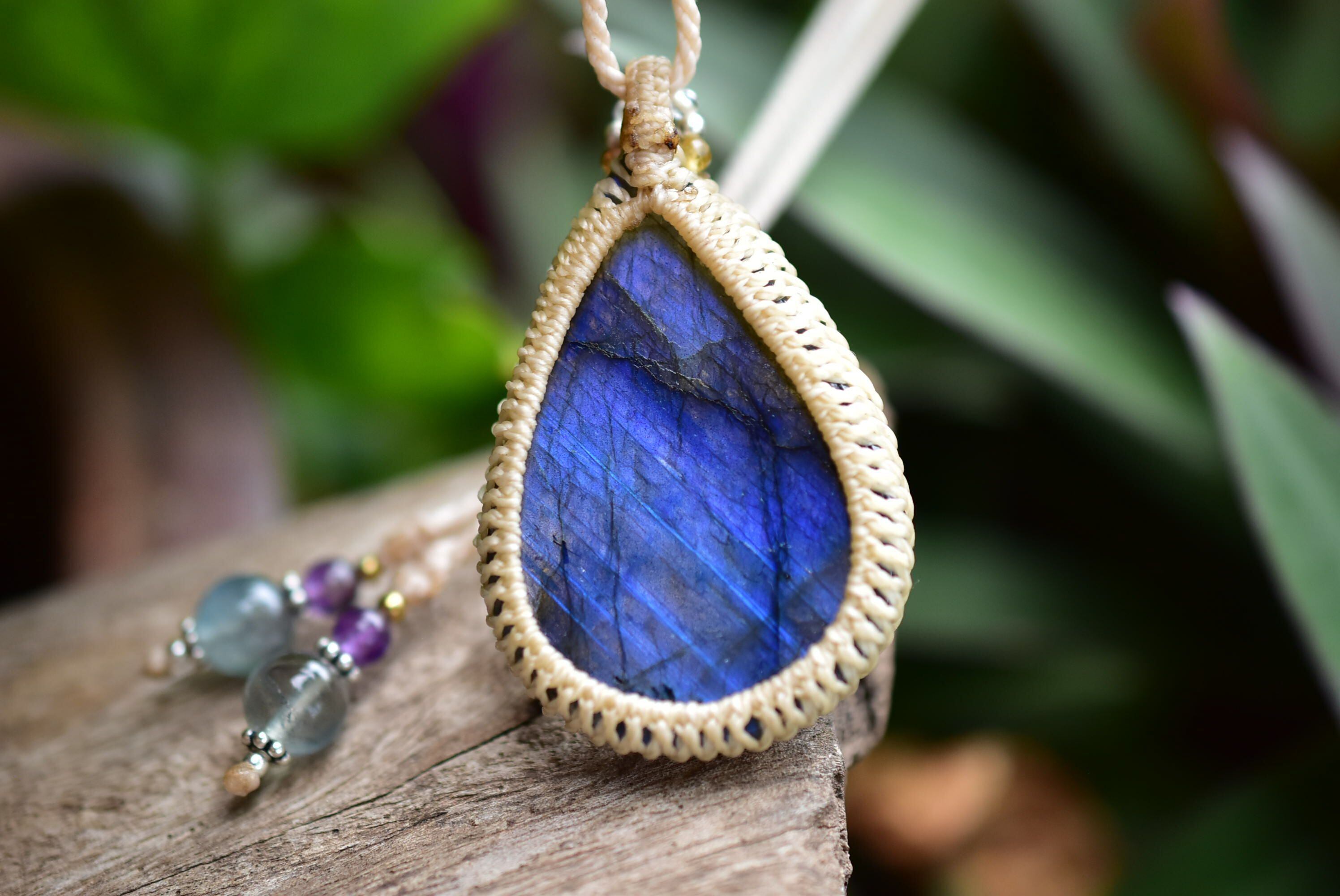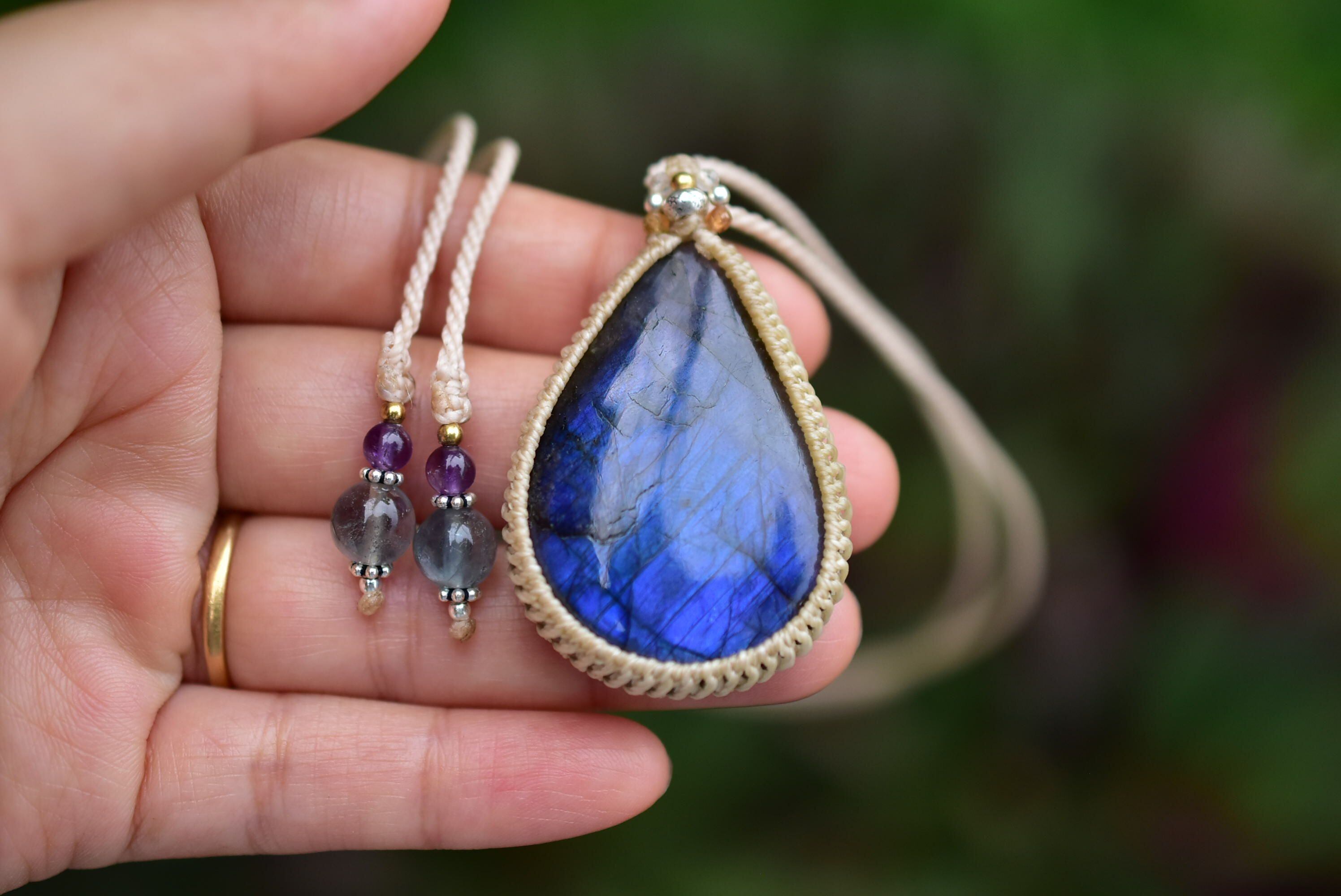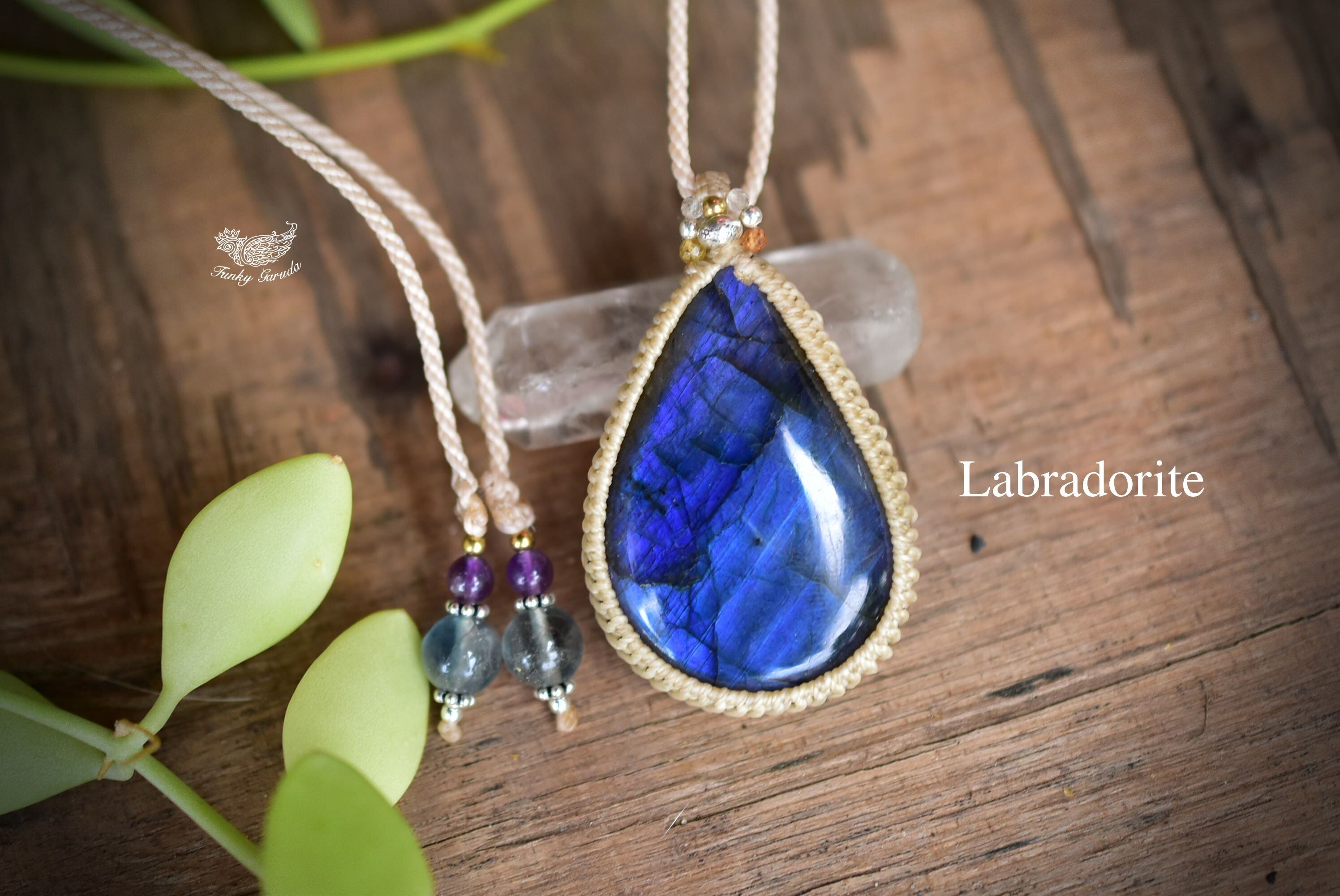 宇宙の涙★高品質★ブルーラブラドライト シンプルマクラメペンダント107