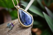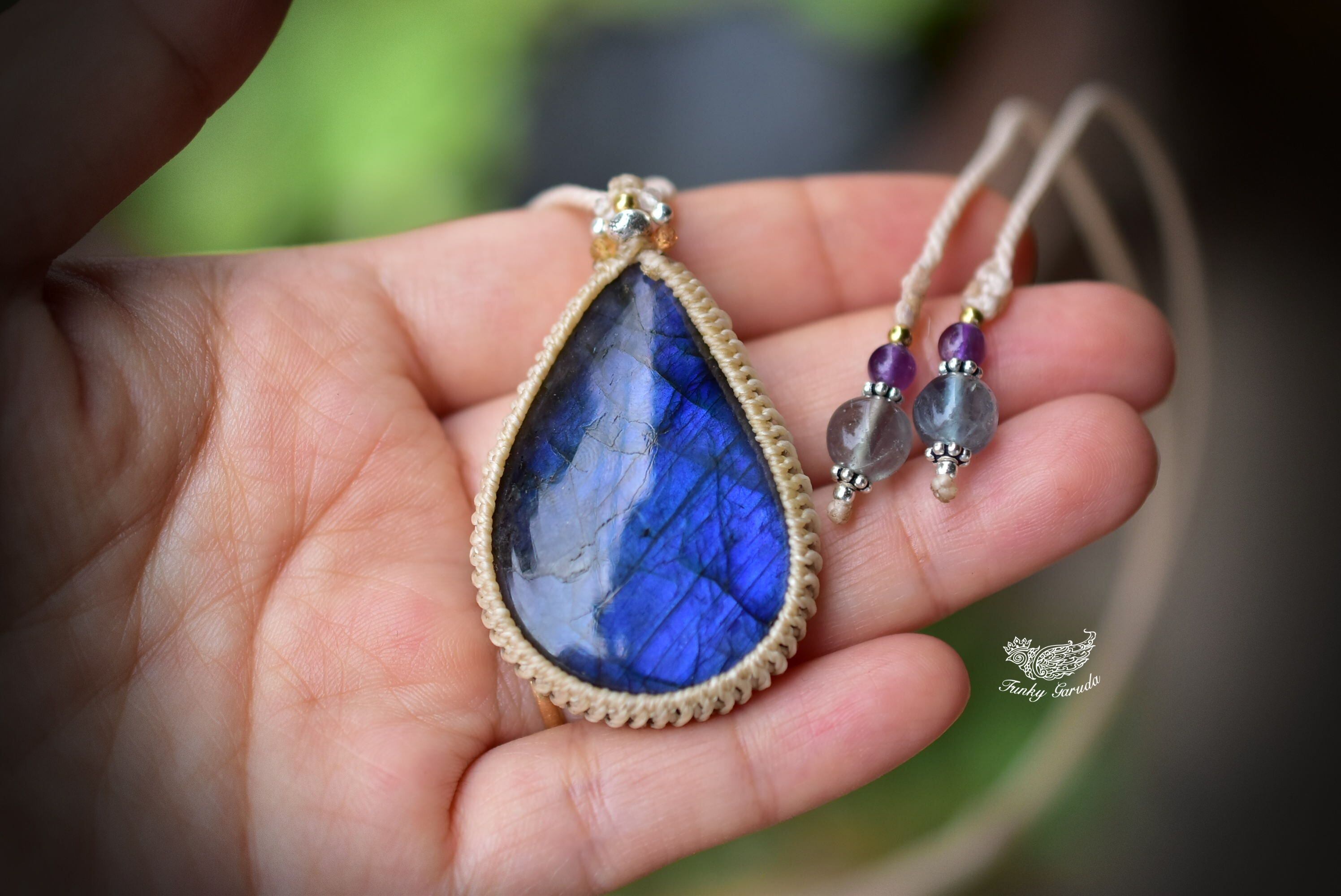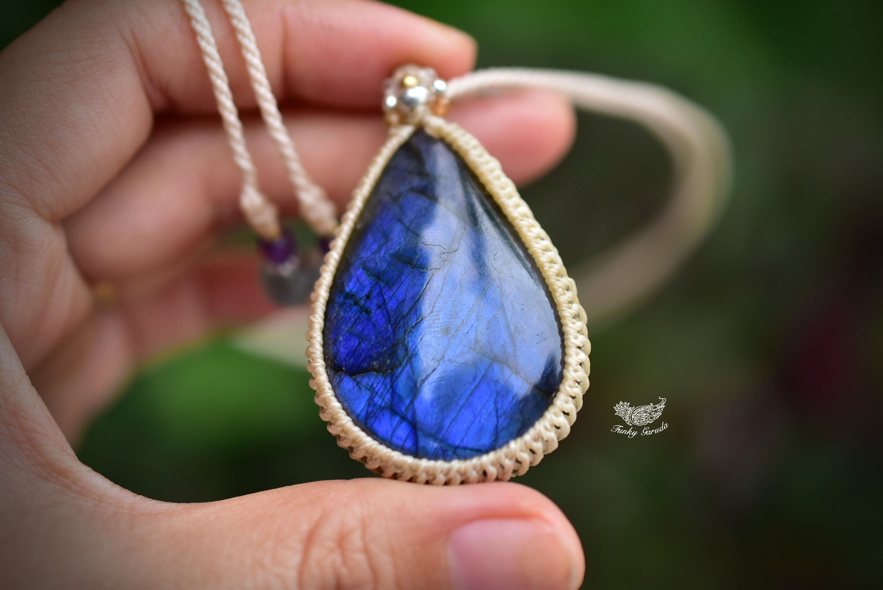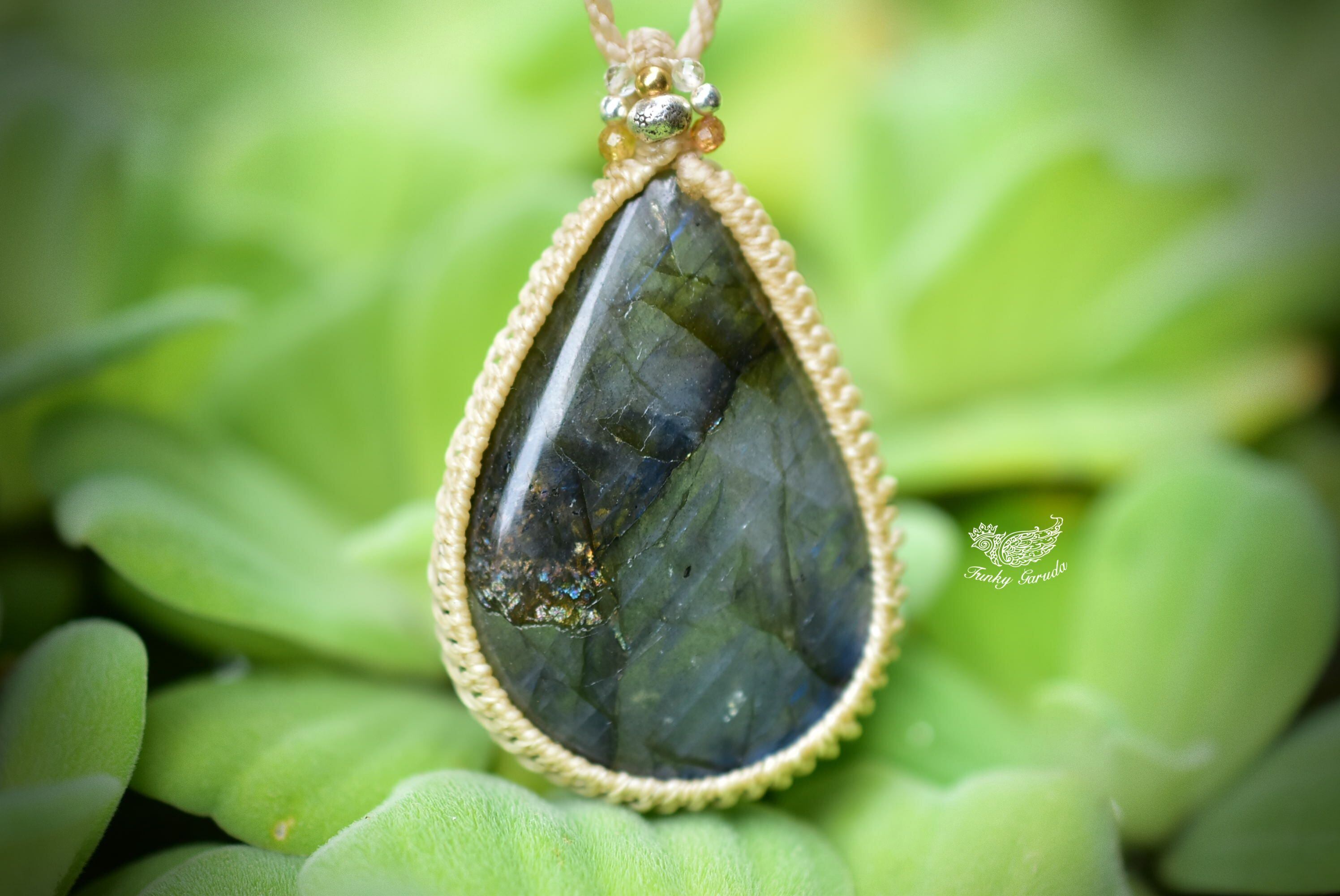 宇宙の涙★高品質★ブルーラブラドライト シンプルマクラメペンダント107