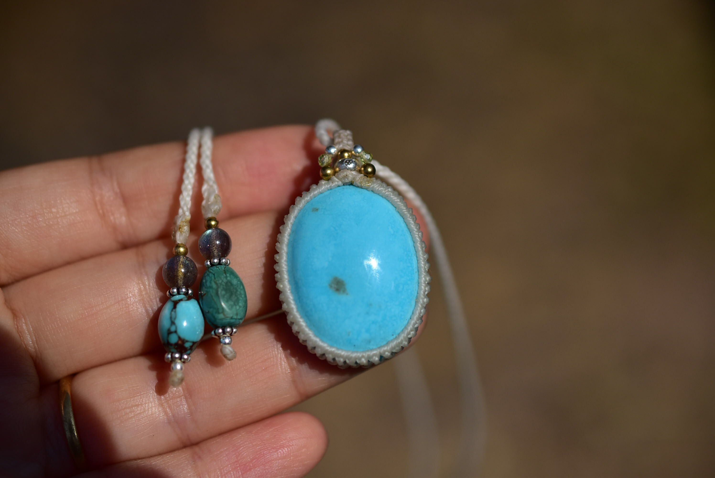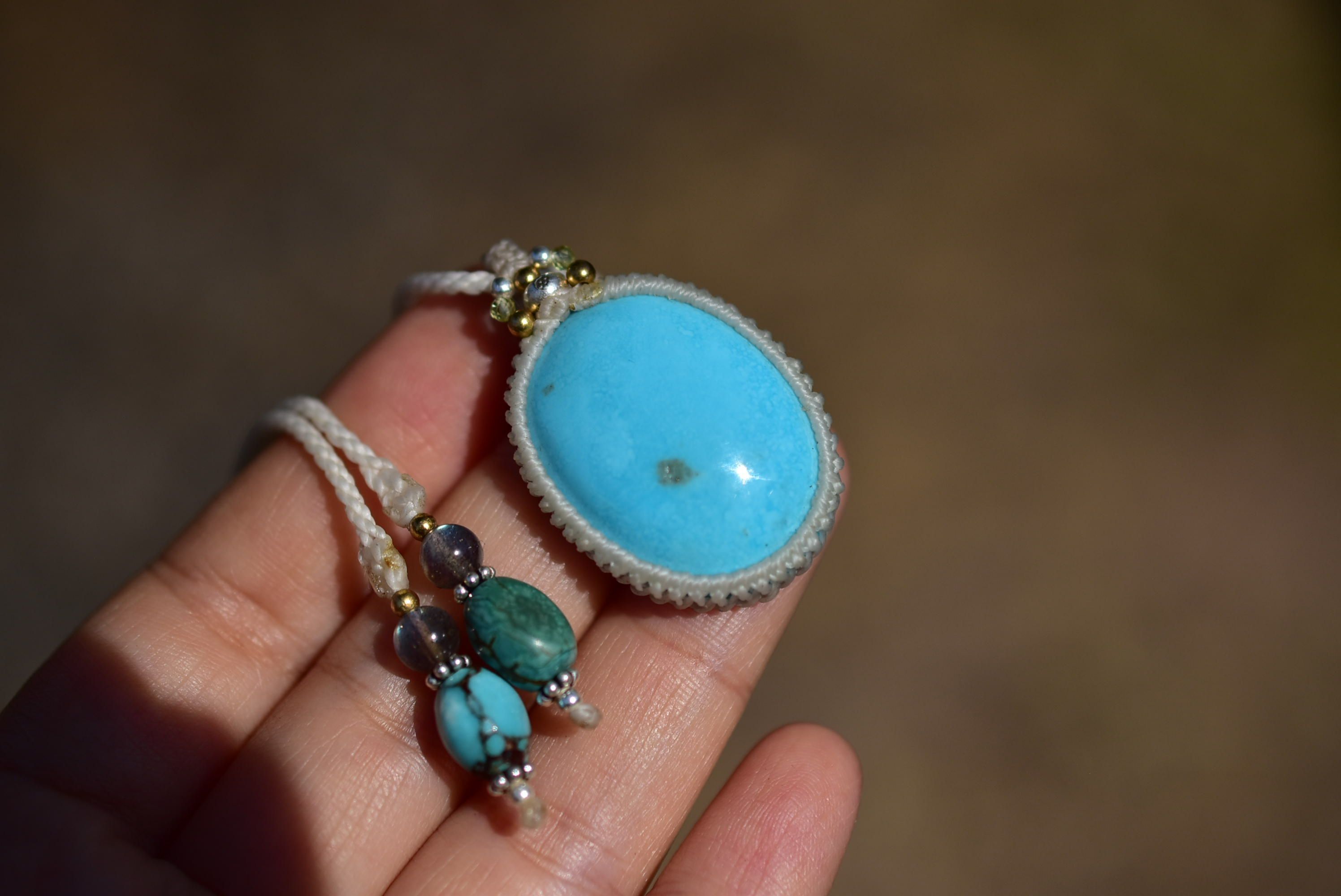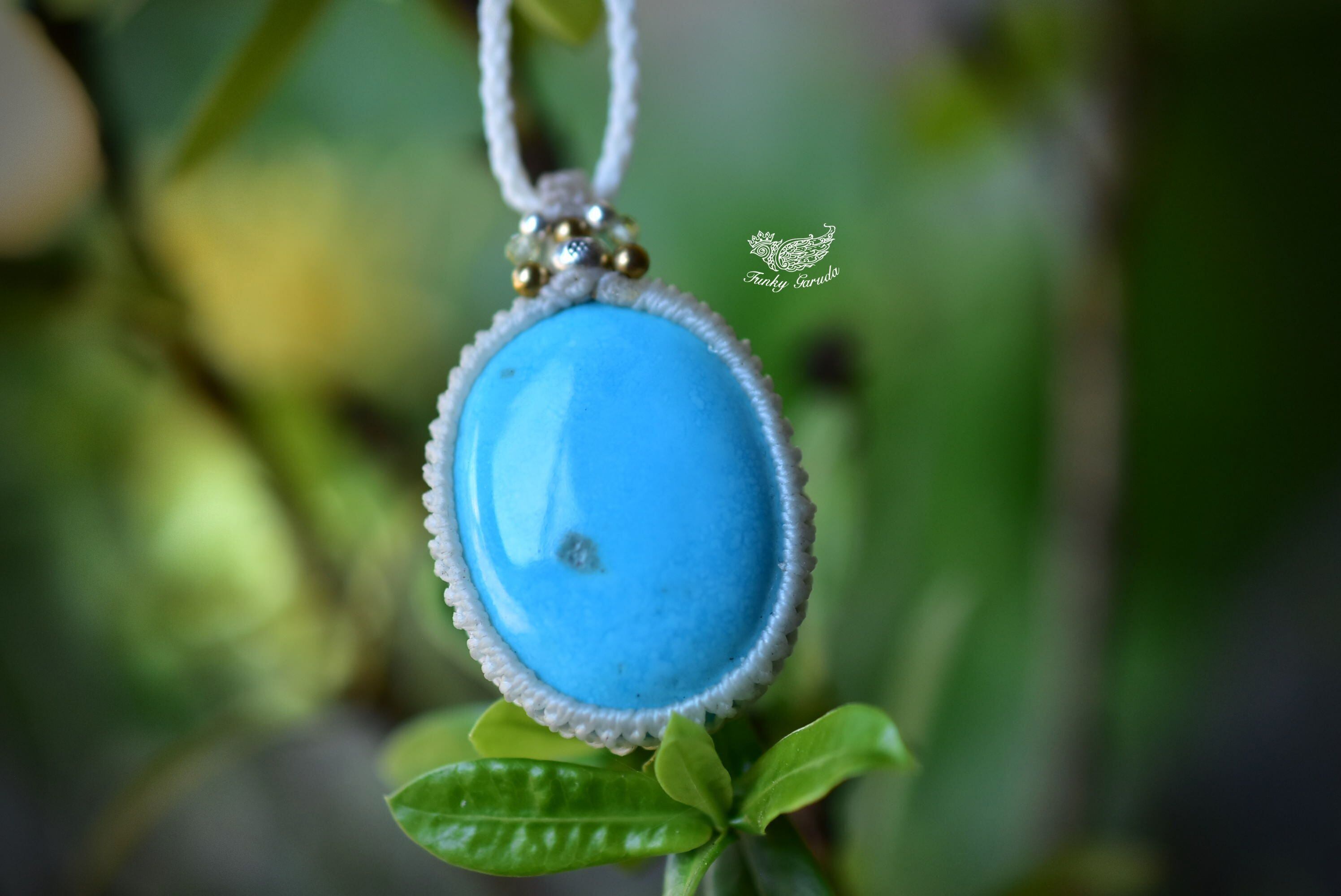 彩色ブルー★スリーピングビューティーターコイズ マクラメペンダント130