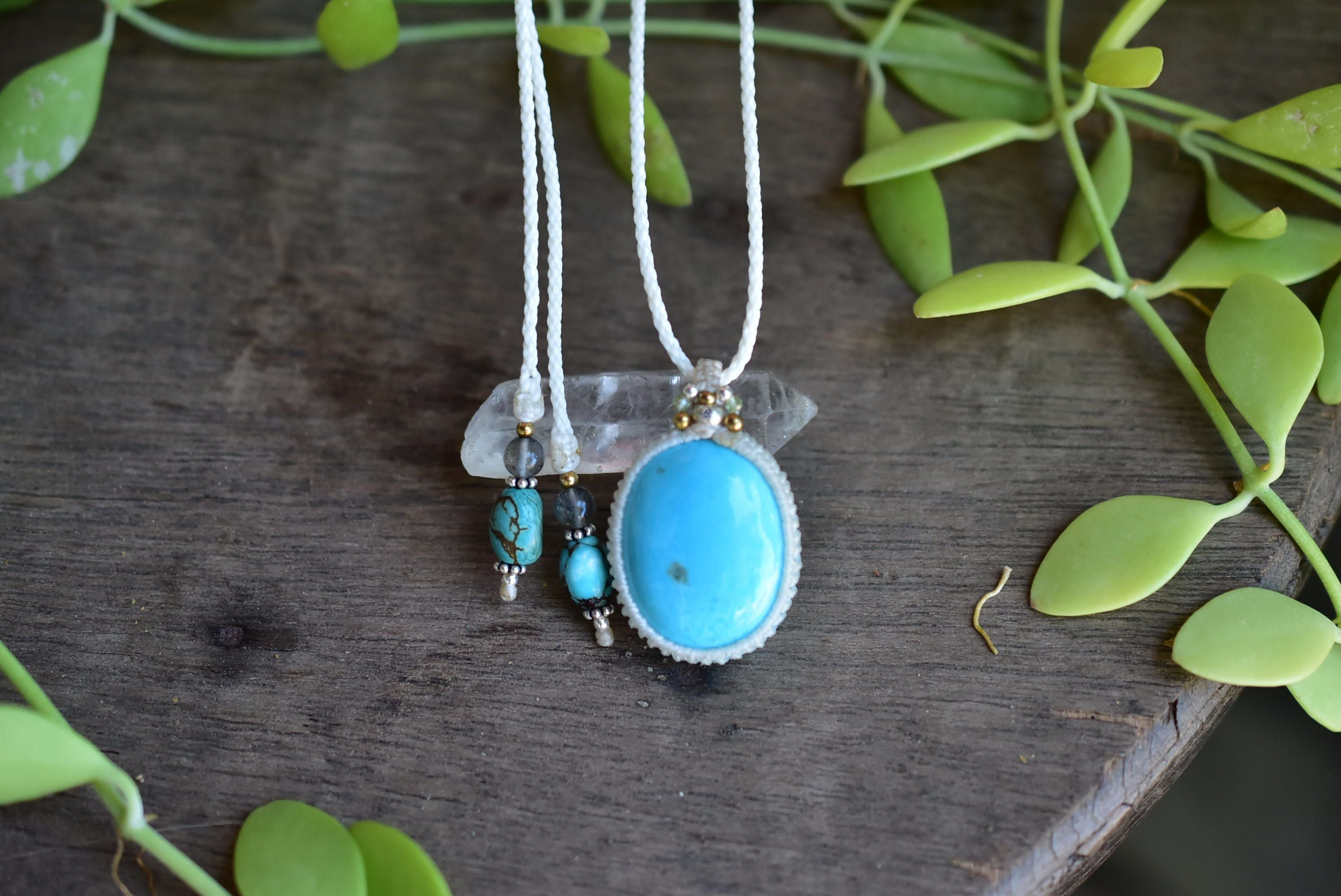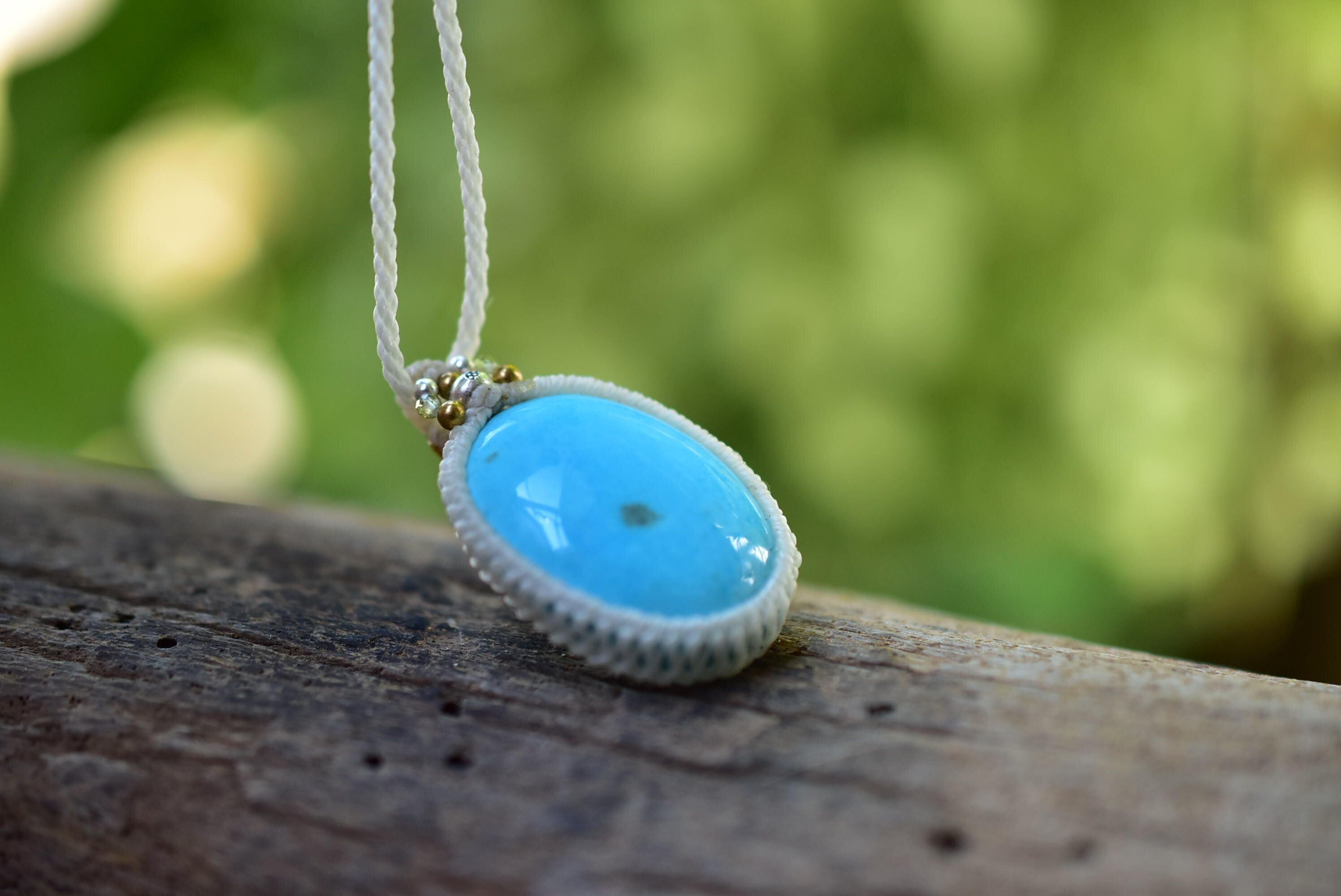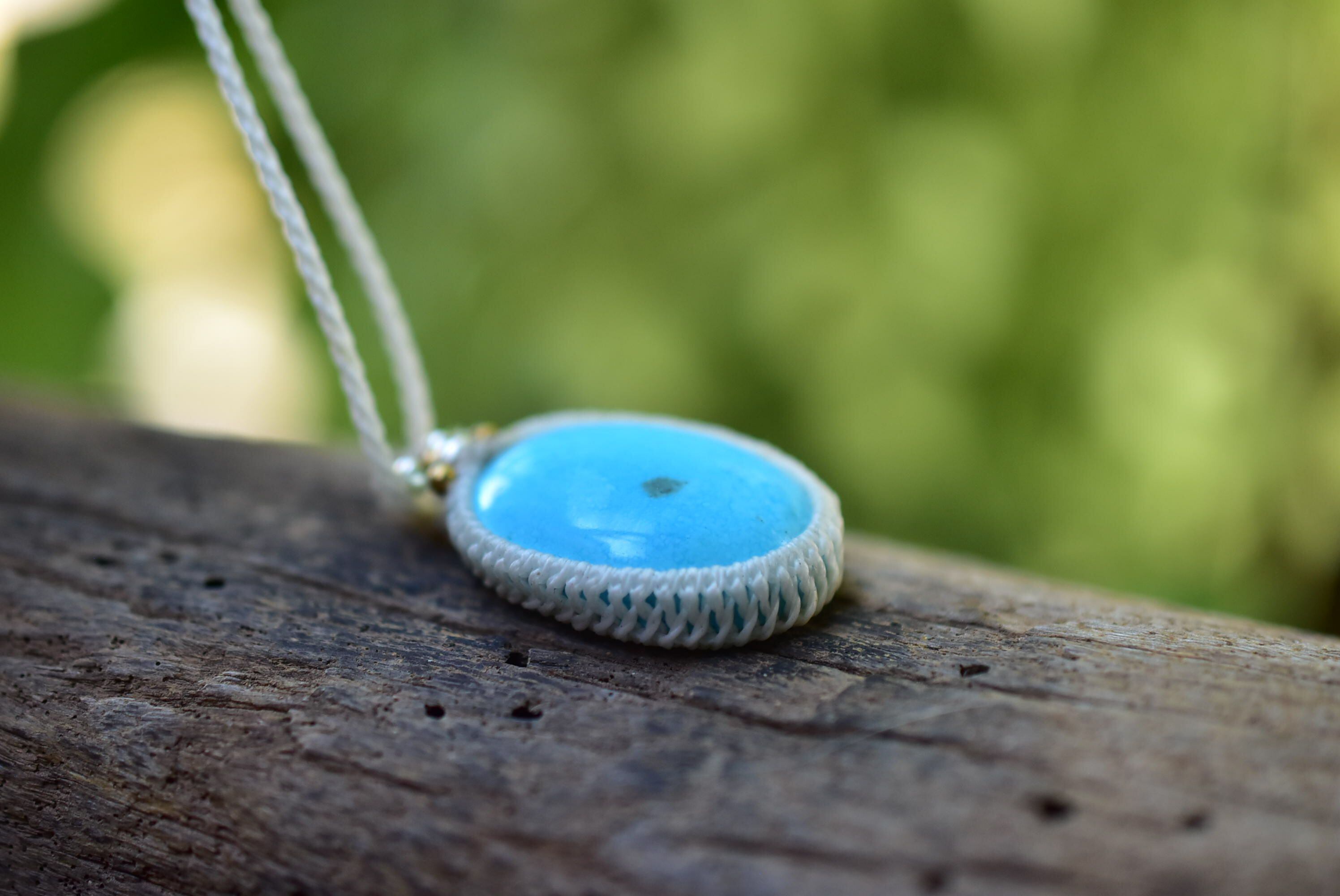 彩色ブルー★スリーピングビューティーターコイズ マクラメペンダント130