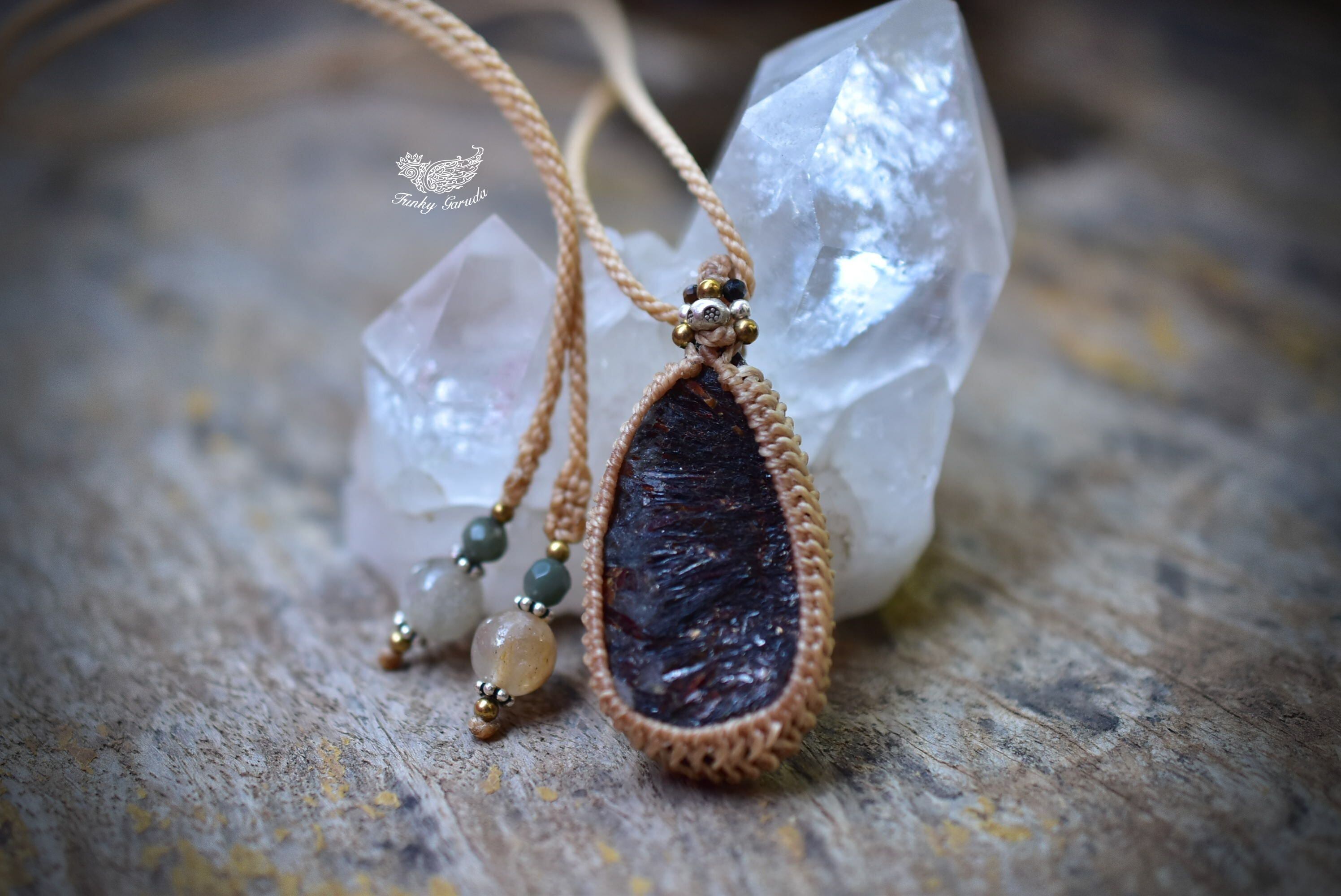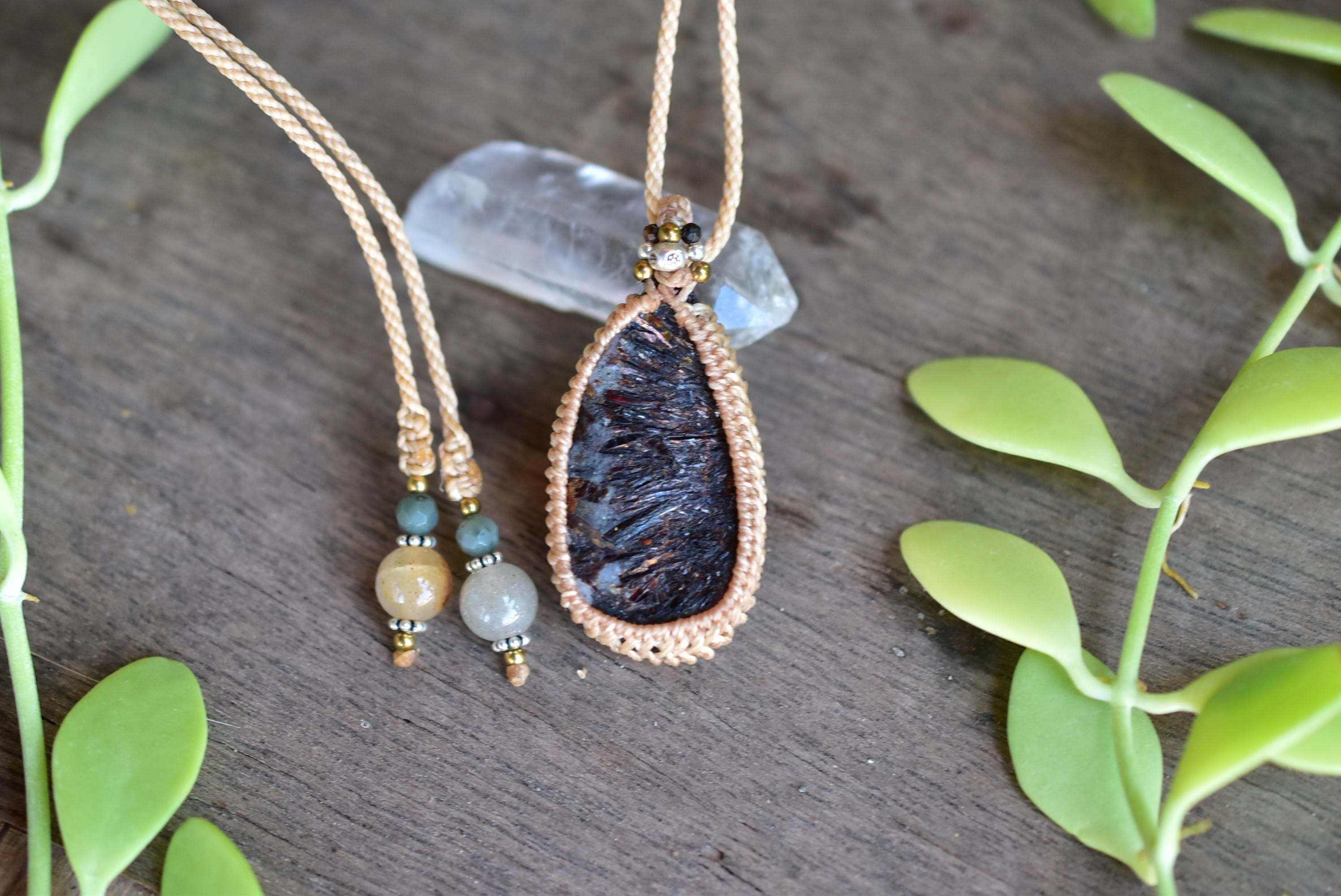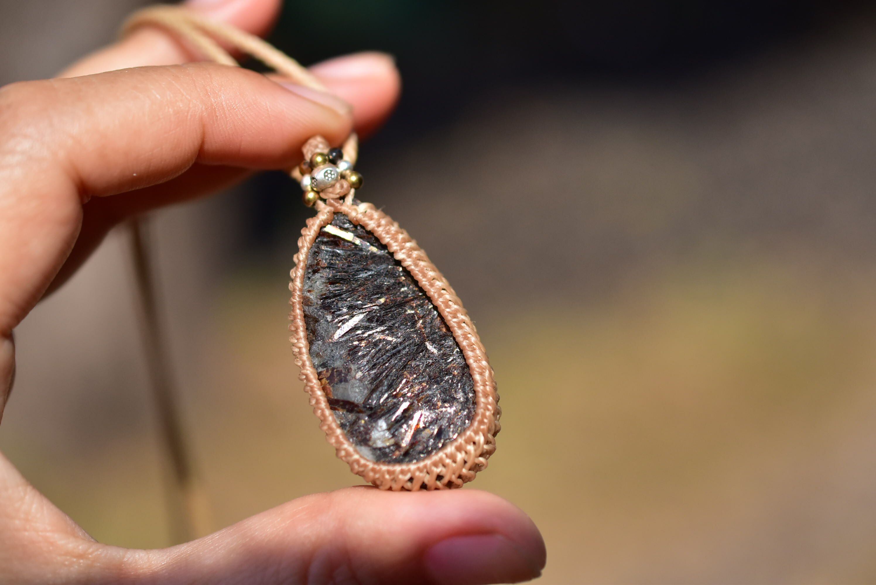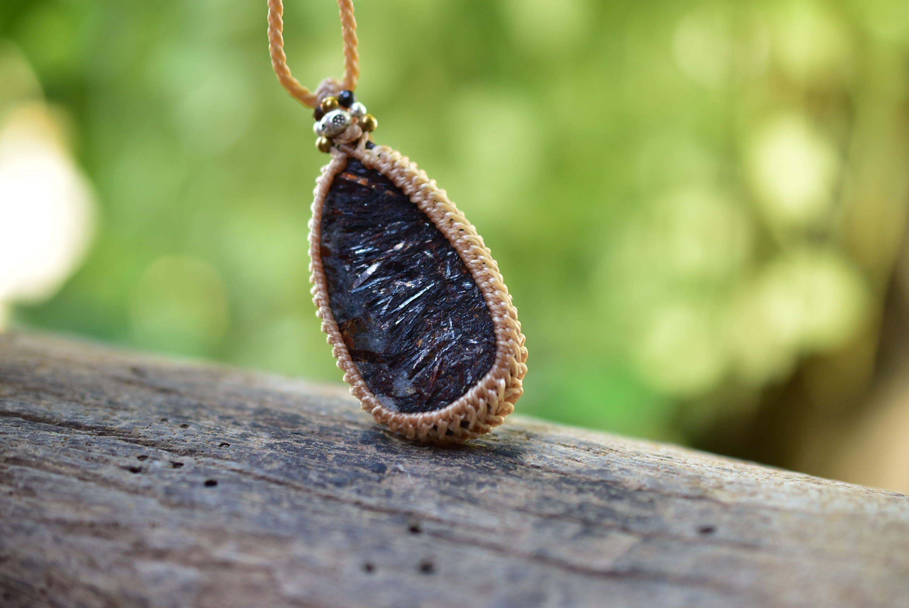 秘められた炎★アストロフィライト原石 シンプルマクラメペンダント131