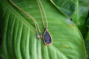 ナチュラルな味わい感じる原石をシンプルなマクラメ編みに仕上げました。