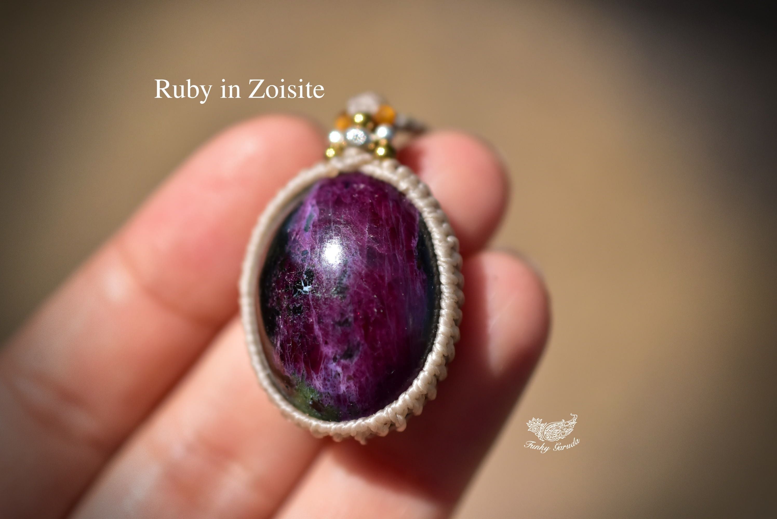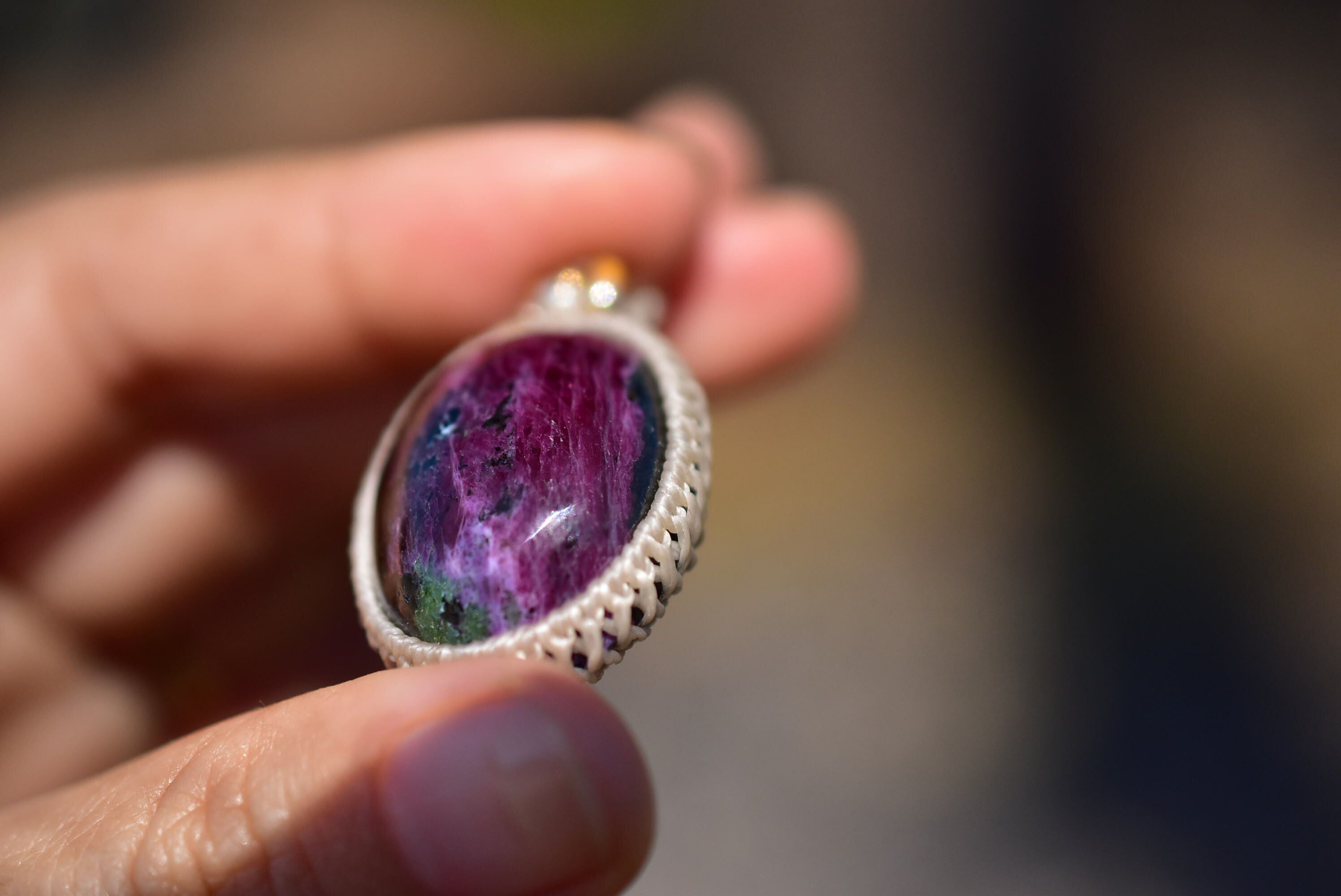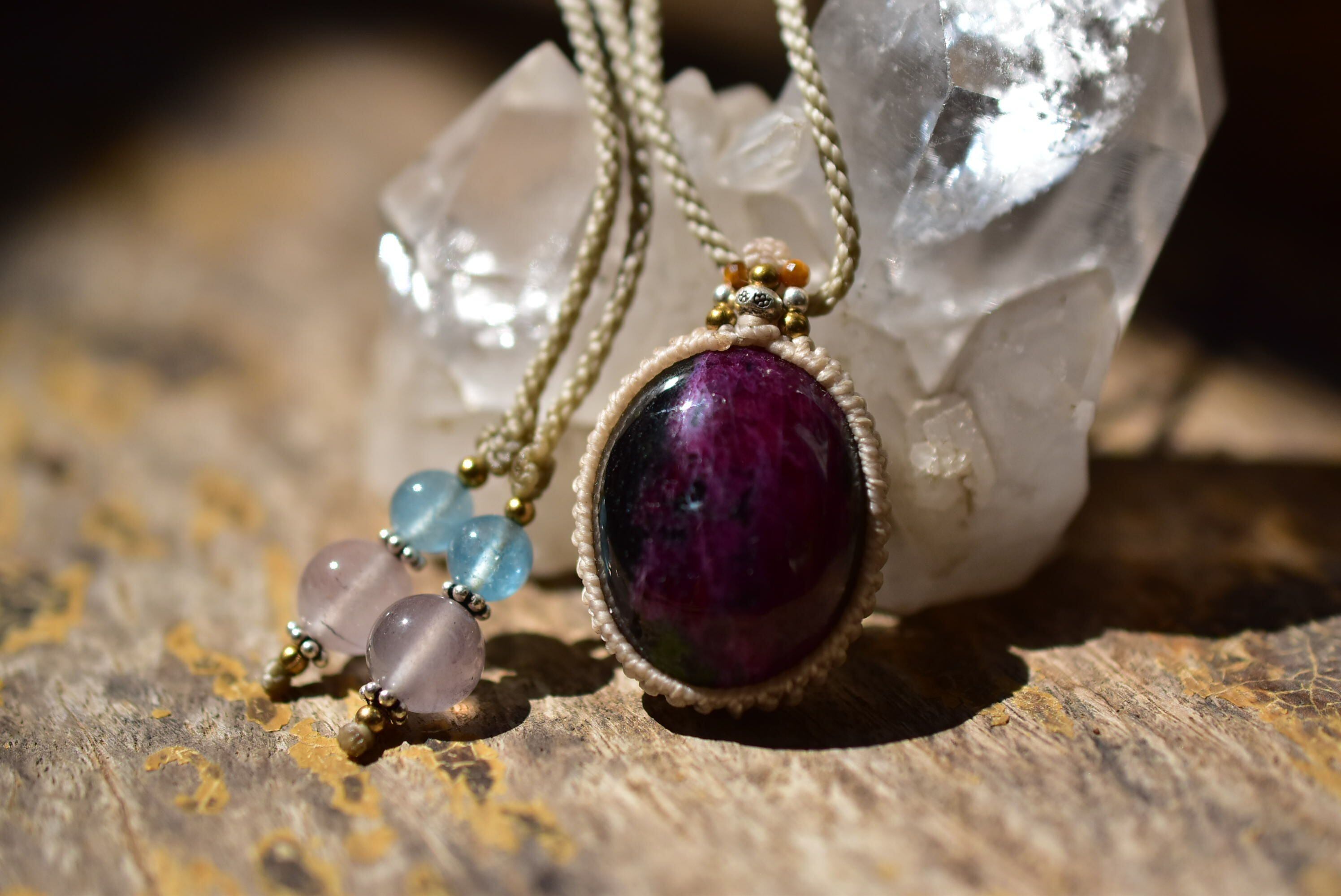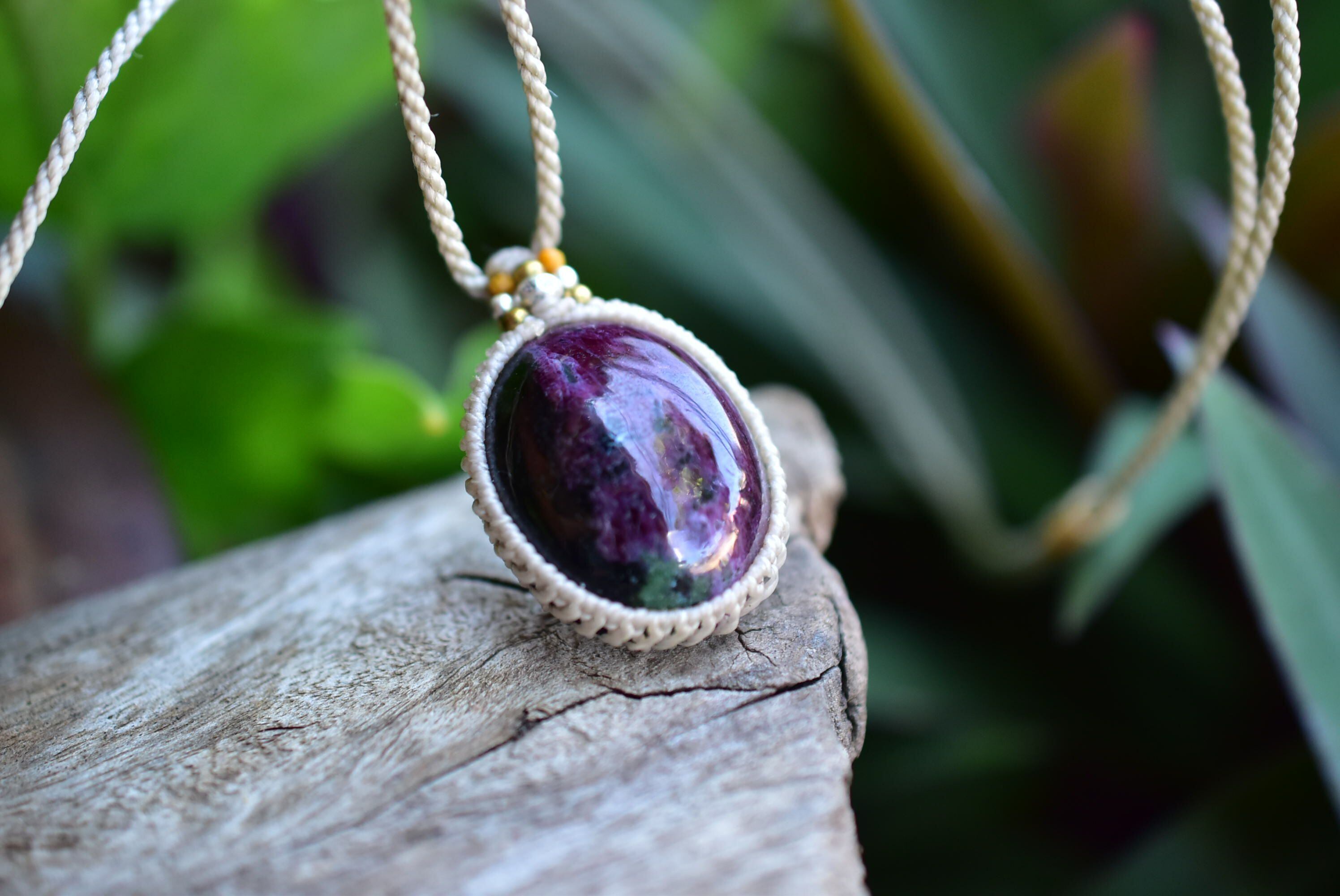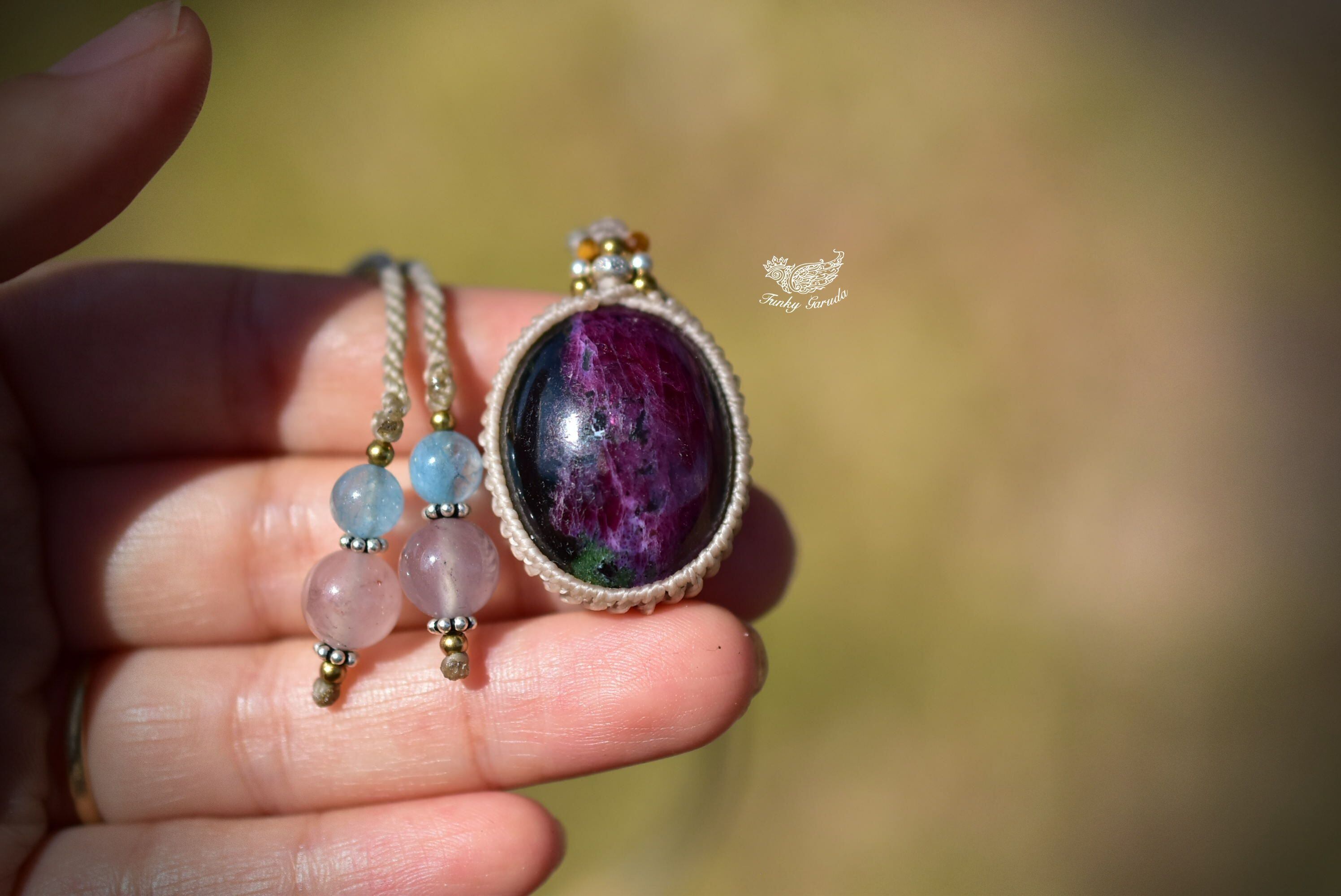 ルビー多め★ルビーインゾイサイト マクラメペンダント133