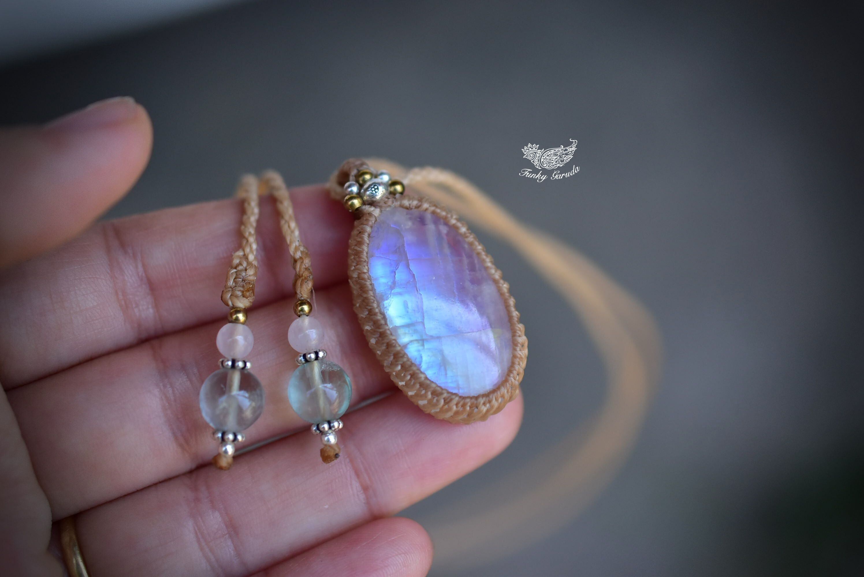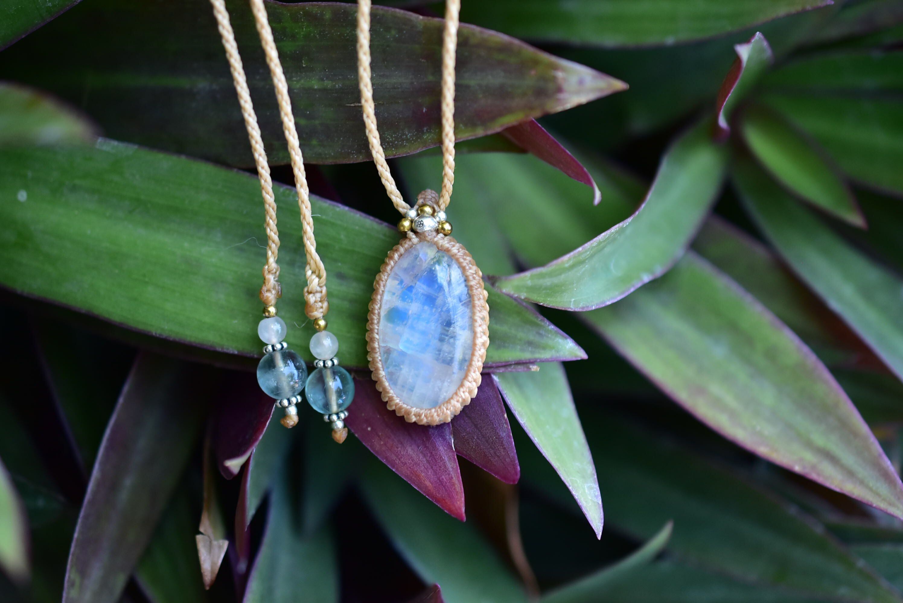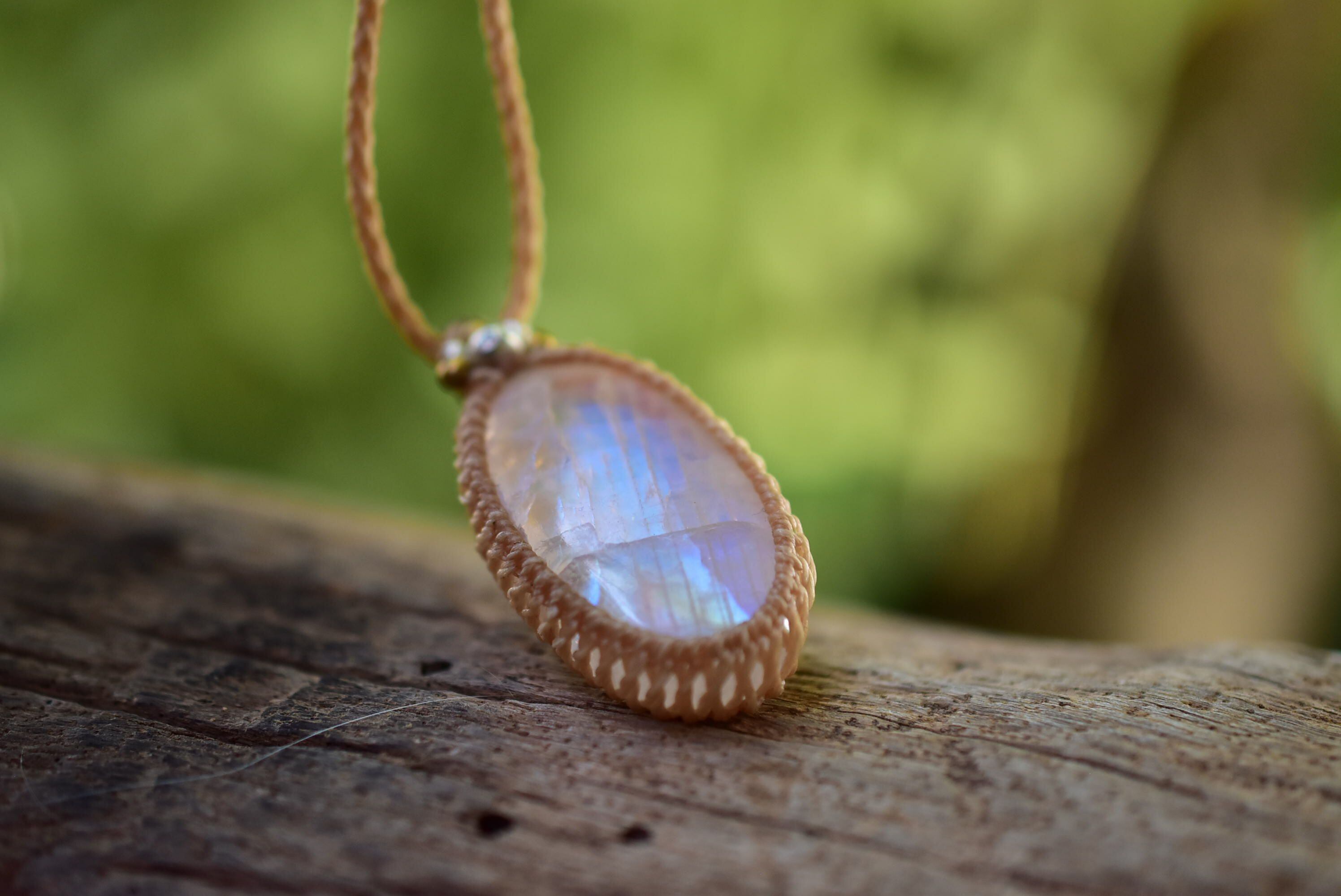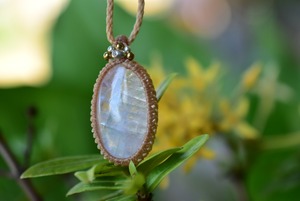 透明感★高品質★レインボームーンストーン シンプルマクラメペンダント135