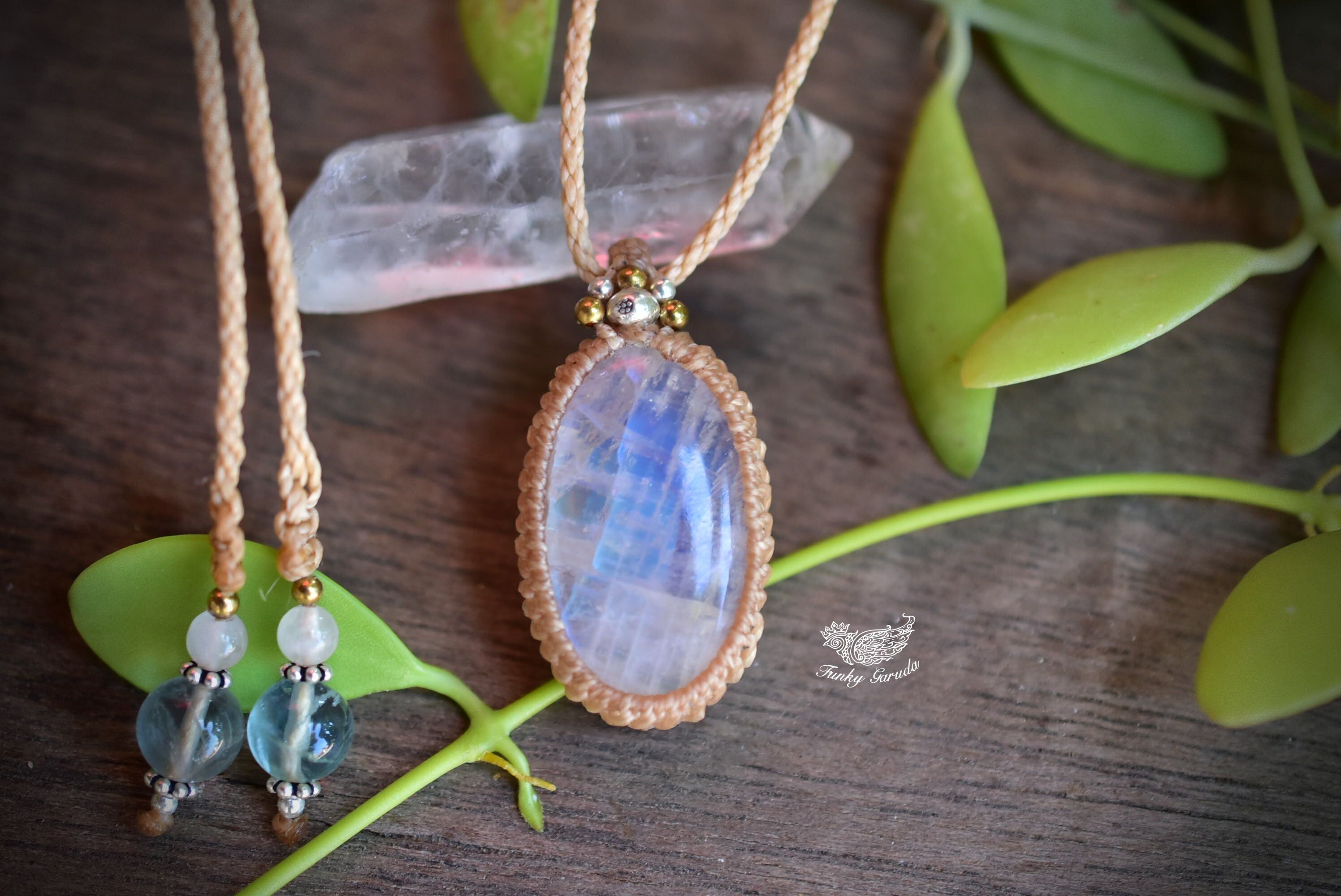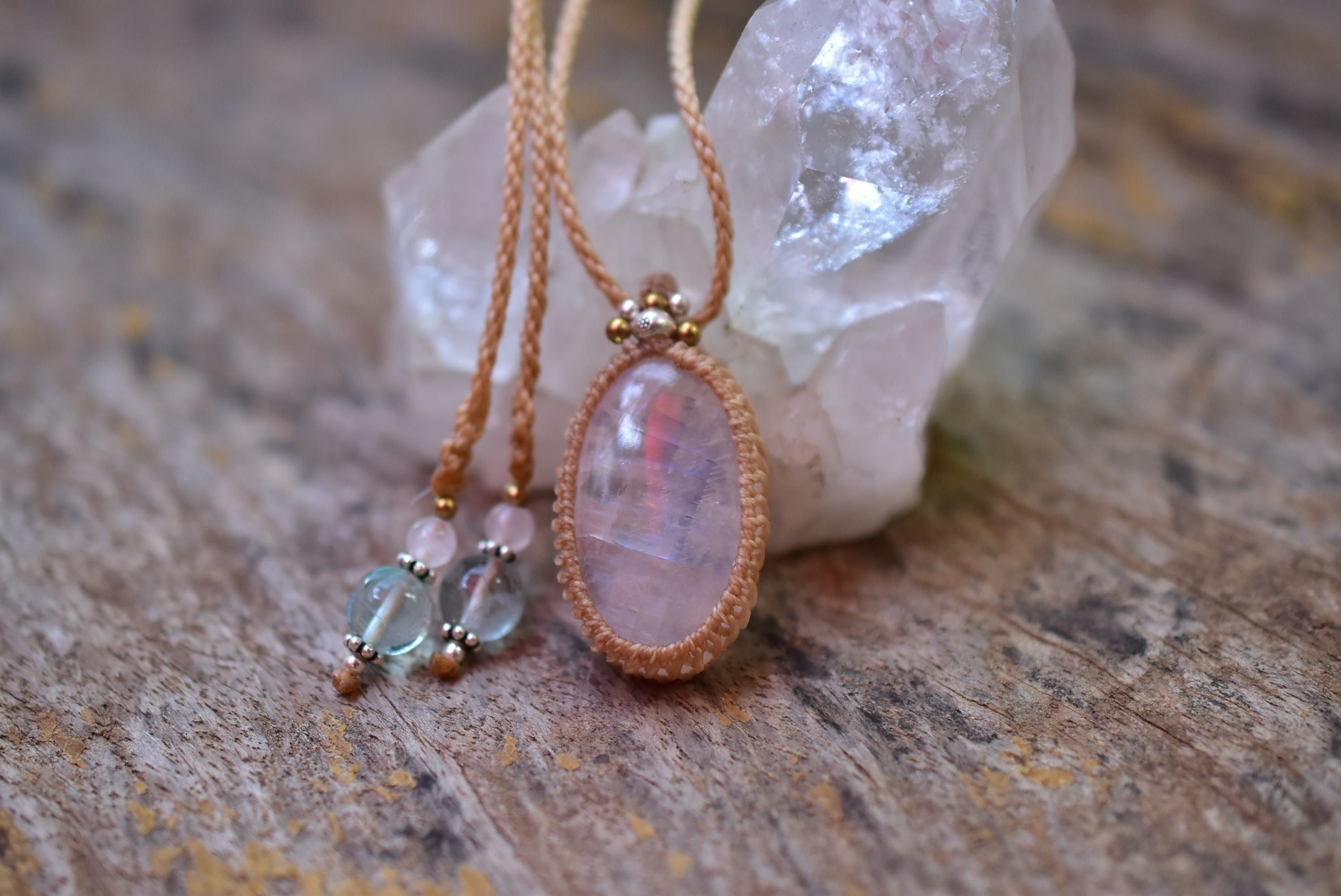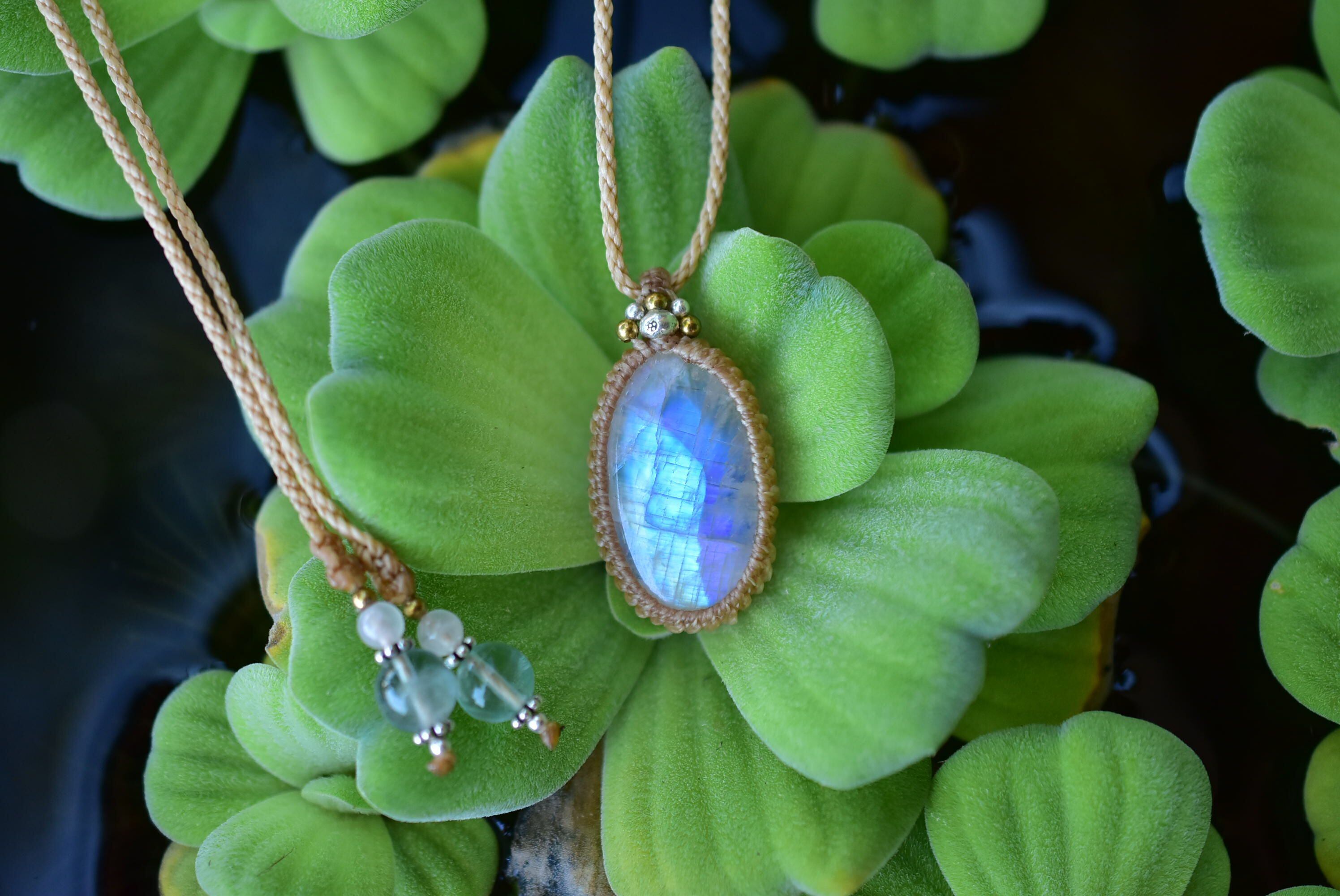 透明感★高品質★レインボームーンストーン シンプルマクラメペンダント135