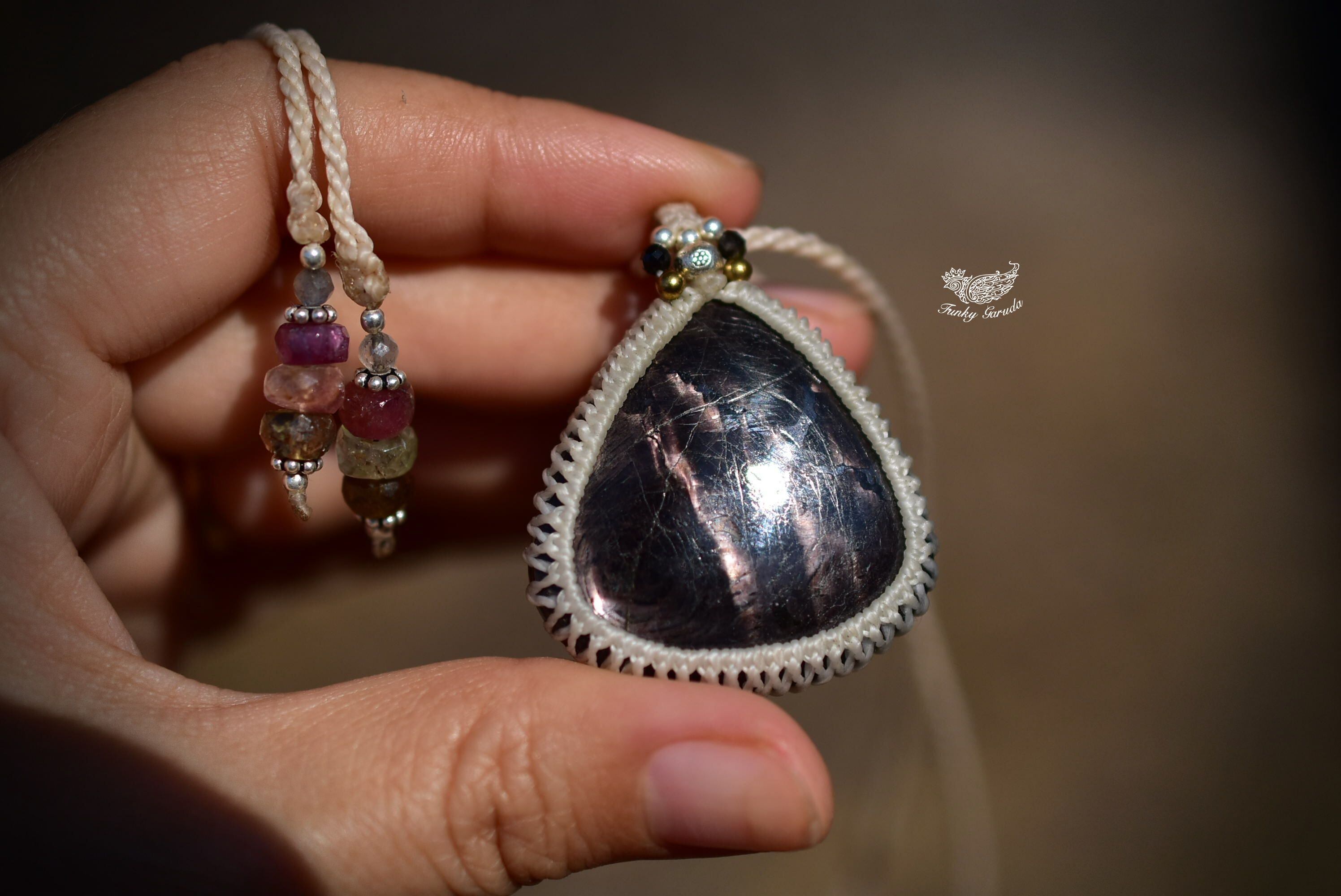 漆黒の煌めき★ハイパーシーン マクラメペンダント136
