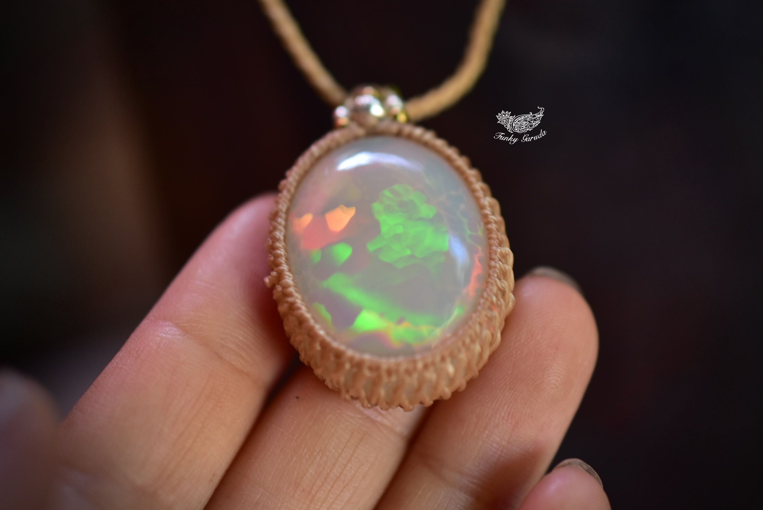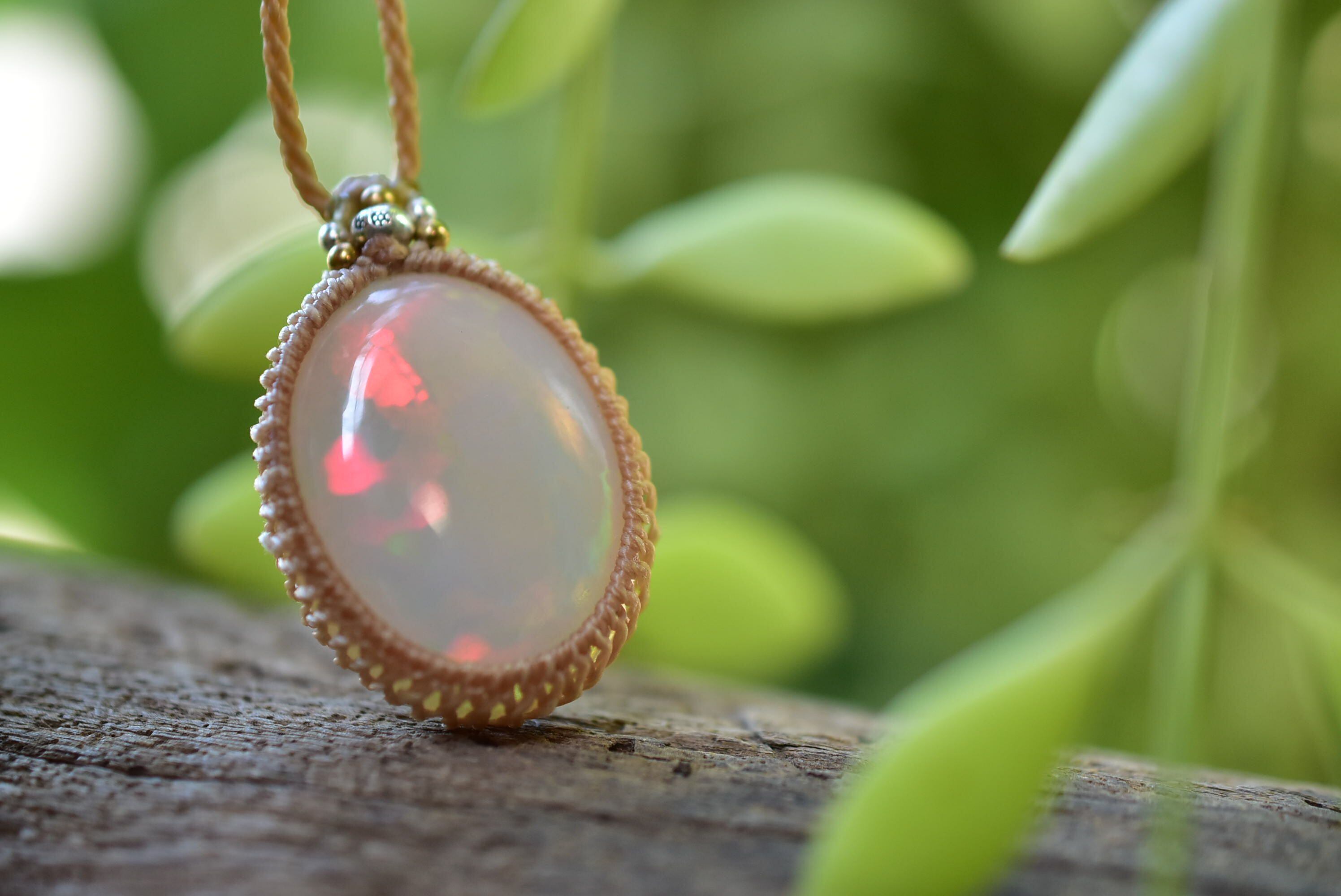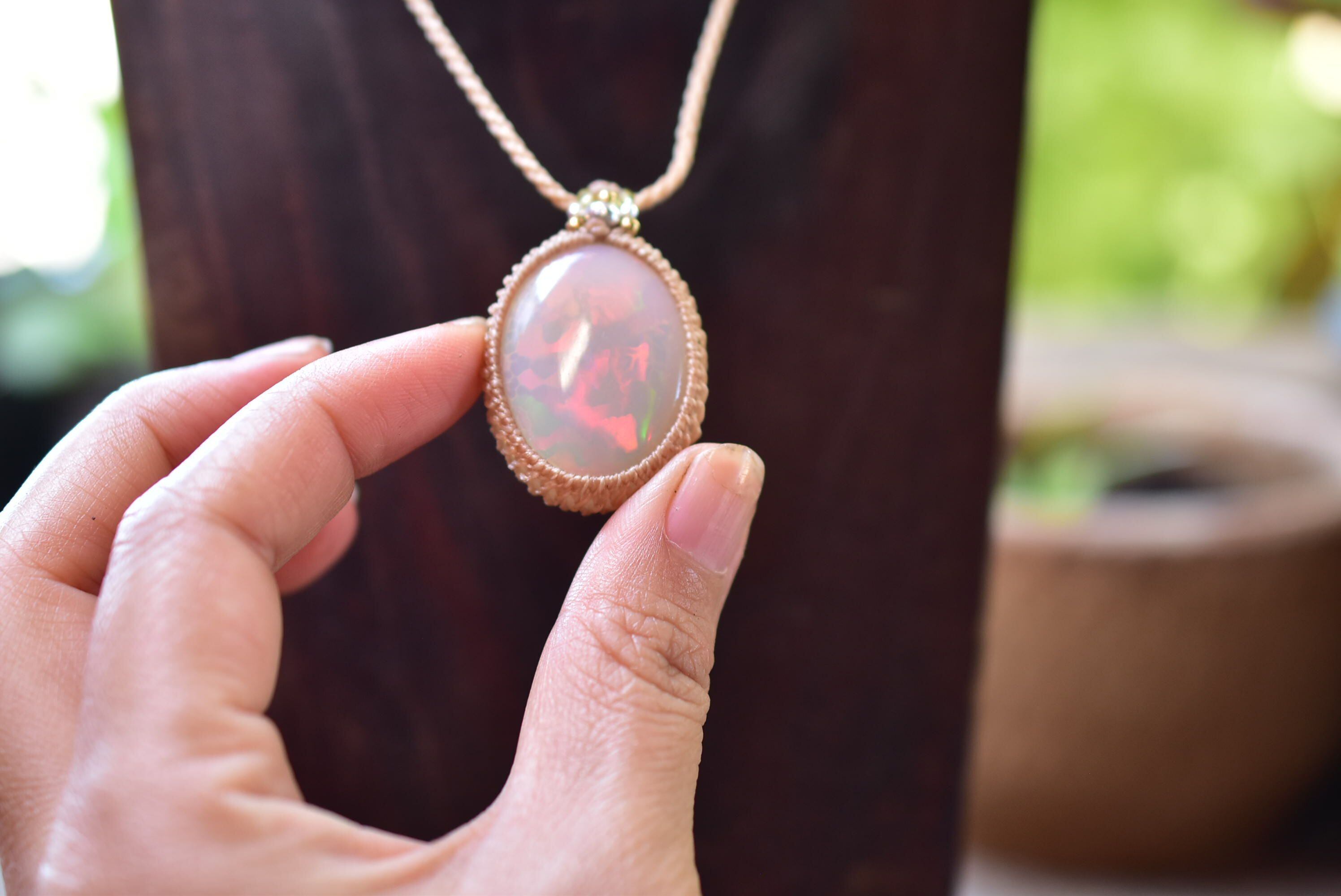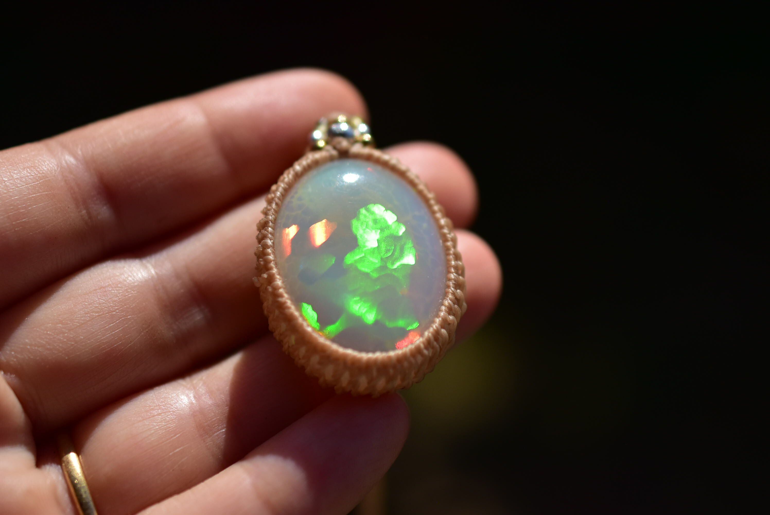 大粒★35.6ct★華火の揺らめき★プレシャスオパール マクラメペンダント138