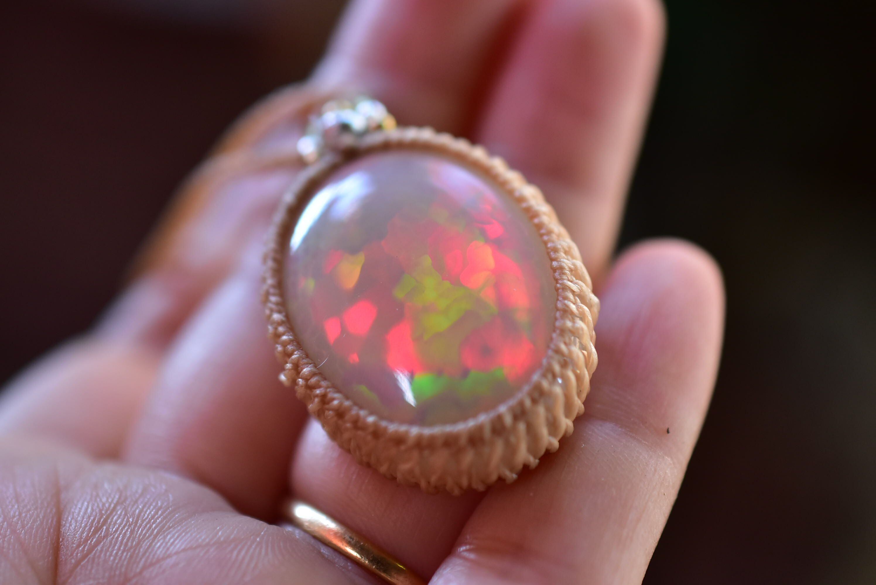 レッドやグリーン、イエローなどの遊色が、次々と顔を出して煌めくオパール