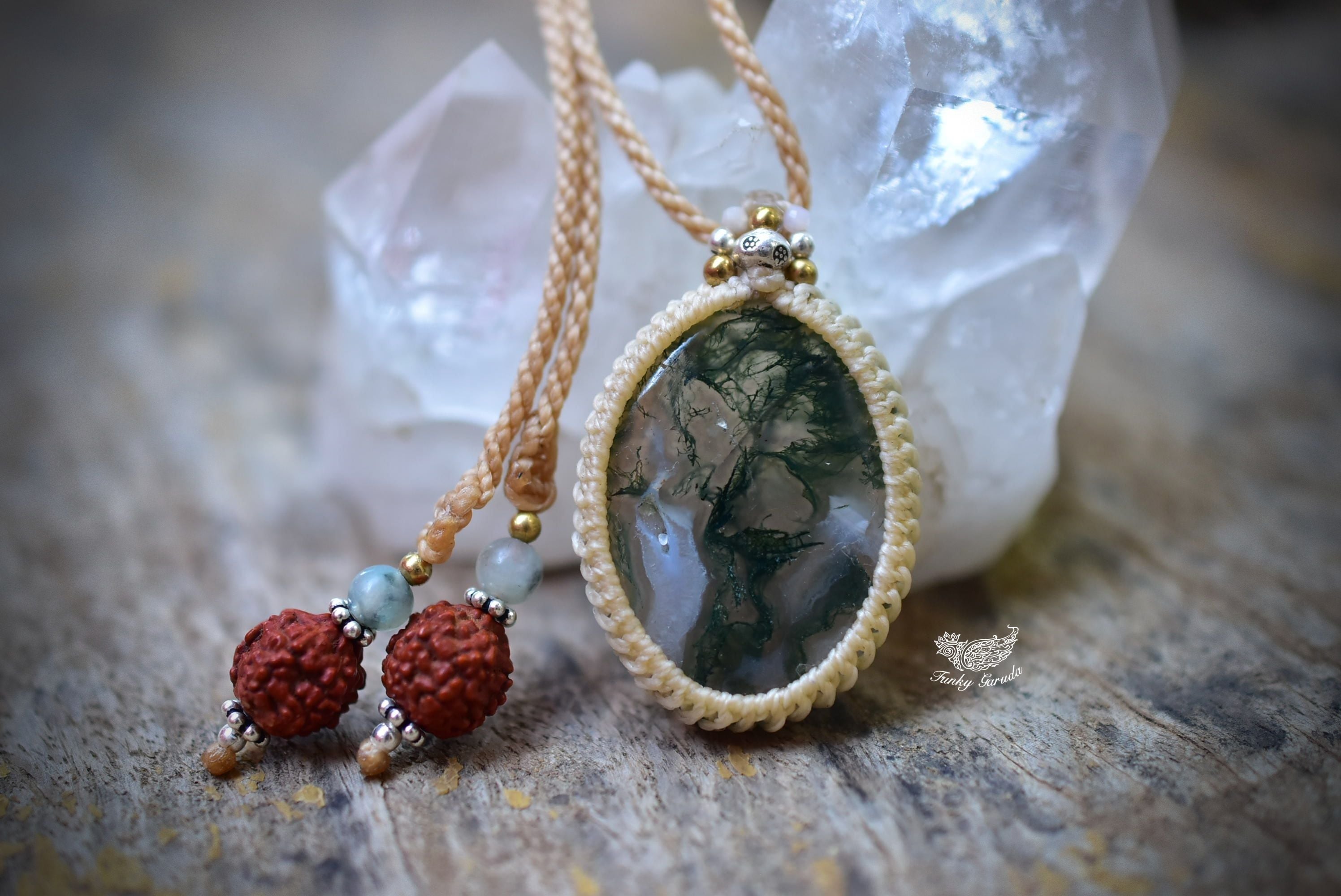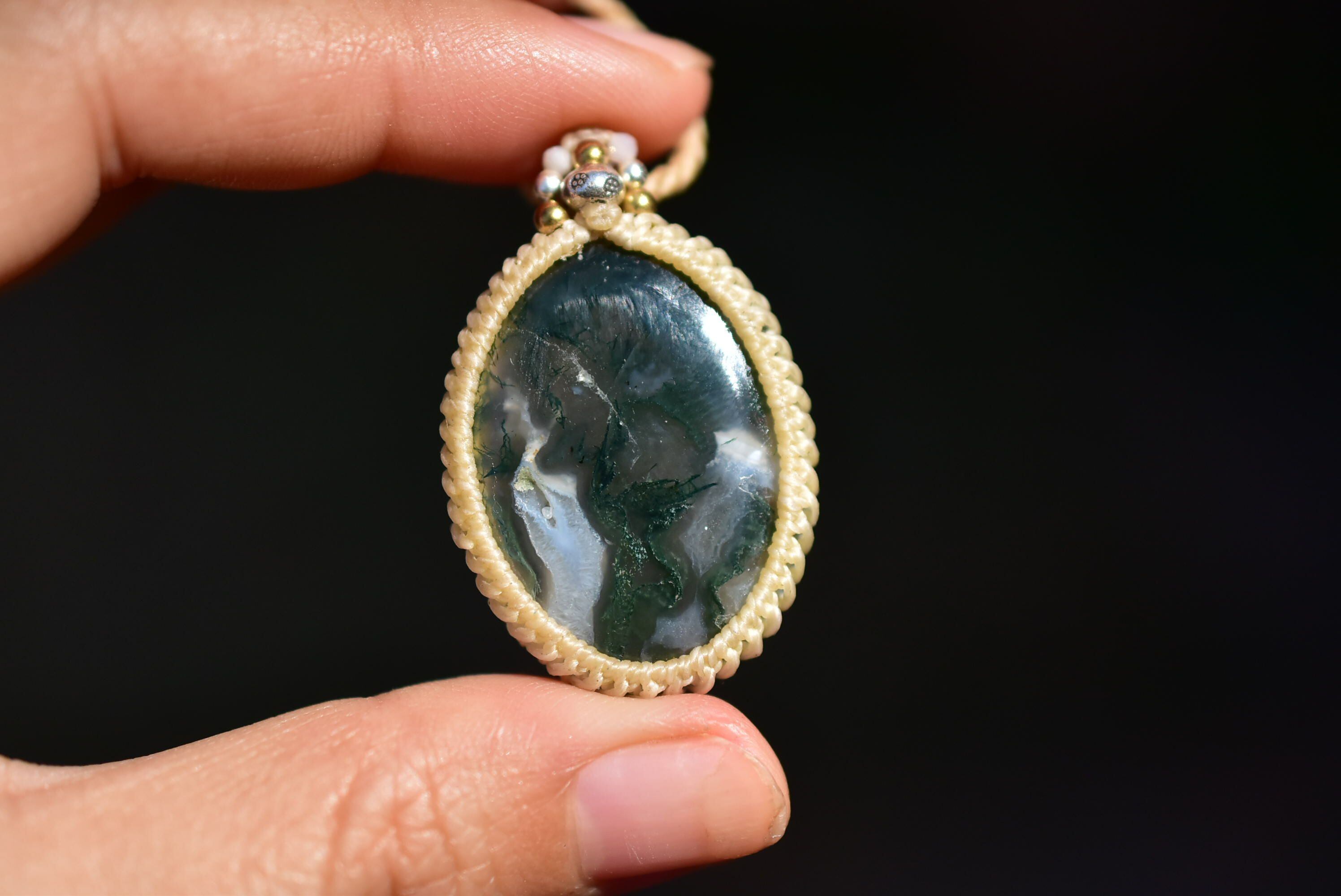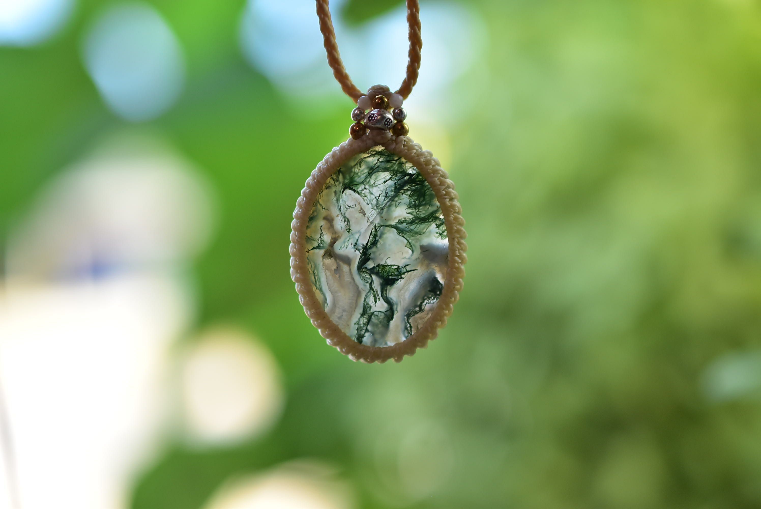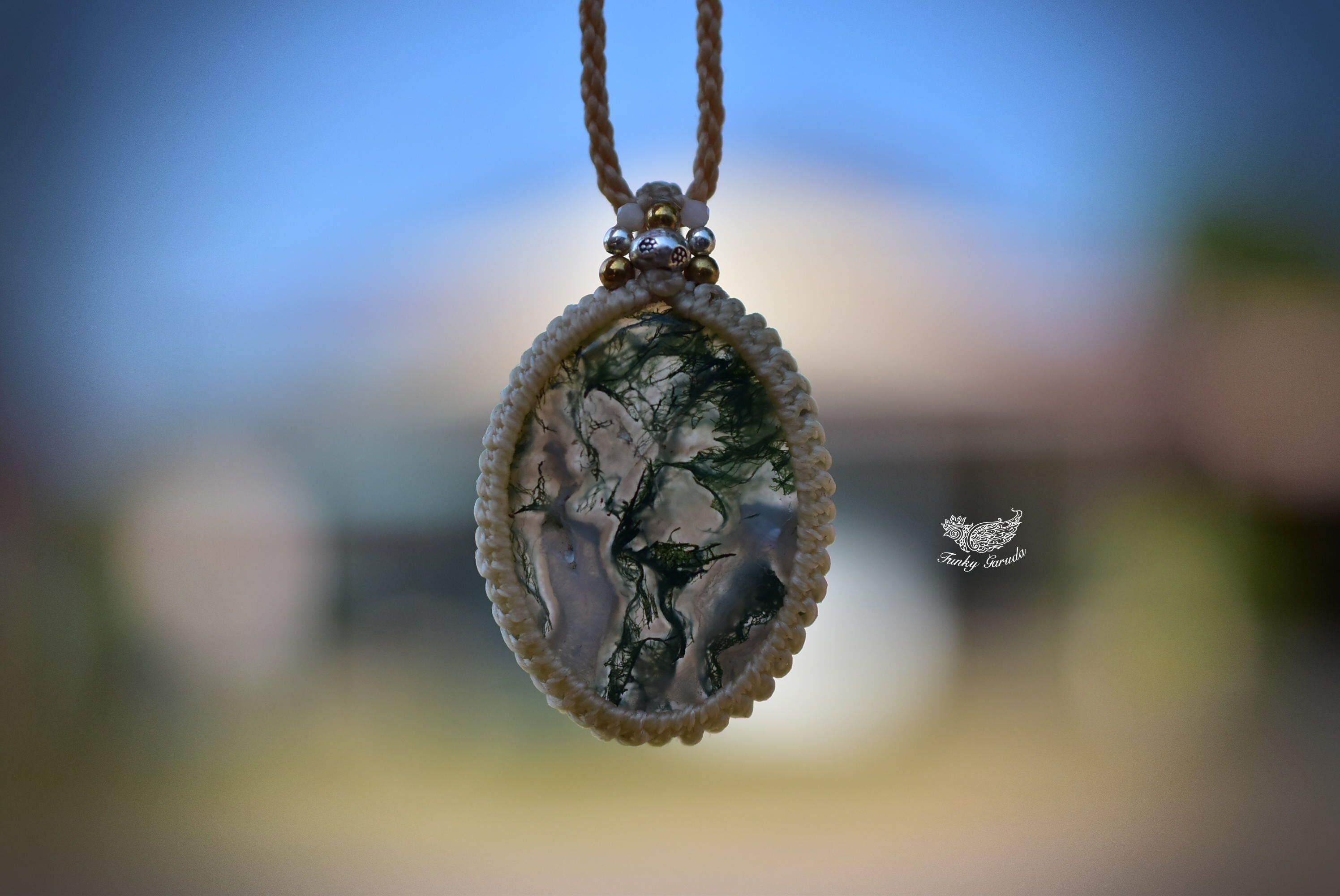 立ち昇る緑の煙★モスアゲートマクラメペンダント141