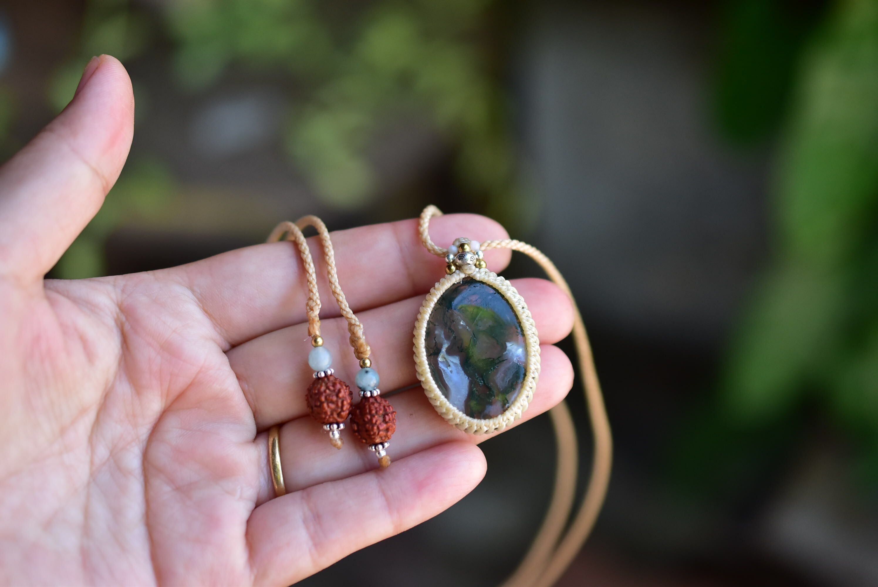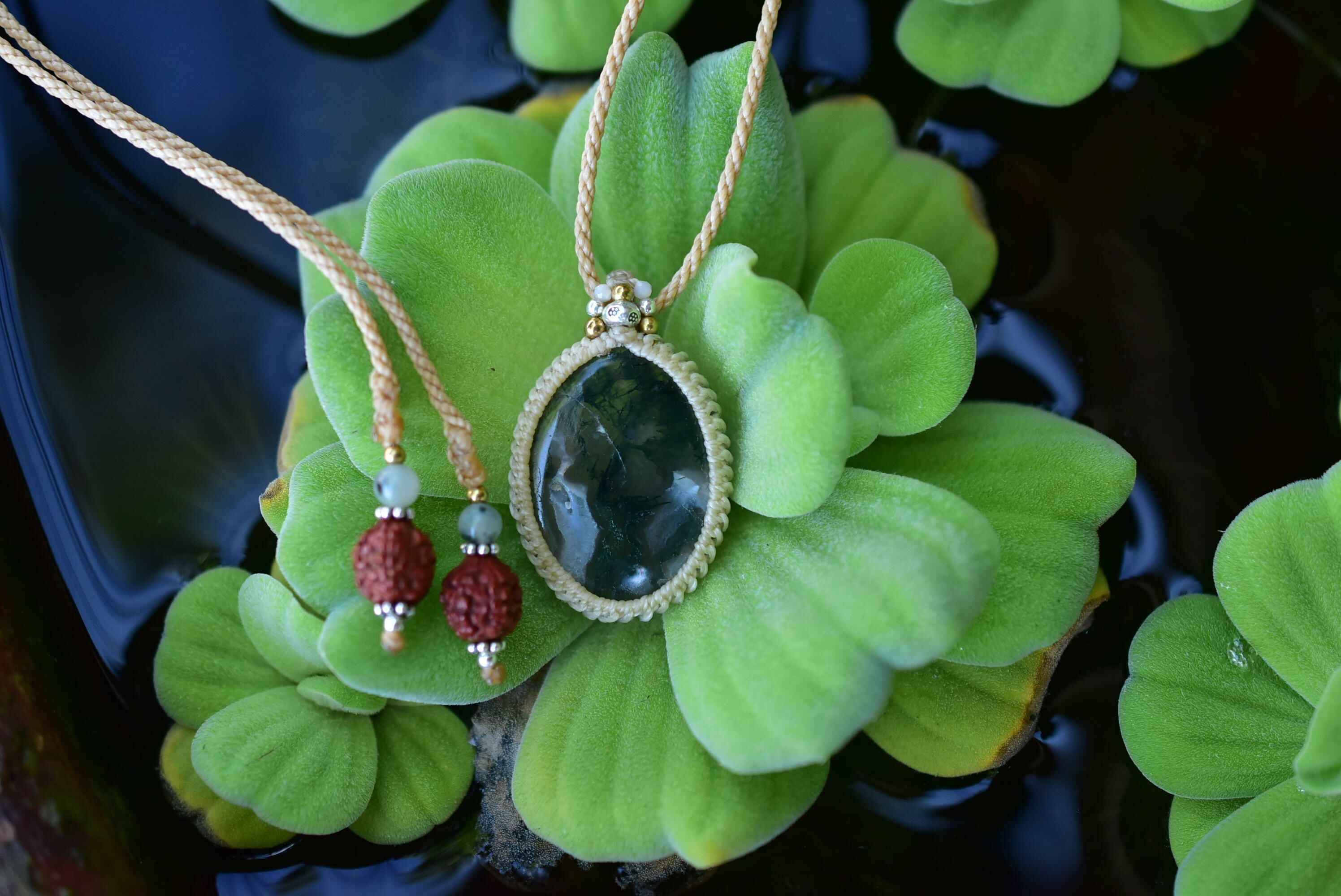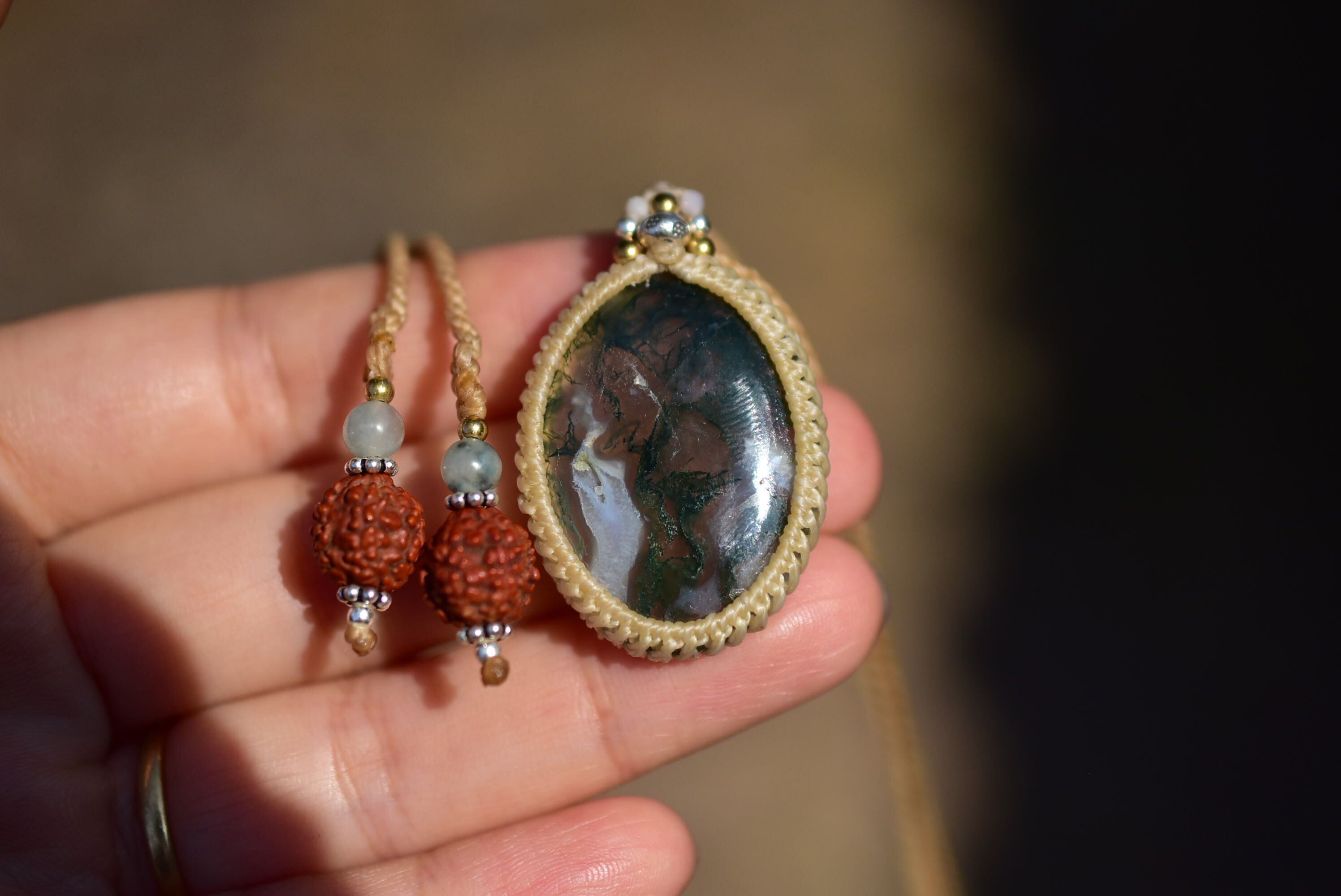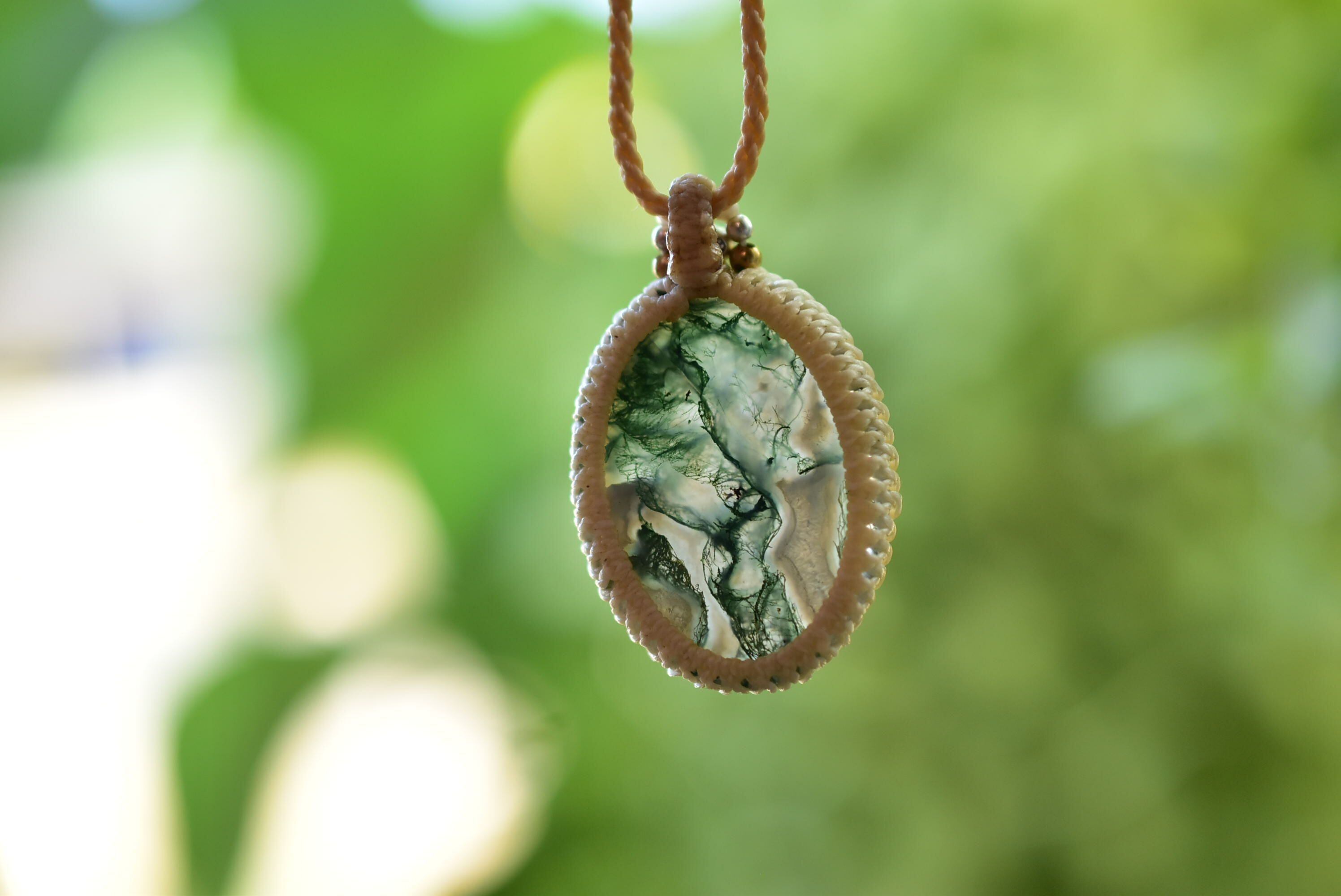 立ち昇る緑の煙★モスアゲートマクラメペンダント141