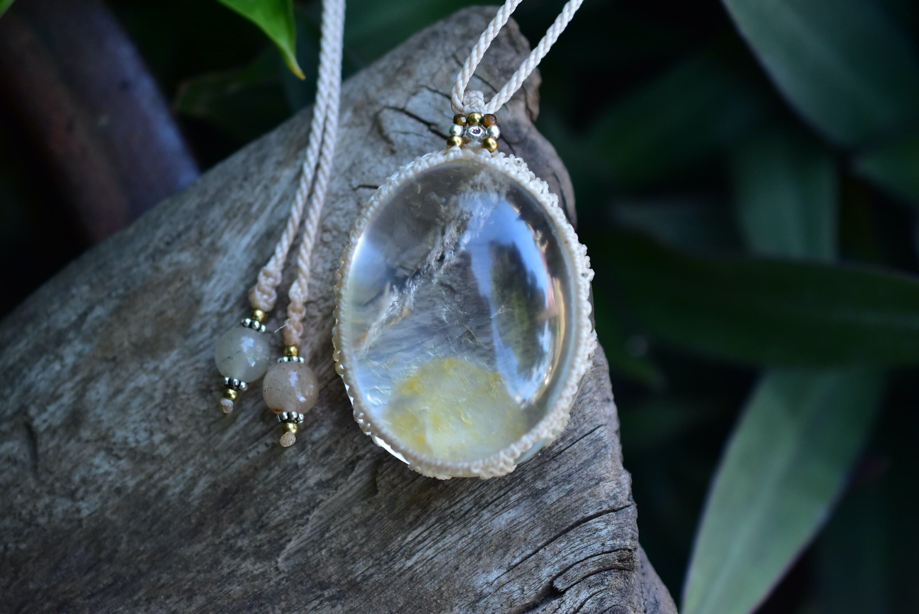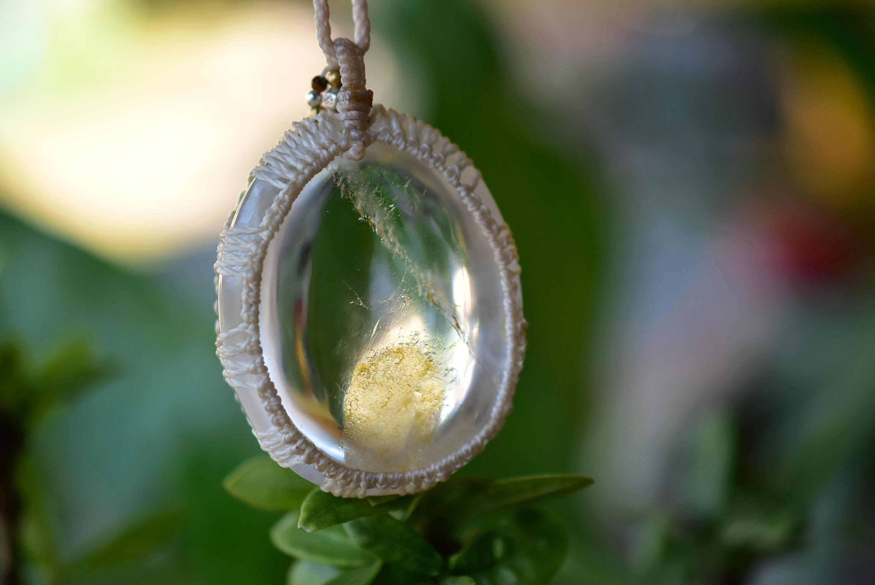 大粒★分かれる世界★クラックガーデンクォーツ マクラメペンダント142