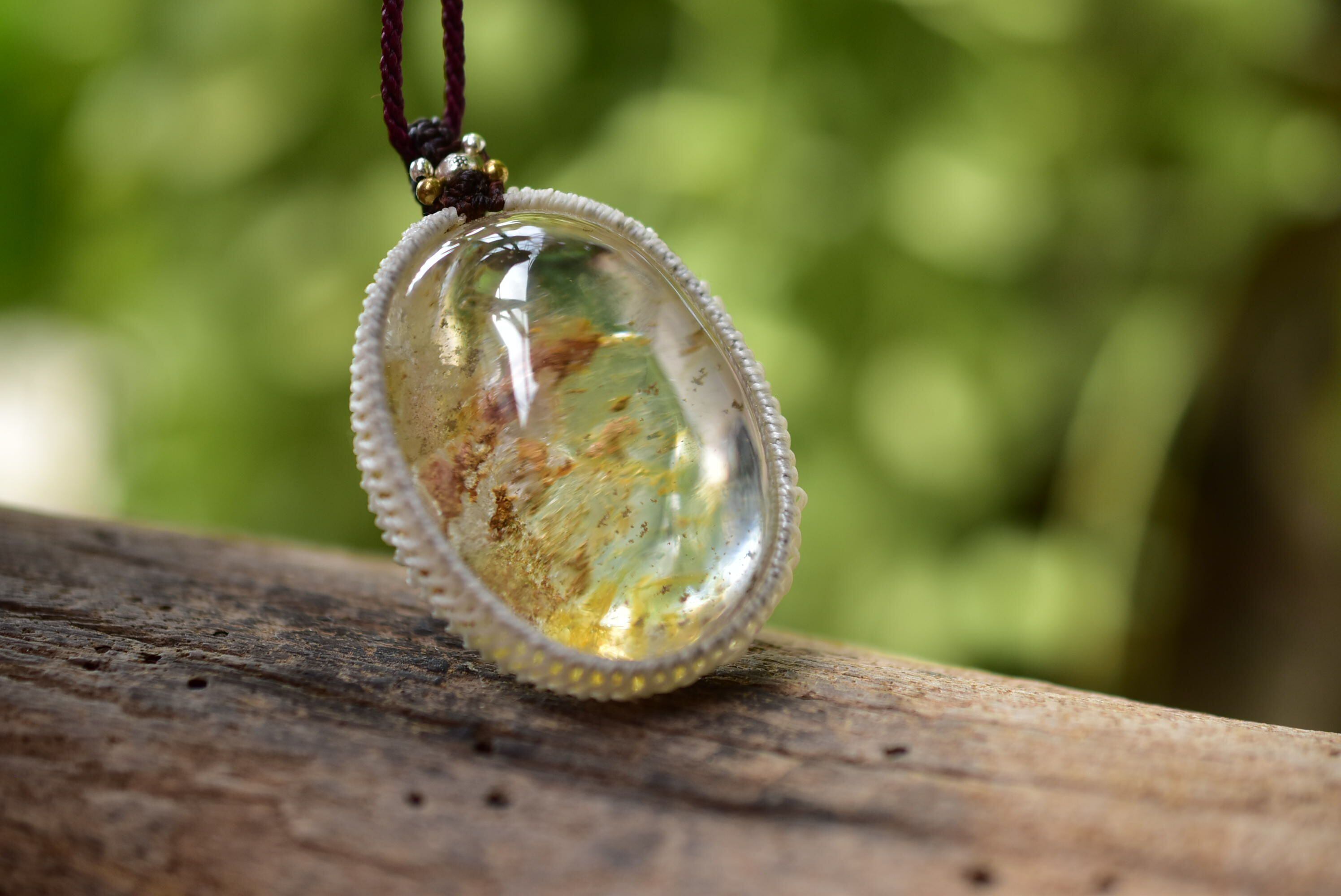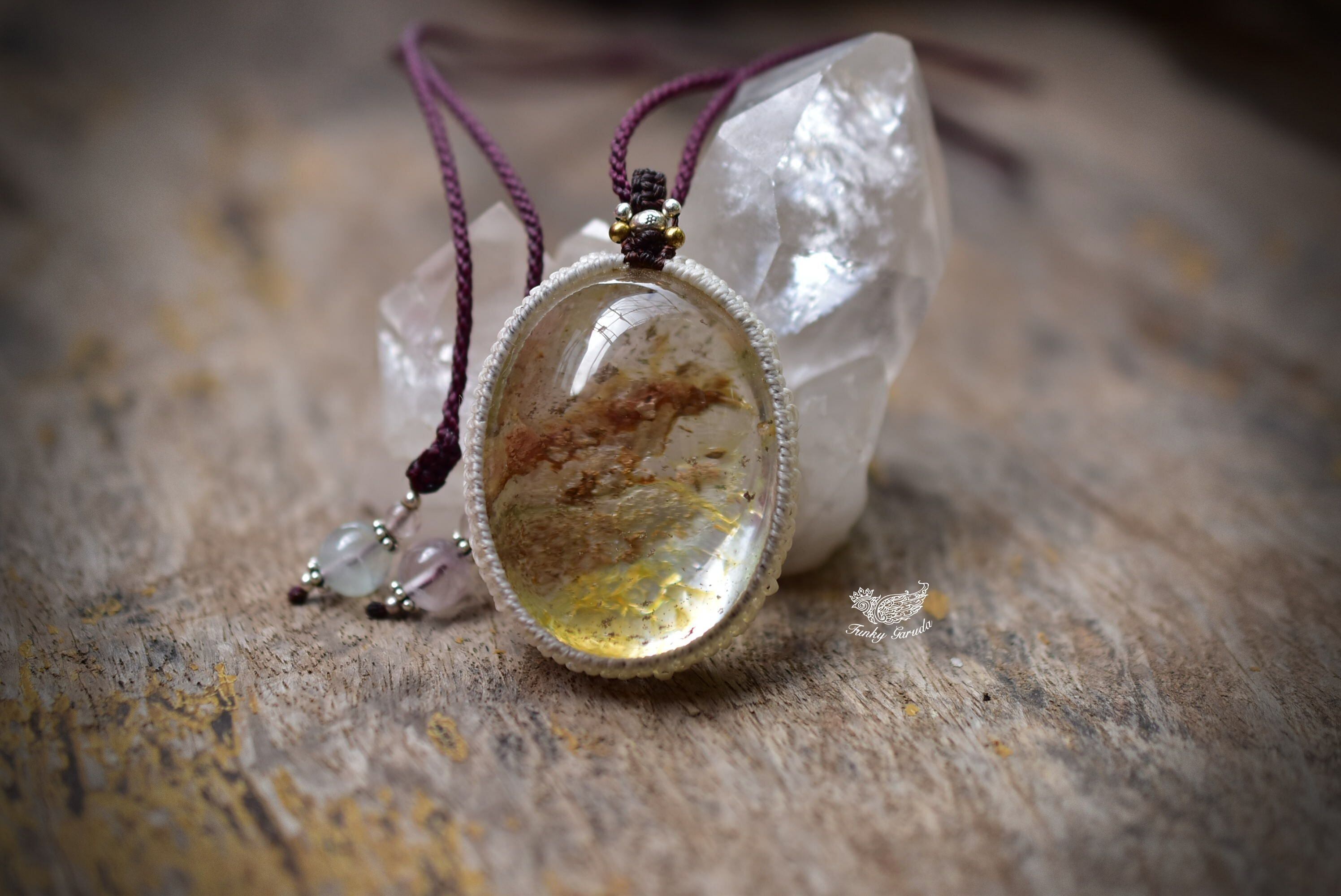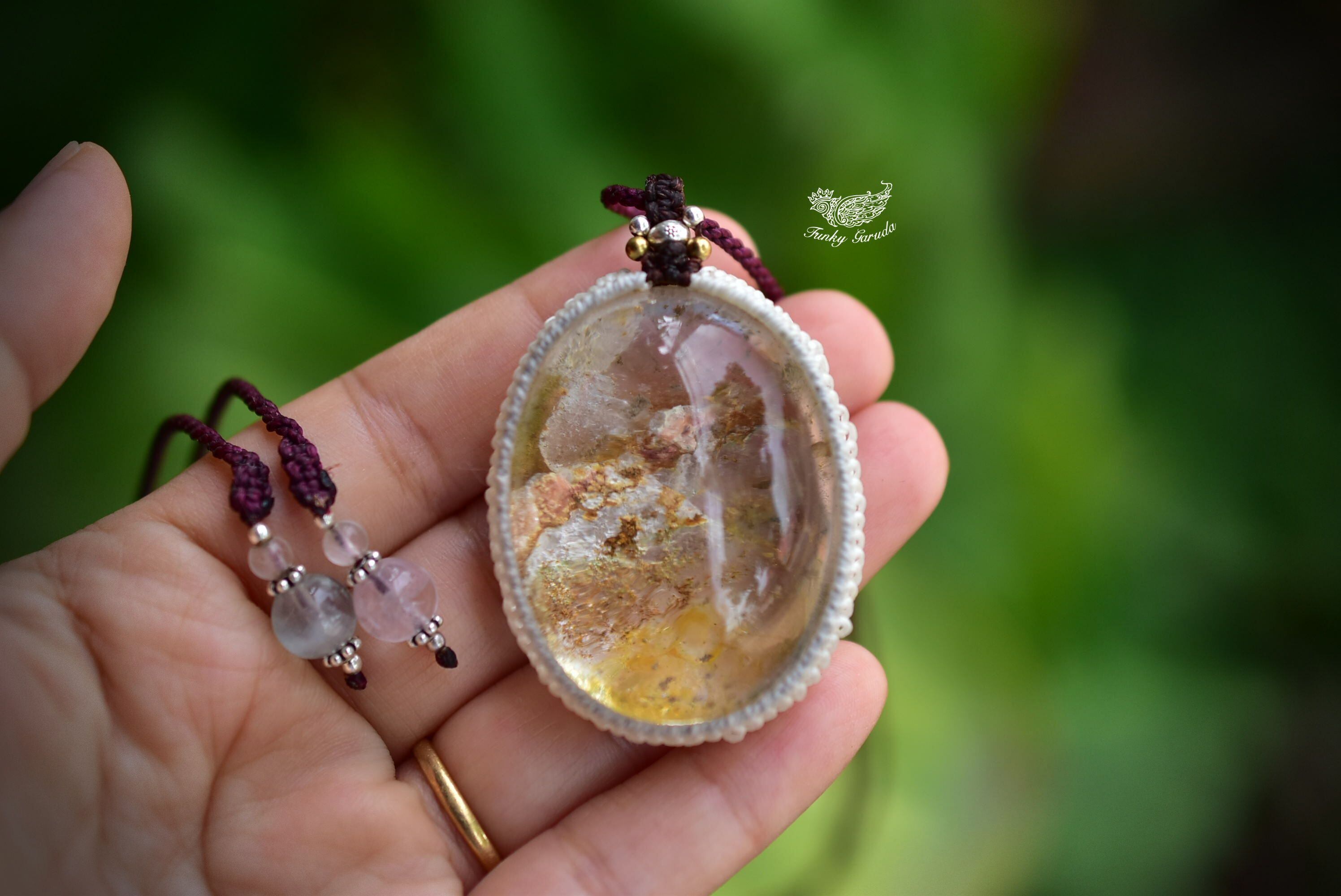 大粒★ホワイトイエロー山脈★ガーデンクォーツ マクラメペンダント167