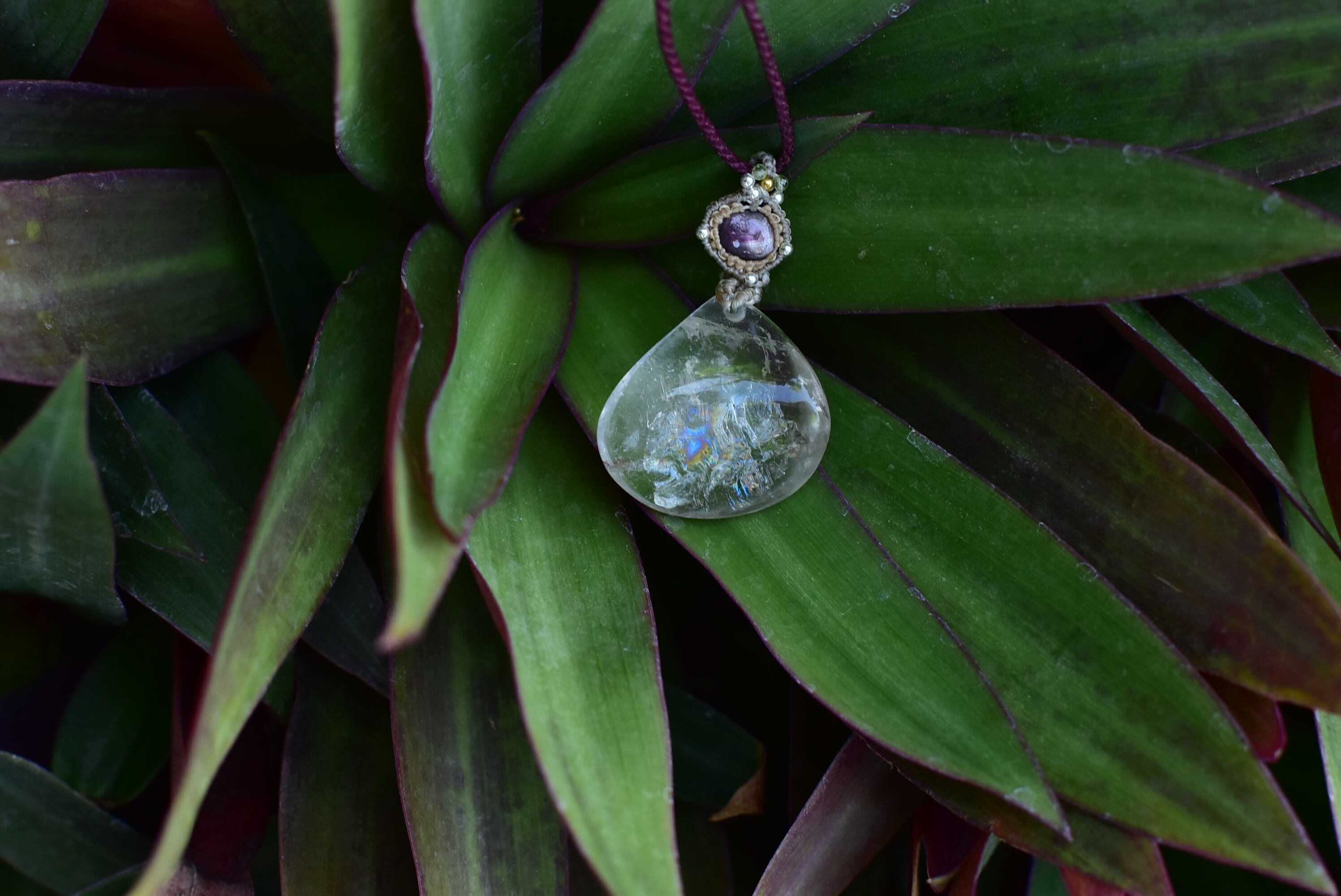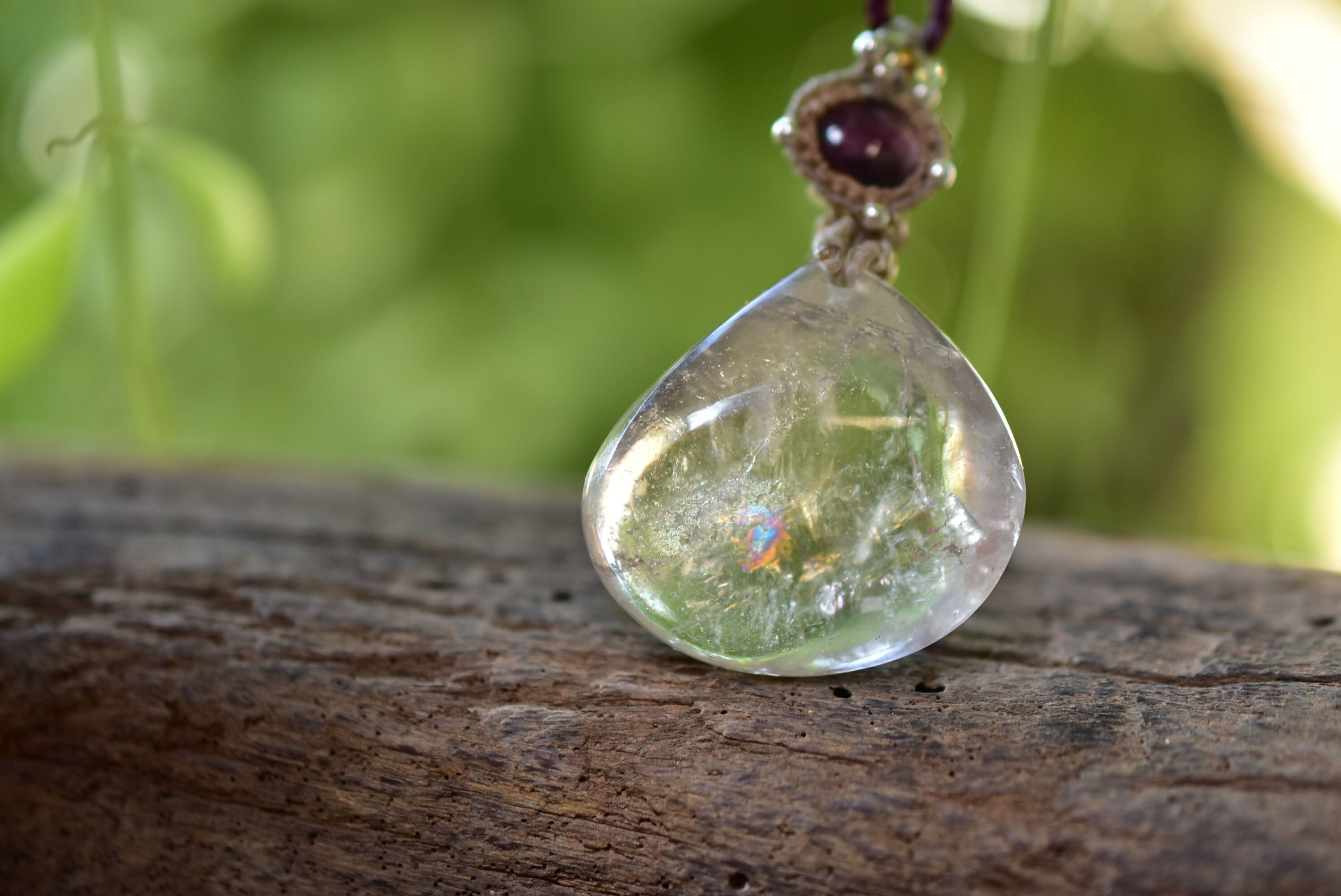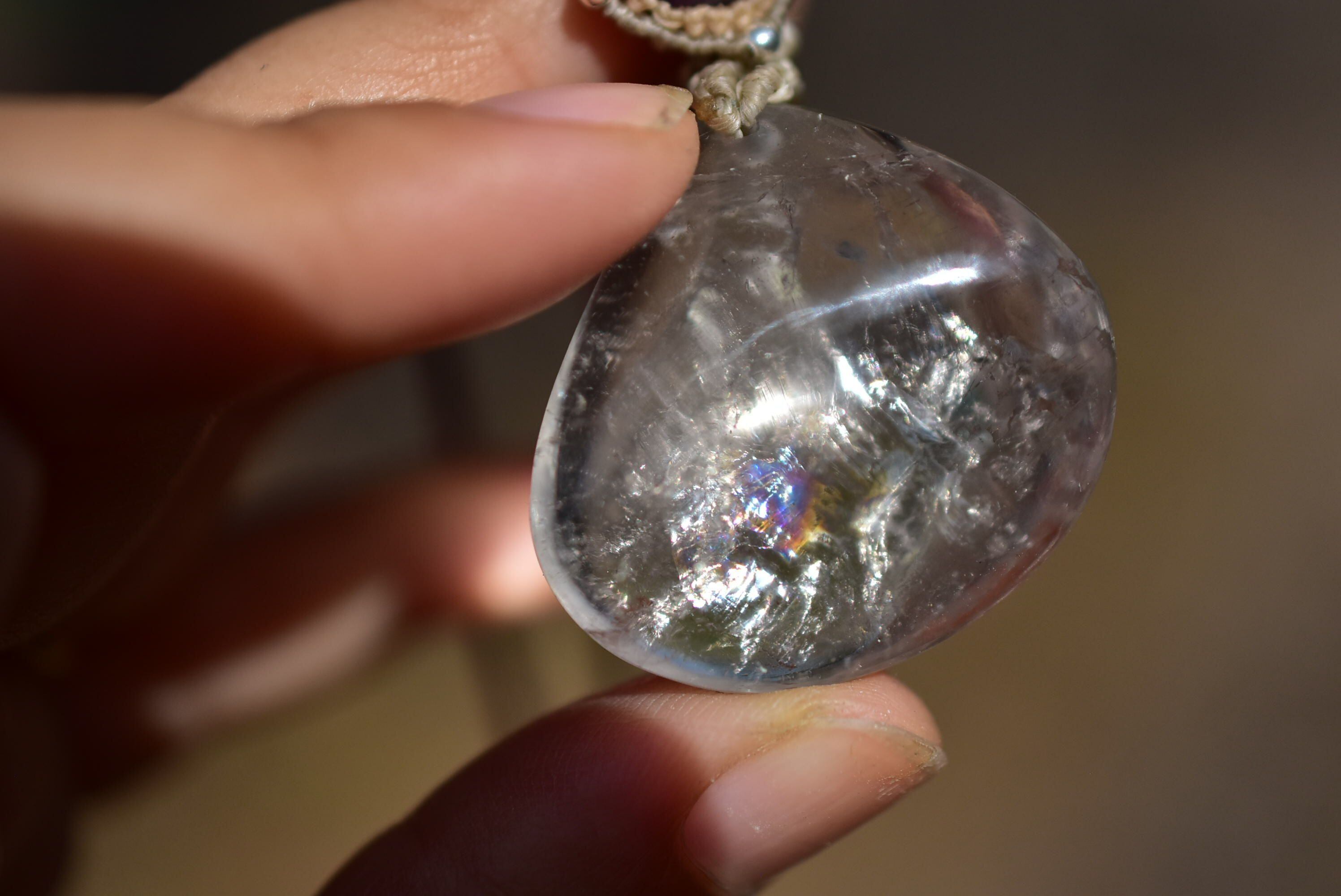 水晶部分が体にピタッと密着するタイプのペンダントです。