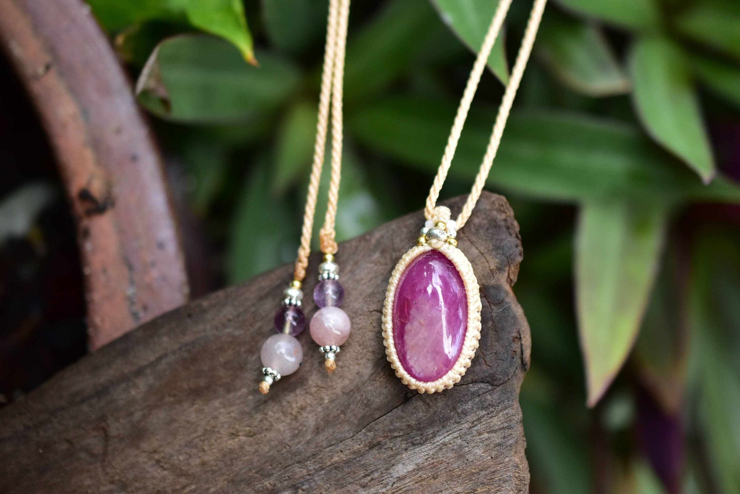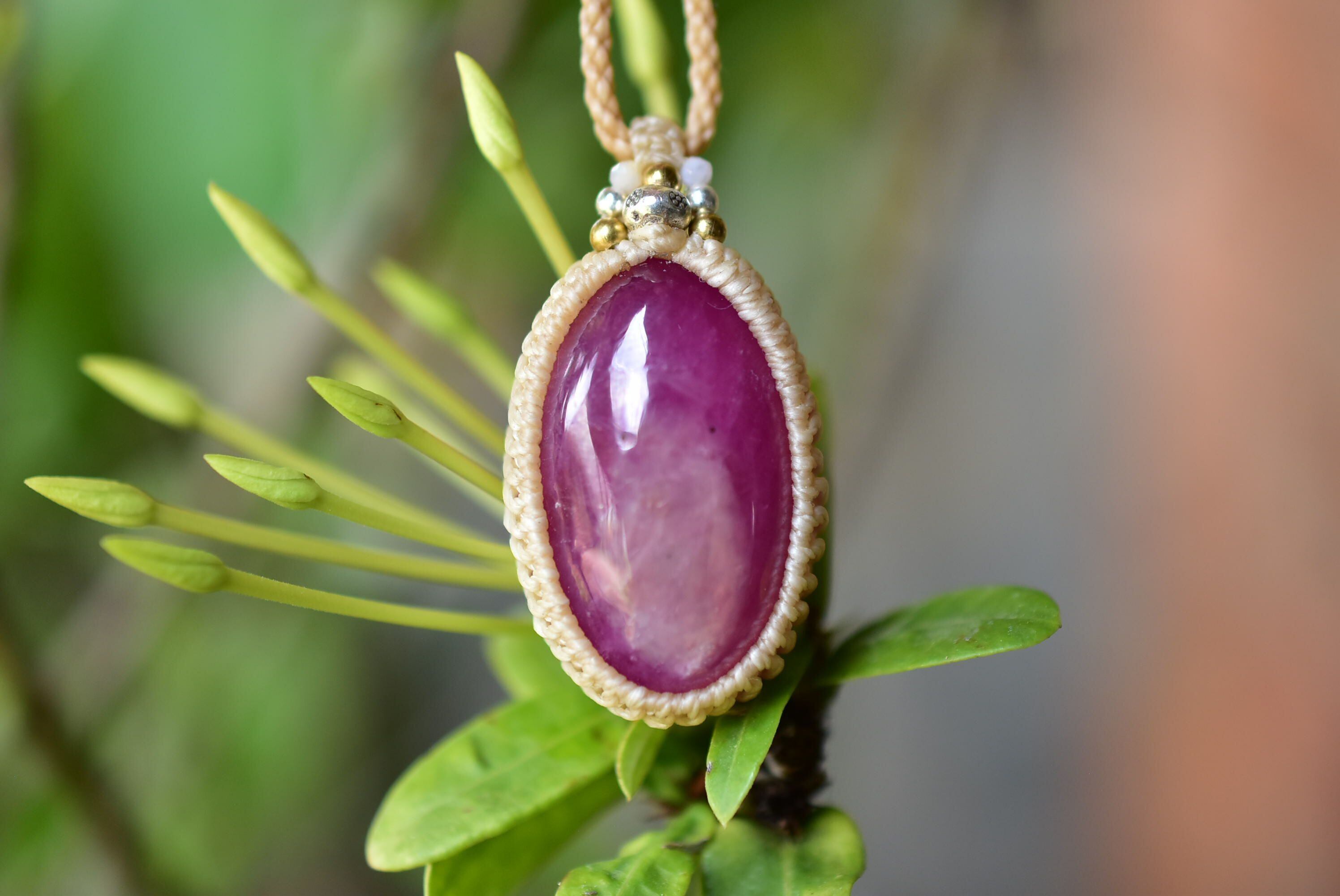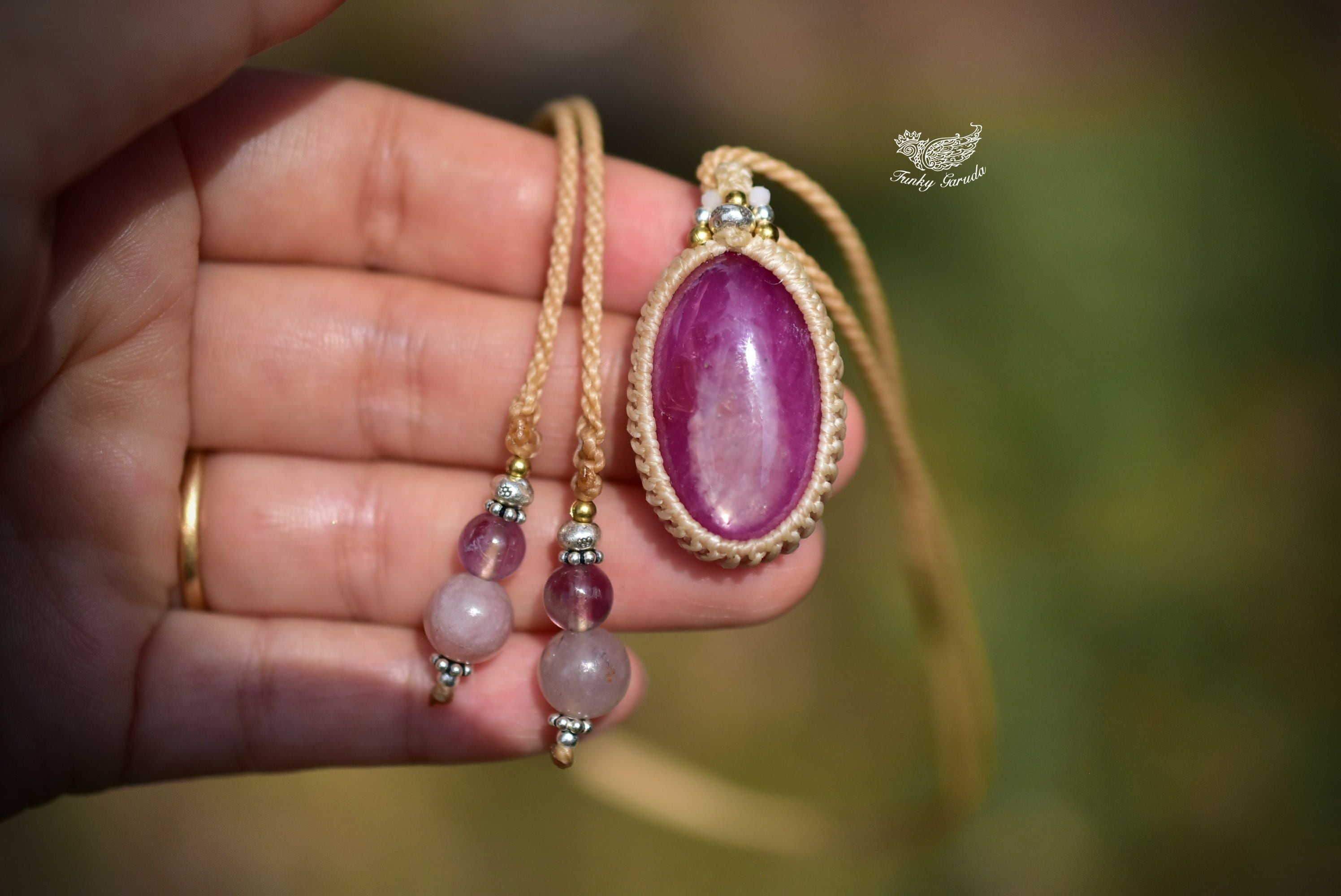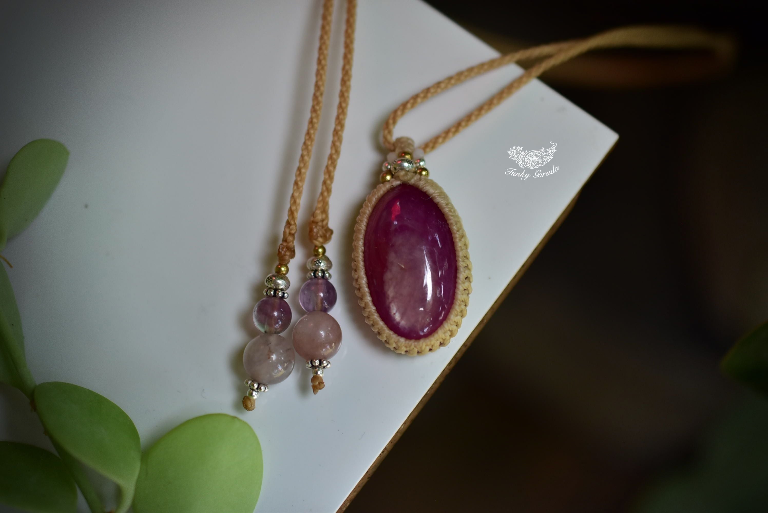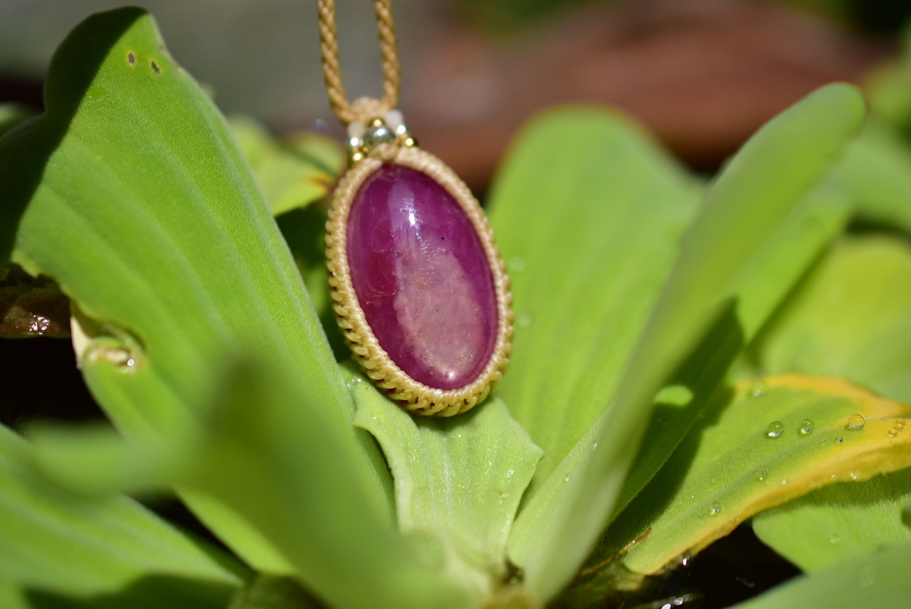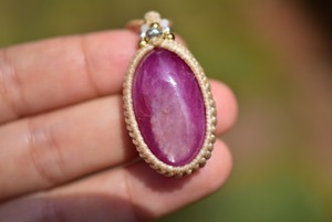 高品質★ラッキーポイント★ルビー マクラメペンダント181