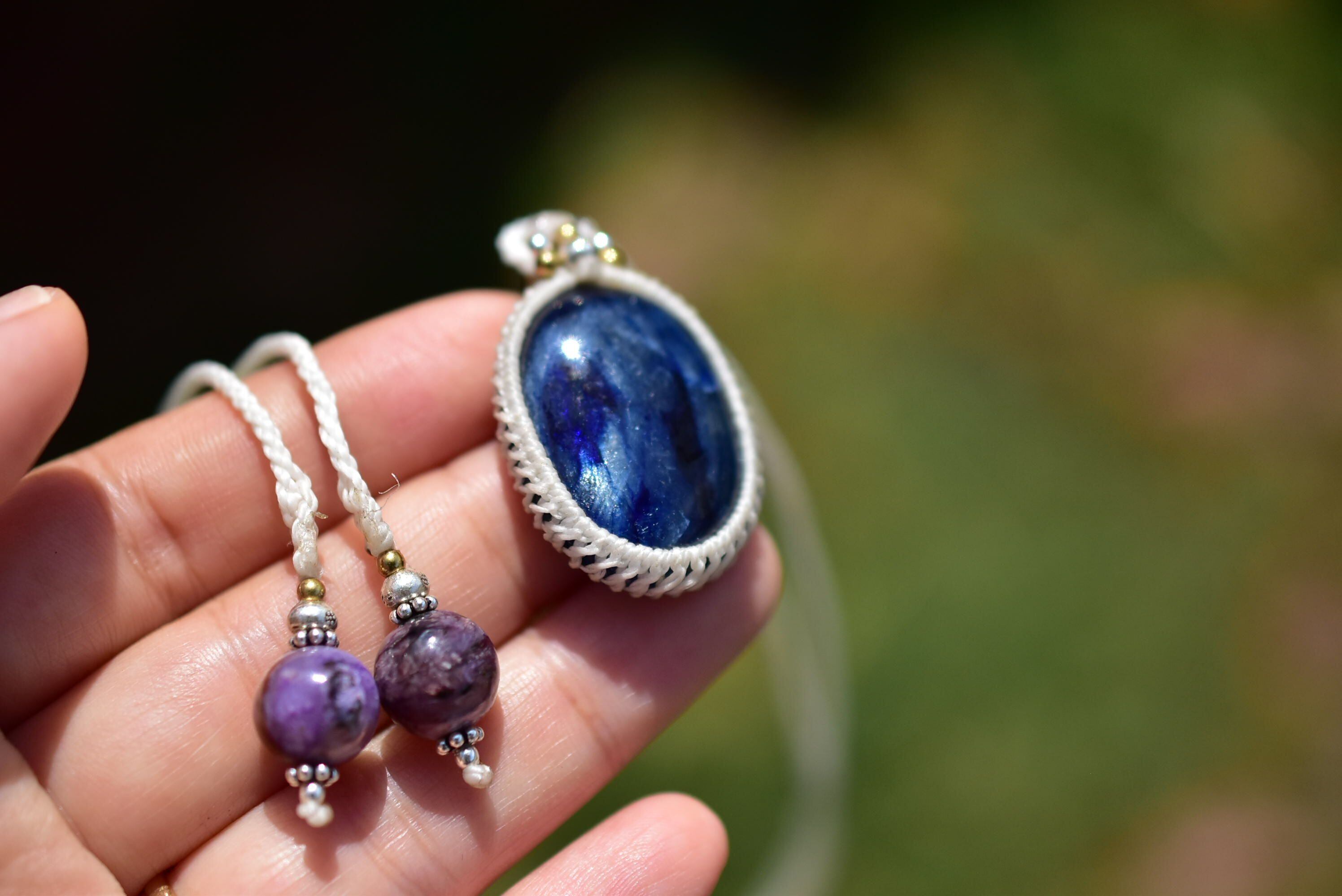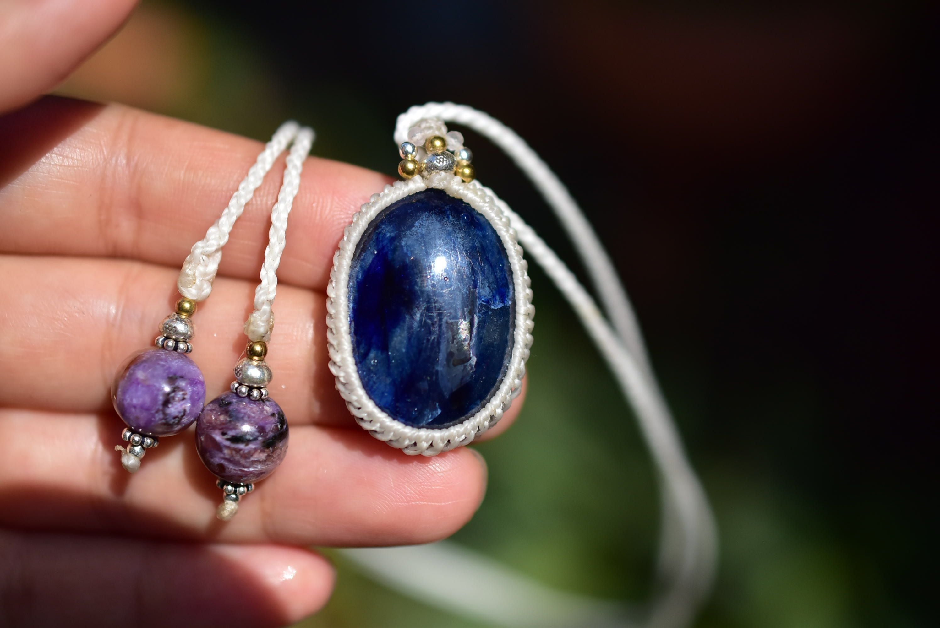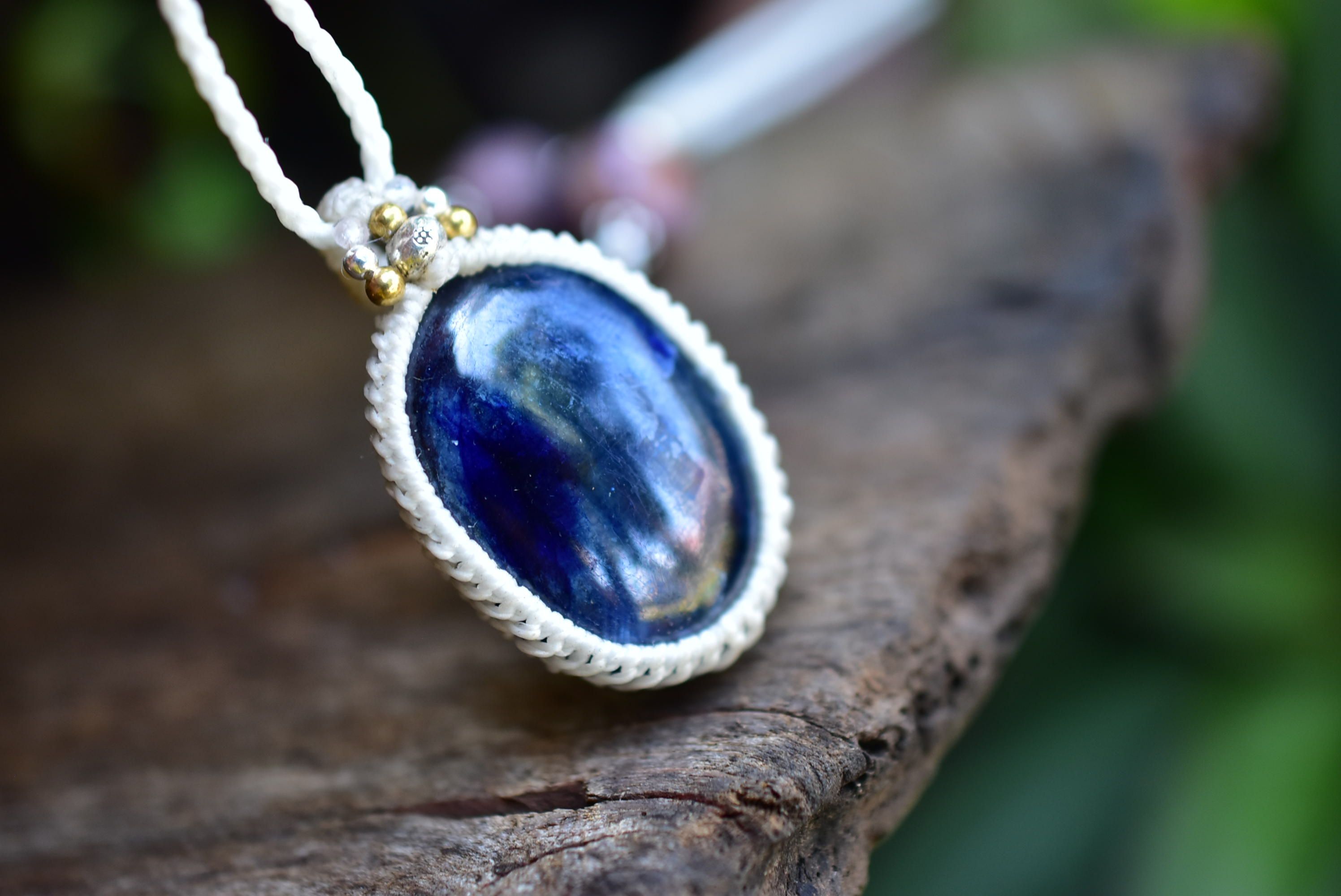 青く深い煌めき★ブルーサファイア マクラメペンダント183