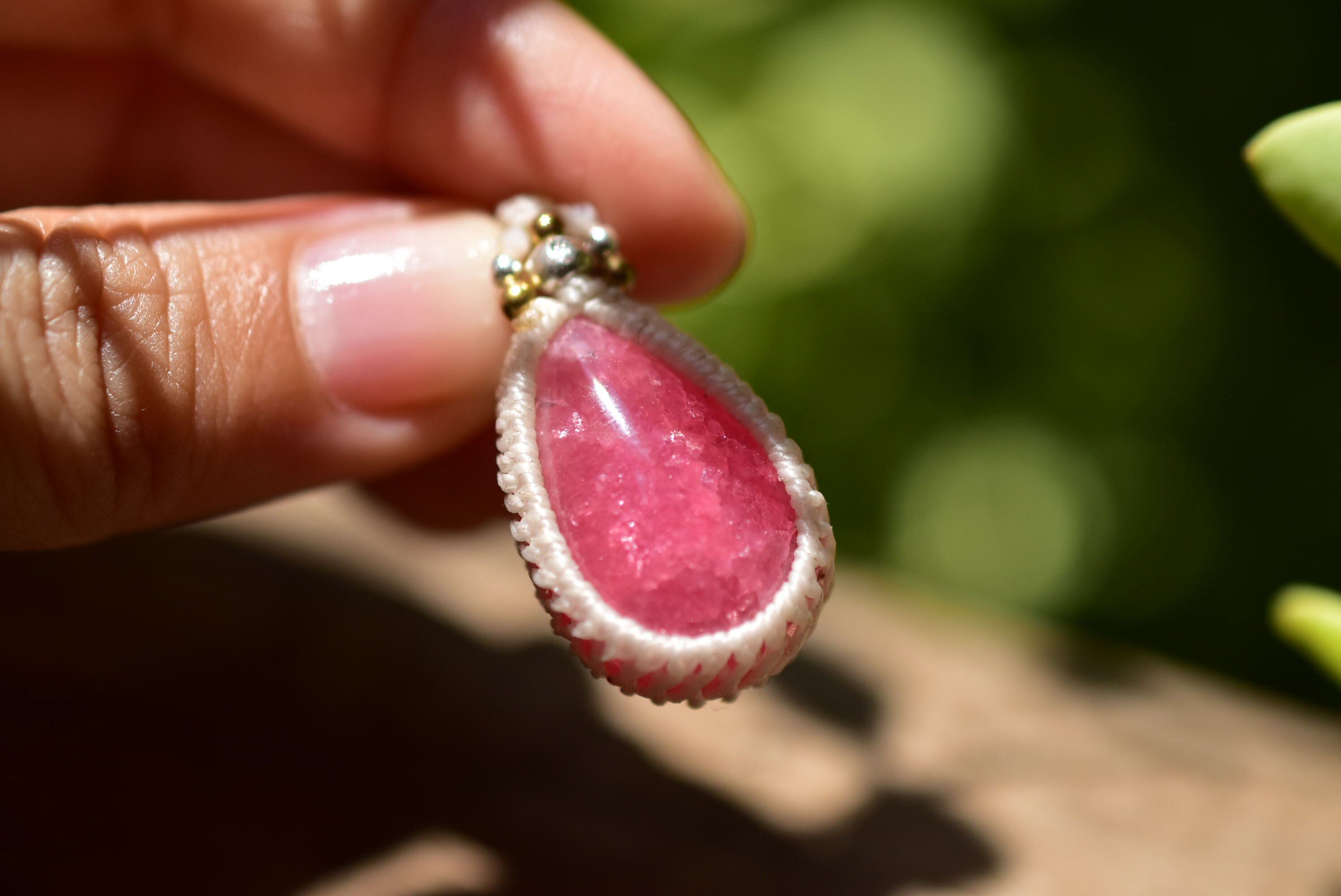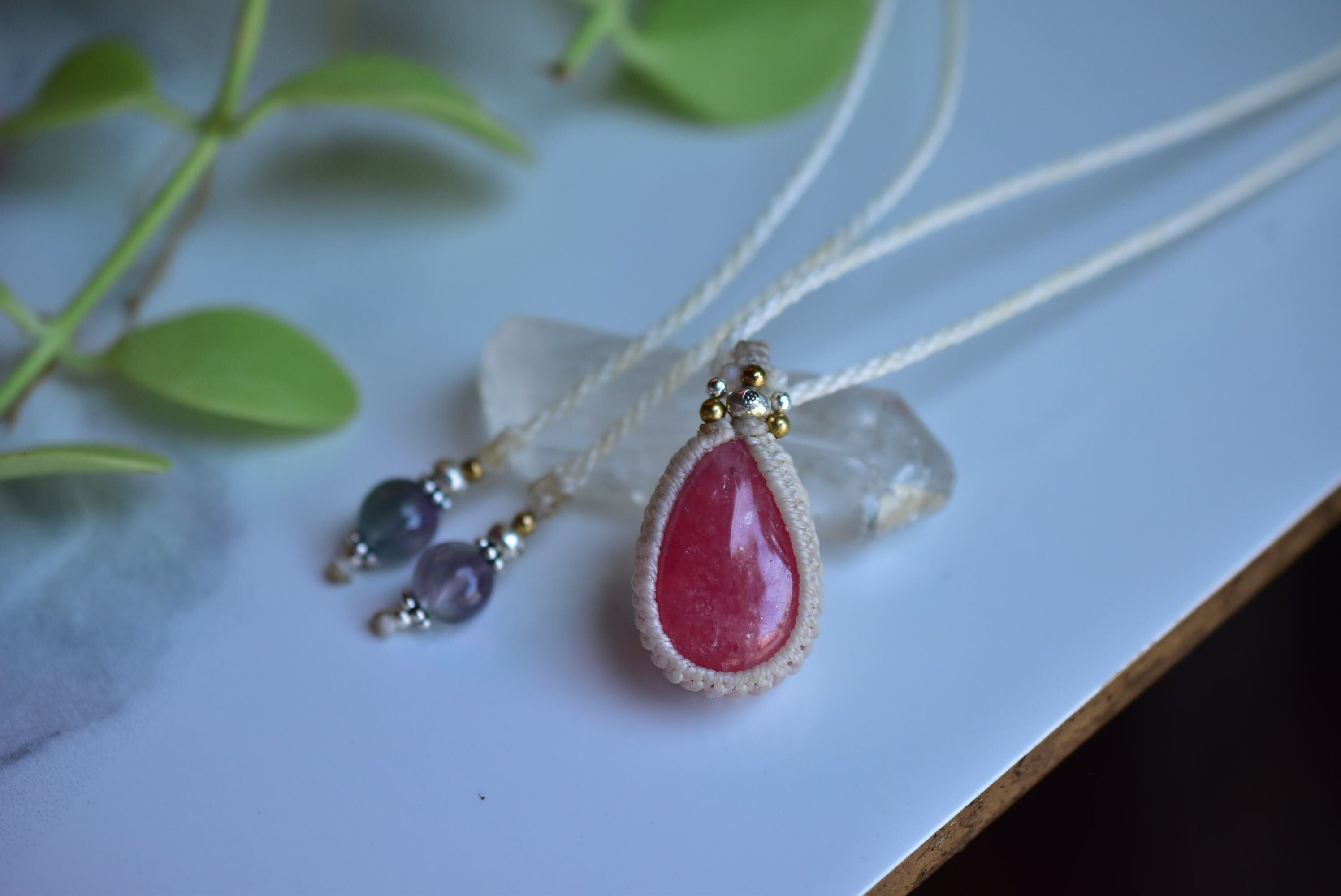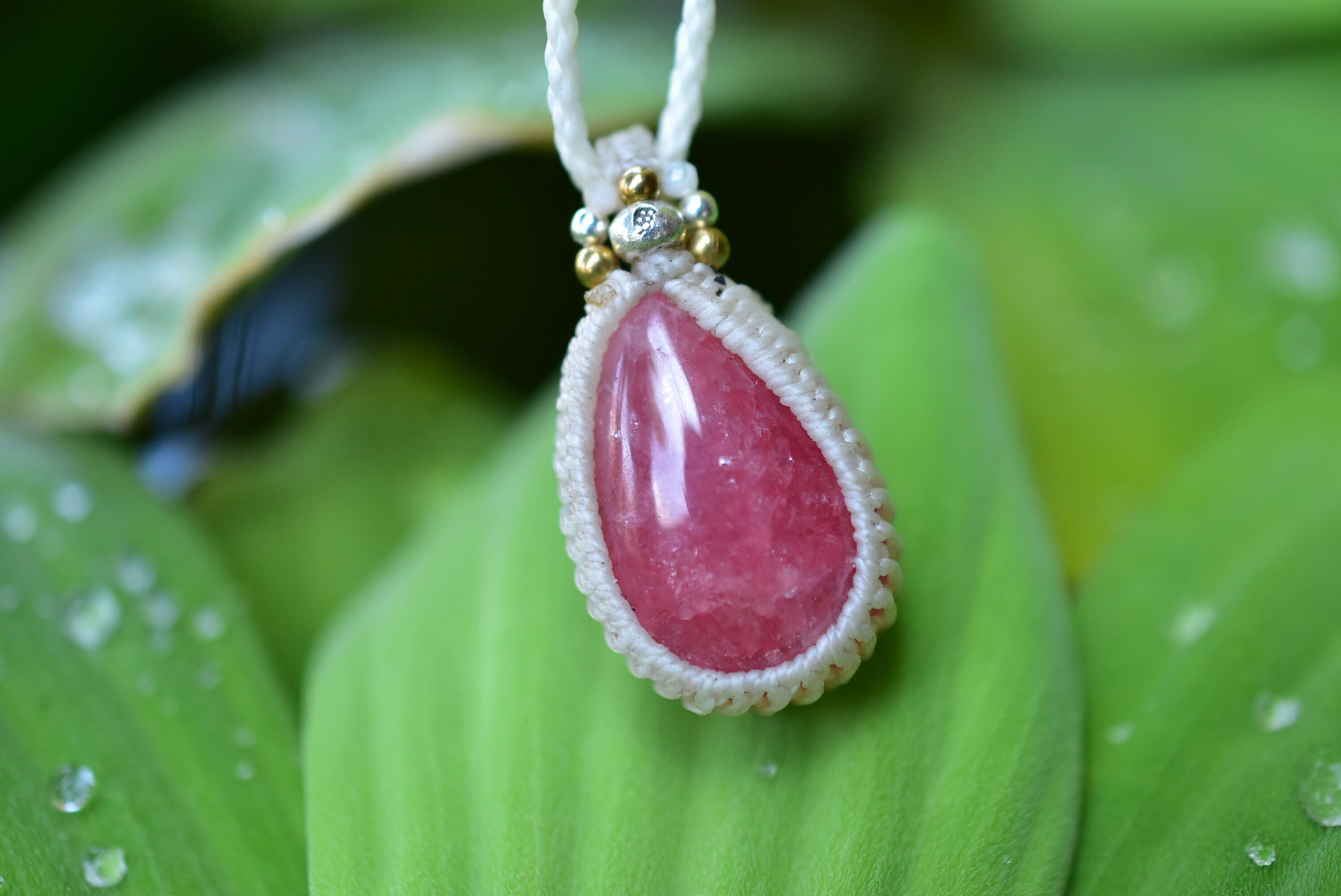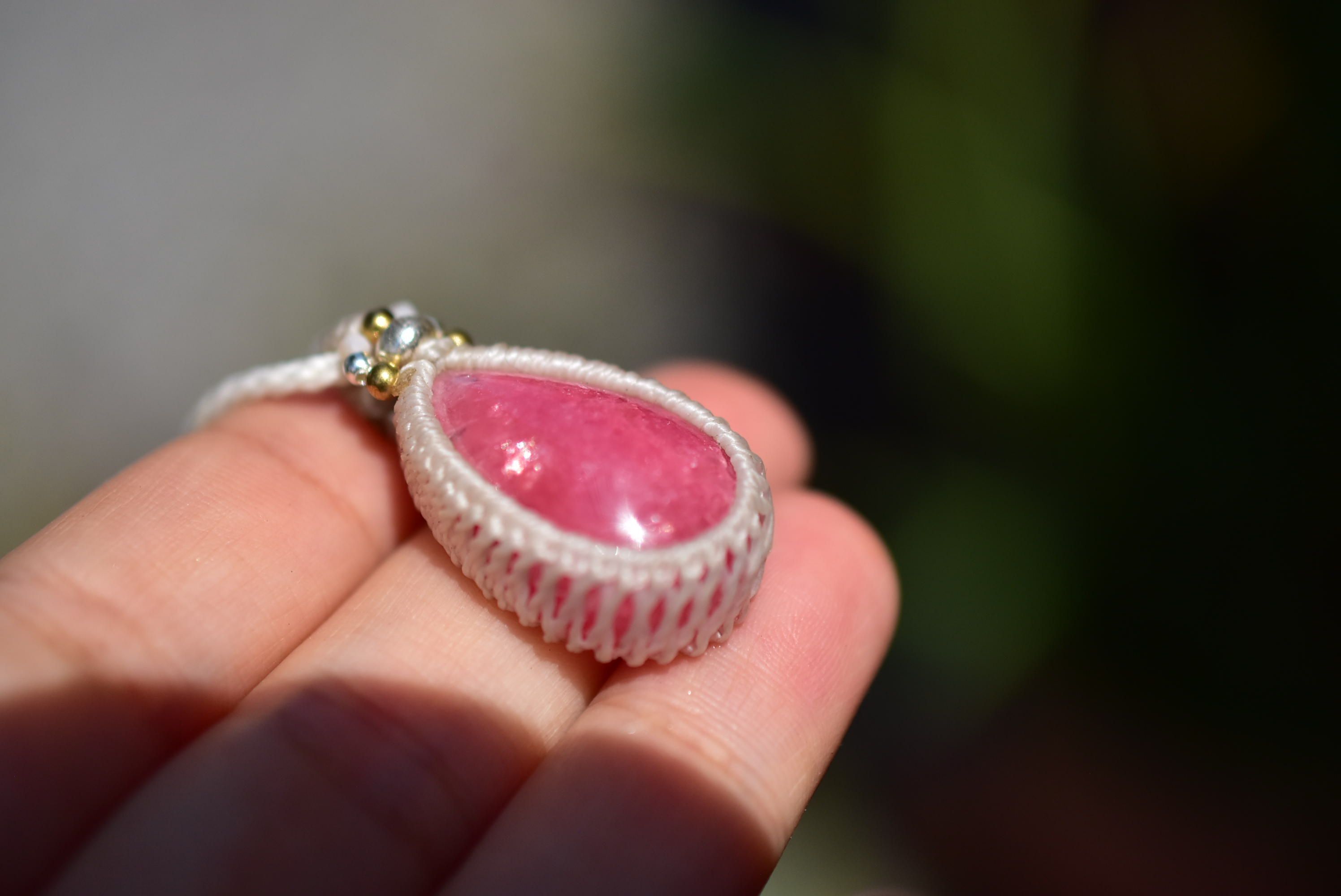 華やかピンク★高品質ロードクロサイト マクラメペンダント185