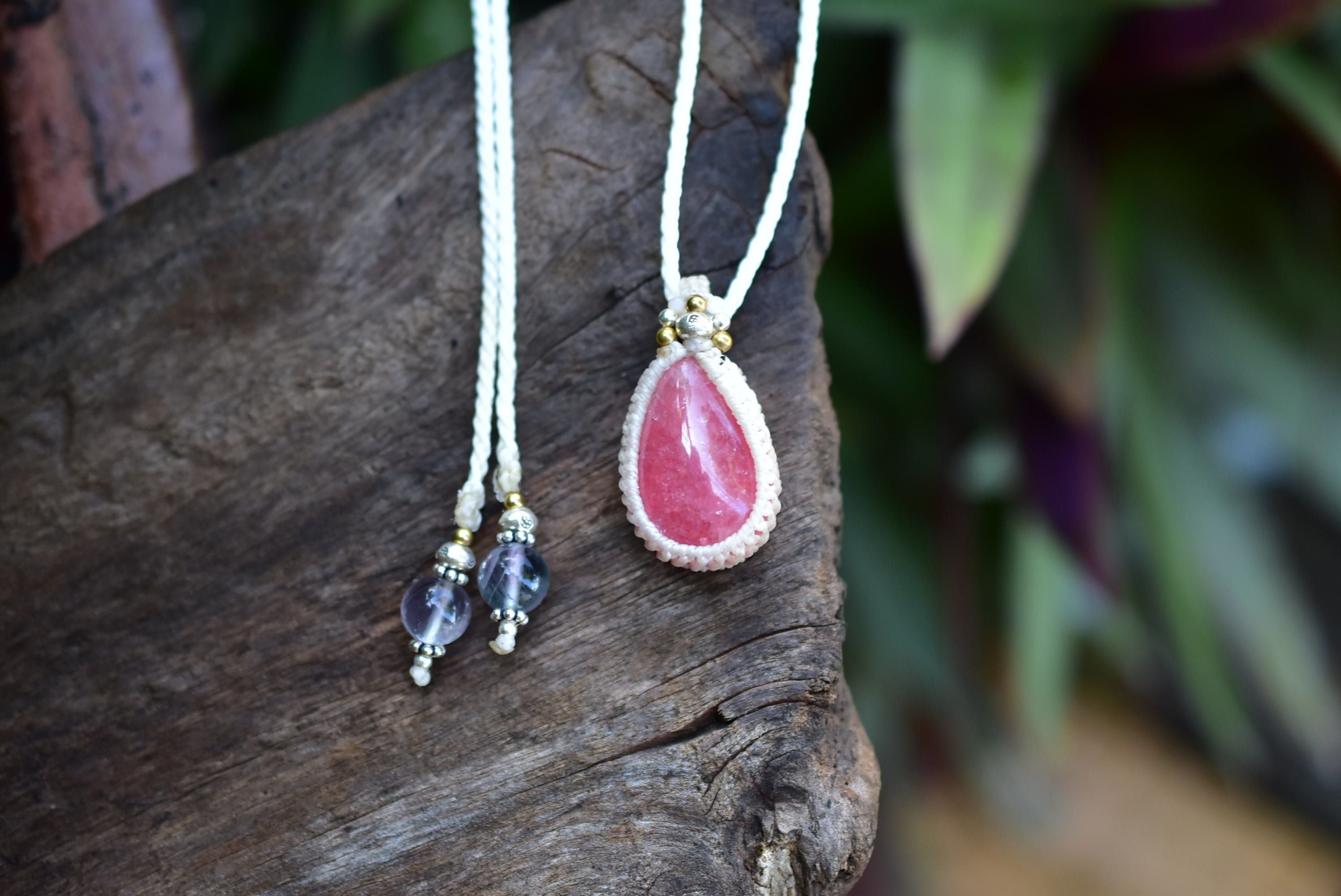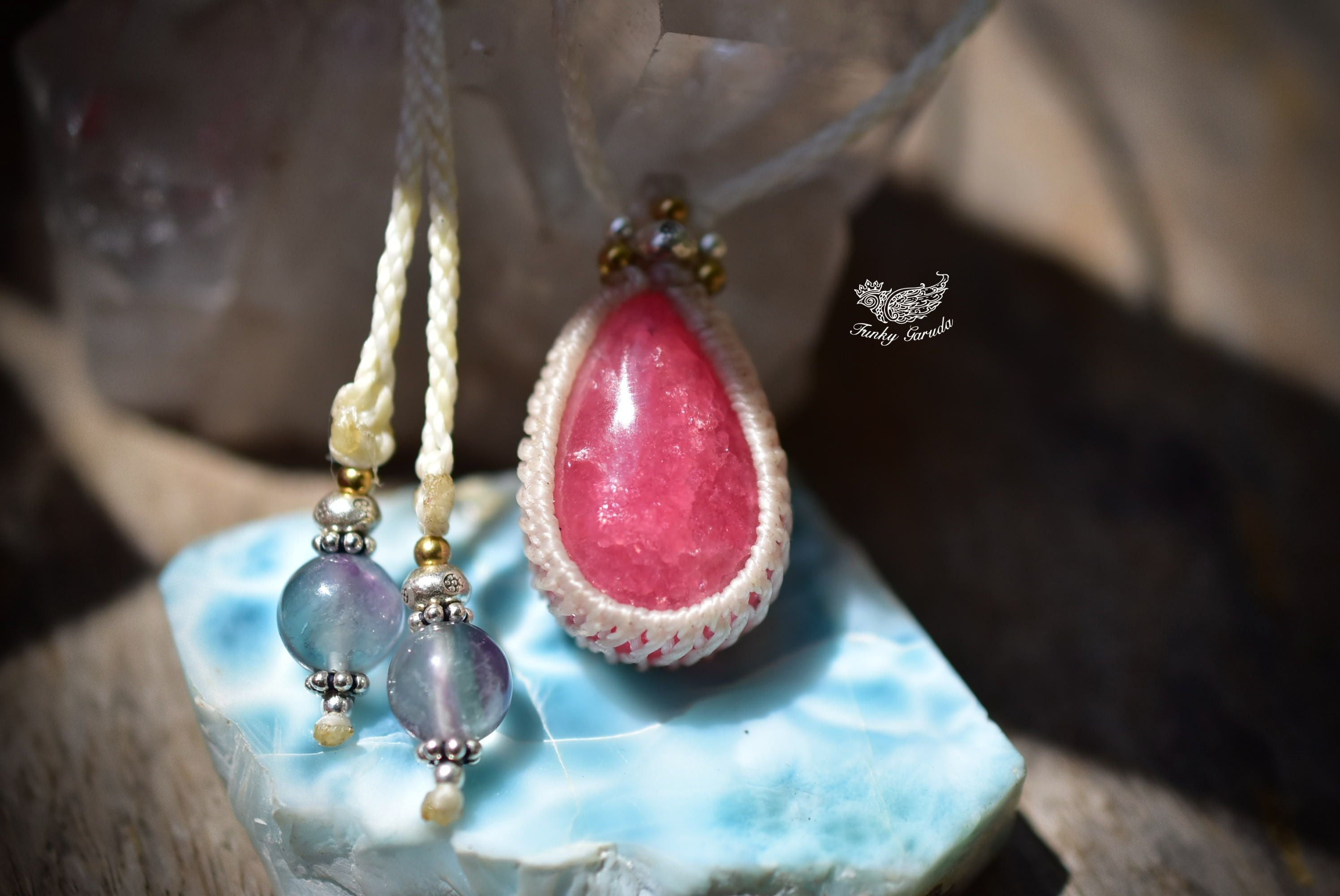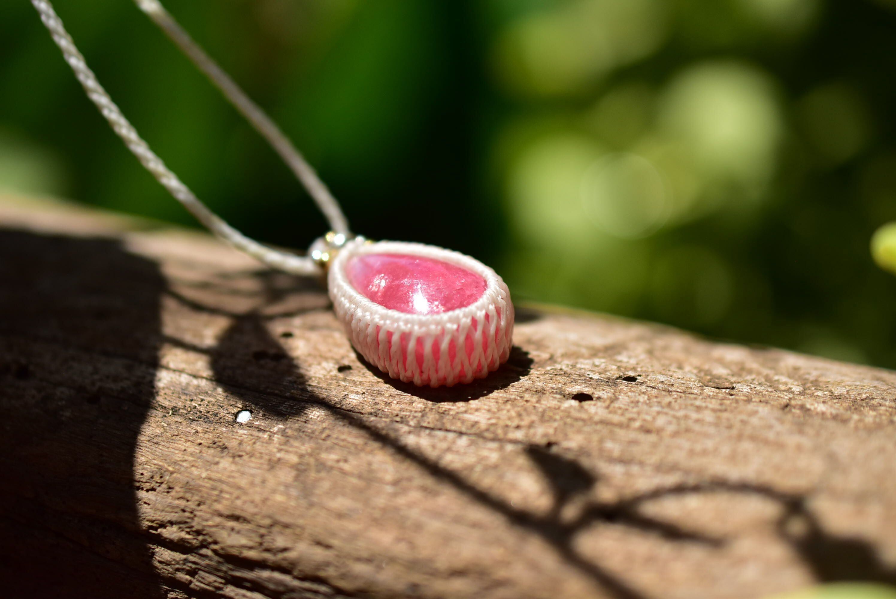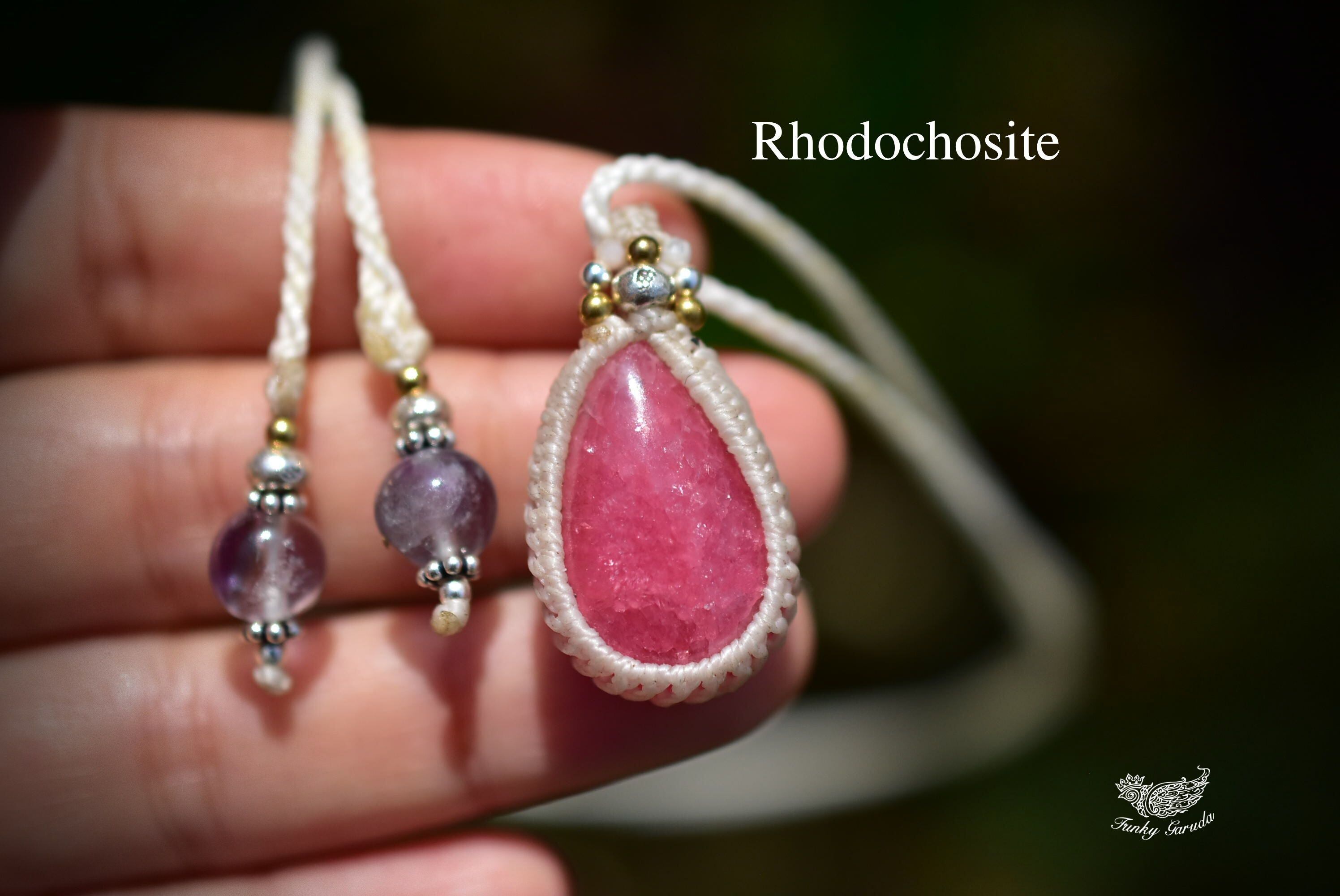 華やかピンク★高品質ロードクロサイト マクラメペンダント185