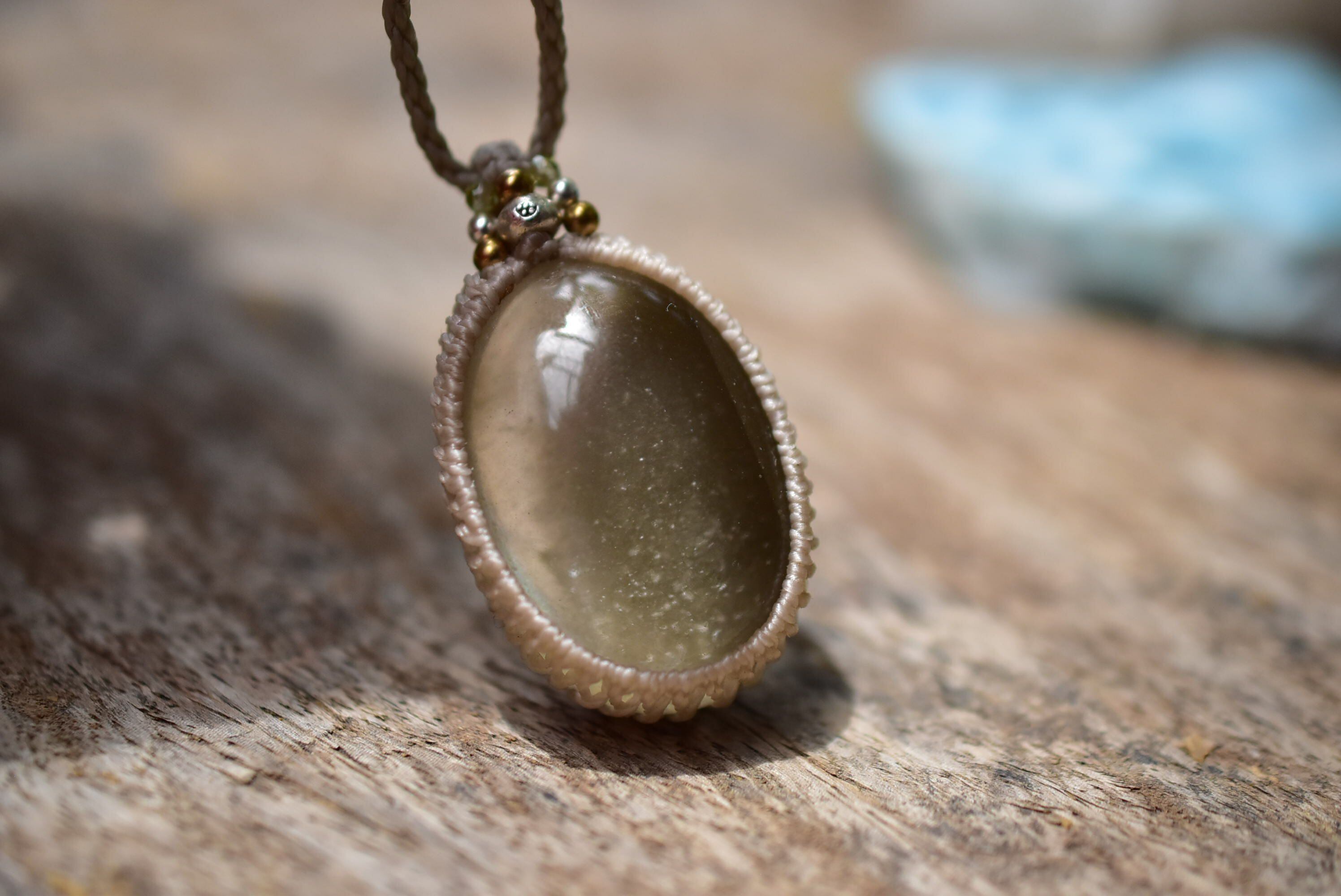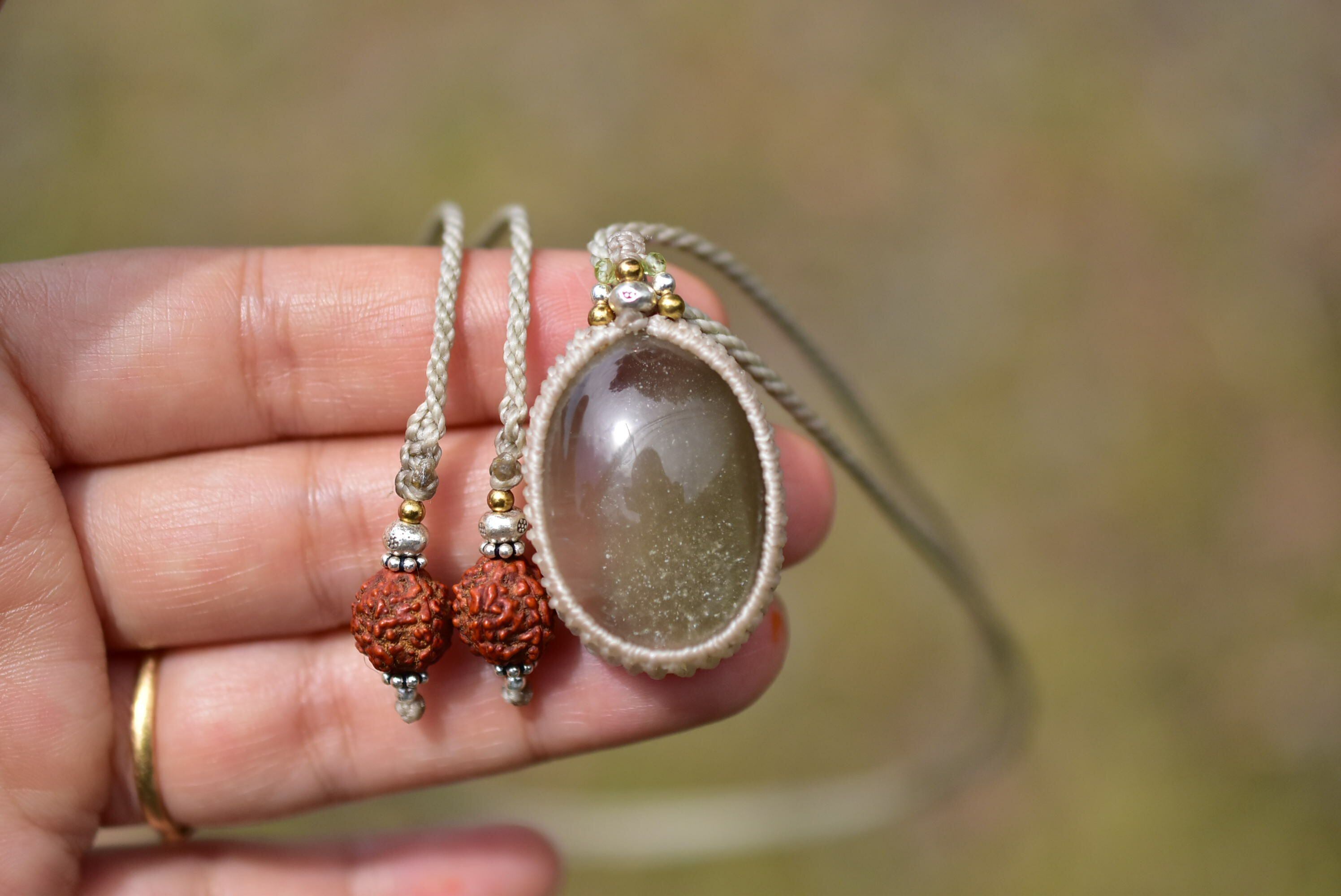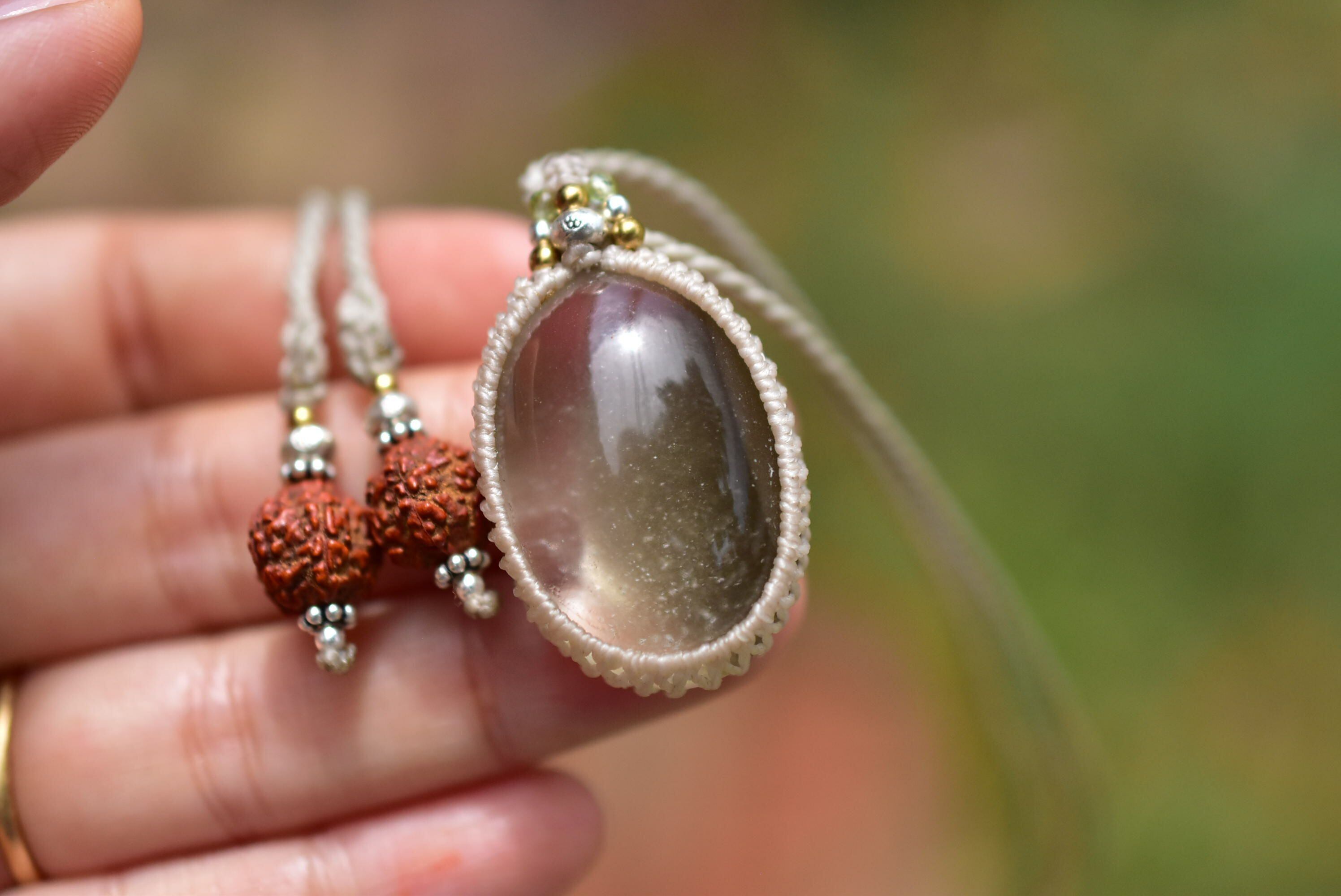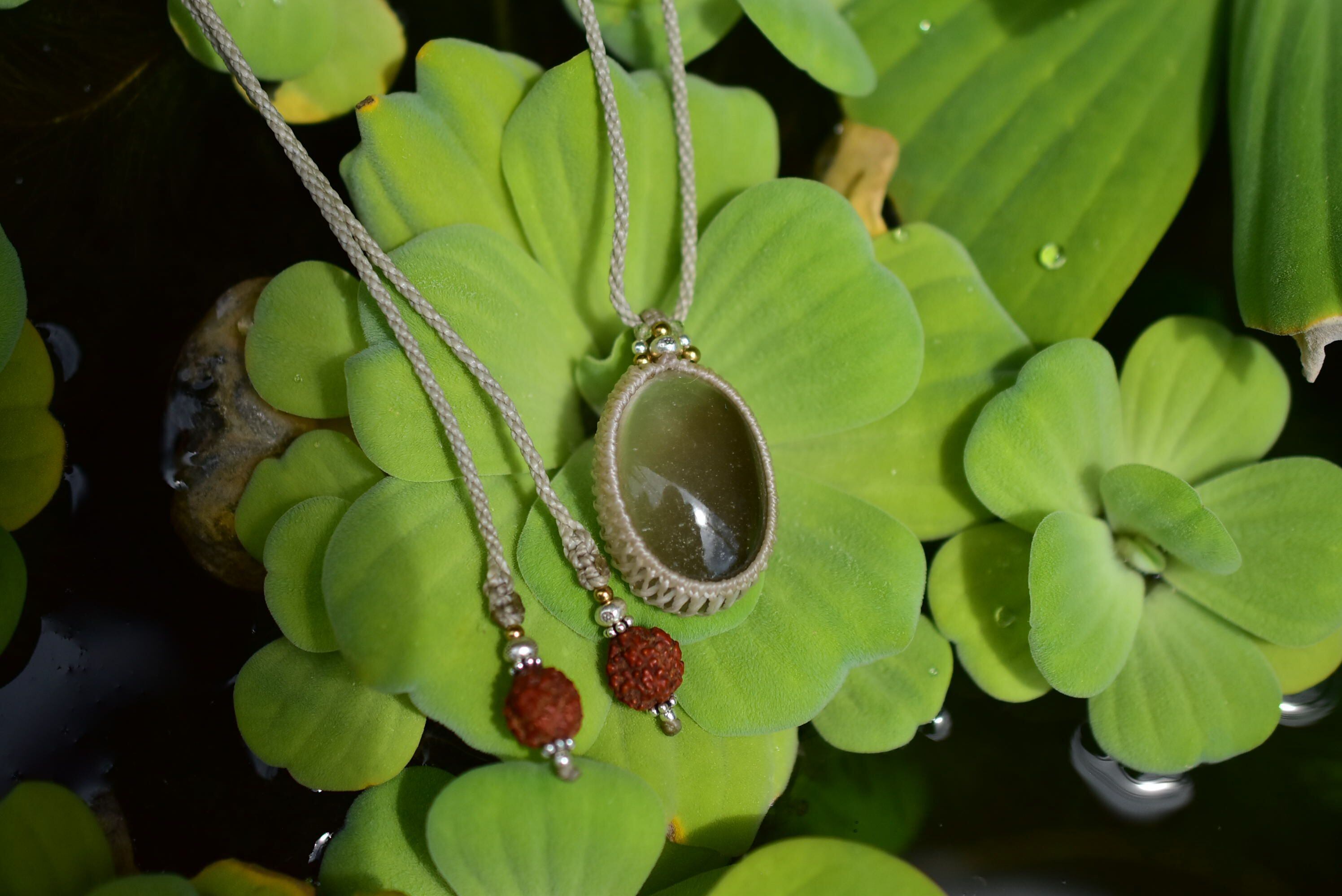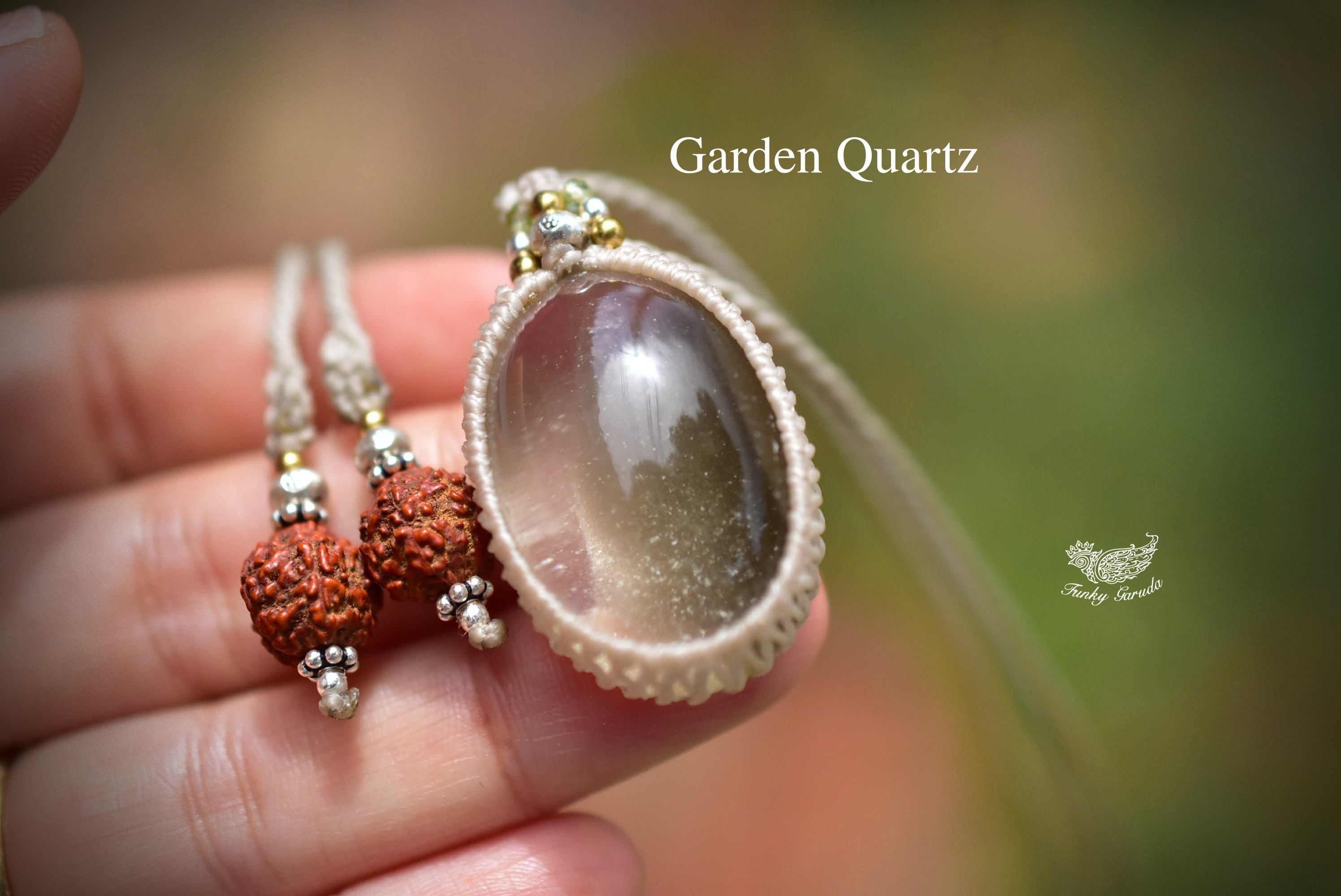 ダークグリーンの煙★ガーデンクォーツ マクラメペンダント187