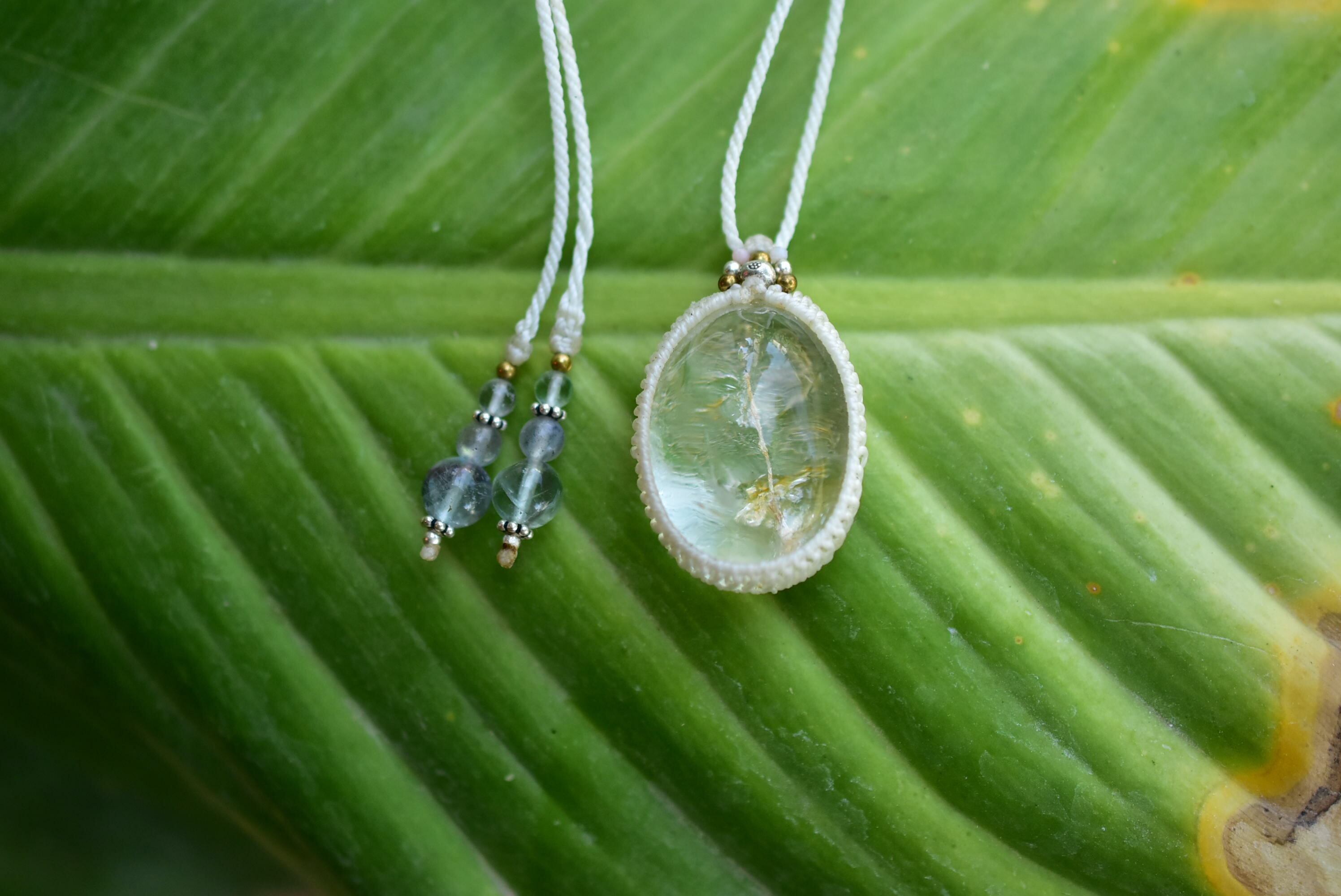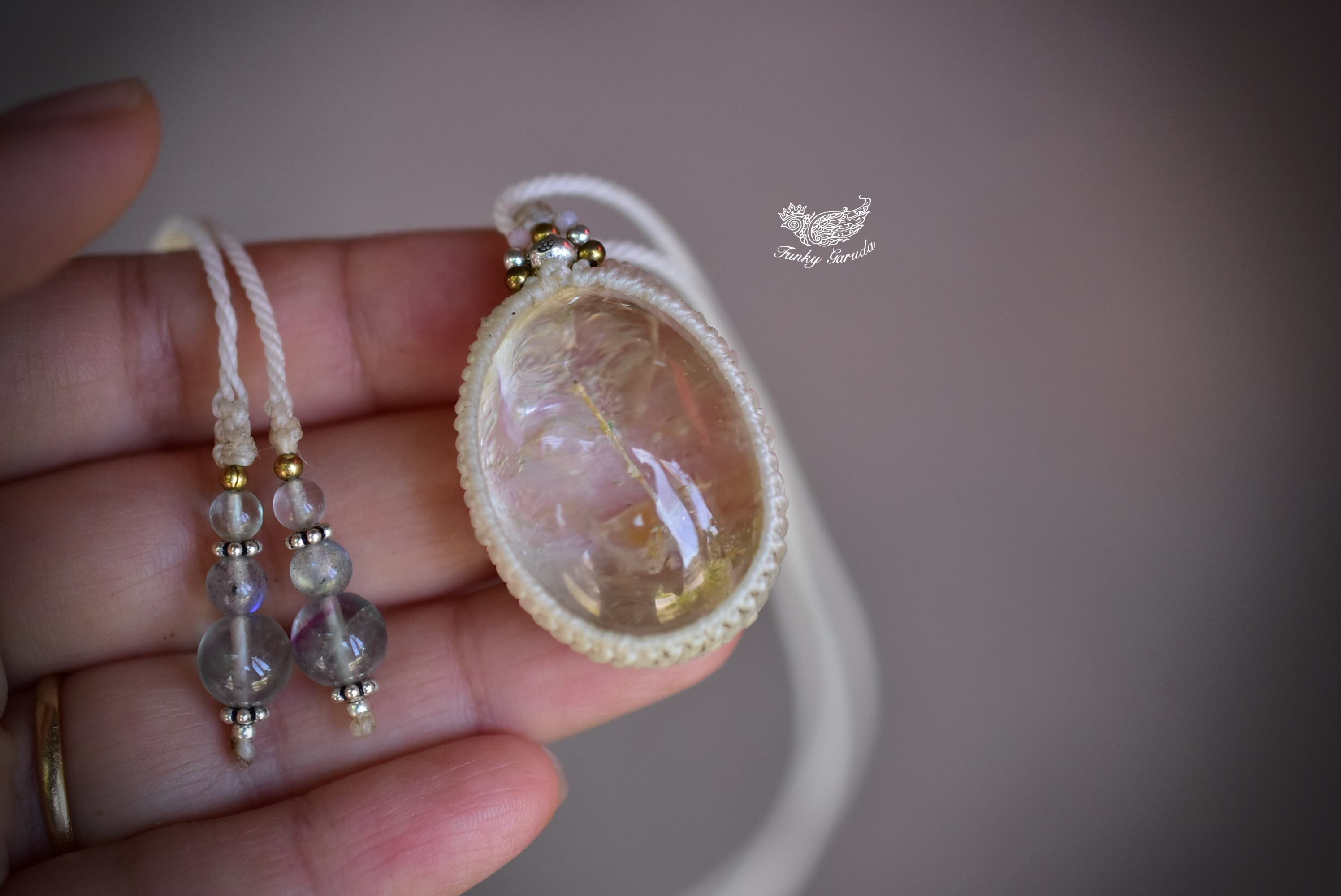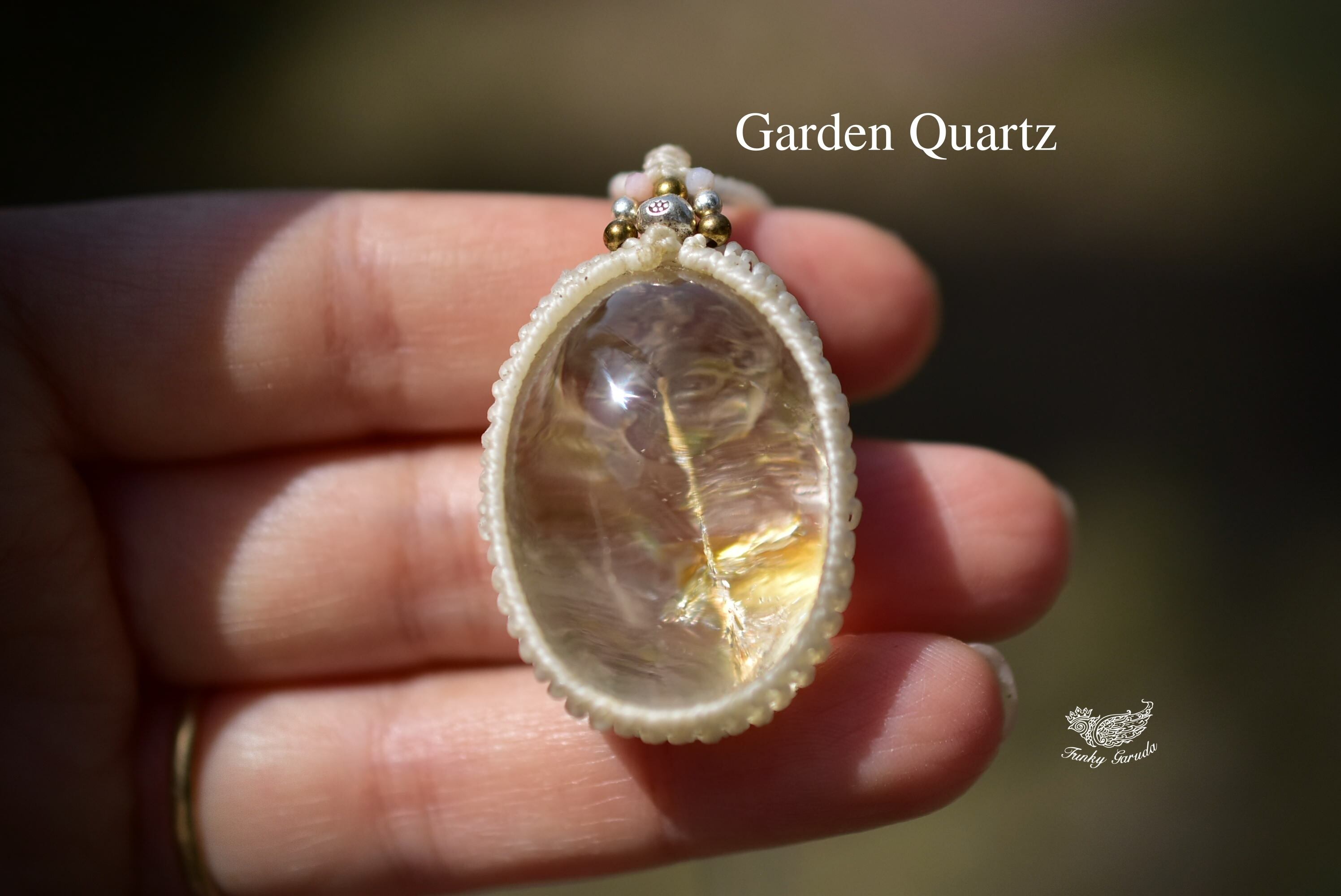 一本線★透明★ガーデンクォーツ マクラメペンダント220
