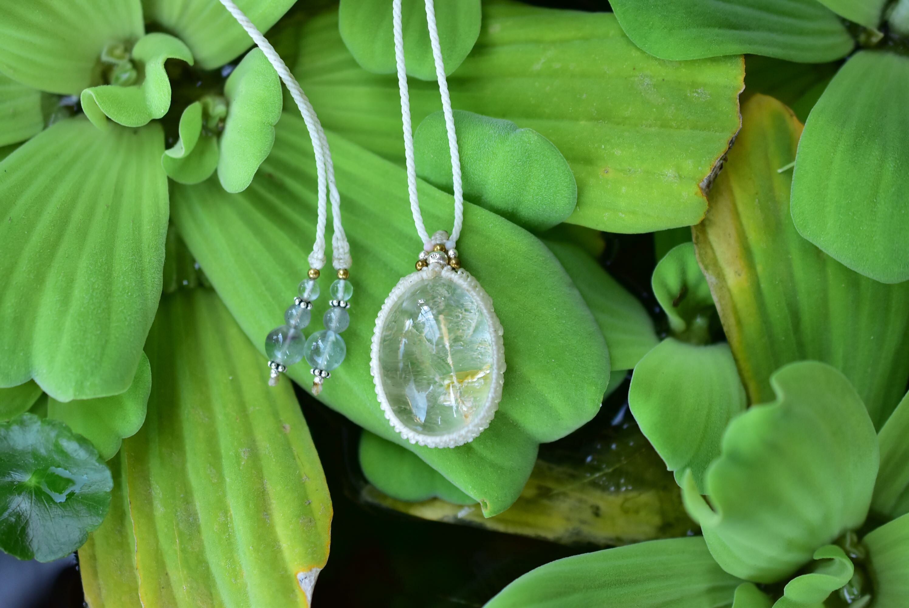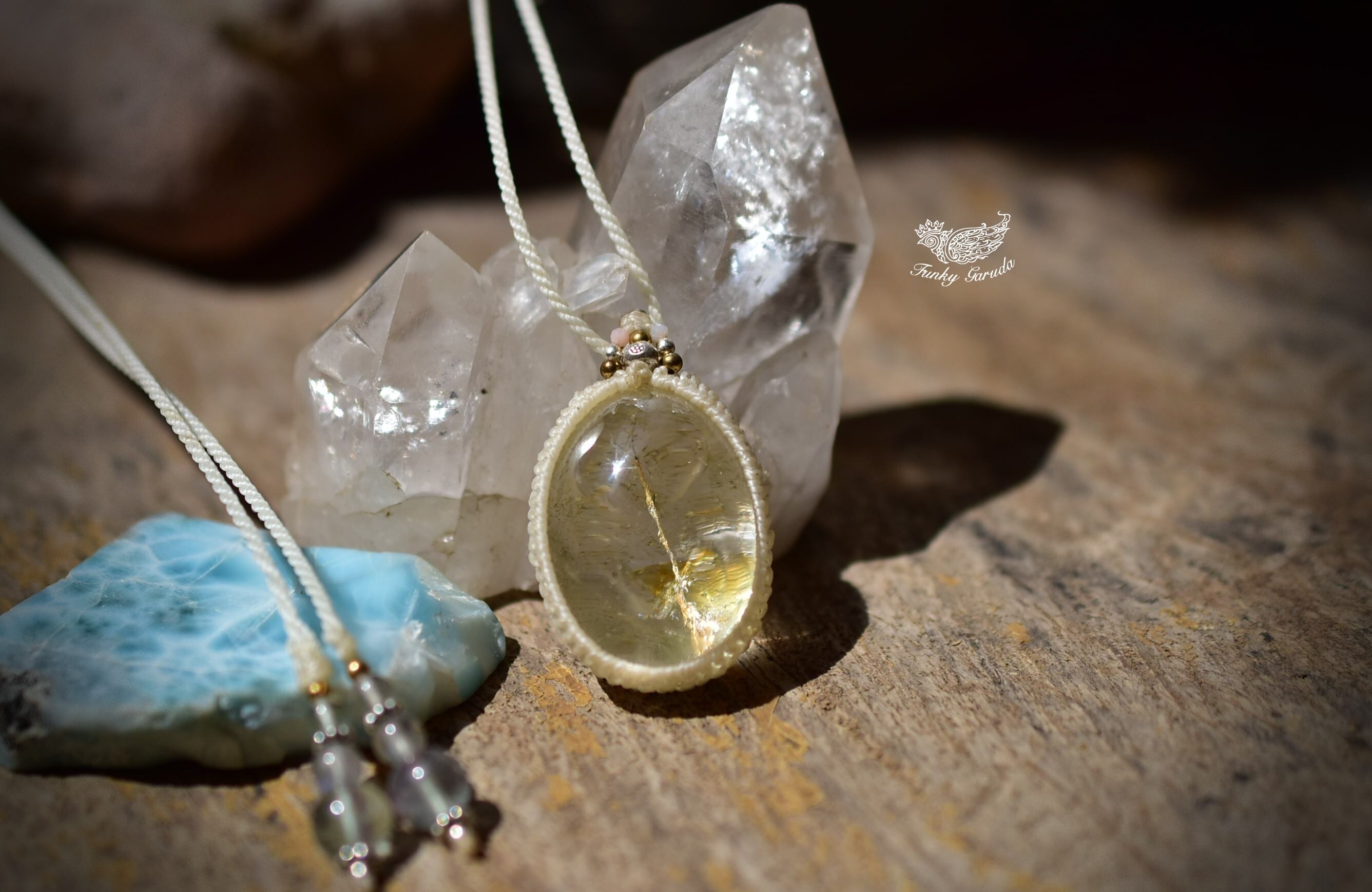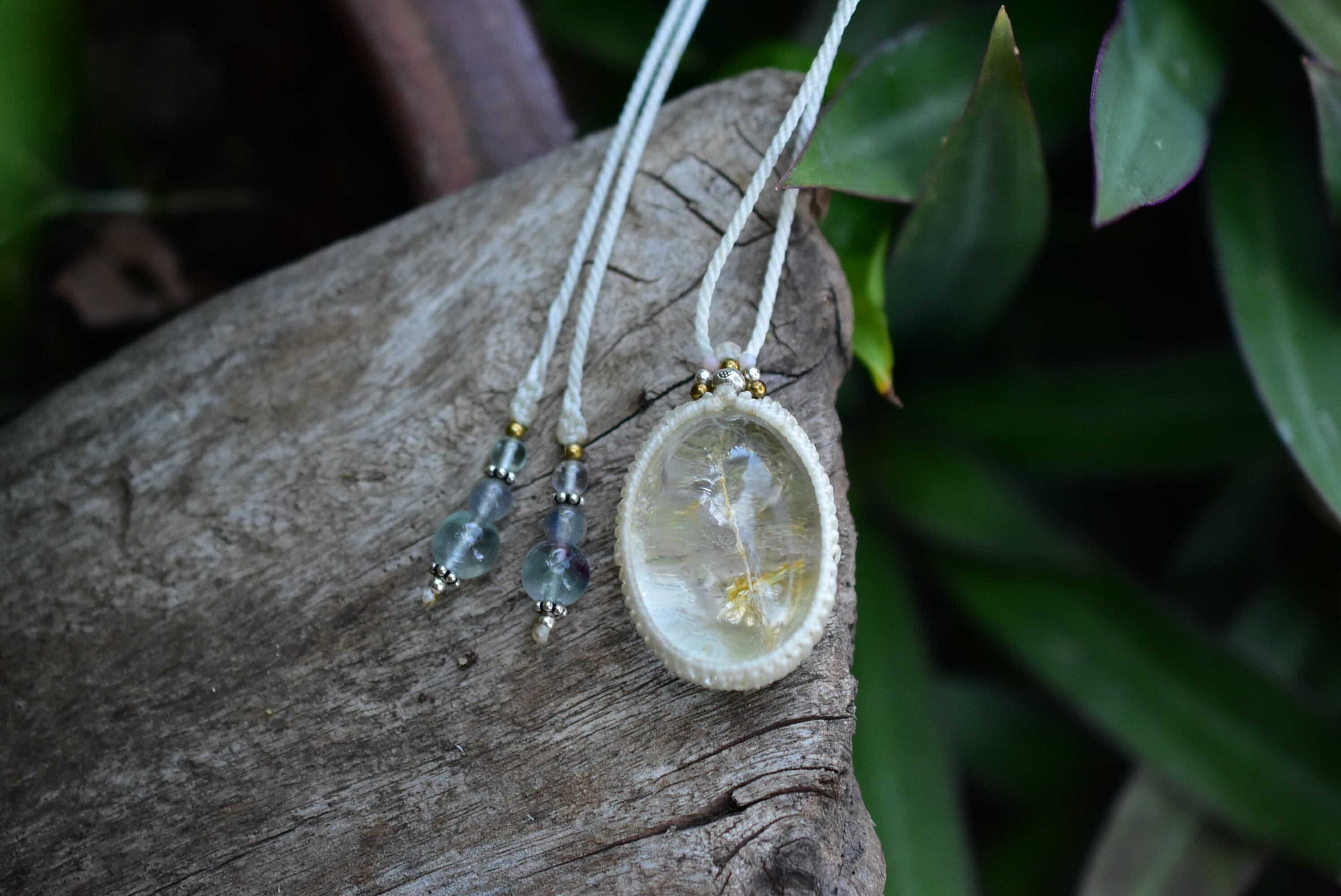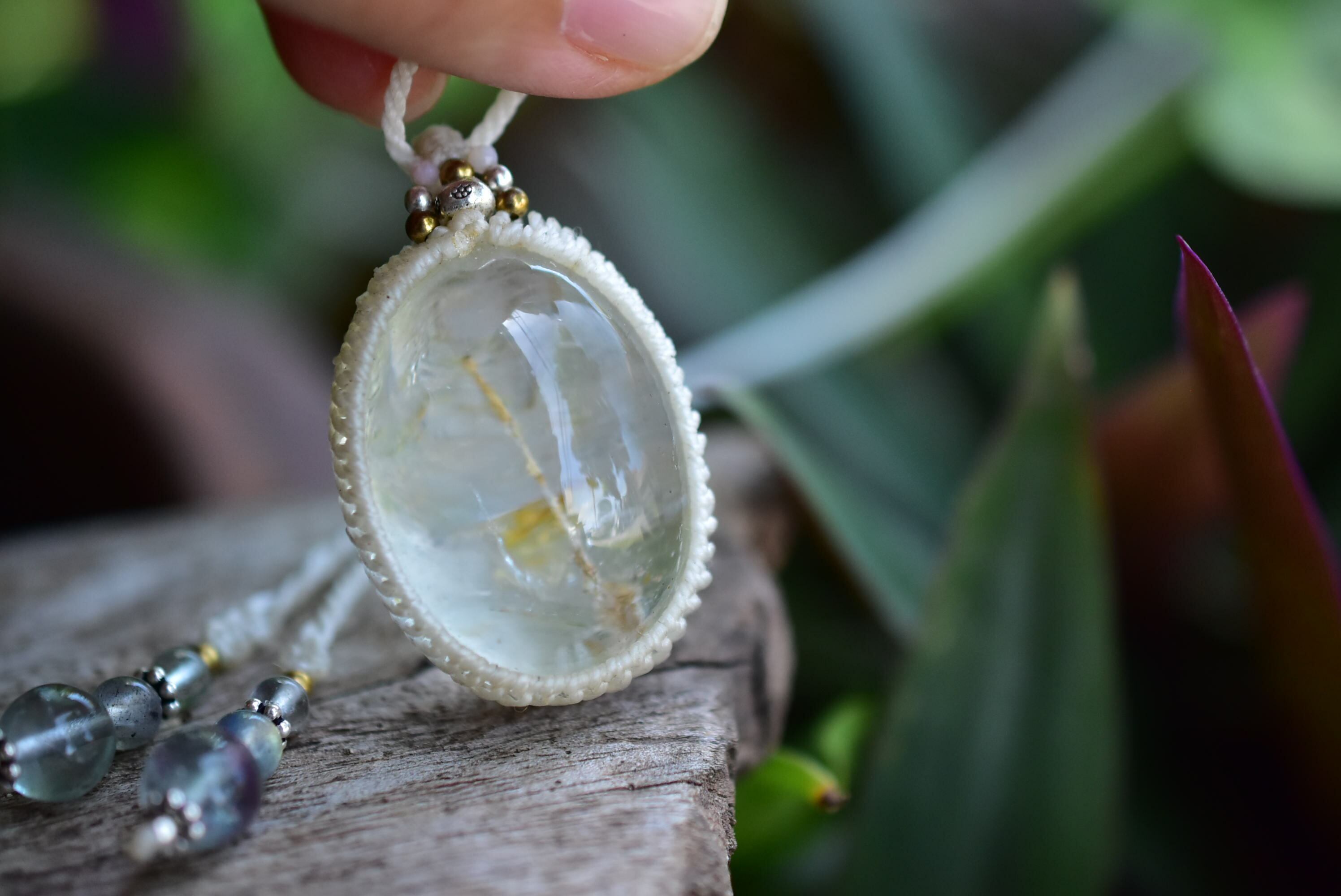 一本線★透明★ガーデンクォーツ マクラメペンダント220