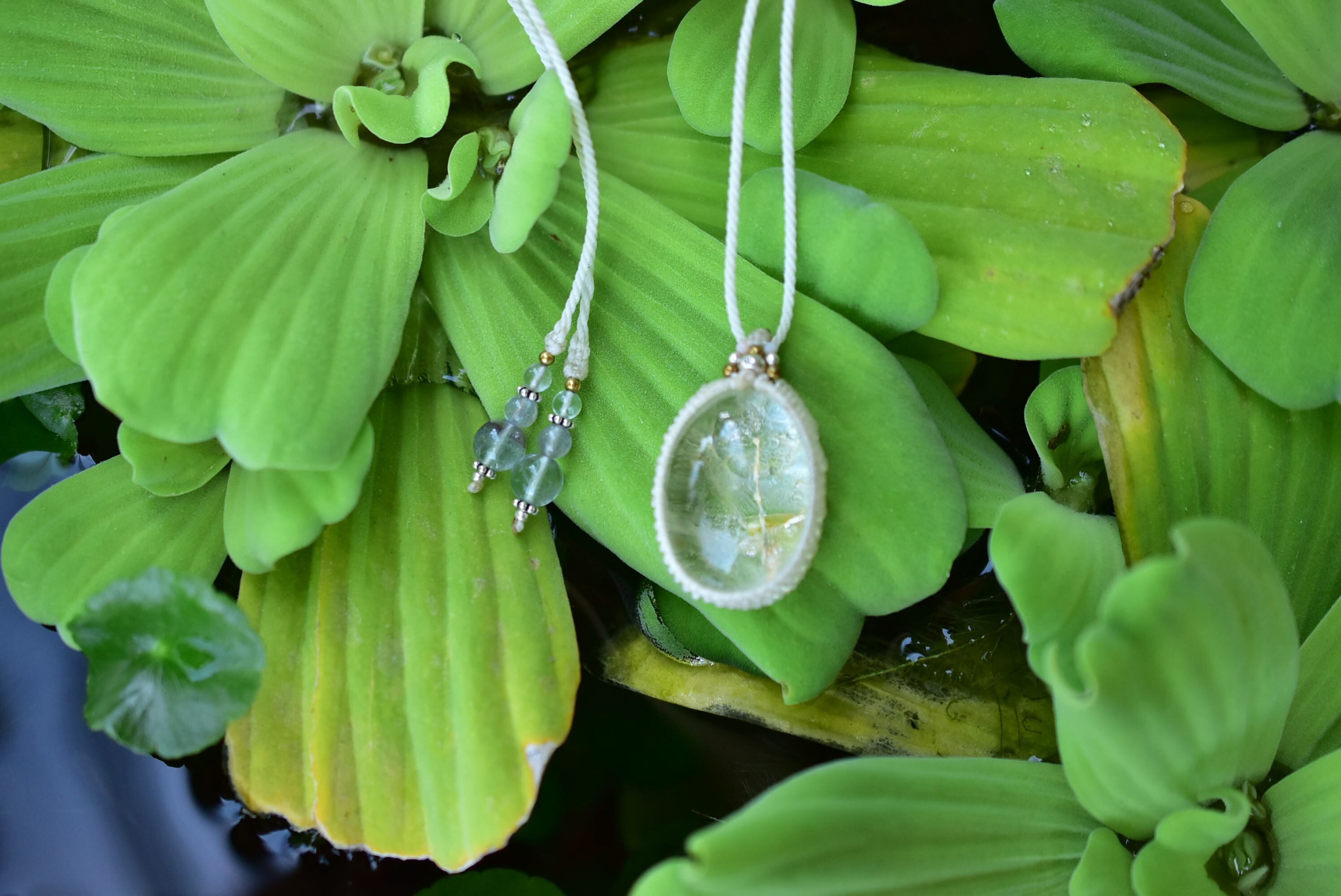 水晶たちも見える個性的なガーデンクォーツのひとつをペンダントに仕上げました。