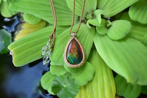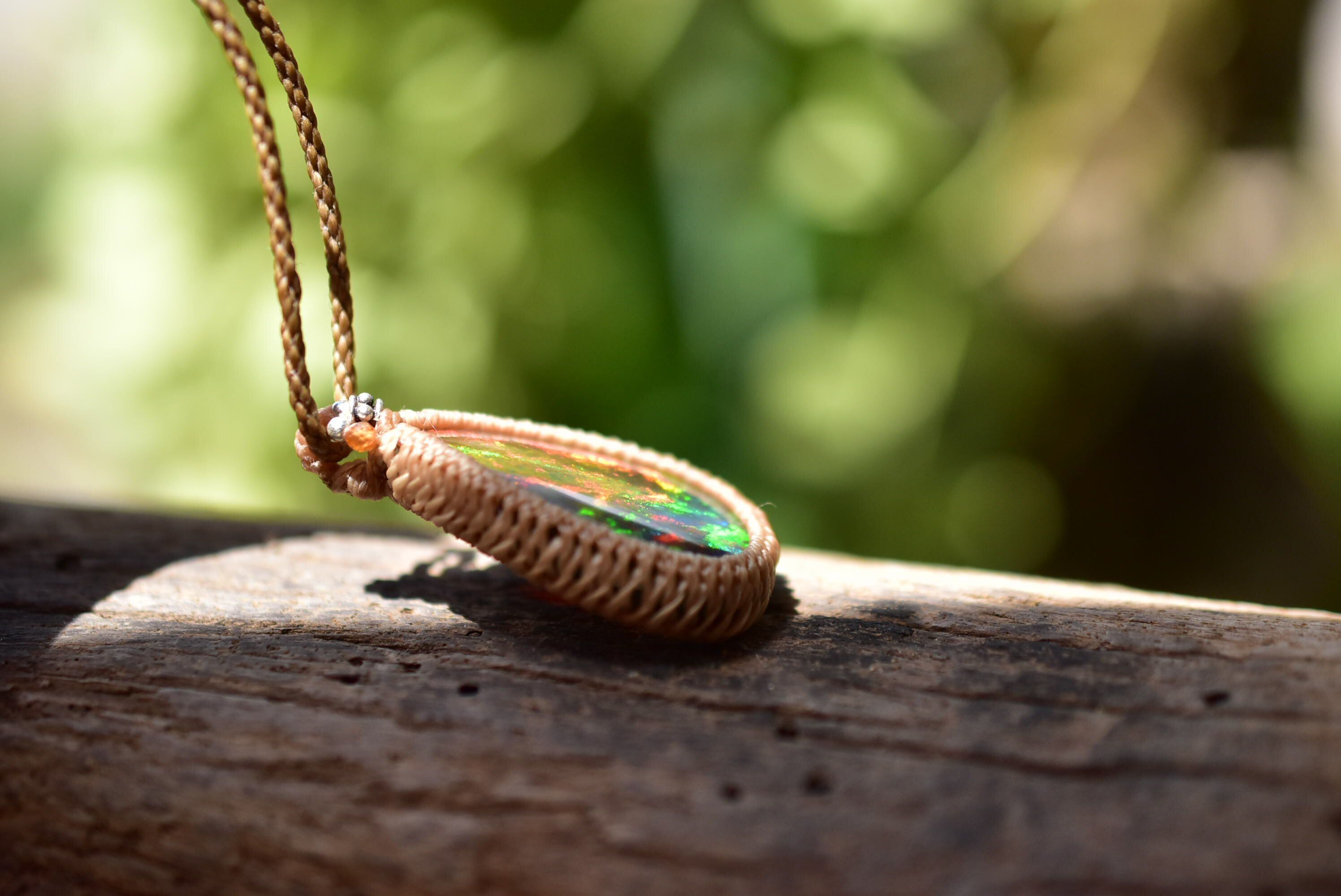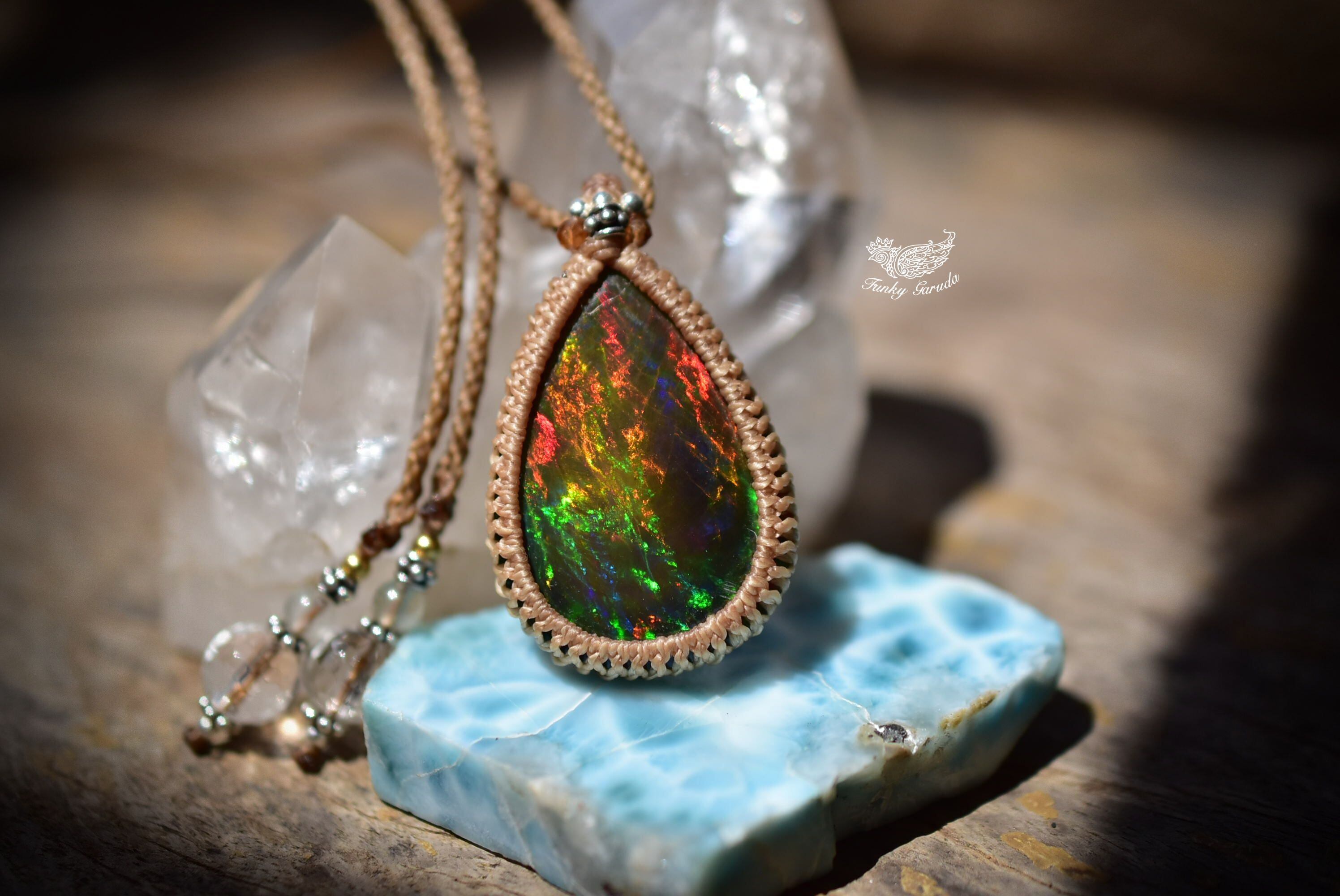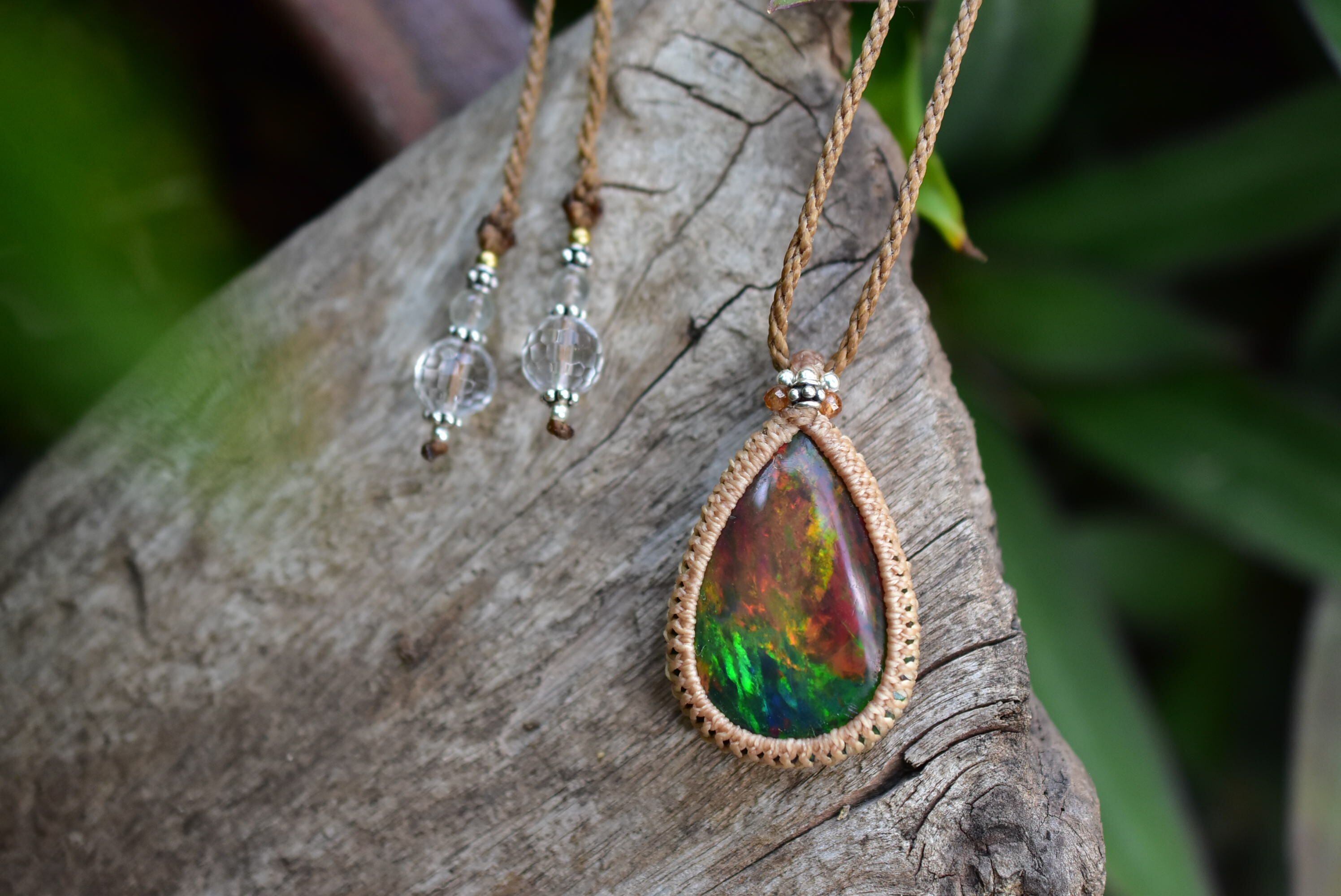 燃えさかる虹色★ブラックオパール マクラメペンダント206