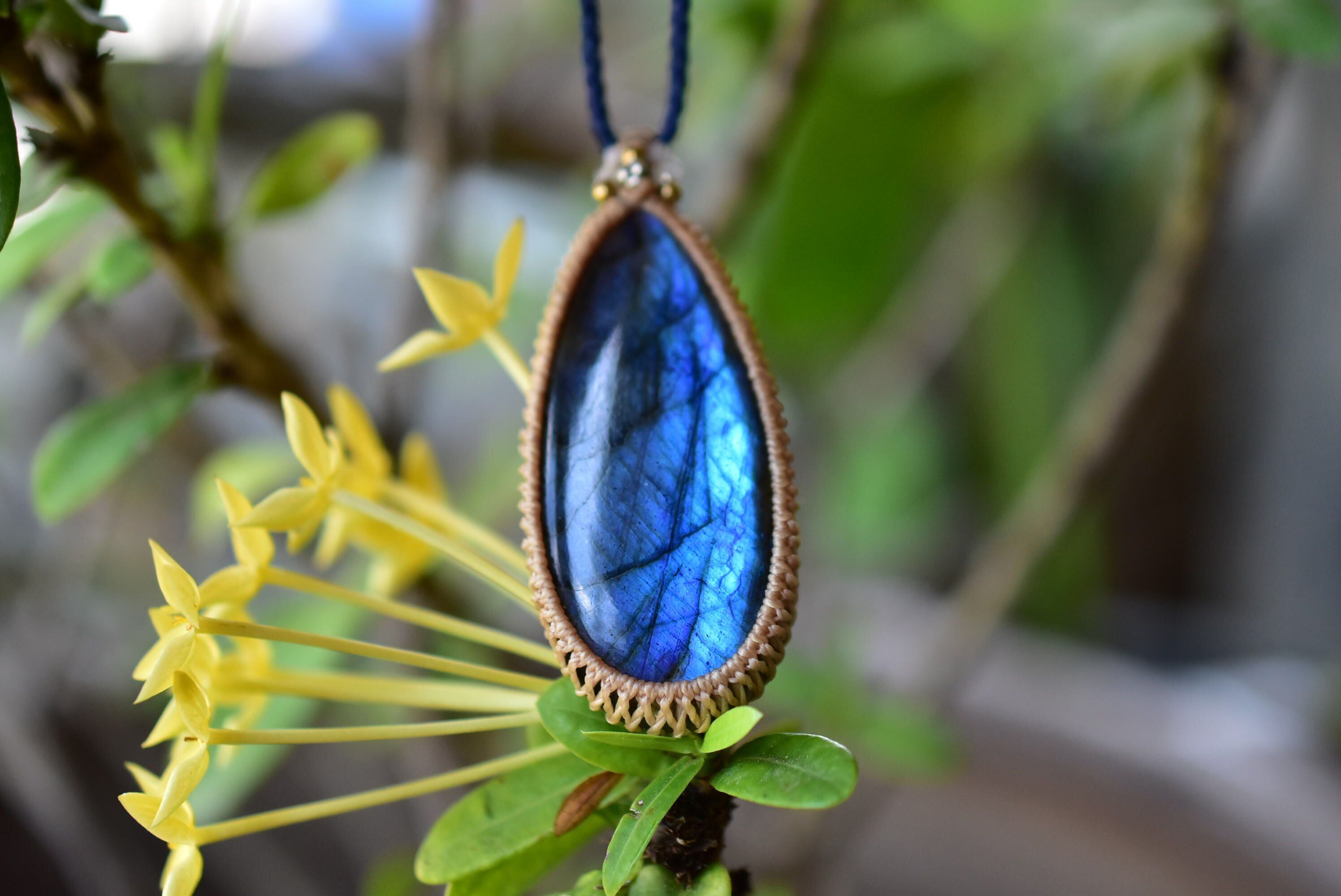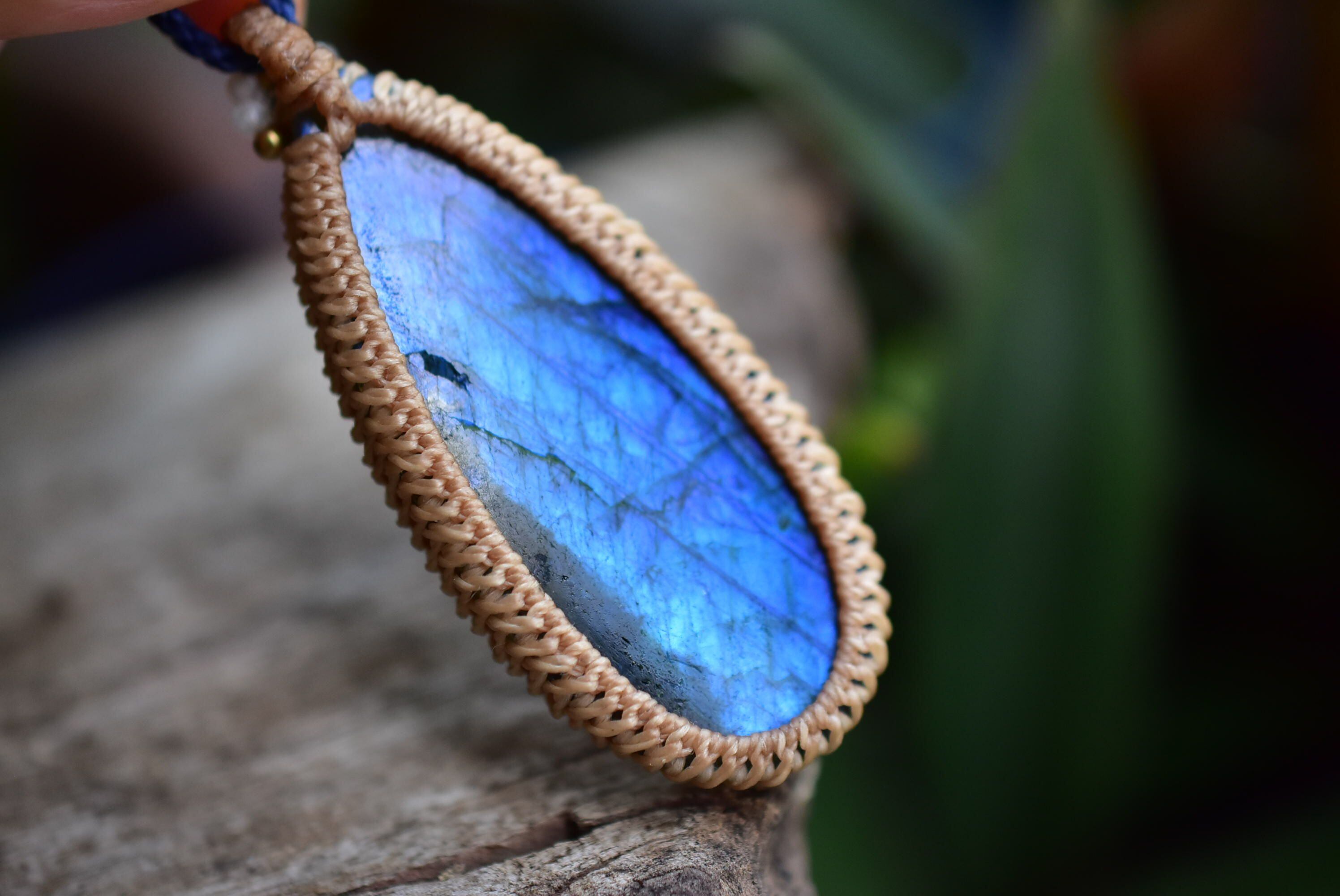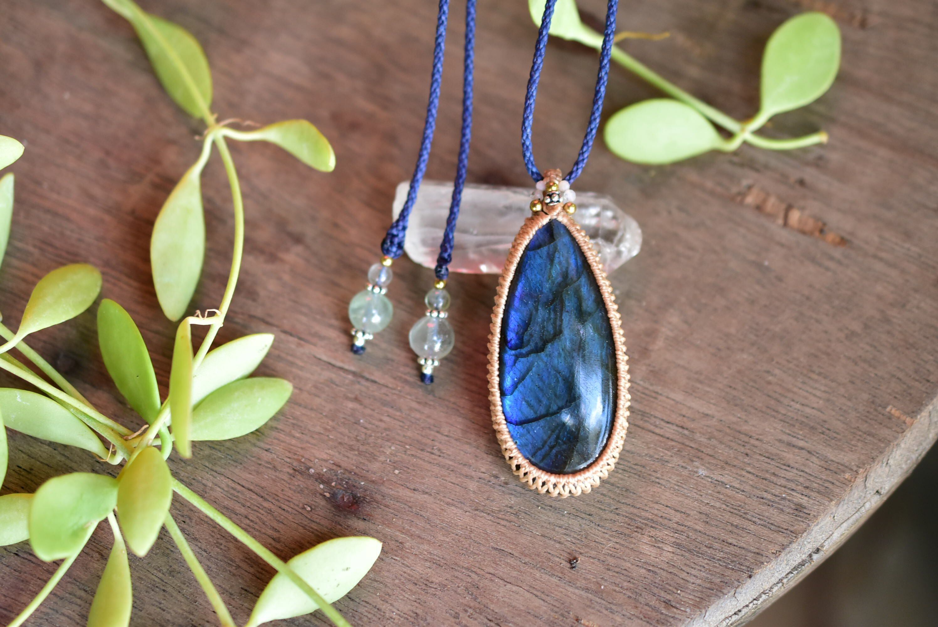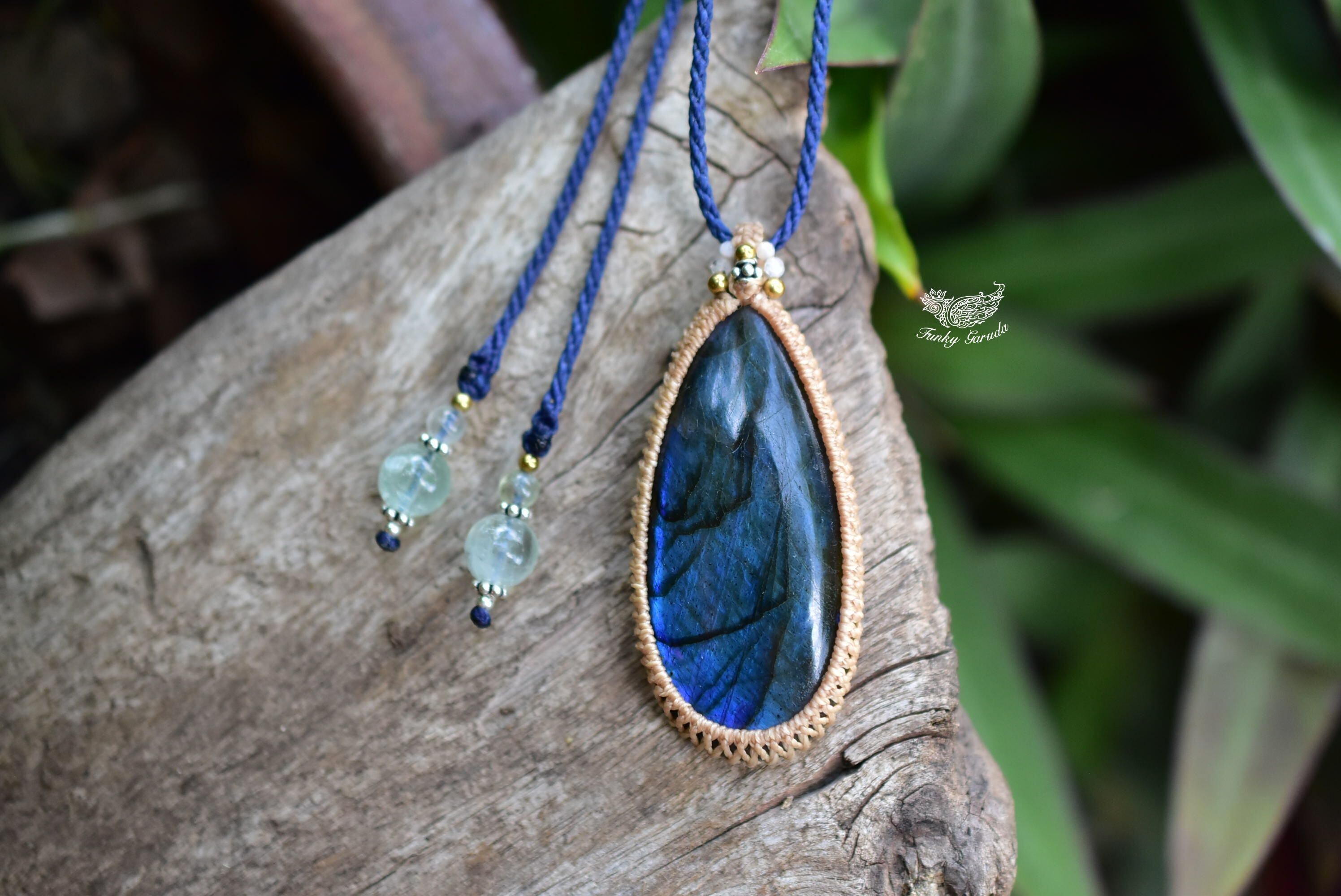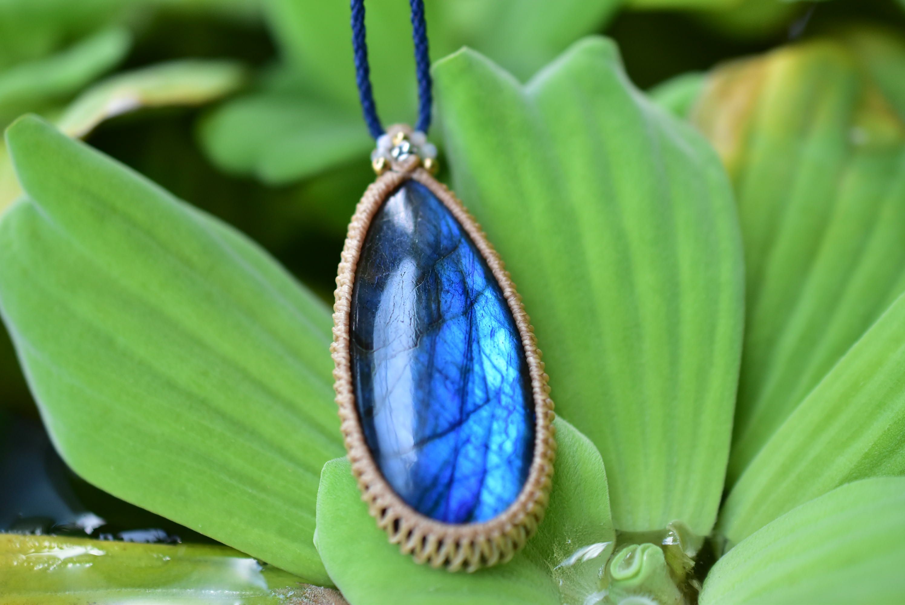 麗しのブルー★ラブラドライト マクラメペンダント 207